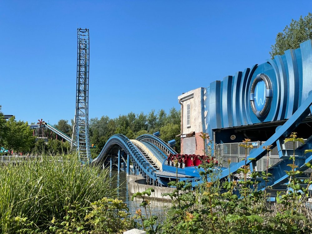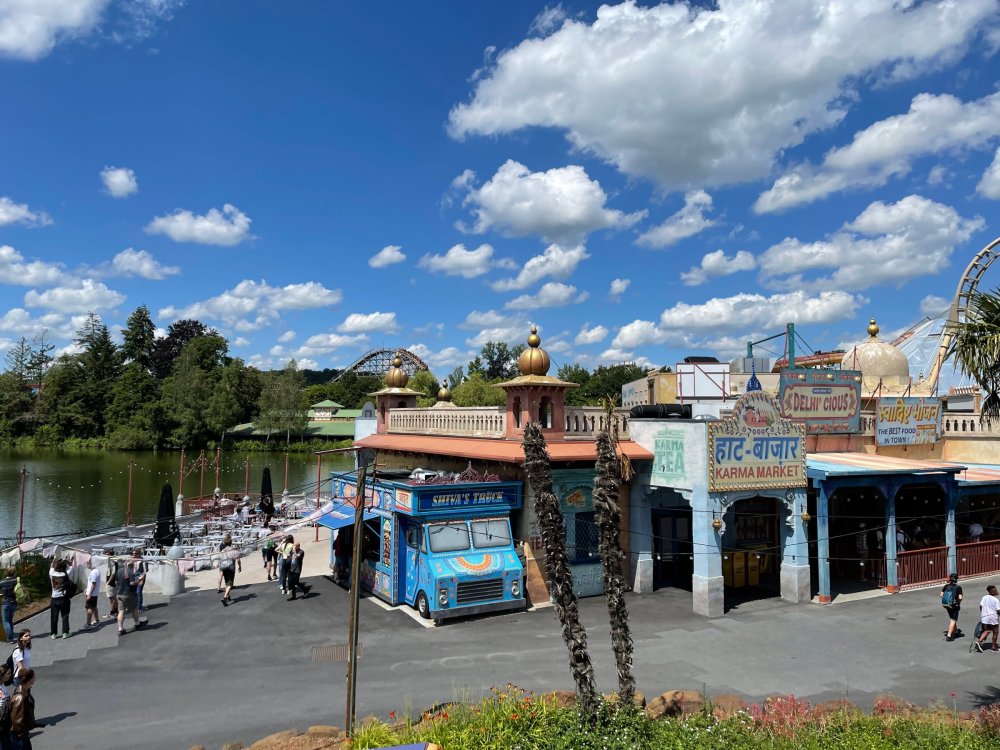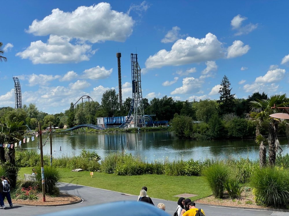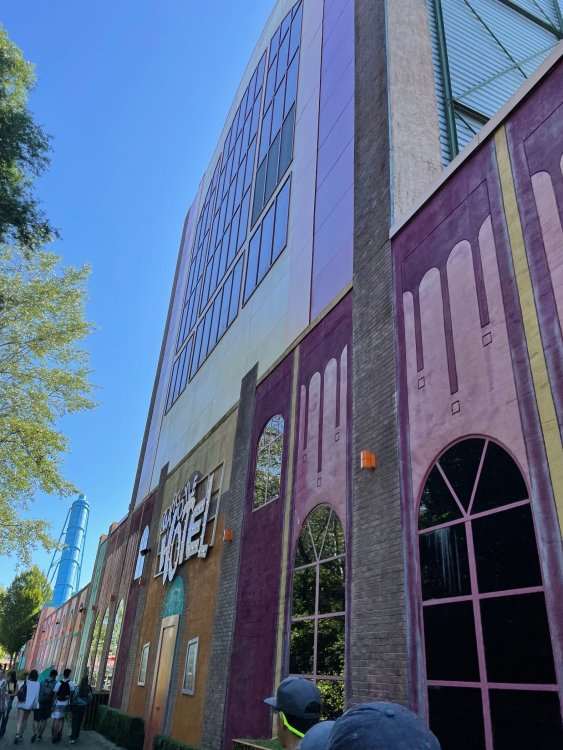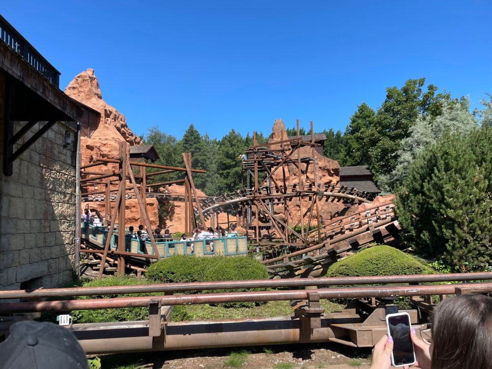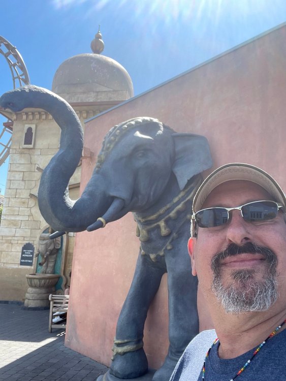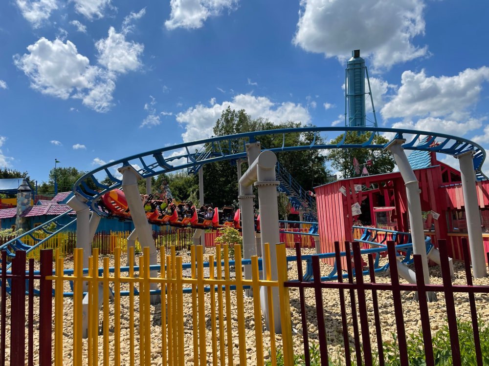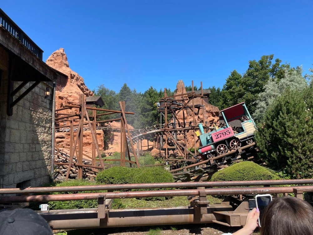 3. Walibi Belgium, part 2: we headed over to the "western" part of the park. . a smallish area, with a bunch of shops, and two rides. . the drop tower, Dalton Terror, and the Vekoma mine train, Calamity Mine. I used to love this at Astroworld, and tho got to ride it at SFStL before it closed. .and earlier in the trip at Holiday Park. .so any chance to ride these, I take. you can see from the lines forming, it was really starting to get busy as we got into early afternoon timeframe. the mine train was only so-so, I thought. . .but I did like the look of this area. and was able to get James to do a photo op with me. i'm so pretty! we headed over to Buzzsaw, and wow.. what a line over here. with the fast lane it still took almost 20 minutes. and the cycle was really pretty bad. I mean, nothing could really compare with Talocan - especially the day right after. But this thing flipped, I think, maybe 3 times total? the rest was just rocking back and forth. i was sadly disappointed in this. tho it was very photogenic. phantom cars!!! it's a g-g-g-ghost driving!! ruh-roh!! we still had 3 coasters left in the parks line up, and I really wasn't looking forward to any of them (and didn't plan to ride two of them anyways, the kiddie and the Boomerang). . but to get up my nerve - and it was on the way - we stopped at the Carousel on the way to Vampire, the parks Vekoma SLC. lovely carousel. and all the effects were working: the spinning cups, the galloping horses, and the rocking carriages. see? my happy place. even rode twice maybe? Unless Jon fell off from the prior pic? while some went for a coffee break, I popped into the store up front to see if there were any shirts I might want later. i was surprised to see them selling merch from everyone in here! DC Superheroes (Six Flags parks), Harry Potter (Universal), Star Wars/Marvel (Disney), even cartoon network stuf fand Nintendo stuff! . . it's a copyright free for all up in here.. . LOL but eventually we had to face it. another "pretty to photograph, but it's gonna suck" ride. Vekoma SLC with some nice theming tho. but yes. . it suuuuuuucked. I haaaaaaated it. the only thing that even made it worthwhile to come over to this part of the park (near the front gates) was the Carousel. oh. .and passing these two inked Bears. . . hello misters! after the crapfest that was Vampire, we were starting to get hungry, but wanted to let stomachs settle. So we headed across the park to the one section we hadn't been in yet - and to ride Popcorn's Revenge - the other shooting dark ride. nature will find a way: although this seems like a huge waste of space - like SOMETHING should be in here for use? - it really is lovely to have a lake in the center of the park. and allows for some great views. this Elephant sculpture was adorable. and it "mists" you as you walk by. . LOL before we got to Popcorn tho.. most of the guys wanted to ride the boomerang. why? I dunno. .to get the credit I guess? I decided to just wait for them and watch. the best seat on a Vekoma Boomerang? the bench out front of the entrance THIS is what I was interested in. I had called this Mediterranean section. .but I think it's more going for an India street vibe, right? huge queueline, that was almost completely empty. for such a fun shooting dark ride. I think maybe just a lot of people don't realize it's over here? if you ever go to Walibi Belgium? don't miss this one. .it's great. and so well themed. (yes, it's basically Toystory Mania. . but it's still a good ride) this is all just the queueline theming! exit thru the gift shop. . . so you can buy a stuffed Popcorn. . . LOL he was cute - and it smelled wonderfully of buttered popcorn in here - but I couldn't fit that in my bag to get back home. this lil magnet tho, i could. . so grabbed him. Pink, of course. so photogenic. . .but so. . . boomerang-y the park has a flying carpet over here.. but no one was really riding it other than some small kids. i asked if adults were allowed, and the operator said "sure! come on aboard!" he said we could have cameras out so I got on with a couple of others, figuring I could get some good pics from the ride. catching Loup-Garou over the lake - and thru the trees and catching Kondaa on the 1st drop. for such a huge splash, it's so fun not more . . . wet. But I really liked Pulsar, and it too is very photogenic we sat to have a drink in the cafe across from the magic carpet and noticed these water jets. what's this? oh. .it's the parks rapids ride, "Radja River" - which I hadn't realized they had. I noticed this too over there.. . oh my! I convinced a couple of folks to ride with me. . but can't recall if we got really wet or not. I don't think we did? it was well done tho. . and like the rapids rides we saw in other parks? never in USA. . the boats were sent pretty closely together, making for a more fun time. across from it was the kiddie. and since I had talked some into riding the rapids - and the kiddie was a walk on basically.. . yeah. . I rode "Fun Pilot" oooo. .another Mad House? yes please.. I've gotten to like these, and happy that so many parks we visited had one. sorry so many pics of Pulsar. . I really DID edit out a lot of them! it's just so pretty with the sky behind it. it was time to eat. No idea what this was. I do remember it was good, tho the desert was a bit too chocolatly. but it was good. pic from Robb, that he sent out while we were stopped for lunch, so it saved in my camera in this spot. I guess from the top of the drop tower? But showing the full layout of Kondaa after lunch, we all wanted something "relaxing". . so we headed to that "slow boat" ride that's nearby Tiki-Waka feeeeed meeeeeeeee really do love how closely this ride interacts with the coaster (and vice versa) awww. . a pony ride, similar to what I got to ride at Dollywood (tho on bears there). we couldn't ride tho, as we were all too tall. so instead we went and rode the angry giant vagina monster ride. at least I'm 
