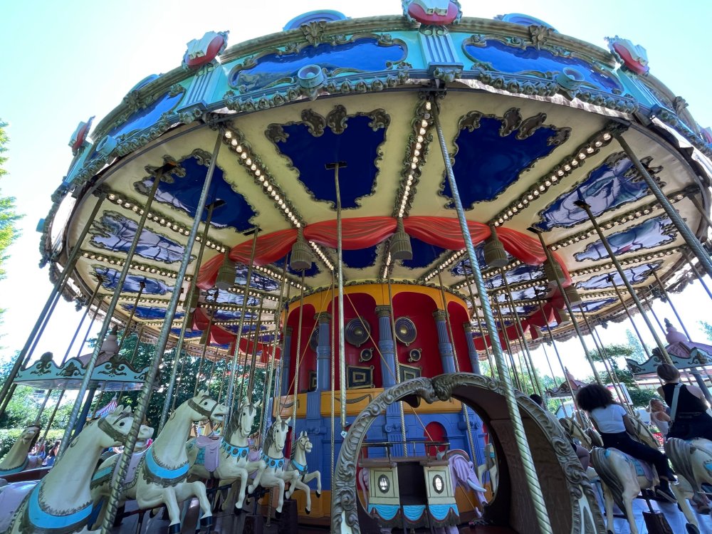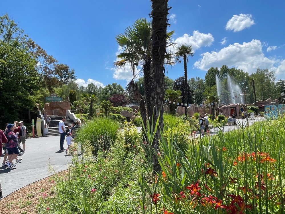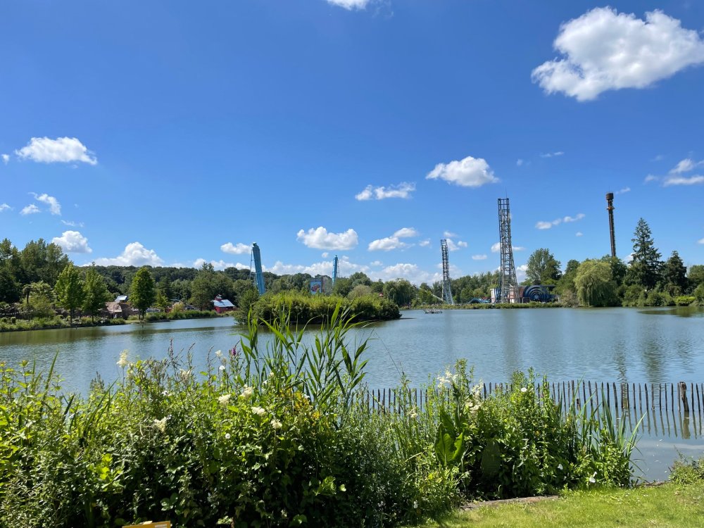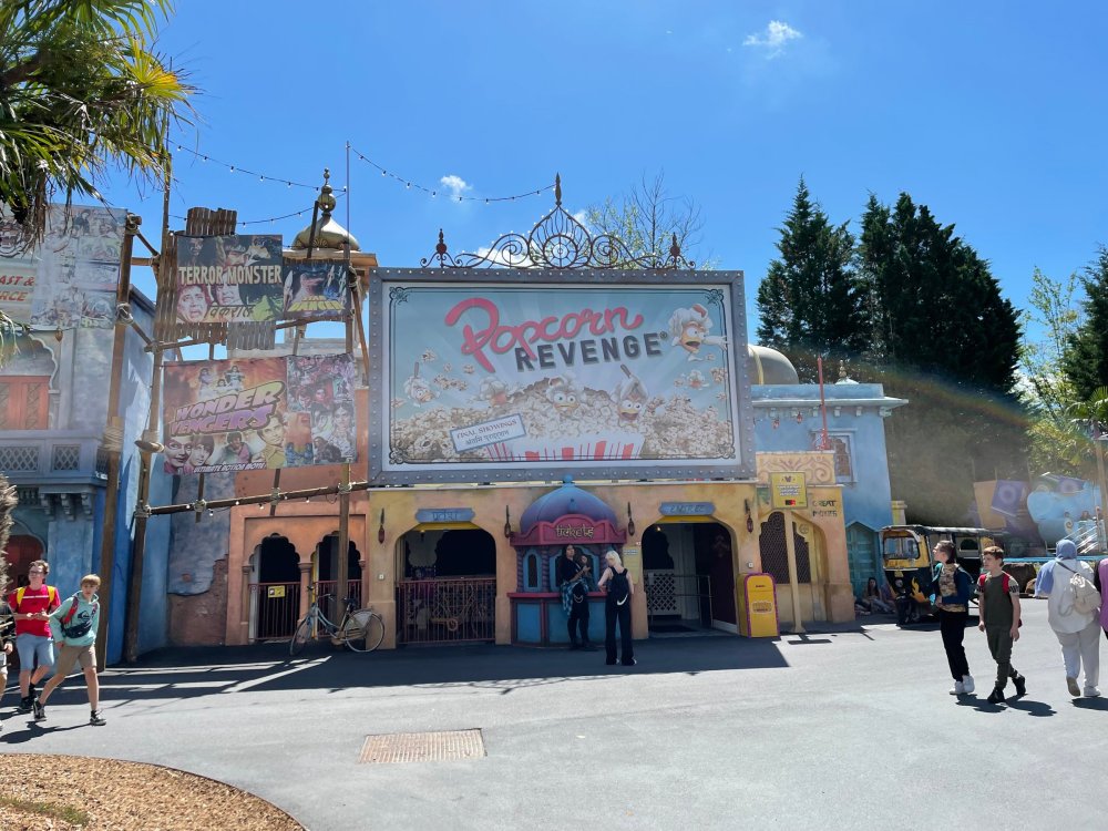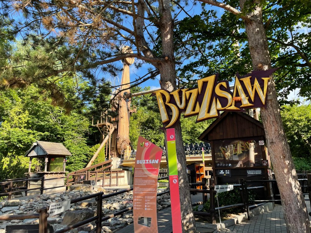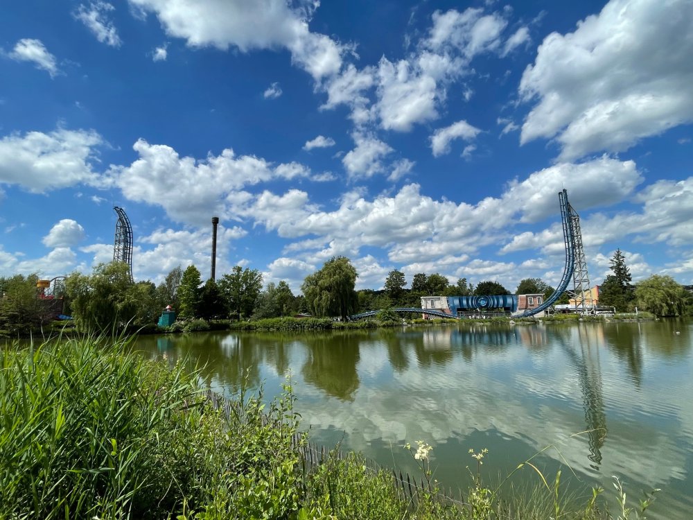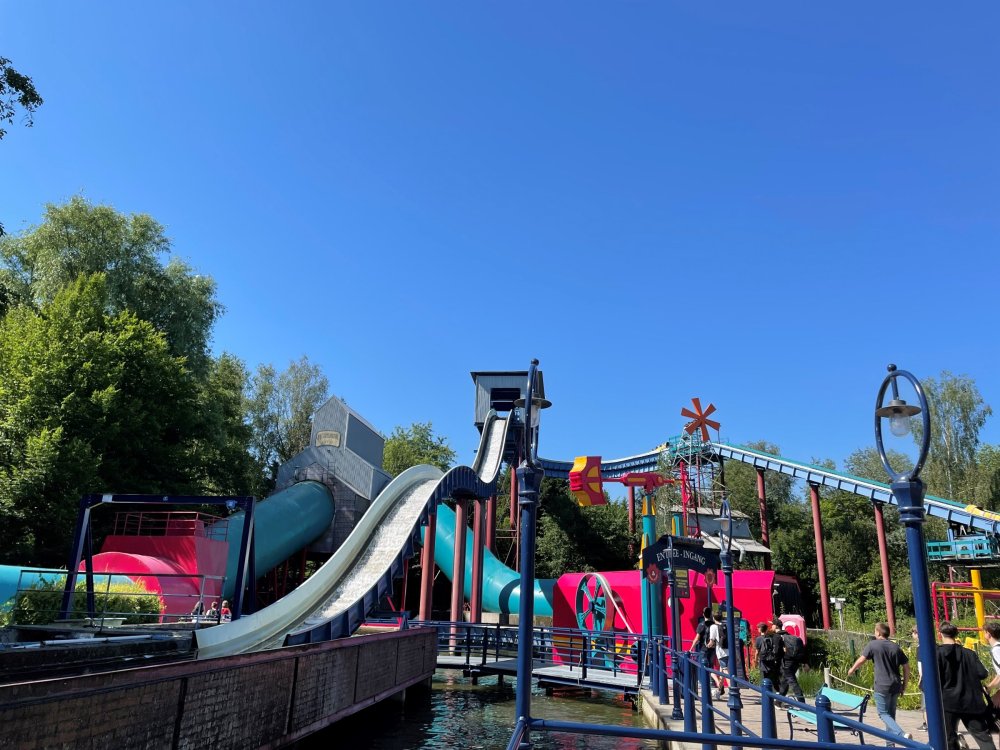 3. Walibi Belgium, part 2: we headed over to the "western" part of the park. . a smallish area, with a bunch of shops, and two rides. . the drop tower, Dalton Terror, and the Vekoma mine train, Calamity Mine. I used to love this at Astroworld, and tho got to ride it at SFStL before it closed. .and earlier in the trip at Holiday Park. .so any chance to ride these, I take. you can see from the lines forming, it was really starting to get busy as we got into early afternoon timeframe. the mine train was only so-so, I thought. . .but I did like the look of this area. and was able to get James to do a photo op with me. i'm so pretty! we headed over to Buzzsaw, and wow.. what a line over here. with the fast lane it still took almost 20 minutes. and the cycle was really pretty bad. I mean, nothing could really compare with Talocan - especially the day right after. But this thing flipped, I think, maybe 3 times total? the rest was just rocking back and forth. i was sadly disappointed in this. tho it was very photogenic. phantom cars!!! it's a g-g-g-ghost driving!! ruh-roh!! we still had 3 coasters left in the parks line up, and I really wasn't looking forward to any of them (and didn't plan to ride two of them anyways, the kiddie and the Boomerang). . but to get up my nerve - and it was on the way - we stopped at the Carousel on the way to Vampire, the parks Vekoma SLC. lovely carousel. and all the effects were working: the spinning cups, the galloping horses, and the rocking carriages. see? my happy place. even rode twice maybe? Unless Jon fell off from the prior pic? while some went for a coffee break, I popped into the store up front to see if there were any shirts I might want later. i was surprised to see them selling merch from everyone in here! DC Superheroes (Six Flags parks), Harry Potter (Universal), Star Wars/Marvel (Disney), even cartoon network stuf fand Nintendo stuff! . . it's a copyright free for all up in here.. . LOL but eventually we had to face it. another "pretty to photograph, but it's gonna suck" ride. Vekoma SLC with some nice theming tho. but yes. . it suuuuuuucked. I haaaaaaated it. the only thing that even made it worthwhile to come over to this part of the park (near the front gates) was the Carousel. oh. .and passing these two inked Bears. . . hello misters! after the crapfest that was Vampire, we were starting to get hungry, but wanted to let stomachs settle. So we headed across the park to the one section we hadn't been in yet - and to ride Popcorn's Revenge - the other shooting dark ride. nature will find a way: although this seems like a huge waste of space - like SOMETHING should be in here for use? - it really is lovely to have a lake in the center of the park. and allows for some great views. this Elephant sculpture was adorable. and it "mists" you as you walk by. . LOL before we got to Popcorn tho.. most of the guys wanted to ride the boomerang. why? I dunno. .to get the credit I guess? I decided to just wait for them and watch. the best seat on a Vekoma Boomerang? the bench out front of the entrance THIS is what I was interested in. I had called this Mediterranean section. .but I think it's more going for an India street vibe, right? huge queueline, that was almost completely empty. for such a fun shooting dark ride. I think maybe just a lot of people don't realize it's over here? if you ever go to Walibi Belgium? don't miss this one. .it's great. and so well themed. (yes, it's basically Toystory Mania. . but it's still a good ride) this is all just the queueline theming! exit thru the gift shop. . . so you can buy a stuffed Popcorn. . . LOL he was cute - and it smelled wonderfully of buttered popcorn in here - but I couldn't fit that in my bag to get back home. this lil magnet tho, i could. . so grabbed him. Pink, of course. so photogenic. . .but so. . . boomerang-y the park has a flying carpet over here.. but no one was really riding it other than some small kids. i asked if adults were allowed, and the operator said "sure! come on aboard!" he said we could have cameras out so I got on with a couple of others, figuring I could get some good pics from the ride. catching Loup-Garou over the lake - and thru the trees and catching Kondaa on the 1st drop. for such a huge splash, it's so fun not more . . . wet. But I really liked Pulsar, and it too is very photogenic we sat to have a drink in the cafe across from the magic carpet and noticed these water jets. what's this? oh. .it's the parks rapids ride, "Radja River" - which I hadn't realized they had. I noticed this too over there.. . oh my! I convinced a couple of folks to ride with me. . but can't recall if we got really wet or not. I don't think we did? it was well done tho. . and like the rapids rides we saw in other parks? never in USA. . the boats were sent pretty closely together, making for a more fun time. across from it was the kiddie. and since I had talked some into riding the rapids - and the kiddie was a walk on basically.. . yeah. . I rode "Fun Pilot" oooo. .another Mad House? yes please.. I've gotten to like these, and happy that so many parks we visited had one. sorry so many pics of Pulsar. . I really DID edit out a lot of them! it's just so pretty with the sky behind it. it was time to eat. No idea what this was. I do remember it was good, tho the desert was a bit too chocolatly. but it was good. pic from Robb, that he sent out while we were stopped for lunch, so it saved in my camera in this spot. I guess from the top of the drop tower? But showing the full layout of Kondaa after lunch, we all wanted something "relaxing". . so we headed to that "slow boat" ride that's nearby Tiki-Waka feeeeed meeeeeeeee really do love how closely this ride interacts with the coaster (and vice versa) awww. . a pony ride, similar to what I got to ride at Dollywood (tho on bears there). we couldn't ride tho, as we were all too tall. so instead we went and rode the angry giant vagina monster ride. at least I'm 