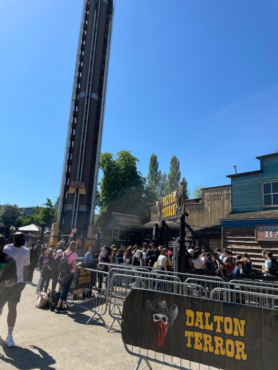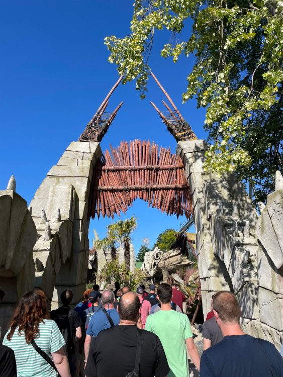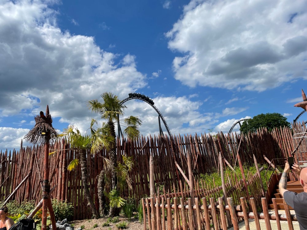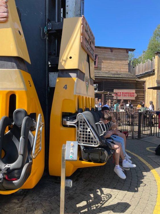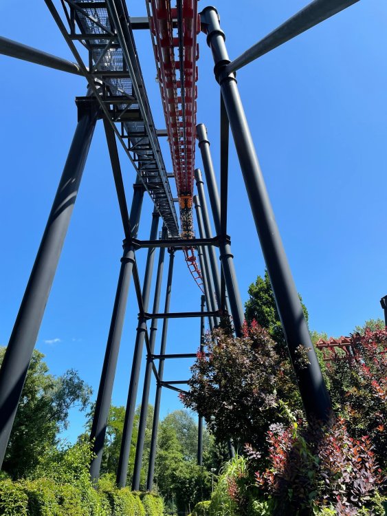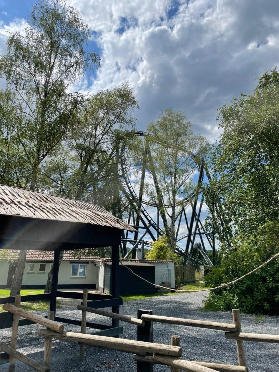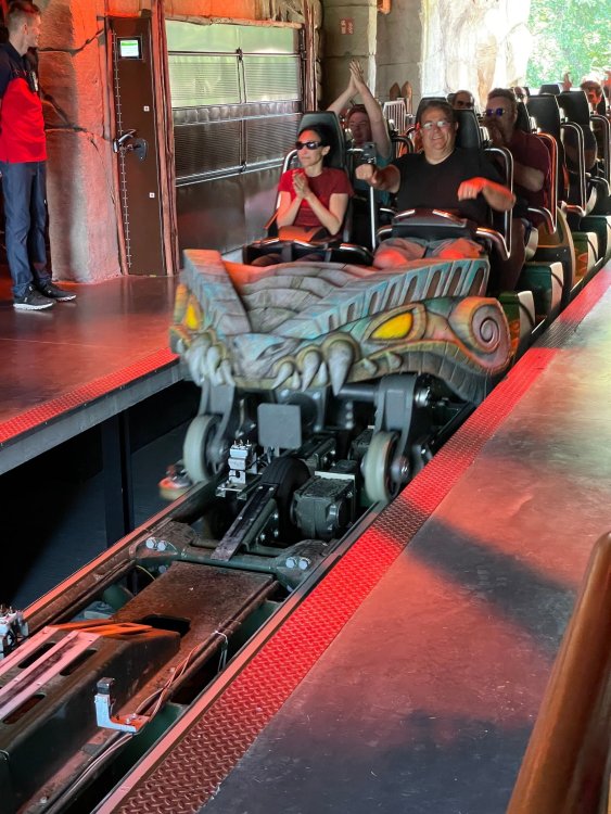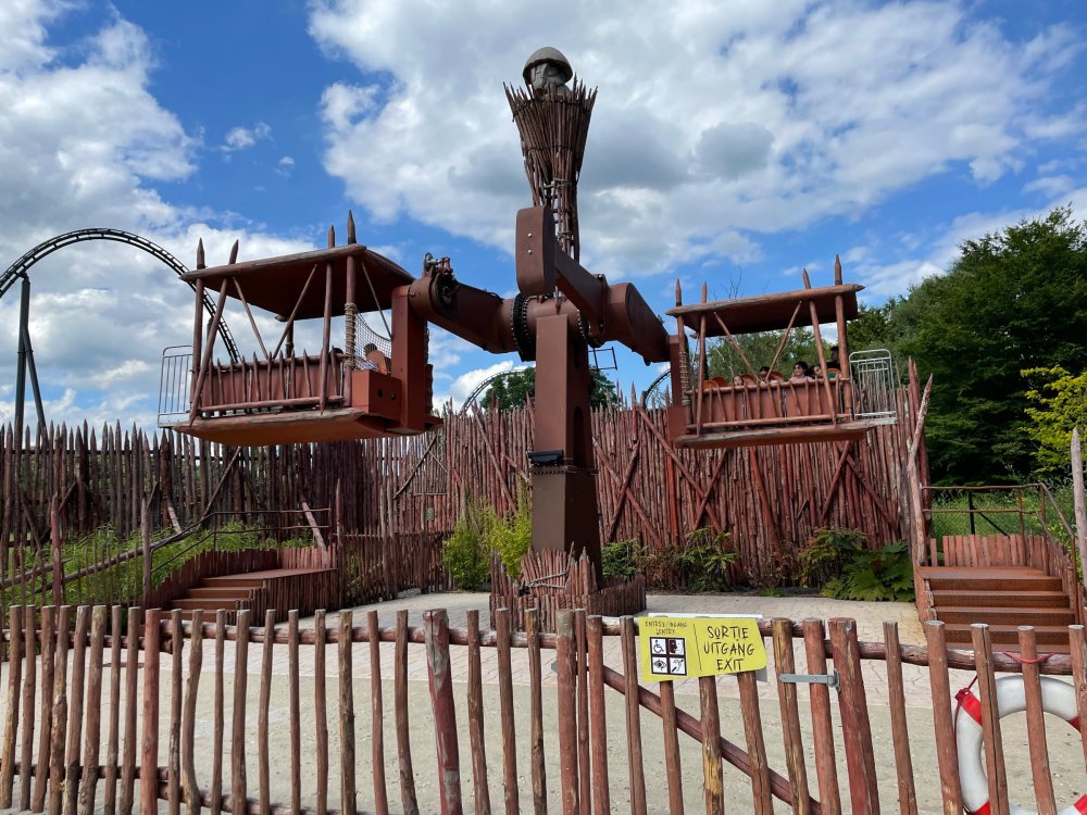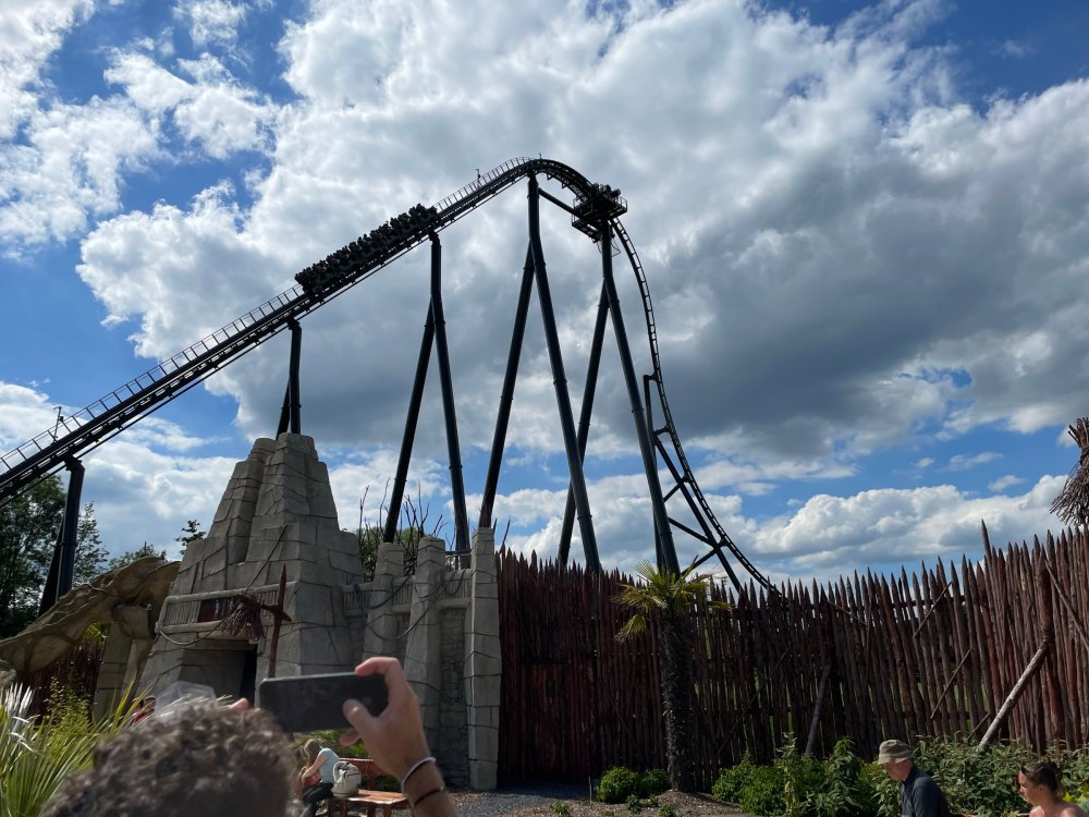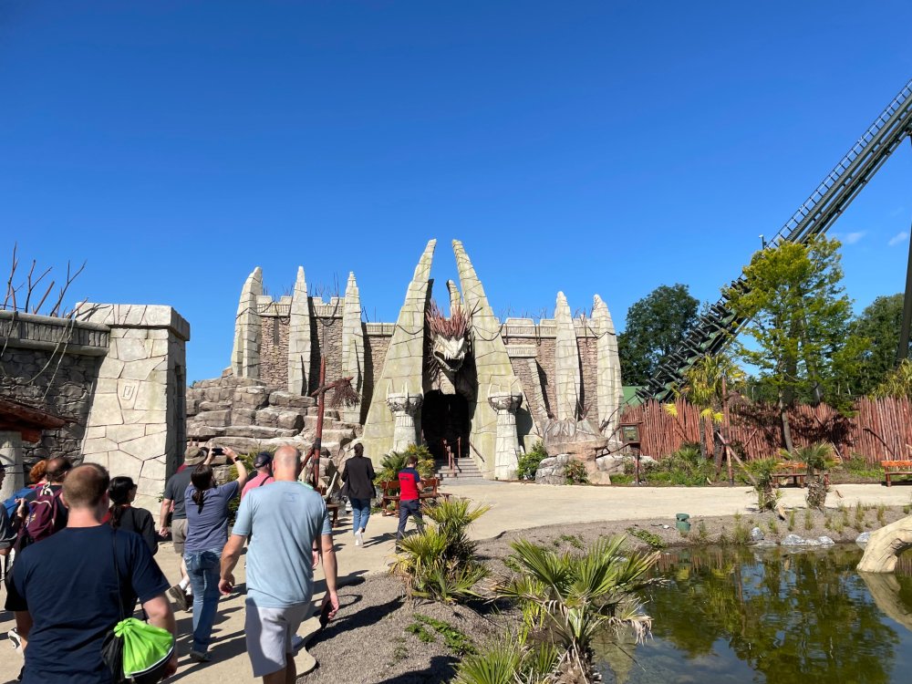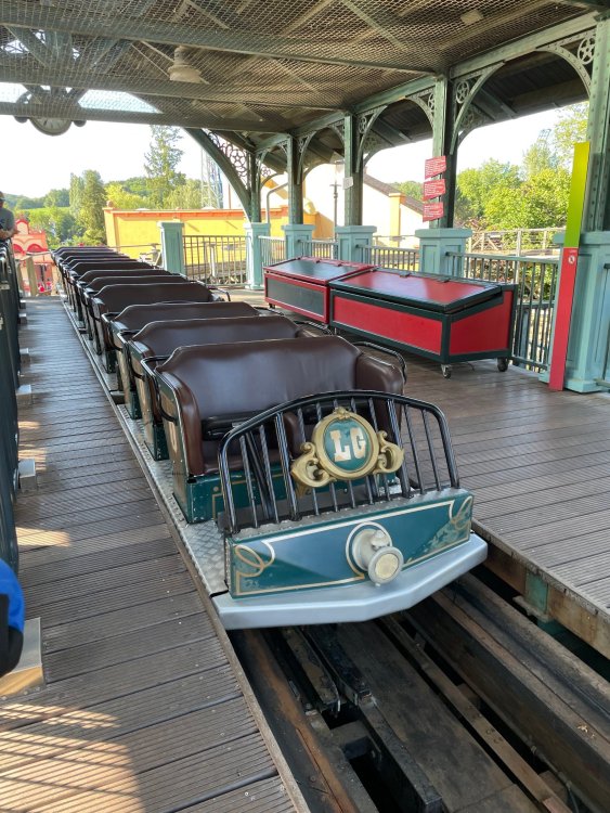 4. apologies for the weeks long break here. . . I know why I've been procrastinating in continuing on, but after talking thru it with my therapist, I'm ready to keep going now. Doesn't mean I'm not going to be sad, but there's lots more to see, ride, and share. . so continuing on. Day 8: Walibi Belgium, Part 1: we got up at the hotel, ate breakfast and checked out by 8:15. after loading the bus, we drove to nearby Walibi Belgium. we had stuff to do before park open: ERT on two coasters, and 1st rides of the day on their new Intamin, Kondaa. pulling into a mostly deserted parking lot. . tho it was a Tuesday, there were already buses in the parking lot, and it seemed it was a school holiday of some sort. very glad to be on this trip with TPR, because the extras - such as the skip the line passes. . it was certainly gonna help with what looked to be a busy day. not too crowded walking up - but it was still over an hour before park open. headed into the park, we see where we were going first: Loup-Garou, a kinda infamous Vekoma wooden coaster. Several of us had been talking and we reasoned that Anaconda at Walygator was vastly improved from what we had expected. . so perhaps it would be similar on this one? I was excited to see it regardless, as I love woodies (that's what he said!). . . but was prepared for 1 and done. I mean, it certainly wasn't warmed up 1st thing in the morning, so hoped for the best, but expected the worst. Still got excited to see it peeking up over the entrance plaza buildings tho. not as excited as I was to see the Park's Carousel front and center at the end of the entrance plaza tho, on the way to the coaster entrance i'd be back for you later! the coaster started testing as we approached it. apparently "Lupe Garou" means Warewolf in French . . so it had that "theming". . . in name and signage only, but hey, theming! it sure LOOKED pretty. . . .I felt my hopes slightly raise. Two hair-wolves (or are we both just Bears.. . Andrew???) ready to ride! they were running two trains during our ERT. . Green & Red. i really liked this train design. it was comfortable. . and you know what? it was a lot of fun, and other than one *really* funky transition that will realign your spine if you don't know it's coming and brace for it - which for some oddball reason is JUST before the photo snap (so everyone in the photos would be making a pained face. . LOL) - it was actually quite good. after the 1st ride, I knew when/where to brace, and I loved it. I think I rode it every cycle available during our ERT on it, which if I recall correctly was 1/2 hour, so I got 6 rides on it. (Pics courtesy of Elissa I think) I think most people on the trip liked it, and many of us kept riding until it was time to head to another coaster. walking from Loup Garou to our next stop - across the park - I snapped a few pics while walking (as usual). here's one of the spikes on Pulsar - one of only 4 Mack Powersplash operating in the world - at least until Aquaman at SFOT finally opens in 2023 ooo..a Top Spin? after Talocan the prior day, I was eager to try a "tamer" version. . so would come back for this later too. an Intamin drop tower, similar to Dungon Drop/Superman (Astroworld/SFStL) - which is now gone. . so wanted to ride this too. . . THRU THE TREES!!!. . that's Kondaa. . . wow, that looks amazing, but we weren't headed here yet. giant fries.. because. . . why not. Tho they didn't' entice me to want to eat any of them. we continued on into "Exotic World". . .. oooooooo kinky! down that way is Kondaa (angels singing). . . but not yet. Park Map THIS is where we were headed next for some quick ERT on the park's Gerstlauer Bobsled, Tiki-Waka really nice theming over here in "Exotic World" section of the park. and the Coaster itself really dominates this area, going around, and over, the walkways, and even interacting with the boat/river-raft ride next door. my turn! and pay attention, no voguing or dancing on this ride! Whee! as mentioned, it interacts with the river ride next to it.. really nice setting. after we all got a few rides on Tiki-Waka, it was time to head to the main event, as the park was opening up to the public. so we followed our Park Guide and Robb, over to the park's latest star attraction Kondaa if you've seen folks online complaining about the lack of theming around this Intamin coaster? yeah, they just haven't been on it. True, there's not a whole lot around the track (but really, what can you do to "theme" around a large, spread out Intamin coaster?). However the entrance plaza and surrounding area for the ride is beautifully done. I liked it so much, I bought yet another "ride" T-shirt - this time with the Kondaa dragon/logo on the front. the train design is so cool as well.. it's a dragon! yes, I waited to ride front row very "Aztek" looking stone design on the train. . . one of the better train designs I've seen. after we all got our opening of the day rides on Kondaa, we got our flash pass/skip the line bands, and then split off to enjoy the park for the day. a group of us - mostly the same folks I had hung out with at Phantasialand - headed to the 1st of the parks two EXCELLENT shooting dark rides. Challenge of Tutankhamon: full of pretty amazing animatronics, fire, and interactive targets. .this ride really is incredible. and the "guns" you shoot with are Ankhs: I think Andrew was shooting at a target and not me. . but who knows. . LOL oh, see that car in front of us? they are going to a "secret" bonus room. . that if the points in the car add up to high enough, you get an extra room with more fire effects and another scene! Oh yes, we immediately rode it again and really aimed, to make sure we got high enough points to do both versions. a photo op? Don't mind if I do. the park really was already starting to get busy, and we passed a LOT of people rushing past us towards the back of the park (where we were coming from Kondaa) and ignoring some of the flats. so when we pas