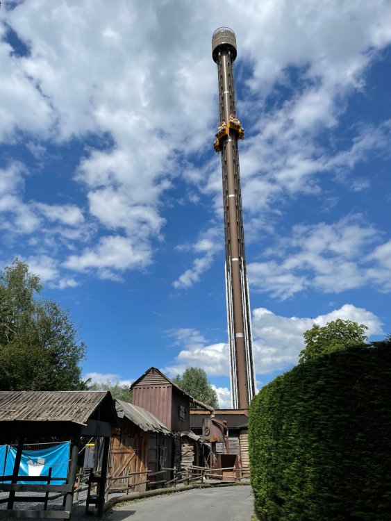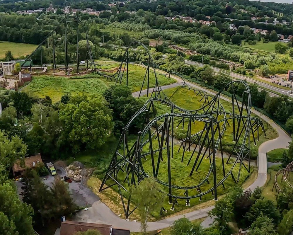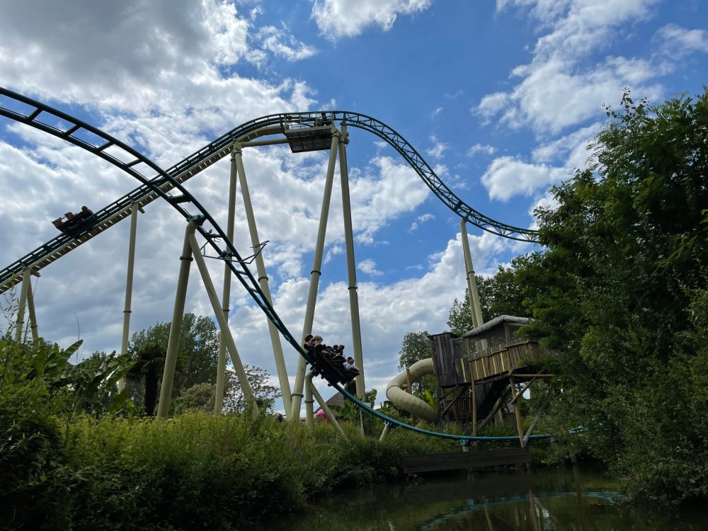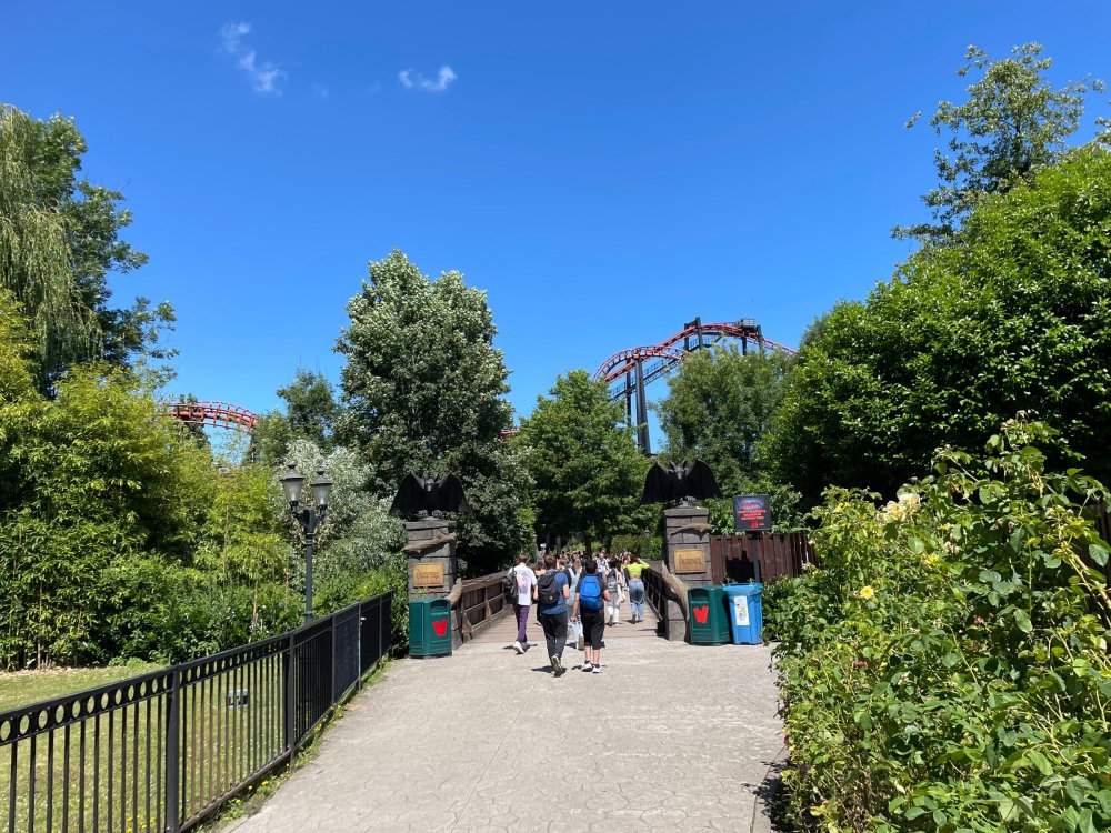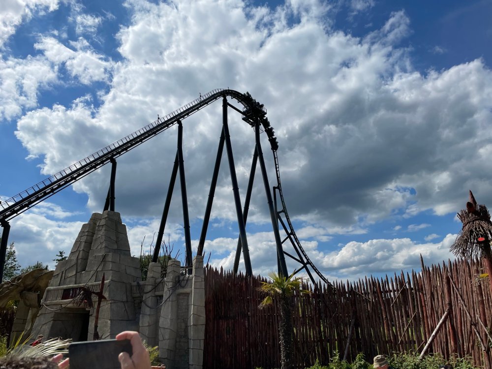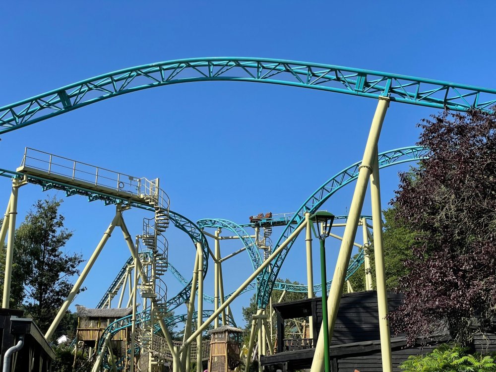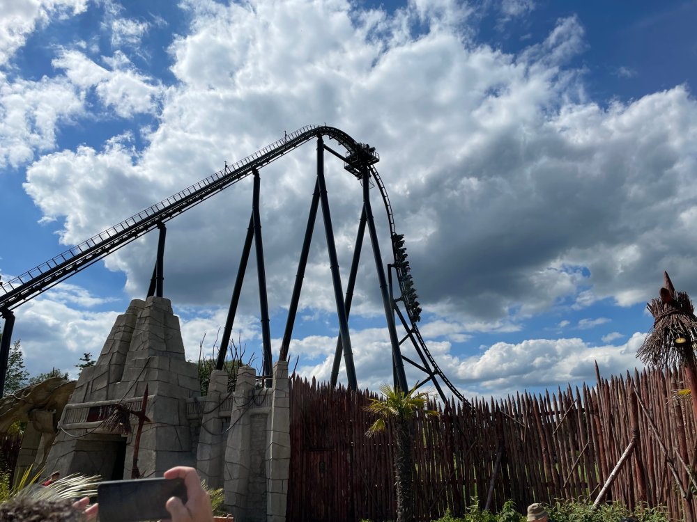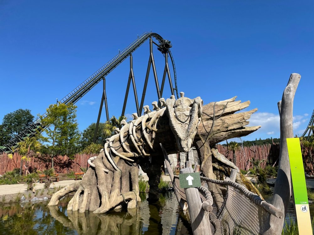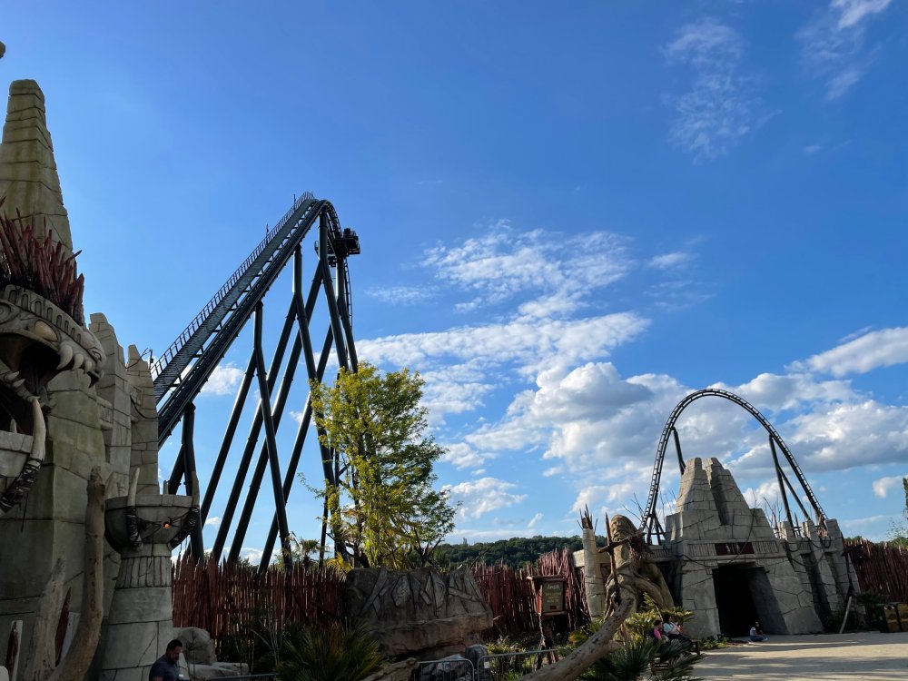 4. apologies for the weeks long break here. . . I know why I've been procrastinating in continuing on, but after talking thru it with my therapist, I'm ready to keep going now. Doesn't mean I'm not going to be sad, but there's lots more to see, ride, and share. . so continuing on. Day 8: Walibi Belgium, Part 1: we got up at the hotel, ate breakfast and checked out by 8:15. after loading the bus, we drove to nearby Walibi Belgium. we had stuff to do before park open: ERT on two coasters, and 1st rides of the day on their new Intamin, Kondaa. pulling into a mostly deserted parking lot. . tho it was a Tuesday, there were already buses in the parking lot, and it seemed it was a school holiday of some sort. very glad to be on this trip with TPR, because the extras - such as the skip the line passes. . it was certainly gonna help with what looked to be a busy day. not too crowded walking up - but it was still over an hour before park open. headed into the park, we see where we were going first: Loup-Garou, a kinda infamous Vekoma wooden coaster. Several of us had been talking and we reasoned that Anaconda at Walygator was vastly improved from what we had expected. . so perhaps it would be similar on this one? I was excited to see it regardless, as I love woodies (that's what he said!). . . but was prepared for 1 and done. I mean, it certainly wasn't warmed up 1st thing in the morning, so hoped for the best, but expected the worst. Still got excited to see it peeking up over the entrance plaza buildings tho. not as excited as I was to see the Park's Carousel front and center at the end of the entrance plaza tho, on the way to the coaster entrance i'd be back for you later! the coaster started testing as we approached it. apparently "Lupe Garou" means Warewolf in French . . so it had that "theming". . . in name and signage only, but hey, theming! it sure LOOKED pretty. . . .I felt my hopes slightly raise. Two hair-wolves (or are we both just Bears.. . Andrew???) ready to ride! they were running two trains during our ERT. . Green & Red. i really liked this train design. it was comfortable. . and you know what? it was a lot of fun, and other than one *really* funky transition that will realign your spine if you don't know it's coming and brace for it - which for some oddball reason is JUST before the photo snap (so everyone in the photos would be making a pained face. . LOL) - it was actually quite good. after the 1st ride, I knew when/where to brace, and I loved it. I think I rode it every cycle available during our ERT on it, which if I recall correctly was 1/2 hour, so I got 6 rides on it. (Pics courtesy of Elissa I think) I think most people on the trip liked it, and many of us kept riding until it was time to head to another coaster. walking from Loup Garou to our next stop - across the park - I snapped a few pics while walking (as usual). here's one of the spikes on Pulsar - one of only 4 Mack Powersplash operating in the world - at least until Aquaman at SFOT finally opens in 2023 ooo..a Top Spin? after Talocan the prior day, I was eager to try a "tamer" version. . so would come back for this later too. an Intamin drop tower, similar to Dungon Drop/Superman (Astroworld/SFStL) - which is now gone. . so wanted to ride this too. . . THRU THE TREES!!!. . that's Kondaa. . . wow, that looks amazing, but we weren't headed here yet. giant fries.. because. . . why not. Tho they didn't' entice me to want to eat any of them. we continued on into "Exotic World". . .. oooooooo kinky! down that way is Kondaa (angels singing). . . but not yet. Park Map THIS is where we were headed next for some quick ERT on the park's Gerstlauer Bobsled, Tiki-Waka really nice theming over here in "Exotic World" section of the park. and the Coaster itself really dominates this area, going around, and over, the walkways, and even interacting with the boat/river-raft ride next door. my turn! and pay attention, no voguing or dancing on this ride! Whee! as mentioned, it interacts with the river ride next to it.. really nice setting. after we all got a few rides on Tiki-Waka, it was time to head to the main event, as the park was opening up to the public. so we followed our Park Guide and Robb, over to the park's latest star attraction Kondaa if you've seen folks online complaining about the lack of theming around this Intamin coaster? yeah, they just haven't been on it. True, there's not a whole lot around the track (but really, what can you do to "theme" around a large, spread out Intamin coaster?). However the entrance plaza and surrounding area for the ride is beautifully done. I liked it so much, I bought yet another "ride" T-shirt - this time with the Kondaa dragon/logo on the front. the train design is so cool as well.. it's a dragon! yes, I waited to ride front row very "Aztek" looking stone design on the train. . . one of the better train designs I've seen. after we all got our opening of the day rides on Kondaa, we got our flash pass/skip the line bands, and then split off to enjoy the park for the day. a group of us - mostly the same folks I had hung out with at Phantasialand - headed to the 1st of the parks two EXCELLENT shooting dark rides. Challenge of Tutankhamon: full of pretty amazing animatronics, fire, and interactive targets. .this ride really is incredible. and the "guns" you shoot with are Ankhs: I think Andrew was shooting at a target and not me. . but who knows. . LOL oh, see that car in front of us? they are going to a "secret" bonus room. . that if the points in the car add up to high enough, you get an extra room with more fire effects and another scene! Oh yes, we immediately rode it again and really aimed, to make sure we got high enough points to do both versions. a photo op? Don't mind if I do. the park really was already starting to get busy, and we passed a LOT of people rushing past us towards the back of the park (where we were coming from Kondaa) and ignoring some of the flats. so when we pas