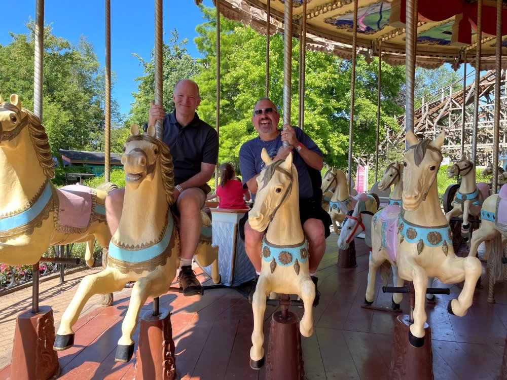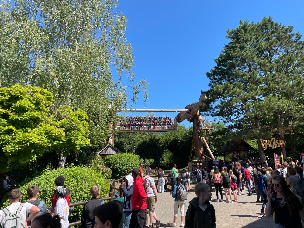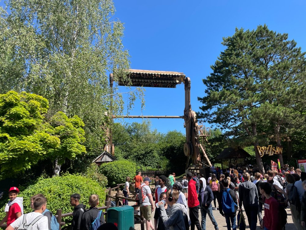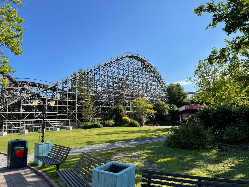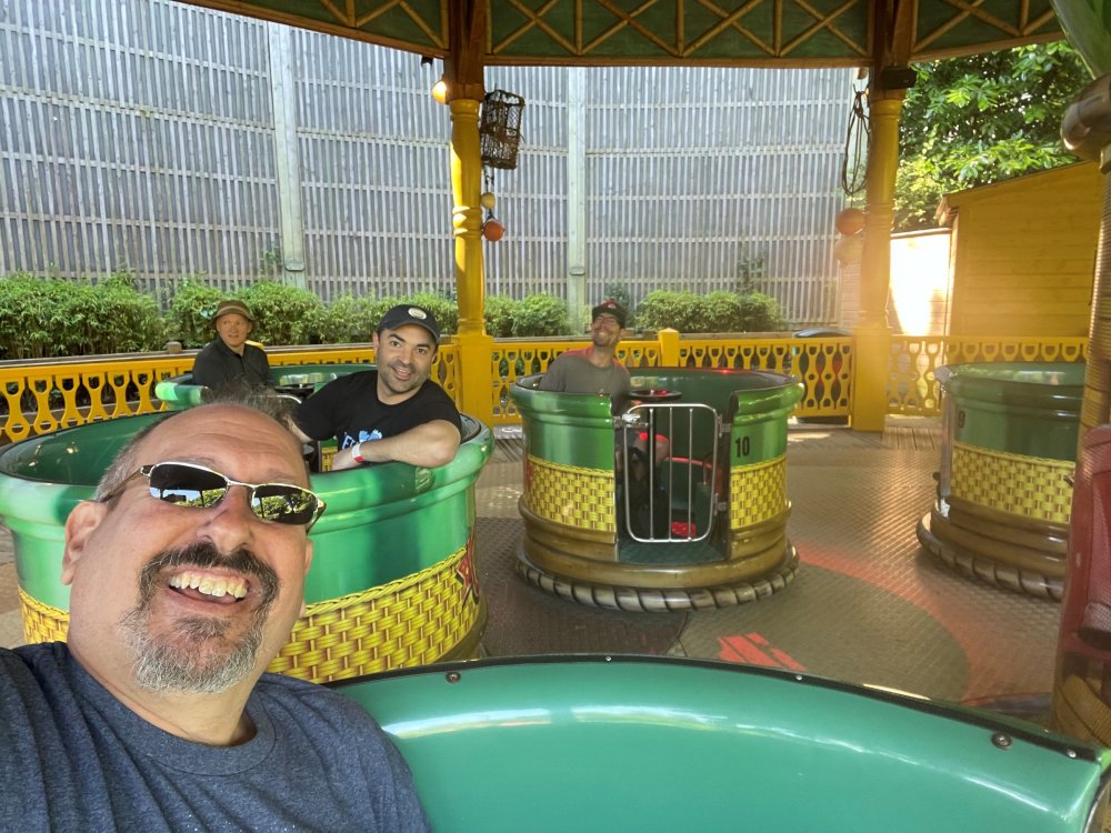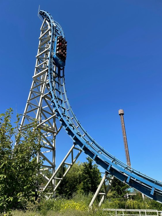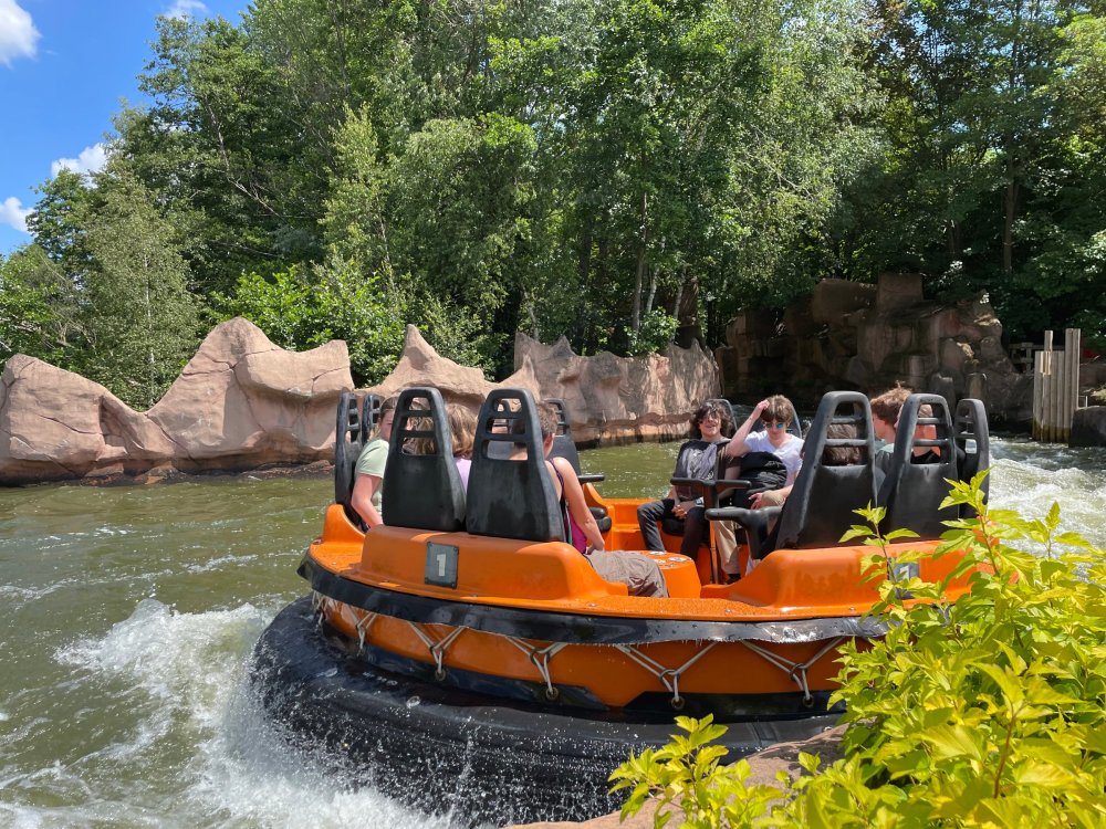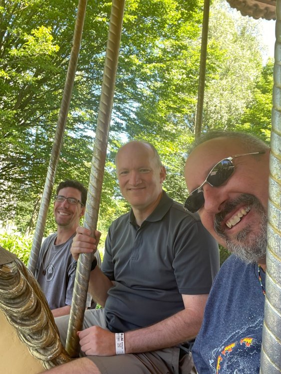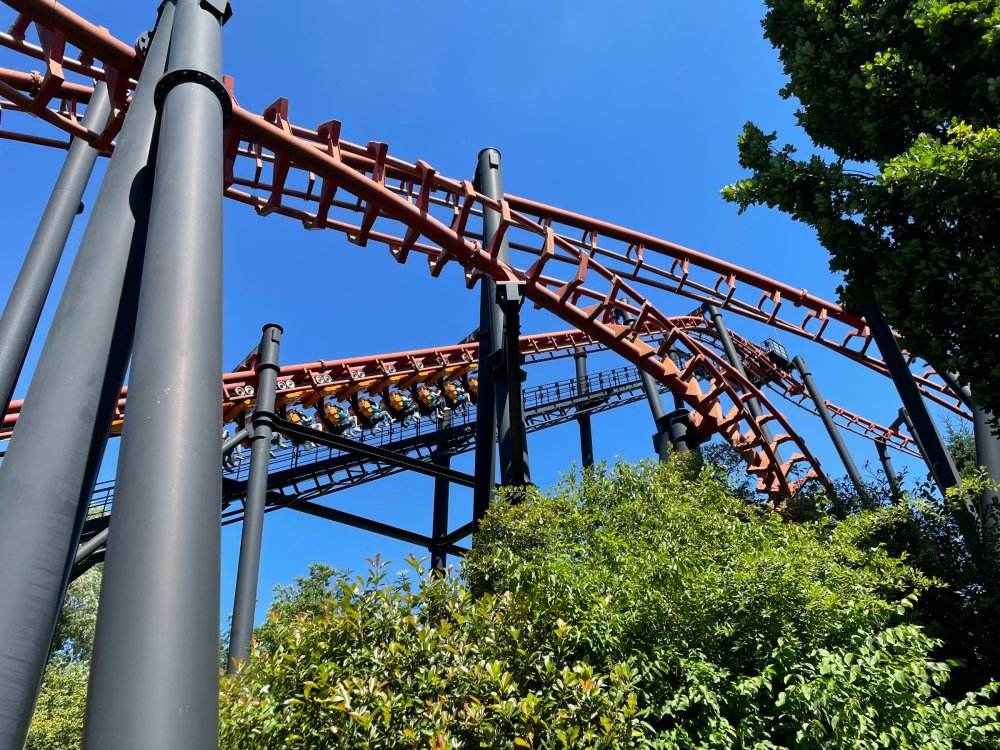 4. apologies for the weeks long break here. . . I know why I've been procrastinating in continuing on, but after talking thru it with my therapist, I'm ready to keep going now. Doesn't mean I'm not going to be sad, but there's lots more to see, ride, and share. . so continuing on. Day 8: Walibi Belgium, Part 1: we got up at the hotel, ate breakfast and checked out by 8:15. after loading the bus, we drove to nearby Walibi Belgium. we had stuff to do before park open: ERT on two coasters, and 1st rides of the day on their new Intamin, Kondaa. pulling into a mostly deserted parking lot. . tho it was a Tuesday, there were already buses in the parking lot, and it seemed it was a school holiday of some sort. very glad to be on this trip with TPR, because the extras - such as the skip the line passes. . it was certainly gonna help with what looked to be a busy day. not too crowded walking up - but it was still over an hour before park open. headed into the park, we see where we were going first: Loup-Garou, a kinda infamous Vekoma wooden coaster. Several of us had been talking and we reasoned that Anaconda at Walygator was vastly improved from what we had expected. . so perhaps it would be similar on this one? I was excited to see it regardless, as I love woodies (that's what he said!). . . but was prepared for 1 and done. I mean, it certainly wasn't warmed up 1st thing in the morning, so hoped for the best, but expected the worst. Still got excited to see it peeking up over the entrance plaza buildings tho. not as excited as I was to see the Park's Carousel front and center at the end of the entrance plaza tho, on the way to the coaster entrance i'd be back for you later! the coaster started testing as we approached it. apparently "Lupe Garou" means Warewolf in French . . so it had that "theming". . . in name and signage only, but hey, theming! it sure LOOKED pretty. . . .I felt my hopes slightly raise. Two hair-wolves (or are we both just Bears.. . Andrew???) ready to ride! they were running two trains during our ERT. . Green & Red. i really liked this train design. it was comfortable. . and you know what? it was a lot of fun, and other than one *really* funky transition that will realign your spine if you don't know it's coming and brace for it - which for some oddball reason is JUST before the photo snap (so everyone in the photos would be making a pained face. . LOL) - it was actually quite good. after the 1st ride, I knew when/where to brace, and I loved it. I think I rode it every cycle available during our ERT on it, which if I recall correctly was 1/2 hour, so I got 6 rides on it. (Pics courtesy of Elissa I think) I think most people on the trip liked it, and many of us kept riding until it was time to head to another coaster. walking from Loup Garou to our next stop - across the park - I snapped a few pics while walking (as usual). here's one of the spikes on Pulsar - one of only 4 Mack Powersplash operating in the world - at least until Aquaman at SFOT finally opens in 2023 ooo..a Top Spin? after Talocan the prior day, I was eager to try a "tamer" version. . so would come back for this later too. an Intamin drop tower, similar to Dungon Drop/Superman (Astroworld/SFStL) - which is now gone. . so wanted to ride this too. . . THRU THE TREES!!!. . that's Kondaa. . . wow, that looks amazing, but we weren't headed here yet. giant fries.. because. . . why not. Tho they didn't' entice me to want to eat any of them. we continued on into "Exotic World". . .. oooooooo kinky! down that way is Kondaa (angels singing). . . but not yet. Park Map THIS is where we were headed next for some quick ERT on the park's Gerstlauer Bobsled, Tiki-Waka really nice theming over here in "Exotic World" section of the park. and the Coaster itself really dominates this area, going around, and over, the walkways, and even interacting with the boat/river-raft ride next door. my turn! and pay attention, no voguing or dancing on this ride! Whee! as mentioned, it interacts with the river ride next to it.. really nice setting. after we all got a few rides on Tiki-Waka, it was time to head to the main event, as the park was opening up to the public. so we followed our Park Guide and Robb, over to the park's latest star attraction Kondaa if you've seen folks online complaining about the lack of theming around this Intamin coaster? yeah, they just haven't been on it. True, there's not a whole lot around the track (but really, what can you do to "theme" around a large, spread out Intamin coaster?). However the entrance plaza and surrounding area for the ride is beautifully done. I liked it so much, I bought yet another "ride" T-shirt - this time with the Kondaa dragon/logo on the front. the train design is so cool as well.. it's a dragon! yes, I waited to ride front row very "Aztek" looking stone design on the train. . . one of the better train designs I've seen. after we all got our opening of the day rides on Kondaa, we got our flash pass/skip the line bands, and then split off to enjoy the park for the day. a group of us - mostly the same folks I had hung out with at Phantasialand - headed to the 1st of the parks two EXCELLENT shooting dark rides. Challenge of Tutankhamon: full of pretty amazing animatronics, fire, and interactive targets. .this ride really is incredible. and the "guns" you shoot with are Ankhs: I think Andrew was shooting at a target and not me. . but who knows. . LOL oh, see that car in front of us? they are going to a "secret" bonus room. . that if the points in the car add up to high enough, you get an extra room with more fire effects and another scene! Oh yes, we immediately rode it again and really aimed, to make sure we got high enough points to do both versions. a photo op? Don't mind if I do. the park really was already starting to get busy, and we passed a LOT of people rushing past us towards the back of the park (where we were coming from Kondaa) and ignoring some of the flats. so when we pas