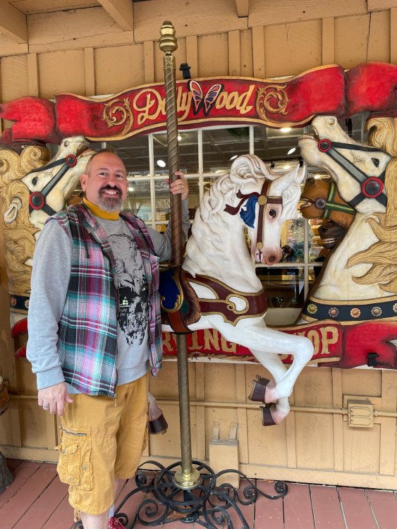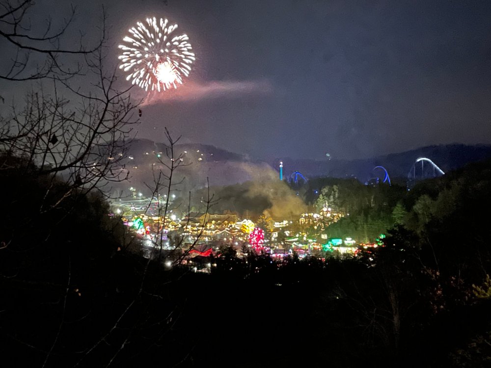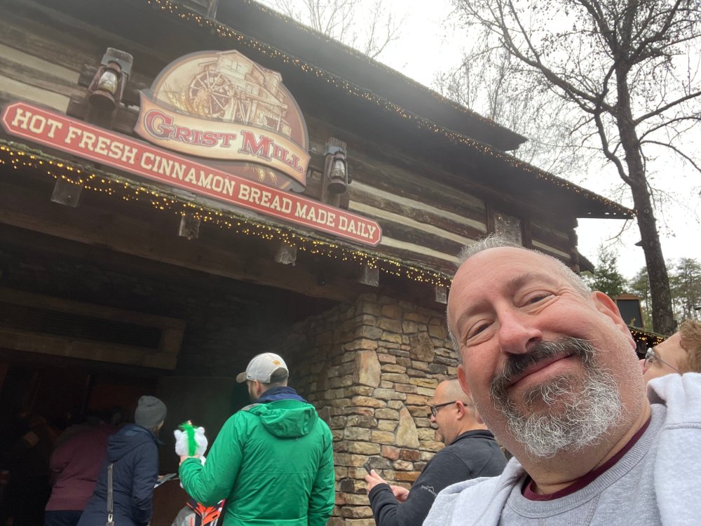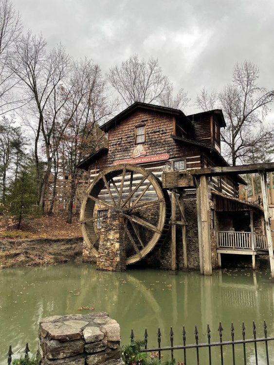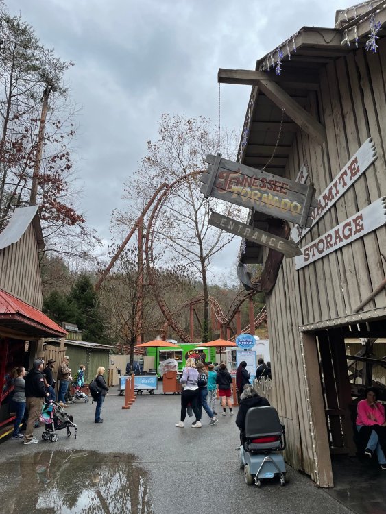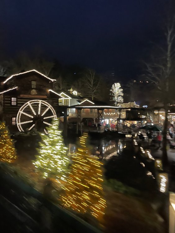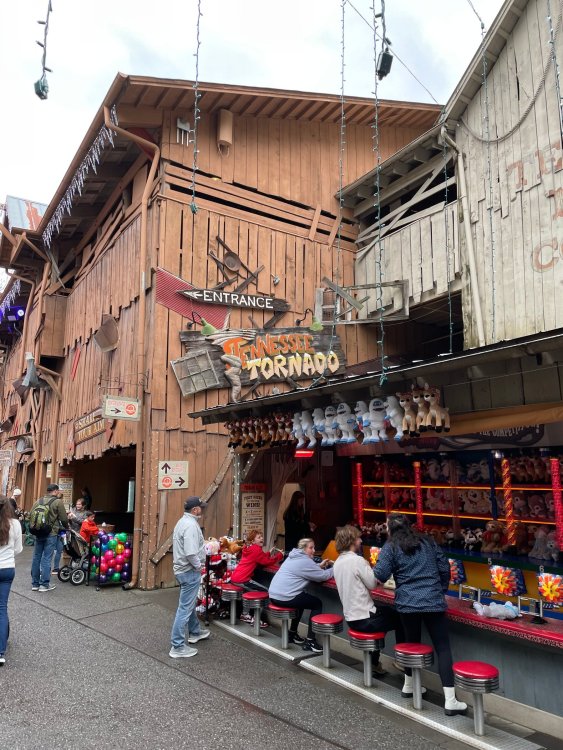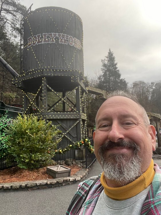 12. Nick and I had talked about going to Dollywood for years. it was so difficult to plan, as there's no "simple" way to just fly in, get to the park, and enjoy the area without renting a car (we were really hoping for shuttles avail. such as many of the Magic Kingdom hotels offer, or like you can get from Vegas airport to your hotels). And we never seemed to be able to get a good deal on flights and/or cars. . or if we did? we didn't have the vacation time. so after trying for a few years, we finally decided THIS year was the year we were going to go, and I secured tickets, and we booked a trip for Summer. . . and then he started having health issues. It became really clear that a Summer trip was simply not in the cards - certainly not before I went to Europe. So I reluctantly cancelled our bookings (rental car, flights, DreamMore resort) - but held onto the tix, planning that we'd go in Oct/Nov. well. . Nick ended up getting sick again, and passed before we ever got to make the trip. I was being urged by friends to go anyways, or at the very least, call Dollywood and explain what happened and see if they'd extend the tickets thru 2023 (all good suggestions, but I just couldn't imagine going by myself). while at Scream Hollow with friends in October, I mentioned to my dear friend Amy about this, and how sad I was that we never got to make the trip. And she said "we're gonna fix that" and I thought nothing more about it. cut to about a week later, and she emailed me confirmation of a flight into Nashville from Austin. I was like "what is this?" she had gotten all my info off of Facebook (note to folks. . go scrub your FB page of any info someone can use to do things in your name!! LOL. . I scrubbed mine right away), and booked a flight for myself, her, her ex, and her Daughter to fly out of Austin with me. We'd rent a car in Nashville, drive to a Air BnB cabin she rented, where we'd meet up with two other friends from Austin, and we'd have a fun weekend in Pigeon Forge. I wasn't sure how it was gonna go. . . but how could I say no? (and yes, I gave her $$ back for the flight, and towards the cabin rental). gonna be upfront and say: I will never be able to fully convey the amount of gratitude I have towards Amy (and Jamie who drove) for encouraging/forcing me to go. I can't say it wasn't rough in places. and I can't say I had a wonderful time, but I had as good a time as I possibly could, being there without Nick. hell in 95% of the pictures I'm smiling and that's purely due to those who were there with me. (the other 5% would be the Prozac). But I did love the place, and really would like to go back again in the future. and at the end of the day? the park was very hilly, the weather was drizzly one day, and freezing cold (upper 30's) the next - and Amy bitched and complained about both of them the whole time . . . so it really WAS like Nick was there with me, as that's exactly what he would have done the whole time. And then raved to anyone who would listen about what a great time he had on the trip. anyways. .that's my intro. . now onto the Trip report. Day 1 - leaving Austin at 6am, and arriving in Pigeon Forge, checking out DreamMore, and the last fireworks of the season. Pretty perky for so early (and Amy had been up for almost 24 hours at this point, as she worked well into the evening, then had to come up to Austin from San Antonio where they live to pick me up and we flew out of the Austin airport) Jamie and Londyn sat in the row in front of us. once in Nashville and got rental car, we were on our way to Pigeon Forge - approx. 3 1/2 hour drive. a couple of hours in tho, it was time for a bathroom break and breakfast sammiches for some. . so a stop at Buc-ees. and Santa Buc-ee was out! a pic? why of course! not sure why I took this, but I'm guessing the golden dome there. Is this Knoxville? yay! Pigeon Forge exit coming up. oo. .the Great Smoky Mountains are so beautiful. . even from a distance Dollywood THIS way! but first? we had to pull into WalMart to pick up Amy's online order - she was gonna stock the cabin up with breakfast food (spoiler, turns out none of us are really "breakfast" people - especially with Cinnamon Bread at Dollywood! So the breakfast bacon/eggs/cheese/milk/bread. . all ended up donated to the lady that came to clean the AirBnB when we checked out). this waterpark, Soaky Mountain (HA!!) looked fun. . but it was already December, and it was closed for the season. it was comfortable (mid 70's today, tho it did get much colder as the sun set later). had to snap a pic of this DISGUSTING thing I saw in WalMart when I popped in to grab some Little Debbie for the cabin. ewwwwww. . . who in the world would want this? we had planned to spend the afternoon in Gatlinberg, but had been made aware of a parade happening (thank you Franklin) and a quick check showed that mass of people (almost 90K was nothing we wanted to mess with). . so instead decided just to head to Pigeon Forge, and see if our cabin would be ready earlier than the supposed check in time at 3. multiple Mountain coasters line the main road as well as several others in the area that we passed while driving. also on the main drive in Pigeon Forge? at least 11 Go-Kart tracks, multiple arcades, multiple Mini Golfs, and a ton of tourist trap type attractions. it looked like a blast, and we planned to come back later (not realizing that the whole town really does shut down pretty early) this mountain coaster did look kinda fun, in that it used a chair lift to get to the top. tho Amy took one look at that and said "hell no" we're here in Pigeon Forge proper! Hatfield & McCoy dinner feud? I would think that would be HELL. . . and had no interest. (we were interested in Dolly's show, that has the horses, but the times didn't really work, and it was a little bit pricey. . . tho we kept that as an option for later anyways) eye-catching "touristy" architecture and a Titanic museum, of course. this Christmas village
