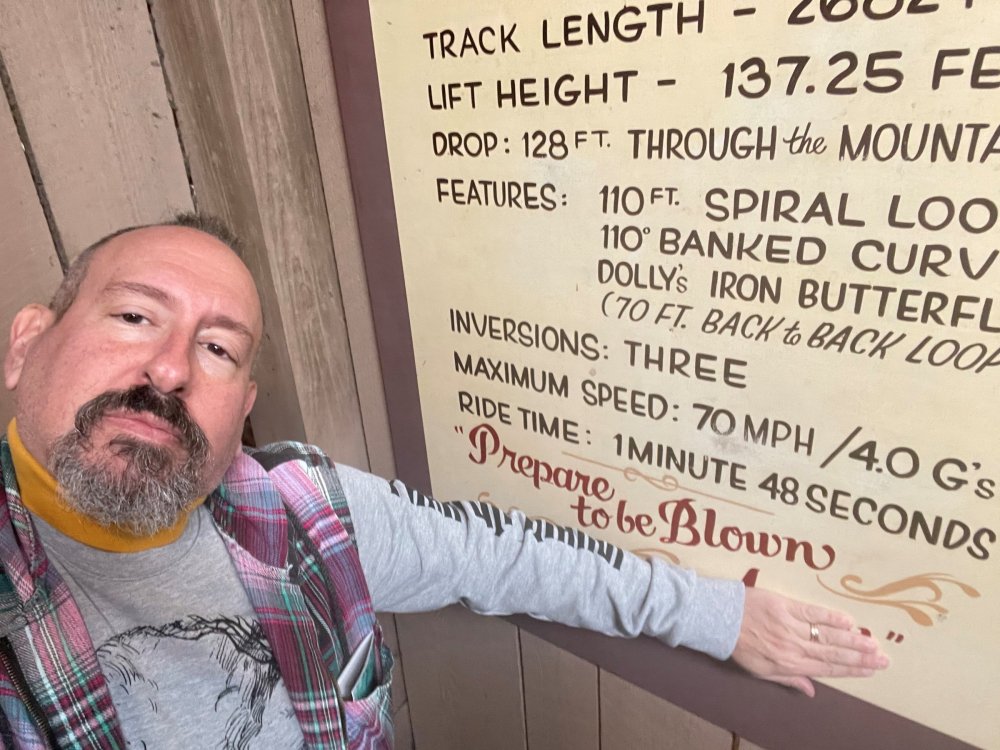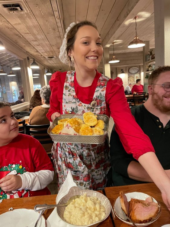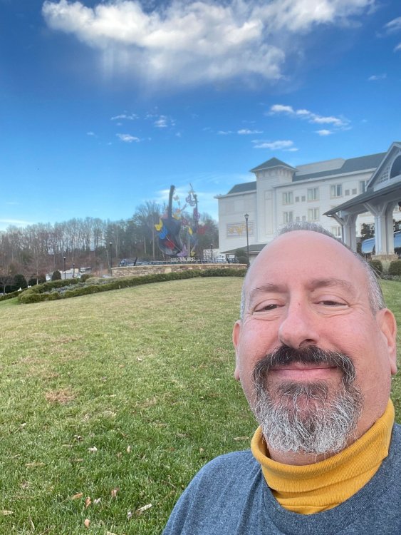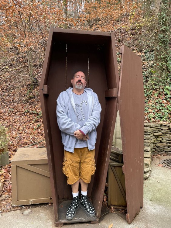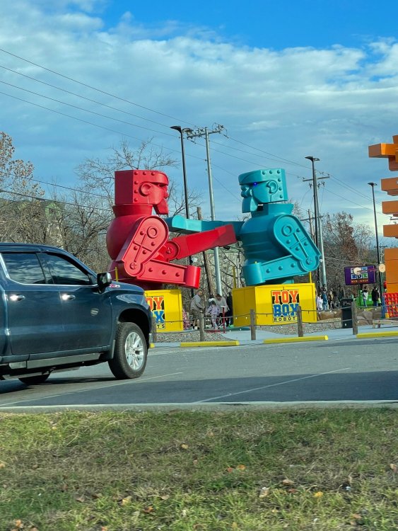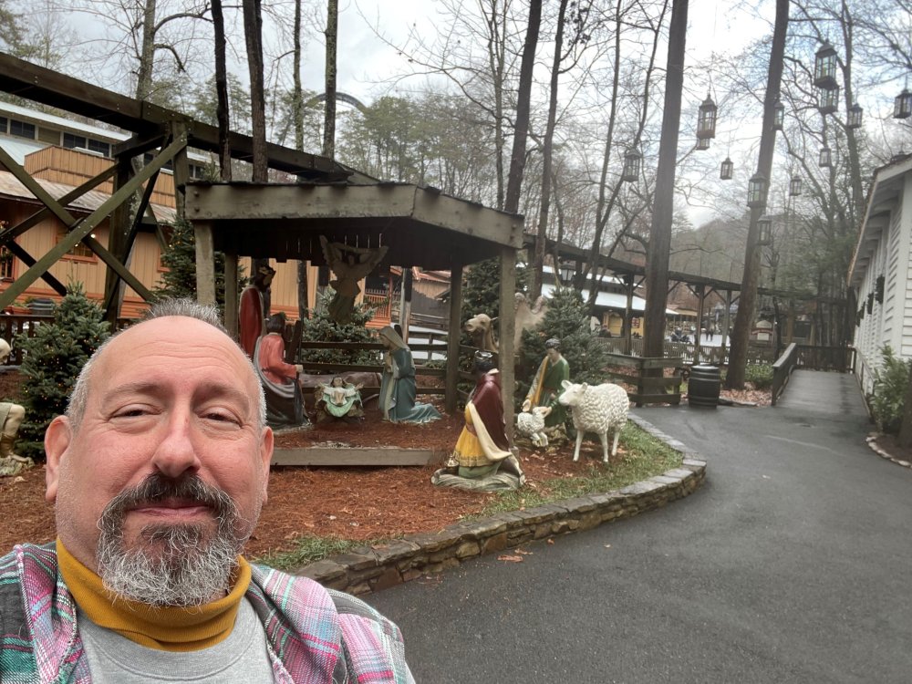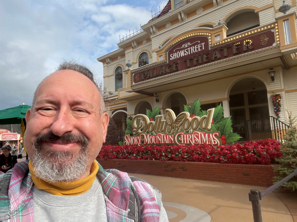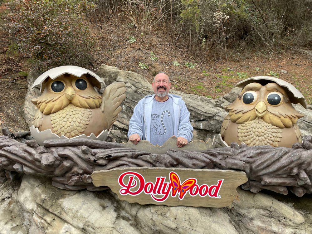 12. Nick and I had talked about going to Dollywood for years. it was so difficult to plan, as there's no "simple" way to just fly in, get to the park, and enjoy the area without renting a car (we were really hoping for shuttles avail. such as many of the Magic Kingdom hotels offer, or like you can get from Vegas airport to your hotels). And we never seemed to be able to get a good deal on flights and/or cars. . or if we did? we didn't have the vacation time. so after trying for a few years, we finally decided THIS year was the year we were going to go, and I secured tickets, and we booked a trip for Summer. . . and then he started having health issues. It became really clear that a Summer trip was simply not in the cards - certainly not before I went to Europe. So I reluctantly cancelled our bookings (rental car, flights, DreamMore resort) - but held onto the tix, planning that we'd go in Oct/Nov. well. . Nick ended up getting sick again, and passed before we ever got to make the trip. I was being urged by friends to go anyways, or at the very least, call Dollywood and explain what happened and see if they'd extend the tickets thru 2023 (all good suggestions, but I just couldn't imagine going by myself). while at Scream Hollow with friends in October, I mentioned to my dear friend Amy about this, and how sad I was that we never got to make the trip. And she said "we're gonna fix that" and I thought nothing more about it. cut to about a week later, and she emailed me confirmation of a flight into Nashville from Austin. I was like "what is this?" she had gotten all my info off of Facebook (note to folks. . go scrub your FB page of any info someone can use to do things in your name!! LOL. . I scrubbed mine right away), and booked a flight for myself, her, her ex, and her Daughter to fly out of Austin with me. We'd rent a car in Nashville, drive to a Air BnB cabin she rented, where we'd meet up with two other friends from Austin, and we'd have a fun weekend in Pigeon Forge. I wasn't sure how it was gonna go. . . but how could I say no? (and yes, I gave her $$ back for the flight, and towards the cabin rental). gonna be upfront and say: I will never be able to fully convey the amount of gratitude I have towards Amy (and Jamie who drove) for encouraging/forcing me to go. I can't say it wasn't rough in places. and I can't say I had a wonderful time, but I had as good a time as I possibly could, being there without Nick. hell in 95% of the pictures I'm smiling and that's purely due to those who were there with me. (the other 5% would be the Prozac). But I did love the place, and really would like to go back again in the future. and at the end of the day? the park was very hilly, the weather was drizzly one day, and freezing cold (upper 30's) the next - and Amy bitched and complained about both of them the whole time . . . so it really WAS like Nick was there with me, as that's exactly what he would have done the whole time. And then raved to anyone who would listen about what a great time he had on the trip. anyways. .that's my intro. . now onto the Trip report. Day 1 - leaving Austin at 6am, and arriving in Pigeon Forge, checking out DreamMore, and the last fireworks of the season. Pretty perky for so early (and Amy had been up for almost 24 hours at this point, as she worked well into the evening, then had to come up to Austin from San Antonio where they live to pick me up and we flew out of the Austin airport) Jamie and Londyn sat in the row in front of us. once in Nashville and got rental car, we were on our way to Pigeon Forge - approx. 3 1/2 hour drive. a couple of hours in tho, it was time for a bathroom break and breakfast sammiches for some. . so a stop at Buc-ees. and Santa Buc-ee was out! a pic? why of course! not sure why I took this, but I'm guessing the golden dome there. Is this Knoxville? yay! Pigeon Forge exit coming up. oo. .the Great Smoky Mountains are so beautiful. . even from a distance Dollywood THIS way! but first? we had to pull into WalMart to pick up Amy's online order - she was gonna stock the cabin up with breakfast food (spoiler, turns out none of us are really "breakfast" people - especially with Cinnamon Bread at Dollywood! So the breakfast bacon/eggs/cheese/milk/bread. . all ended up donated to the lady that came to clean the AirBnB when we checked out). this waterpark, Soaky Mountain (HA!!) looked fun. . but it was already December, and it was closed for the season. it was comfortable (mid 70's today, tho it did get much colder as the sun set later). had to snap a pic of this DISGUSTING thing I saw in WalMart when I popped in to grab some Little Debbie for the cabin. ewwwwww. . . who in the world would want this? we had planned to spend the afternoon in Gatlinberg, but had been made aware of a parade happening (thank you Franklin) and a quick check showed that mass of people (almost 90K was nothing we wanted to mess with). . so instead decided just to head to Pigeon Forge, and see if our cabin would be ready earlier than the supposed check in time at 3. multiple Mountain coasters line the main road as well as several others in the area that we passed while driving. also on the main drive in Pigeon Forge? at least 11 Go-Kart tracks, multiple arcades, multiple Mini Golfs, and a ton of tourist trap type attractions. it looked like a blast, and we planned to come back later (not realizing that the whole town really does shut down pretty early) this mountain coaster did look kinda fun, in that it used a chair lift to get to the top. tho Amy took one look at that and said "hell no" we're here in Pigeon Forge proper! Hatfield & McCoy dinner feud? I would think that would be HELL. . . and had no interest. (we were interested in Dolly's show, that has the horses, but the times didn't really work, and it was a little bit pricey. . . tho we kept that as an option for later anyways) eye-catching "touristy" architecture and a Titanic museum, of course. this Christmas village