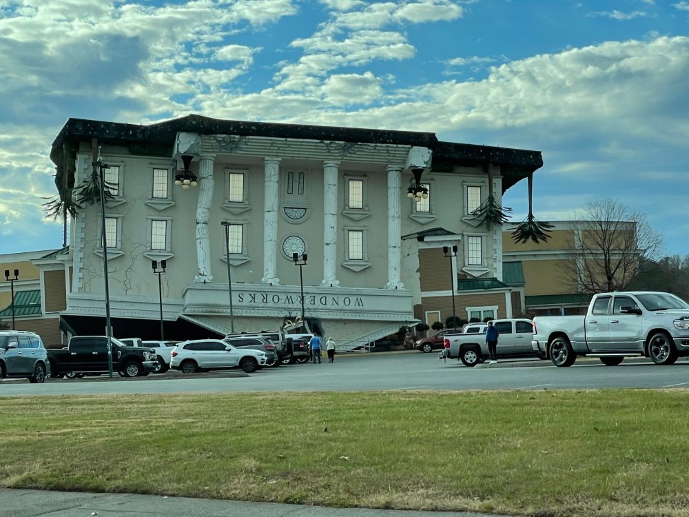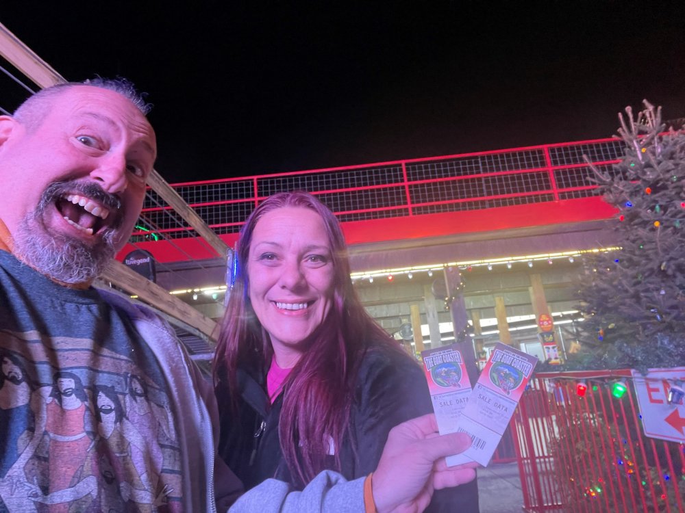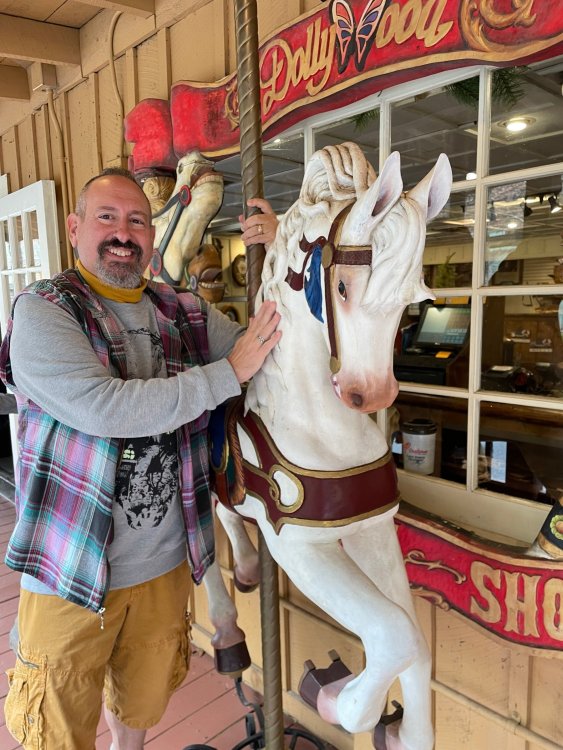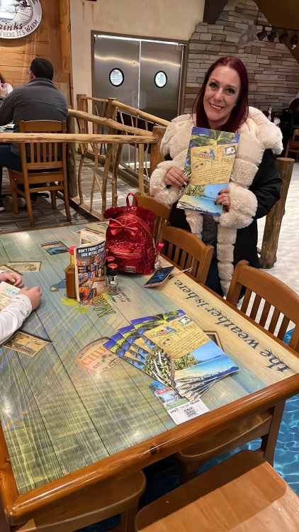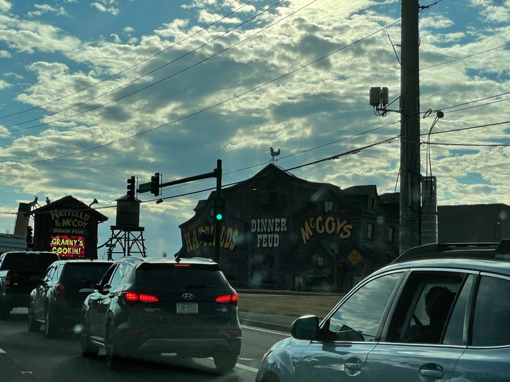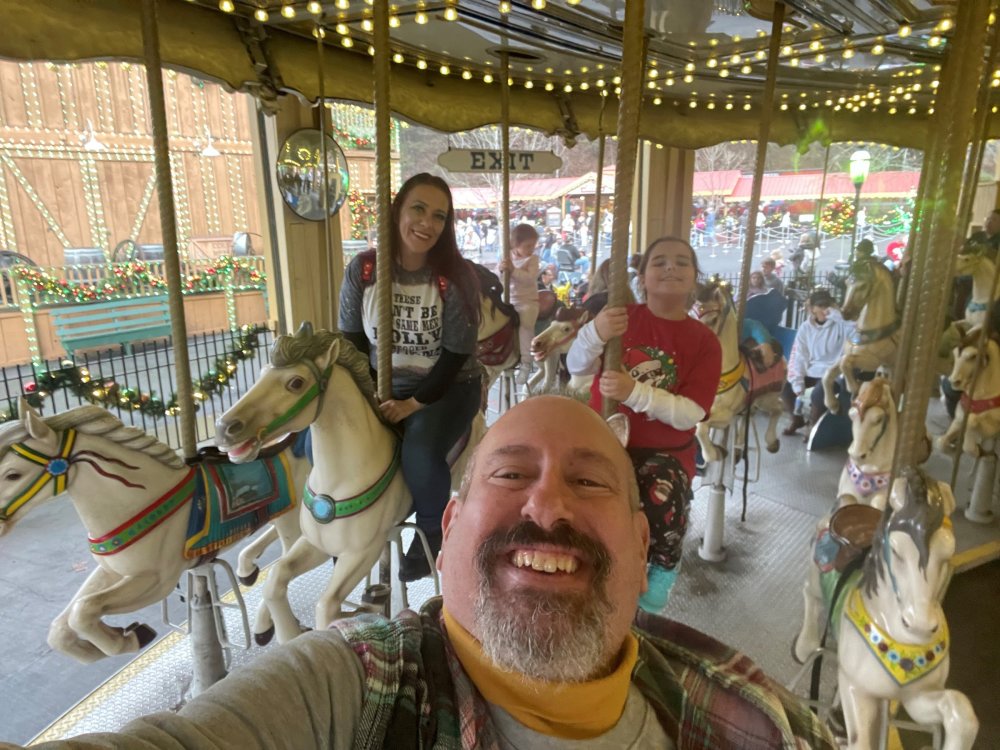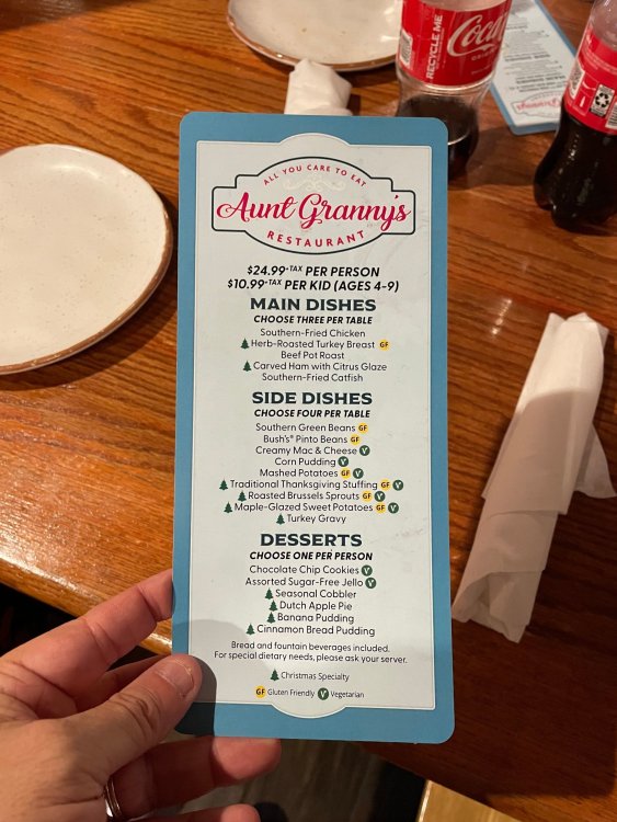 12. Nick and I had talked about going to Dollywood for years. it was so difficult to plan, as there's no "simple" way to just fly in, get to the park, and enjoy the area without renting a car (we were really hoping for shuttles avail. such as many of the Magic Kingdom hotels offer, or like you can get from Vegas airport to your hotels). And we never seemed to be able to get a good deal on flights and/or cars. . or if we did? we didn't have the vacation time. so after trying for a few years, we finally decided THIS year was the year we were going to go, and I secured tickets, and we booked a trip for Summer. . . and then he started having health issues. It became really clear that a Summer trip was simply not in the cards - certainly not before I went to Europe. So I reluctantly cancelled our bookings (rental car, flights, DreamMore resort) - but held onto the tix, planning that we'd go in Oct/Nov. well. . Nick ended up getting sick again, and passed before we ever got to make the trip. I was being urged by friends to go anyways, or at the very least, call Dollywood and explain what happened and see if they'd extend the tickets thru 2023 (all good suggestions, but I just couldn't imagine going by myself). while at Scream Hollow with friends in October, I mentioned to my dear friend Amy about this, and how sad I was that we never got to make the trip. And she said "we're gonna fix that" and I thought nothing more about it. cut to about a week later, and she emailed me confirmation of a flight into Nashville from Austin. I was like "what is this?" she had gotten all my info off of Facebook (note to folks. . go scrub your FB page of any info someone can use to do things in your name!! LOL. . I scrubbed mine right away), and booked a flight for myself, her, her ex, and her Daughter to fly out of Austin with me. We'd rent a car in Nashville, drive to a Air BnB cabin she rented, where we'd meet up with two other friends from Austin, and we'd have a fun weekend in Pigeon Forge. I wasn't sure how it was gonna go. . . but how could I say no? (and yes, I gave her $$ back for the flight, and towards the cabin rental). gonna be upfront and say: I will never be able to fully convey the amount of gratitude I have towards Amy (and Jamie who drove) for encouraging/forcing me to go. I can't say it wasn't rough in places. and I can't say I had a wonderful time, but I had as good a time as I possibly could, being there without Nick. hell in 95% of the pictures I'm smiling and that's purely due to those who were there with me. (the other 5% would be the Prozac). But I did love the place, and really would like to go back again in the future. and at the end of the day? the park was very hilly, the weather was drizzly one day, and freezing cold (upper 30's) the next - and Amy bitched and complained about both of them the whole time . . . so it really WAS like Nick was there with me, as that's exactly what he would have done the whole time. And then raved to anyone who would listen about what a great time he had on the trip. anyways. .that's my intro. . now onto the Trip report. Day 1 - leaving Austin at 6am, and arriving in Pigeon Forge, checking out DreamMore, and the last fireworks of the season. Pretty perky for so early (and Amy had been up for almost 24 hours at this point, as she worked well into the evening, then had to come up to Austin from San Antonio where they live to pick me up and we flew out of the Austin airport) Jamie and Londyn sat in the row in front of us. once in Nashville and got rental car, we were on our way to Pigeon Forge - approx. 3 1/2 hour drive. a couple of hours in tho, it was time for a bathroom break and breakfast sammiches for some. . so a stop at Buc-ees. and Santa Buc-ee was out! a pic? why of course! not sure why I took this, but I'm guessing the golden dome there. Is this Knoxville? yay! Pigeon Forge exit coming up. oo. .the Great Smoky Mountains are so beautiful. . even from a distance Dollywood THIS way! but first? we had to pull into WalMart to pick up Amy's online order - she was gonna stock the cabin up with breakfast food (spoiler, turns out none of us are really "breakfast" people - especially with Cinnamon Bread at Dollywood! So the breakfast bacon/eggs/cheese/milk/bread. . all ended up donated to the lady that came to clean the AirBnB when we checked out). this waterpark, Soaky Mountain (HA!!) looked fun. . but it was already December, and it was closed for the season. it was comfortable (mid 70's today, tho it did get much colder as the sun set later). had to snap a pic of this DISGUSTING thing I saw in WalMart when I popped in to grab some Little Debbie for the cabin. ewwwwww. . . who in the world would want this? we had planned to spend the afternoon in Gatlinberg, but had been made aware of a parade happening (thank you Franklin) and a quick check showed that mass of people (almost 90K was nothing we wanted to mess with). . so instead decided just to head to Pigeon Forge, and see if our cabin would be ready earlier than the supposed check in time at 3. multiple Mountain coasters line the main road as well as several others in the area that we passed while driving. also on the main drive in Pigeon Forge? at least 11 Go-Kart tracks, multiple arcades, multiple Mini Golfs, and a ton of tourist trap type attractions. it looked like a blast, and we planned to come back later (not realizing that the whole town really does shut down pretty early) this mountain coaster did look kinda fun, in that it used a chair lift to get to the top. tho Amy took one look at that and said "hell no" we're here in Pigeon Forge proper! Hatfield & McCoy dinner feud? I would think that would be HELL. . . and had no interest. (we were interested in Dolly's show, that has the horses, but the times didn't really work, and it was a little bit pricey. . . tho we kept that as an option for later anyways) eye-catching "touristy" architecture and a Titanic museum, of course. this Christmas village