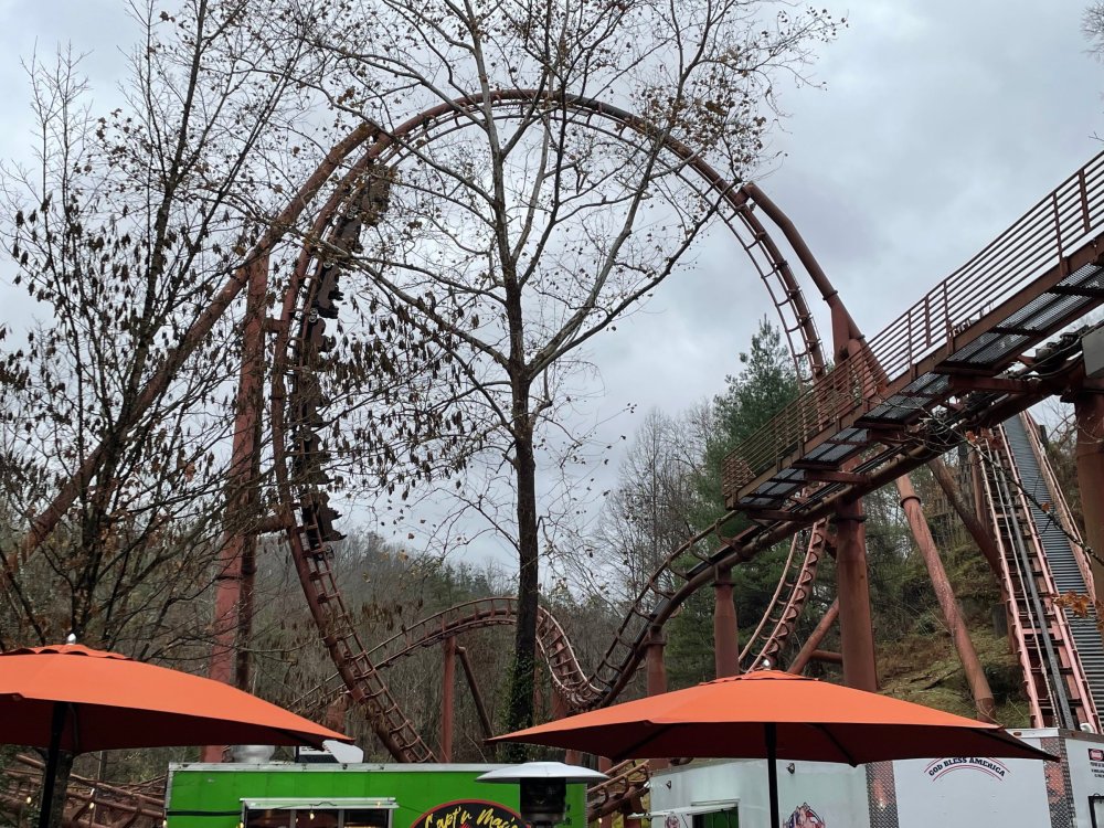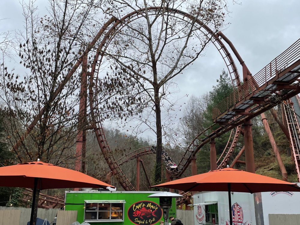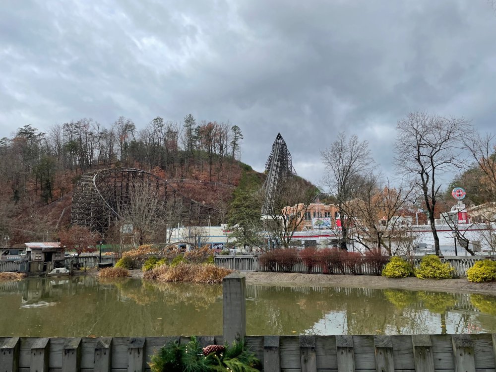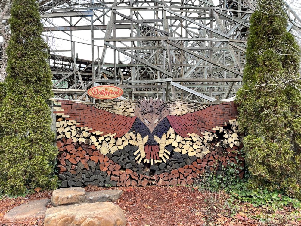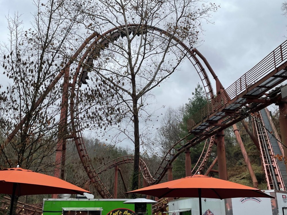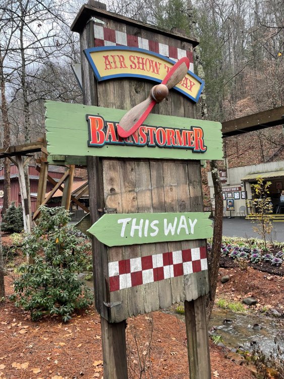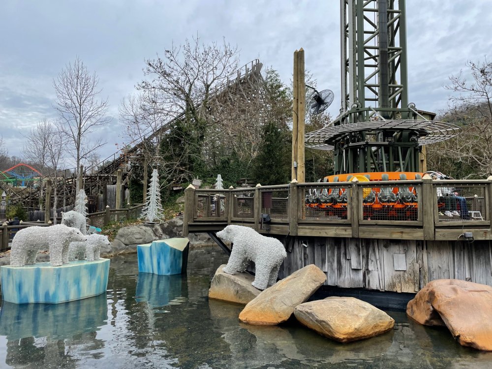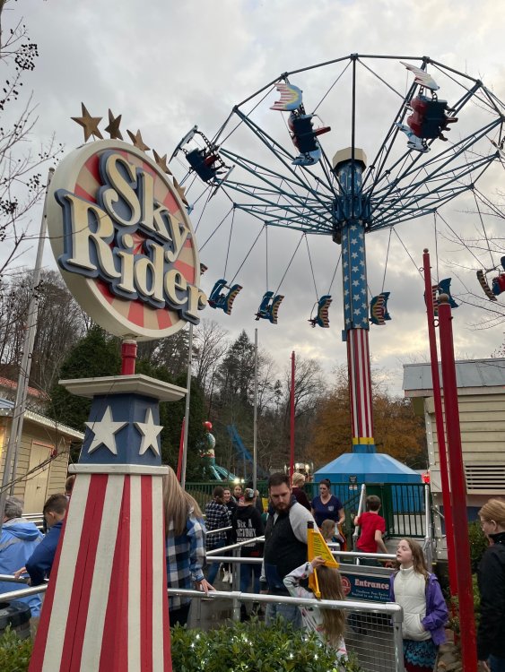 10. Day 1: part 1 of 2: after an exhausting travel day we all slept a little later than we had intended (Xander & Joseph arrived well past 1am). . so we didn't actually make it to Dollywood for opening at 11. it had rained/drizzled most of the night, starting just after we went to bed. . so we weren't in a big rush to get out the door, thinking it would keep the crowd away. by 11:30, the drizzle had stopped, and we climbed into the car and took the 2 minute drive to Dollywood. luckily it wasn't too cold today (that would be tomorrow), just a little bit nippy . . but the rain cooperated, and stayed away the rest of the day. *absolutely* worth the extra $20 for Preferred parking. the preferred lot is way up front (past the handicapped lots) and gives fantastic views of the coasters as it's up on a hill. the view from our parking spot: the new Big Bear Mountain coaster under construction (orange track), with Dragonflier (green track) | Lightning Rod across the way. . . erm. . . haven't seen it testing (uh oh) walking from the Preferred lot to the separate entrance - yeah. . that's another perk of Preferred parking. A separate entrance gate (and dedicated exit lanes for later). worth every penny. fantastic view of Thunderhead, Wild Eagle, and Dropzone (hiding behind Thunderhead) the path down to the Preferred Parking entrance offers a lovely view of Lightning Rod (and down in the distance at the bottom, is where the trams drop off at the main entrance) I'm here. I'm at Dollywood. without Nick, that makes me sad. . but I'm here, and that would make him happy that I came. a nice shot of the "quiet" entrance/exit to the park from the Preferred lot. you enter from the left of the Emporium (near the height check station). . up ahead is the main entrance to the park, if we had parked in a regular lot and taken the tram in. not super crowded - recall, it had just recently stopped raining - but not a bad crowd considering the forecast for the day. and quiet enough to be able to get some great pics, that will always give me fond memories. they really go all out for Christmas Season (as I had suspected, and always heard). I was looking forwards to seeing everything lit up at night! small stages set up thruout the park with performers. .these guys were playing some bluegrass near the main gates. it was really nice to just come across a small stage with entertainment all over the park. that big building is the Dolly Parton Museum, which unfortunately was closed for renovation. oh well. an excuse to come back to walk thru! this pathway also leads towards Lightning Rod - but the app said it wasn't operating (yet) butterflies *everywhere*. . . it really is such a lovely park. one of the main squares of the park - tho this one *might* be THE main square, as it's right outside the big theater that hosts the ~1hour show, Smoky Mountain Christmas. and a view from that area, across the water for a great photo op of Lightning Rod. since our #1 choice for the day was down, we headed thru the park towards Blazing Fury/Tennessee Tornado area. . . but this was the first ride we came across. nobody else wanted to ride (despite the fact, we've ALL ridden the "smaller" version at SWSA. . .LOL). So they all went to go watch the glass blower, and look at the ornaments, and I headed up the steep hill to Barnstormer for 1st ride at Dollywood. so well themed. . . and I really liked there was a kid's playground area - similarly themed - right next to the "big" ride. Something for the kids to do if too small/too scared to ride the big rides. (this was something also seen over by Thunderhead - where the kiddie coaster is next door, and over by Firechaser Express - with a kiddie playground right next to the entrance) my ride done, I went back to meet them at the glass blowers. very cool. and can't pass up a photo op. . .especially for a Carousel, with a wonderful set up. I can be so far down. . but put me near a Carousel or Carousel Horse? Instant happiness. yeah, yeah. . I'm Jewish. and the park was VERY "Jebus-y". . but I mean, I'm here at Christmas. .and love seeing it. the lanterns hanging in the trees are GORGEOUS at night. such a simple thing, but so effective. ohhh. . I should have expected this (especially with the coaster in the park), but how neat to come across a Bald Eagle Sanctuary, in the park. The entire side of the mountain is netted off to protect them, and there were at least a dozen Bald Eagles - all rescues / recovering from injuries I believe - in the sanctuary area perched on trees, posts, or on the ground. across the way were some polar bears. LOL. .not really sure why. . they were in a few places in the park. what I found so amusing about them? Tho they looked pretty decent in the daytime? at night, they disappear and turn into just lighted blobs. lt was hysterical how they looked like Aliens from "Attack the Block" in the evening. . couldn't even tell what the heck they were supposed to be. near the Bald Eagle Sanctuary, is a row of Birds of Prey as well. I loved how close you could get to them, and the birds seemed very used to people being around, and actually "posed" for pics. It was great! (and the park covers the birds in the evening to let them rest, and protect them from the cold. So make sure you see the birds early in the day). had we actually made it to our first coaster? well, sort of. . I mean, Blazing Fury IS a coaster - even if it's mostly lift hill, with just a couple of small drops. but it was so bizarre and F'd up that I loved the hell out of it. (ended up riding it 3 times during the trip). LOL.. the first time as we exited, i asked - so where was the fire? HAHAHAHA.. I had missed all the instances of "fire" other than the one section with the LED lit firehose. so of course had to ride again so could see the theme of the dang ride. those Mannequins. . . loved it. NOTED! (and adorable) on the way to Tennessee Tornado. most interesting thing to me over here was the game to the far right 
