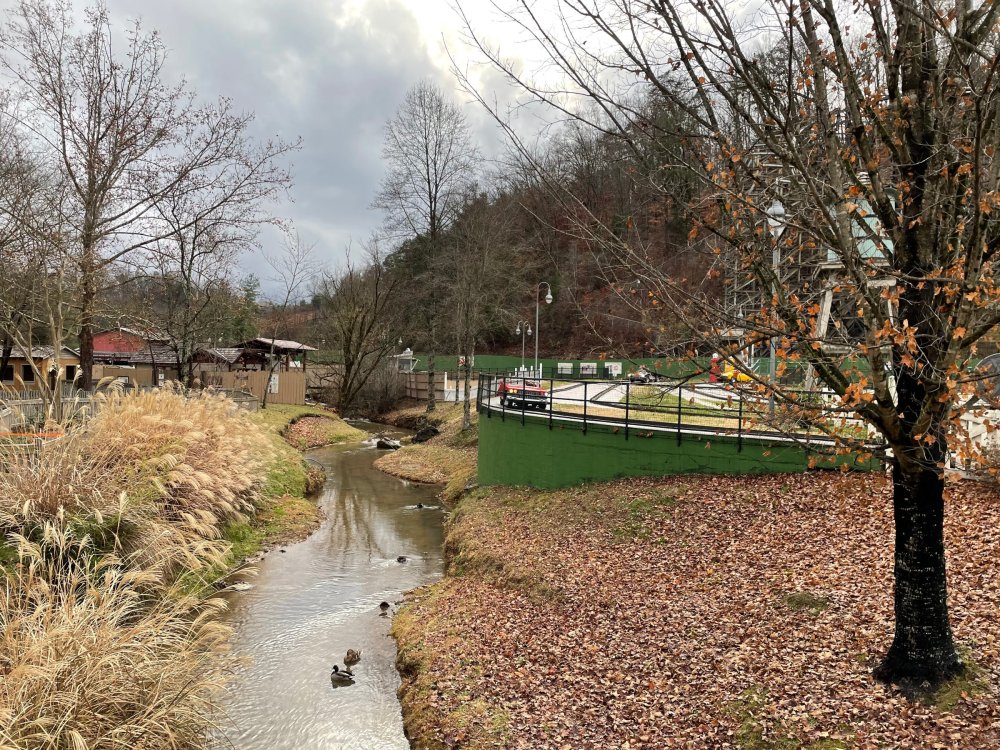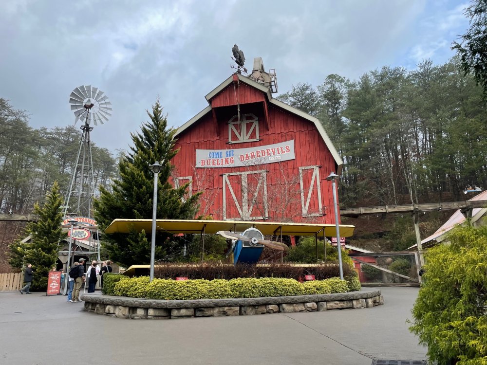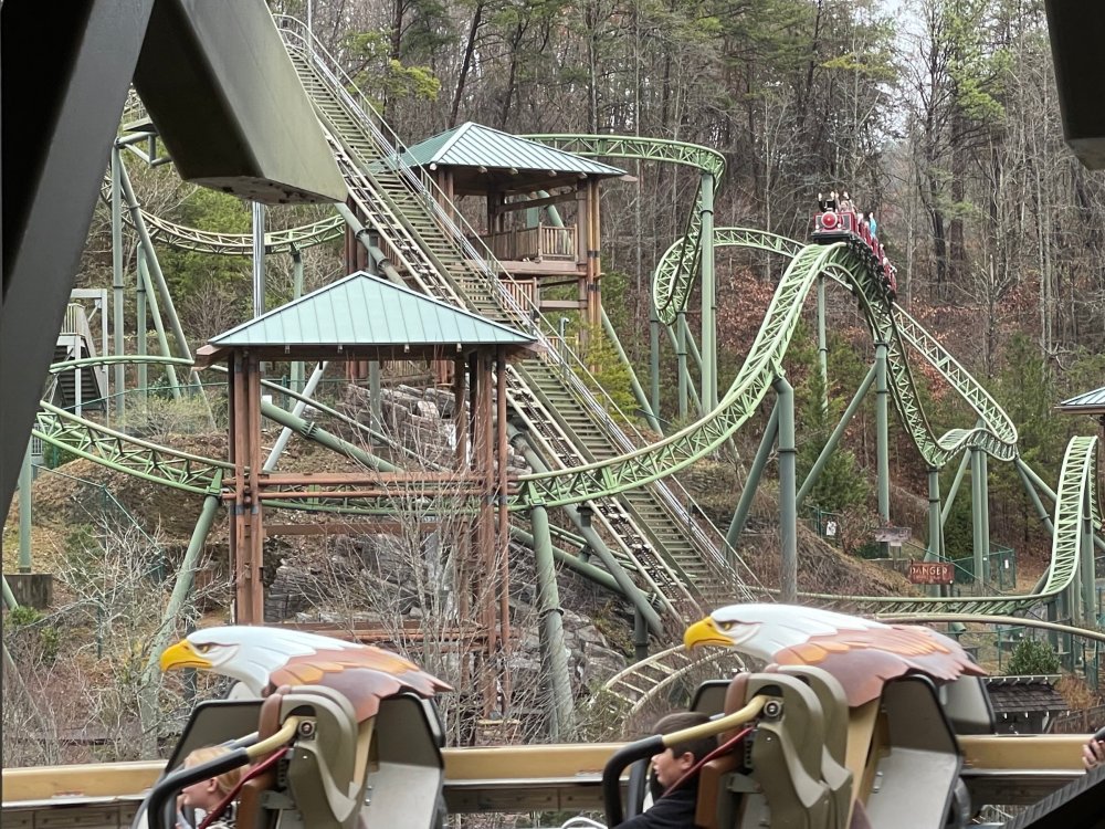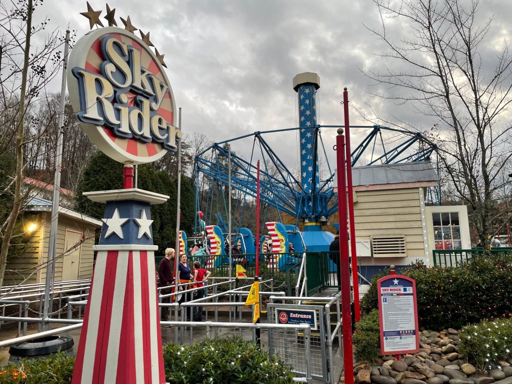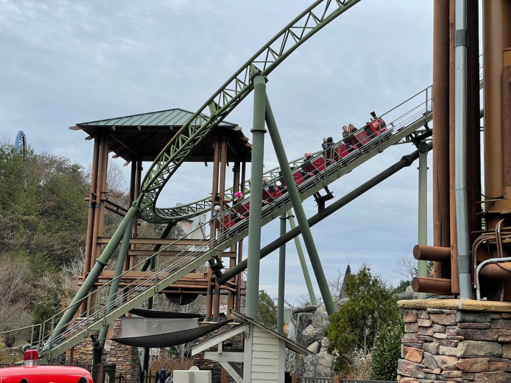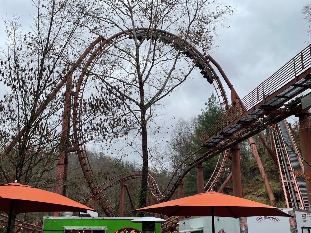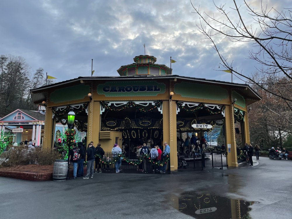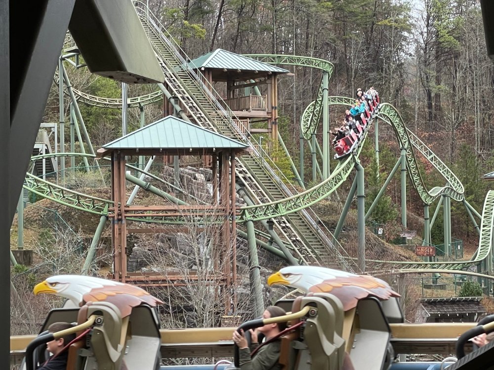10. Day 1: part 1 of 2: after an exhausting travel day we all slept a little later than we had intended (Xander & Joseph arrived well past 1am). . so we didn't actually make it to Dollywood for opening at 11. it had rained/drizzled most of the night, starting just after we went to bed. . so we weren't in a big rush to get out the door, thinking it would keep the crowd away. by 11:30, the drizzle had stopped, and we climbed into the car and took the 2 minute drive to Dollywood. luckily it wasn't too cold today (that would be tomorrow), just a little bit nippy . . but the rain cooperated, and stayed away the rest of the day. *absolutely* worth the extra $20 for Preferred parking. the preferred lot is way up front (past the handicapped lots) and gives fantastic views of the coasters as it's up on a hill. the view from our parking spot: the new Big Bear Mountain coaster under construction (orange track), with Dragonflier (green track) | Lightning Rod across the way. . . erm. . . haven't seen it testing (uh oh) walking from the Preferred lot to the separate entrance - yeah. . that's another perk of Preferred parking. A separate entrance gate (and dedicated exit lanes for later). worth every penny. fantastic view of Thunderhead, Wild Eagle, and Dropzone (hiding behind Thunderhead) the path down to the Preferred Parking entrance offers a lovely view of Lightning Rod (and down in the distance at the bottom, is where the trams drop off at the main entrance) I'm here. I'm at Dollywood. without Nick, that makes me sad. . but I'm here, and that would make him happy that I came. a nice shot of the "quiet" entrance/exit to the park from the Preferred lot. you enter from the left of the Emporium (near the height check station). . up ahead is the main entrance to the park, if we had parked in a regular lot and taken the tram in. not super crowded - recall, it had just recently stopped raining - but not a bad crowd considering the forecast for the day. and quiet enough to be able to get some great pics, that will always give me fond memories. they really go all out for Christmas Season (as I had suspected, and always heard). I was looking forwards to seeing everything lit up at night! small stages set up thruout the park with performers. .these guys were playing some bluegrass near the main gates. it was really nice to just come across a small stage with entertainment all over the park. that big building is the Dolly Parton Museum, which unfortunately was closed for renovation. oh well. an excuse to come back to walk thru! this pathway also leads towards Lightning Rod - but the app said it wasn't operating (yet) butterflies *everywhere*. . . it really is such a lovely park. one of the main squares of the park - tho this one *might* be THE main square, as it's right outside the big theater that hosts the ~1hour show, Smoky Mountain Christmas. and a view from that area, across the water for a great photo op of Lightning Rod. since our #1 choice for the day was down, we headed thru the park towards Blazing Fury/Tennessee Tornado area. . . but this was the first ride we came across. nobody else wanted to ride (despite the fact, we've ALL ridden the "smaller" version at SWSA. . .LOL). So they all went to go watch the glass blower, and look at the ornaments, and I headed up the steep hill to Barnstormer for 1st ride at Dollywood. so well themed. . . and I really liked there was a kid's playground area - similarly themed - right next to the "big" ride. Something for the kids to do if too small/too scared to ride the big rides. (this was something also seen over by Thunderhead - where the kiddie coaster is next door, and over by Firechaser Express - with a kiddie playground right next to the entrance) my ride done, I went back to meet them at the glass blowers. very cool. and can't pass up a photo op. . .especially for a Carousel, with a wonderful set up. I can be so far down. . but put me near a Carousel or Carousel Horse? Instant happiness. yeah, yeah. . I'm Jewish. and the park was VERY "Jebus-y". . but I mean, I'm here at Christmas. .and love seeing it. the lanterns hanging in the trees are GORGEOUS at night. such a simple thing, but so effective. ohhh. . I should have expected this (especially with the coaster in the park), but how neat to come across a Bald Eagle Sanctuary, in the park. The entire side of the mountain is netted off to protect them, and there were at least a dozen Bald Eagles - all rescues / recovering from injuries I believe - in the sanctuary area perched on trees, posts, or on the ground. across the way were some polar bears. LOL. .not really sure why. . they were in a few places in the park. what I found so amusing about them? Tho they looked pretty decent in the daytime? at night, they disappear and turn into just lighted blobs. lt was hysterical how they looked like Aliens from "Attack the Block" in the evening. . couldn't even tell what the heck they were supposed to be. near the Bald Eagle Sanctuary, is a row of Birds of Prey as well. I loved how close you could get to them, and the birds seemed very used to people being around, and actually "posed" for pics. It was great! (and the park covers the birds in the evening to let them rest, and protect them from the cold. So make sure you see the birds early in the day). had we actually made it to our first coaster? well, sort of. . I mean, Blazing Fury IS a coaster - even if it's mostly lift hill, with just a couple of small drops. but it was so bizarre and F'd up that I loved the hell out of it. (ended up riding it 3 times during the trip). LOL.. the first time as we exited, i asked - so where was the fire? HAHAHAHA.. I had missed all the instances of "fire" other than the one section with the LED lit firehose. so of course had to ride again so could see the theme of the dang ride. those Mannequins. . . loved it. NOTED! (and adorable) on the way to Tennessee Tornado. most interesting thing to me over here was the game to the far right 