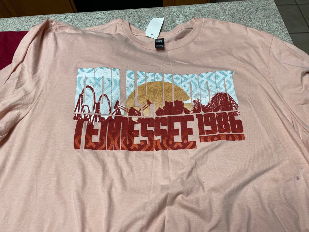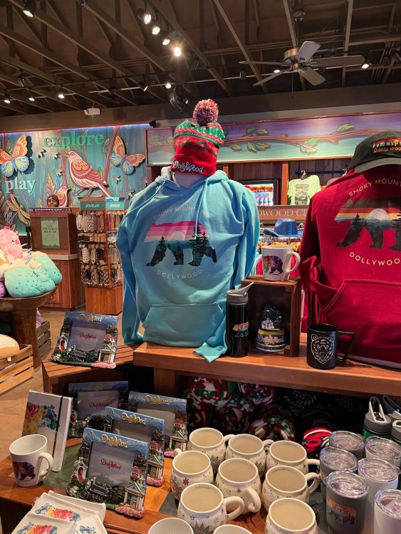 24. had a really great time at Dollywood (2 days in the park - tho one we cut short due to how cold it was). amazing rental cabin with a view of the park (!). . we watched the fireworks from the balconies on Friday night, since our first day was Sat. We ate dinner at the Island - MargaritaVille one night), and tho didn't do much in Pigeon Forge proper (just a mountain coaster and the Brazillian Steakhouse). . I somehow STILL managed to take over 500 pictures. sheesh. so yeah. . my trip report will take me a bit to get up. Luckily, JimmyBo's is so damn good to enjoy in the meantime! and he got great pics outside the park that I didn't get. . tho we did go visit DreamMore on the 1st day (thankful to my friends who indulged me when I said I really needed to see the property . . . as that's where Nick and I had booked to stay before we had to cancel the trip due to his health issues) but I will say, I controlled myself PRETTY well. . got all the coasters at least once, the train - which ABSOLUTELY was worth the 45 minute wait to line up before our train ride even came back. SO worth it. . wait in that line, but also wait and ride at night - and every "big" ride on my wish list. Also got to see the 50 minute "broadway" type show. Only had one Cinnamon Bread, but sampled lots of other food around the park. and only bought three shirts (and 8 magnets). .but hey, only 3 shirts. not even the super tacky velvet sleeved one that I REALLY wanted but just seemed too small (and it was dryclean only). .tho I did get a pic of it! LOL. . I'm glad I got distracted and we never went back to this shop. . otherwise I would have bought it! hopefully will have a report up in the next week or so (or at least start one), and will link here. it was my first time visiting, and I have thoughts. . . all of them good tho.