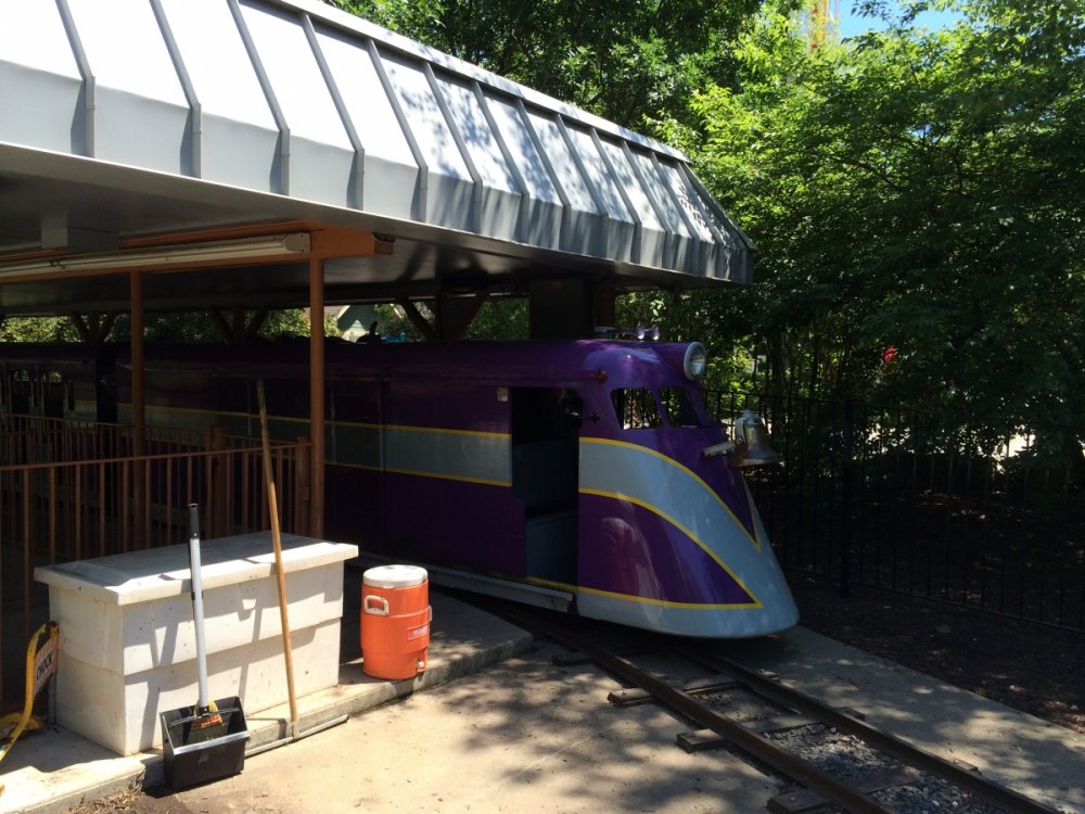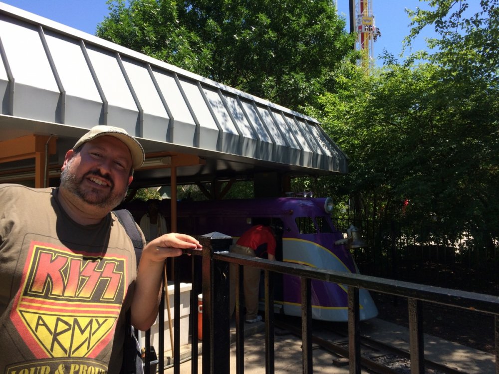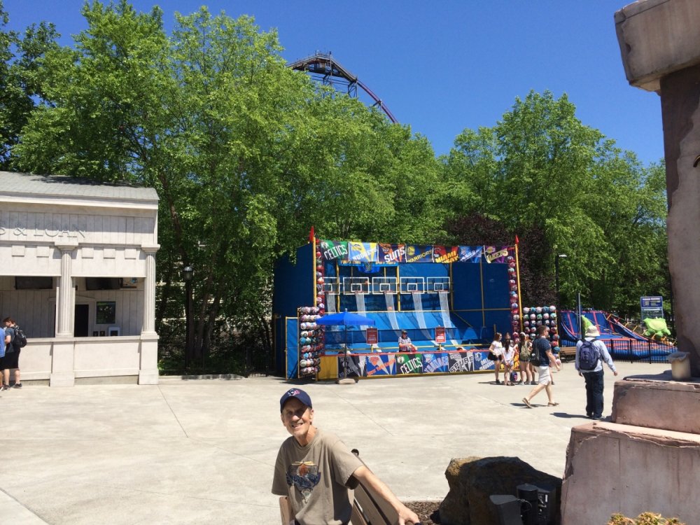 Day 8 – Dorney Park (and Whitewater Kingdom) So we got up around 8am, ate a light breakfast in the Concierge suite, and then headed down to get the car from Valet. Dorney opened at 10, and it was about an hour away in Allentown, so we figured we’d leave the Hotel around 9 to be there just after opening. The news was reporting that it was going to be the hottest day of the year thus far (at 92 degrees), so I expected that meant that a lot of folks would be at the Waterpark section of the Amusement Park. The directions once again worked out perfect, and we got to the front gates of Dorney just after 10am. It was more crowded than I expected for opening, but everyone basically had the same idea I had – pull in, park, and COVER yourself with Sunscreen. (since it had been so overcast we hadn’t needed to use much sunscreen thus far, but man was I glad I had it at Dorney). I started chatting with two girls in Bikini tops & shorts who had parked just in front of us, and since it was our first time there, asked for suggestions on how to approach the park. They said that everyone would go straight ahead to the suspended coaster, Talon, and suggested instead we head to the left and go directly towards Steel Force (the giant coaster we had seen the day before from the Tollway), and get in a few rides, as that would be crowded later in the day, and just work our way clockwise around the park from there. I thanked them and we got in the huge bag check line. I swear, this was almost the longest line of the day. . it took almost 20 minutes to get thru the checks, and it wasn’t “official” looking at all – just security guards with some plastic tables glancing into everyone’s bags. I guess what took so long was so many of the people had bags full of towels and snacks (apparently a no-no to bring in your own food). Once we finally got in the gates, we headed to the left, and came across one of the many huge hills (flashbacks to Hershey!). LOL. . .we laughed, and went that way anyways (what else were we gonna do?). My impression of the park? It was by far the most “corporate” looking of the theme parks we visited. It just didn’t seem to have a whole lot of charm, but it did seem to have a whole lot of concrete! Maybe we just noticed it because it was the first hot day, but there was not a lot of shade, or trees to be had. It just looked like rivers of concrete leading to rides. That’s not to say I didn’t like the park, I did, quite a bit. But yeah. . it could use some landscaping to make it a bit prettier. Then again, at least 4/5ths of the crowd had gone directly to the right and into the waterpark, leaving the ride-side mostly deserted, and resulting in very short waits for most rides. We passed a few buildings that looked like at one point they were a restaurant, or maybe a queue for a long-gone ride, but had signage on them. These buildings were fenced off and I wonder if maybe they were/are a dark ride of some sort. My best guess is that these buildings are used for the Halloween Haunt attractions (later on one of the trains, we passed behind one of the buildings and saw some skeleton and zombie props on the back docks). Anyways, we headed down the hill past a bunch of flat rides (the swinging boat we saw in EVERY park, the scrambler, the swinging claw, and a couple of unique flats (such as Apollo and Monster, that we didn’t see elsewhere on our trip)) and passed in front of Possessed (a shuttle coaster with suspended seats), and the closed Stinger (a disappointment, as I was looking forward to riding this – it’s a boomerang with suspended cars, instead of standard. . but apparently there had been an accident in May, and the ride was still shut down, with the coaster-car no where in site L). We stood underneath Steel Force, and took a look up. The first drop is 205’ – it looked *really* high from directly underneath. But there was no line at all. . so after looking at the coaster-car and seeing it wasn’t “exposed” but rather a standard coaster car, Nick said he’d give it a shot (yes, despite having said “hell no” yesterday. . LOL). With no one queued up, we got right up to the station, and bumped into the same girls from the parking lot – who had done exactly what they told us we should do (I think the only reason we hadn’t seen them on the way was due to our quick stop at the toilets). We laughed and per Nick’s preference, we got a middle of the train car. I got in first so I could leave my bag in a cubby, and he sat on the right. Big mistake, as he had a death grip on the lap bar for most of the ride, meaning that I rode with his sharp left elbow digging deep into my stomach/side the whole time! At the end of the first batch of drops, there’s a large helix that turns you back around for the bunny hills, and Nick said he started to grey out there. I quite didn’t believe him, as I didn’t think the ride had that much G-force, but then again, I didn’t get too much air time either, and he said he got a ton on the bunny hills. Needless to say, he didn’t care for Steel Force, but I loved it! And as there was no line, I wanted to ride again, but Nick said no way. So I asked the girls if they would re-ride with me. They said yes, so I handed Nick my bag, and we went back thru the queue and this time we sat in the front car. I also sat on the right this time. Wow. .what a difference the side makes (tho to be fair it could also have been where in the car we were sitting). .but this time? I felt the G’s in the Helix, and boy did I get a lot of air time on the bunny hills. Great, Great coaster. We had wanted to ride Thunderhawk, the wooden coaster from the 1920’s that the park still has (it’s only woodie), but it didn’t seem to be running, and as we had heard it was rough, it wasn’t a good idea right then anyways. The intensity of Steel Force had made Nick a bit wobbly (terrible thing from the first ride in the morning!), so we decided to