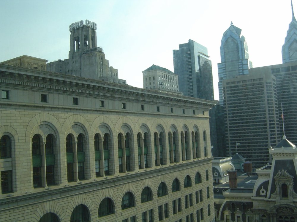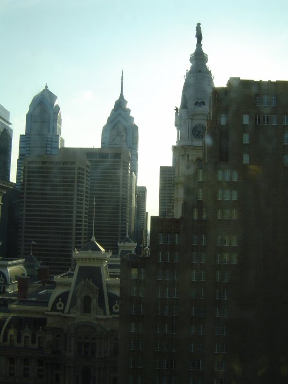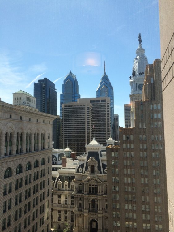 Day 7 – drive to Philadelphia and some Culture! We got up around 10am on this Sunday, ate the free breakfast at Comfort Suites (they had Biscuits and Gravy, and it was decent!), and headed on our way to Philly. It was beautiful driving weather, and we had no trouble following the directions this time. We had pre-decided that we would bypass Dorney/Allentown, and go directly to Philly, with Sunday being our “day off” to rest before driving back to Allentown on Monday for Dorney. (For us, it’s only a distance as if we were driving from our home to Six Flags Fiesta Tx in San Antonio, so it made sense). Some online friends had given me some good suggestions for a Brunch place in nearby Bethlehem, but as it was Father’s Day?. .didn’t even want to mess with it. We stopped off at the Allentown Service Area so we could take a potty/medication break (and to pick up Sunoco stickers for Nascar fan, Nick ). I also took advantage of the stop to call my Dad and wish him Happy Father’s Day – something I know he appreciated, since he wasn’t expecting a call, as we were on vacation. As we were pulling back onto the toll-way, I noticed the lift hill of Steel Force visible off in the distance. I pointed it out to Nick and he said.. “oh hell no, I’m not riding that” and we laughed and continued on our way to Philadelphia. Although there was a LOT of road construction going on on the tollway, as it was Sunday, there wasn’t any work going on. So we made really good time – until we took the exit towards downtown Philly. And traffic just slowed to a crawl. Seriously, 7 miles on this road towards downtown, going ~10 miles per hour. And it turned out it was like this the next day on the way back from Dorney too! I don’t know how folks deal with this. It would make me crazy! And I only had to deal with it twice (and as a passenger at that). Once we FINALLY got to our exit, the Google directions became worthless, as downtown Philly is all 1 way streets (seemingly going against you), and they are all narrow and crazy. We were staying at the Downtown Marriott – literally across the street from City Hall and on Market Street. But when we went by, there was no place to pull in, and all the streets were one way against us. After doing a lot of wrong turns, it eventually brought us back behind the Marriott, and THAT’S where the parking and main entrance is (on the street opposite Market Street). There is no option to self-park, so we had to Valet, something I was expecting. (I wasn’t expecting the parking fee to be $40/day + $8 tax/day. . so we ended up paying ~ $150 just to park the car at the hotel we were staying at!). I mentioned when getting out of the car how hard it was to find the front entrance/parking for the hotel, and the valet said they hear that a lot (so how about a sign or SOMETHING on the Market Street side of the hotel????). They then asked if we were sure we were supposed to be at the Marriott Downtown (since there are two other, mid level Marriott’s on the next block that are attached, and apparently they often get folks going to the wrong hotel). But nope, we were at the right place. I went to check in and Nick dealt with the bags. The very nice lady at check in offered me my choice of rooms, and I said “whichever has the best view”, since we’d never been to Philadelphia before. So she asked me if I’d like the 23rd floor, even tho it had two twins, instead of a King. As Nick had been complaining my snoring was keeping him up (oops). . .I said, sure, we can do the separate beds for our stay. She told me it was a corner room and to let her know if I had any issues. I didn’t know that the 23rd floor was the top floor of the Hotel, so we ended up with a room that was right next to the Elevator Lobby in front of us, and also had the Concierge Lounge two doors to our right. BUT it wasn’t a corner room – it was the room next to the corner room, so we ended up with a view of the building across the street from us. I was OK with that, since the hall just outside if we stepped to the left, had a nice corner window we could take some pics of. It was just at 2pm, so we decided that we would go ahead and do a little sight-seeing, not realizing that everything in Philly shuts down between 5-5:30. Really. We were staying across the street from the famous Reading Terminal Market, and never got to go in  They closed at 5:30 every day, and we were never back at the hotel early enough from the day’s excursion to make it in to even see it. I really do regret that, as I would have loved to sample some of the foods available. Anyways, I stopped by Concierge desk to pick up brochures ask about the “Rocky Steps” – I knew they were in front of the Philadelphia Museum of Art, but wanted to know if we should take the car from Valet, or cab it. The Concierge suggested walking, as it’s a beautiful 20 minute walk, but since it was after 2, and the Museum closed at 5, I didn’t want to waste the time. . so we headed out to grab a cab. Passing by the front desk, the lady at reception who had checked me in asked what I thought of the room. I told her it was great, but mentioned that it wasn’t a corner room, like she thought. She frowned and looked it up, said “oh shoot” and apologized profusely. I assured it it was OK, and we headed out (I didn’t know right then, but she had gone ahead and comped us Concierge Lounge access. . so that ended up being *great*. . especially since it was only two doors down from us. .so we got the advantages of Concierge Suite without having to pay for it ) The hotel got us a cab, and we drove up the beautiful Museum Drive section of Philadelphia and got to the front of the Philly Museum of Art only $7 later. It wasn’t super-crowded, which surprised me – I thought it WOULD be, since it was a beautiful day, Sunday afternoon, and Father’s Day. But as you can see from the pics, not bad at all. Nick didn’t want a pic of the Rocky 