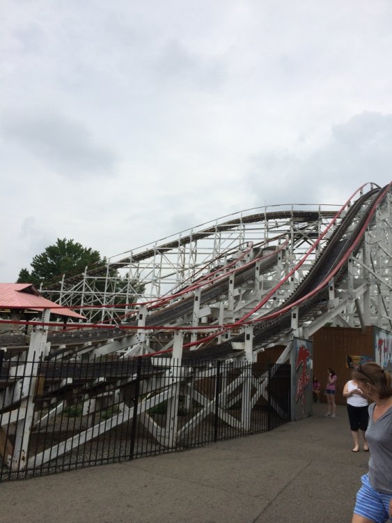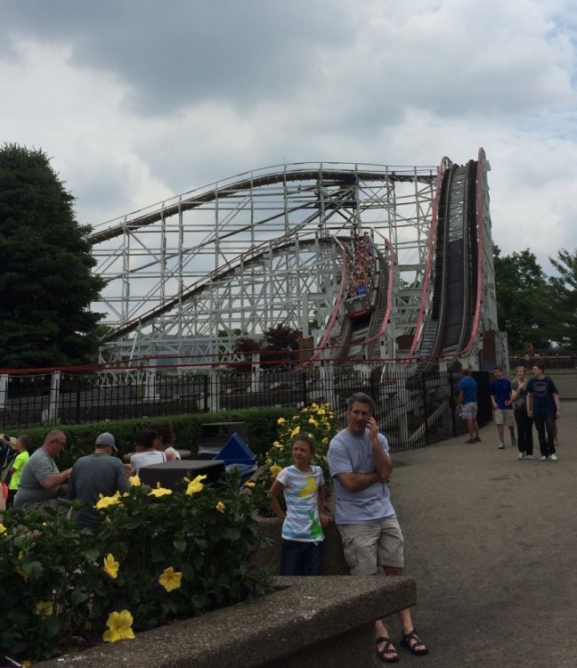 I wrote this up for my friends on Facebook (but without the pics). . so apologies if in some spots, I'm relaying well known info So finally getting all the pics organized, and am ready for a trip report! Our trip thru Pennsylvania Day1 & 2 (Pittsburgh/Kennywood): The first day was mainly flying from Austin to Pittsburgh, with a layover in Chicago – too funny, as I was JUST there. . at least this time it was at a different airport (O’Hare vs Midway). Of course, this was the start of our adventure on American Airlines, and not only was the flight from Austin to Chicago delayed, but the connecting flight (even tho I had left us a 2 hour layover window) out of Chicago was also delayed! So by the time we landed in Pittsburgh we were almost an hour late, and I was concerned about the Rental car place being open, since the Pittsburgh airport, while a big airport was almost deserted (it reminded me of any flight coming into Austin past 10pm, where everything is locked up and all restaurants closed). So we rushed thru the airport, and to the rental cars, and although they had to find a car for us (we had a reservation, but they didn’t have a car handy and had to clean one up for us), Nick took care of that while I grabbed the luggage off the carousel. I met up with him as he got the car – they ended up giving us a white Ford Focus (which got GREAT mileage and we enjoyed driving for the trip), and we took off for the hotel. As I’m a planner, I had a nice, thick packet of Google directions printed out with us, from each location to the next – hotel to hotel, and hotel to each park, etc. These worked out GREAT and we really only got lost once due to missing a turn off from Hershey to Bloomsburg, so we had a bit of an extra scenic drive thru the mountains, so what?! Anyways, we found our way to the Pittsburgh Hotel (Hampton Inn on the Waterfront) very easily following the directions. Kennywood is a classic Amusement park, and much of the park (and several of the rides) are declared Historical Monuments. . . but it’s NOT in the better part of Pittsburgh. I was a little concerned when booking a hotel in the Waterfront – since it’s less than a 10 minute drive from the Park, but was pleasantly surprised to see “the Waterfront” has been getting “upgraded” to a shopping destination – meaning tons of restaurants (TGI Fridays, Steakhouses, Chilis) as well as several big stores (Best Buy, World Market, Target, etc) and even an IMAX theatre and AMC 14 across from the hotel. . so it was very safe right where we were. Tho the front desk staff did tell us to be careful if venturing outside of the safer section. The hotel sits at the back of the development, on the river, and we had a pleasant room with a river view, on the 1st floor just off the breakfast room (nice and convenient). We hadn’t eaten dinner yet, and as it was just after 9, I convinced Nick to drive down to Kennywood just so we could be sure to have no problems the next day. . it was a piece of cake, and although we didn’t get close to the front entrance, we were able to park in the lot and watch several of the rides the evening before (so Nick knew going in there is no way he was going to ride Black Widow – a giant swing ride that I swear swings up over 17 stories while spinning). We grabbed a quick bite at an absolutely disgusting IHOP, as the other restaurants near us were closed at 9, and we knew IHOP was open 24 hours, and then turned in to be refreshed for our big day the next day. The Weather forecast was 90% chance of rain . . but we had no option, so we went. Not a DROP of rain all day, but the forecast kept crowds away, with most everything in the park a walk on! (Nick even rode Phantom’s Revenge – the tallest coaster in the park (although he kept his eyes closed)). The park is amazing, and the one of a kind rides fantastic – yes, even the dull ones (they have at least 3 rides that are the last of their kind operating in the world, and several others that are one of only a few left in the world). As noted, much of the park is declared Historical Monuments, so you are seeing the rides/queues as they actually looked in the 1930’s, and 1940’s . . .but oh, they have lots of modern rides too! Our favorite was the JackRabbit roller coaster, with it’s famous “double-dip” drop. . your ass is out of the seat for the 2nd half down the hill! Fantastic! We also liked the Byern Kurve toboggans, the Log Jammer flume ride (bought a picture magnet for the fridge), and the Racer classic coaster. By 6pm we were pooped, and had ridden everything we wanted to (all but ~4 rides in the park total). .so headed back to the hotel to crash. Here are the pics from day1/2. . enjoy! flying from Chicago to Pittsburgh. . my, looks so FAMILAR! (was just there at the end of April for the first time ever) a sneak peek at Kennywood from the night before we went (it was a Monday night around 9pm, and the parking lot was almost deserted) at the entrance -- we were there about 20 minutes prior to opening, and you can see how dead it was. That 90% rain forecast kept folks away. . . Never did quiet figure out what the deal is with the Kennywood Kangaroo. . but I wanted a pic with the sculpt in kiddieland anyways Nick in line for JackRabbit. Our favorite ride in the park, we rode it multiple times. a highly original picture of Phantom's Revenge that I'll bet you've never seen before! at the entrance to Black Widow. I hadn't planned to ride it (and Nick is terrified of heights), but when we walked by, there was literally FOUR people in line, so I went ahead and got on. I'm able to looks so classy while getting ready to ride, huh? I had to sit next to this lady, and her two daughters were put on the opposite side behind us. . I guess they needed to even out the weight? Love this pic of Nick in front of the classic "Shoot the Chutes". . . . this was close to 1pm (we were headed towards Potato Patch to grab lunch), and look how many p