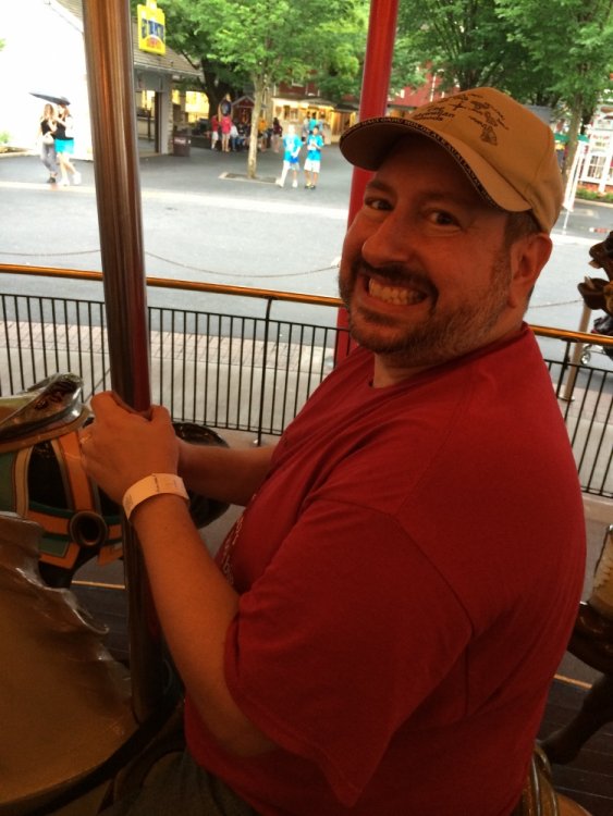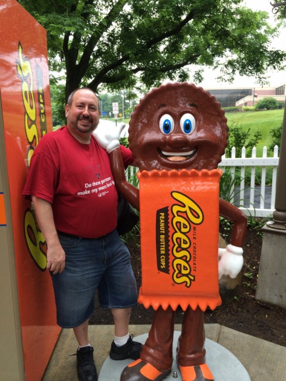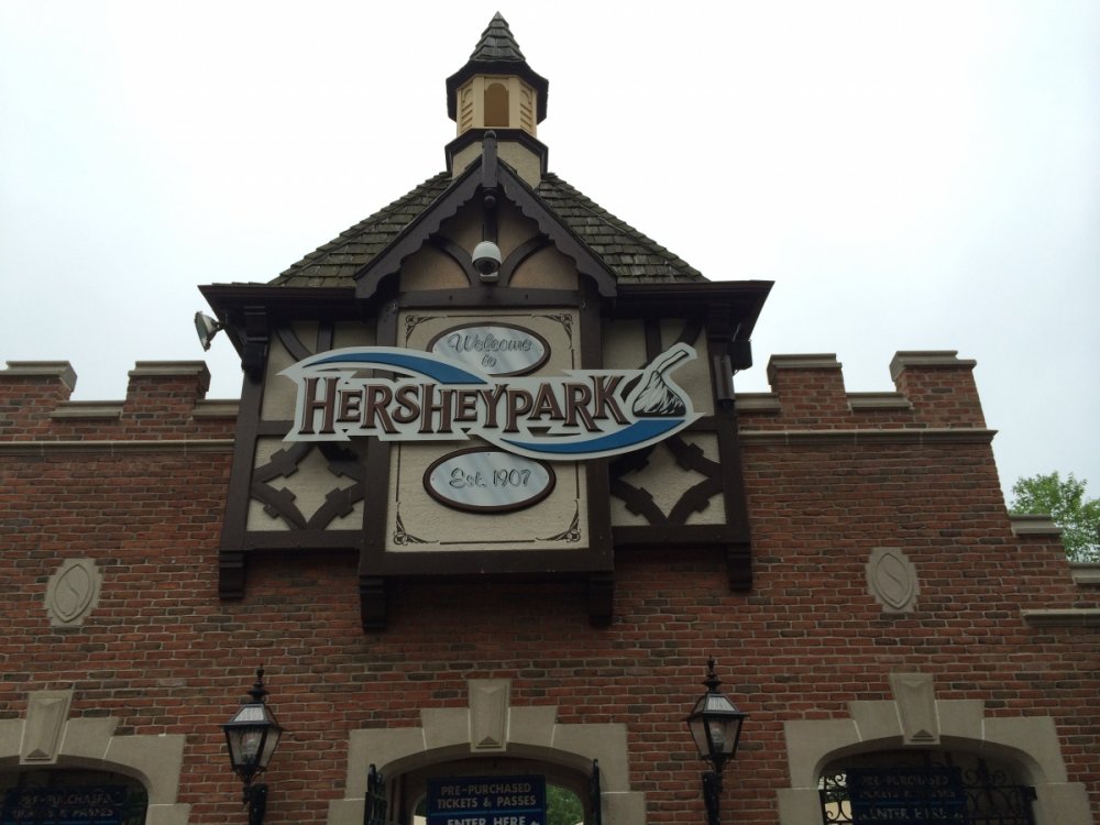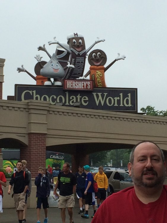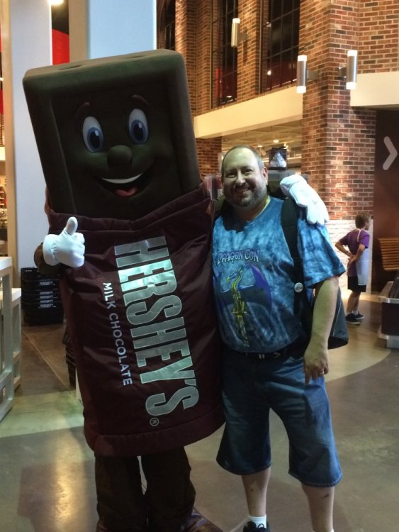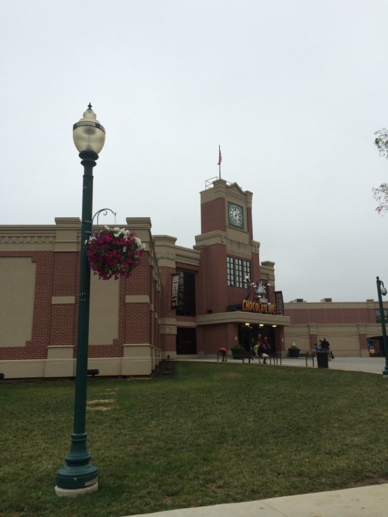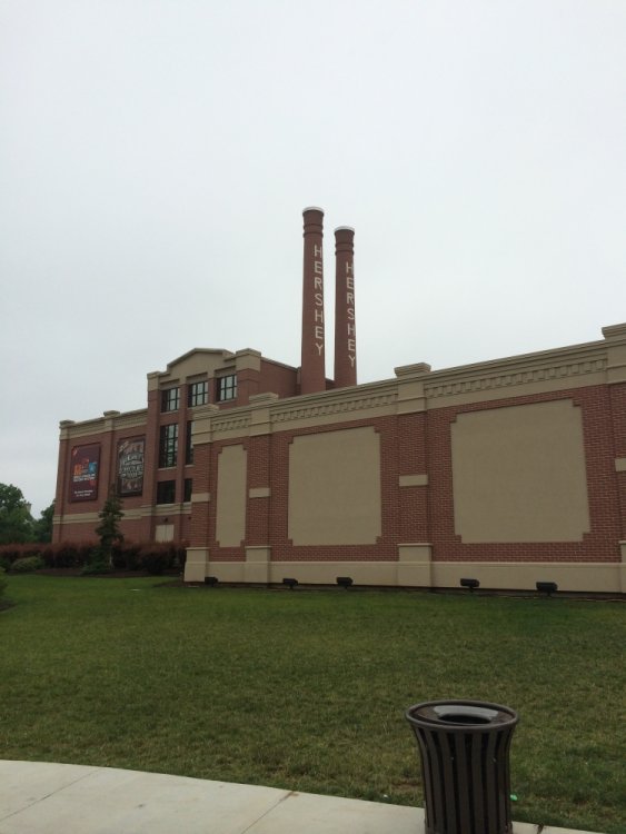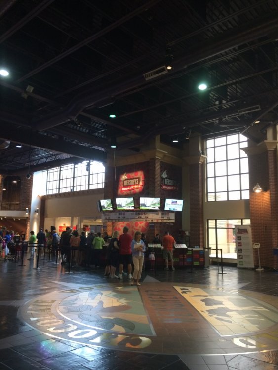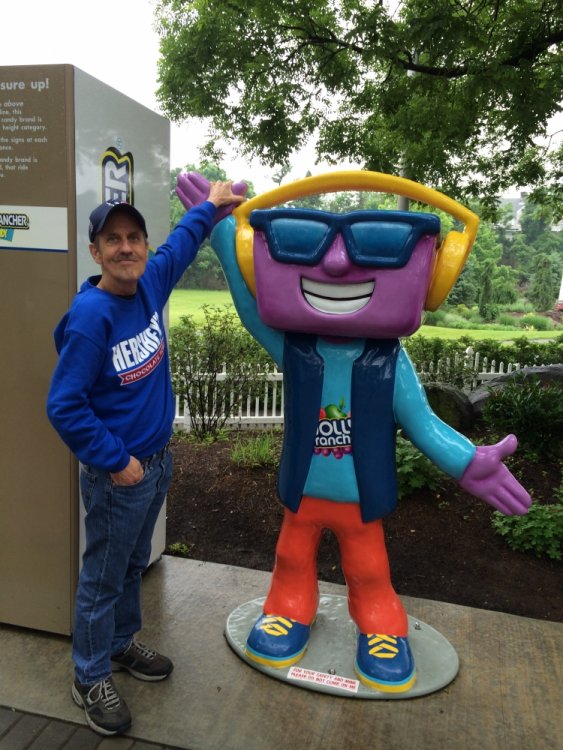 Day 3 & 4: Hershey Park After a great (and tiring) day at Kennywood, we got up and checked out of the hotel by 10am (after eating the complimentary breakfast of course!). This was the longest drive of our trip, about 3 ½ hours from Pittsburgh to Hershey, Pennsylvania. It was still pretty overcast, but no rain, and the drive was beautiful with lots of mountains & hills, completely covered with green, and more than a few long tunnels cutting thru the mountains/hills. We had no idea we’d be driving thru such hilly country, but it was a pleasant drive and the directions I had printed out were perfect and we got to the Hershey Lodge with no issues. There was a heavy mist that started from the moment we pulled into Hershey, and it had gotten cooler, but no real rain, so we still planned to go to the Park that night -- since tickets for the next day get you in the night before for 2 ½ hours prior to close (it turns out that because we were staying “on Property” we actually got to go in 3 ½ hours prior to close, so we could get in at 6:30 pm, AND get in an hour early on Thursday if we chose). As the Hershey Lodge also has free shuttle service to and from the park (and free parking at the Lodge), we didn’t have to worry about parking fees either! I asked at reception if they could put us away from all the little kids (I told the front desk that I realized that we’re at Hershey Park, and of course there are going to be a lot of kids, but mentioned our horror story at Circus Circus in Vegas (where even tho they made a big show of putting us in an upgraded, and beautiful room, we were surrounded by crying babies the whole weekend, and it ruined the experience). The front desk said that not only do they completely understand, but since we were travelling at the perfect time (ie: just before Penn. Schools are out), they had plenty of options to put us near the quieter parts of the Lodge. We ended up on the 2nd floor of the “5th Avenue” wing – two stories, with the upper floor having outside access to the hilled parking lot, as well as standard indoor access. And a cute little seating area outside the door, in the parking lot. I believe we, and one other guest, were the only lodgers in this wing (we were the only two cars parked by our outside doors). So yeah, it was Super Quiet. Small, but nice room, with Hershey Kiss wall-paper, a super comfortable King bed, and free chocolate bars upon check in. As it was only ~2pm, it was too early to head to the park, so instead we went to the Bear’s Den restaurant in the lodge lobby – it’s themed to an Ice Hockey rink, and had a nice lunch at a reasonable price too! We also shopped a bit in the gift shop, walked around the property looking at the pools (the indoor one was PACKED with kids), and the game rooms, and went back to the room and changed for an evening in the park, planning on spending an hour or so at Chocolate World (outside the main gates) before we went into the park at 6:30pm. The mist had stopped, but it had gotten breezier and cooler, and the minute we stepped off the shuttle, Nick knew he had made a mistake in not wearing enough layers (even tho he had put on two long-sleeve shirts (his body fat is super low due to the chemo still. . but trying to put weight back on him!). So first stop in Chocolate World, was to buy him a Hershey Sweatshirt. Then we still had some time to kill, and tho they have several options, most just didn’t appeal to us (chocolate tasting class, baking class, 4D interactive film). So we bought tickets for the “Make Your Own Candy-Bar” which tho completely automated, and pretty expensive (you end up paying $15 for one candy bar), was still a total hoot and we loved it. We then did the obligatory: Chocolate: the Ride (or whatever they call it). . with singing cows, and riding in what I think are supposed to be giant Hershey Kisses. . .but really looked like giant cow turds (hey, it fits. .the singing cows were all over this ride, and the first image you see on the ride are 3 swinging cow butts!). We wandered around the store for a bit, and tho it’s a huge store, most of what they have was not park related, but more candy related. . so we didn’t actually buy anything else at Chocolate World. But it was close enough to 6:30 that we headed over to the front gates of Hershey Park, where about 6 other folks were waiting for the early admission. Once again, the weather had kept folks away – I guess that mist from earlier in the day had really affected the park, and on Nick’s iPhone we saw some heavy storms were actually heading our way, but that was still a few hours out. We went in, and walked right onto Skyrush. Nick didn’t ride it, tho I did, as it’s the biggest thing you see from outside the park – a huge yellow coaster. I HATED it. I mean HATED it. With the power of a thousand burning suns. I sat towards the back on a “wing” so extending out over the open air. Not only was it super, super rough (jiggled my brain up good), but I was hanging on for dear life. I know, I know, the point of the ride is to make you feel like you are going to fall out. I did NOT like that feeling. Didn’t go near this again for the rest of our time at the park. We went next door to the smooth SuperDuperLooper (Nick loved it), and then rode the old woodie: the Comet (both walk ons). . . We both liked the Comet, but it would have been better if they weren’t breaking so often, so you never really got up any speed over those bunny hills. Great Bear and Coal Crackers were walk ons, but due to the weather, and me not wanting to do another looping coaster so soon after Skyrush (which ironically has no inversions).. we saved those for the next day and headed towards Farenheight – which was down all evening, the car had gotten stuck on the lift hill. So instead I went on Storm Runner (the launched coaster – I LOVED it), and we headed over to the wild mouse, that Nick and I both enjoyed. It was about tim