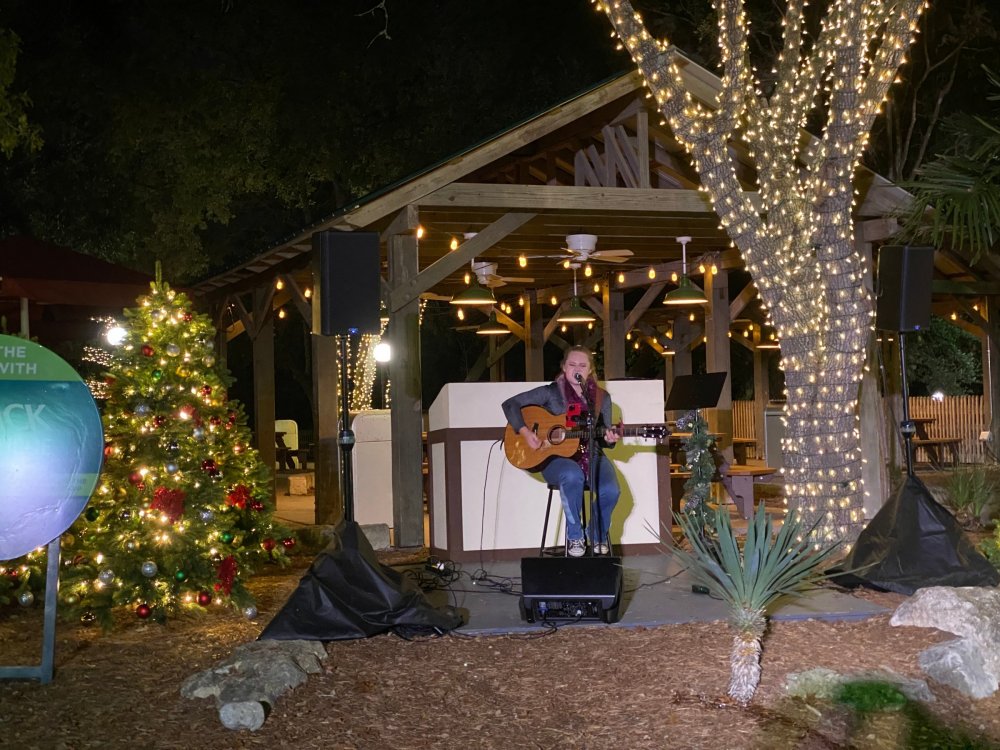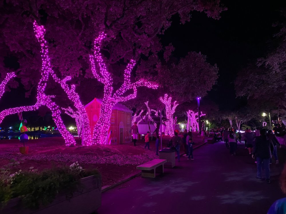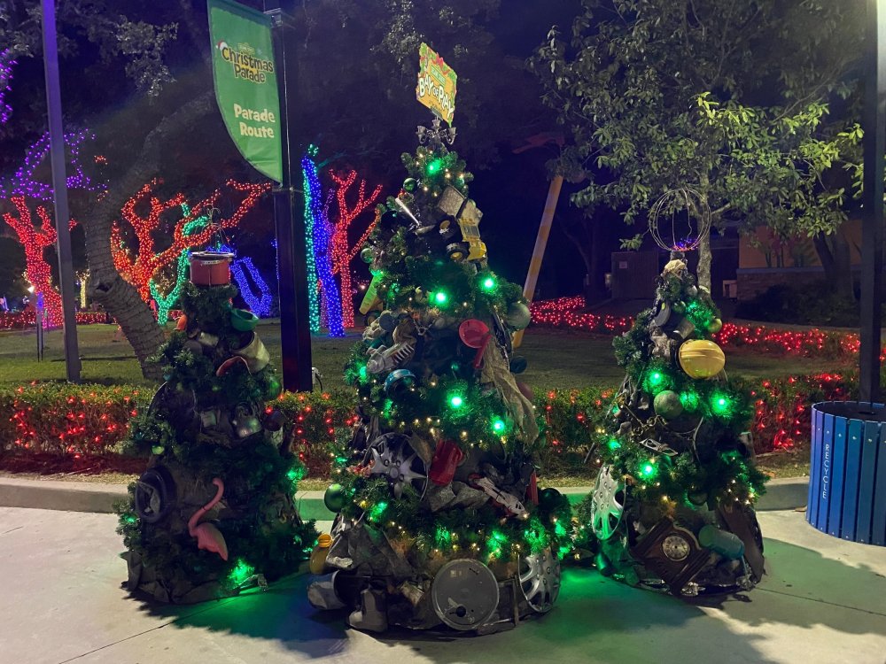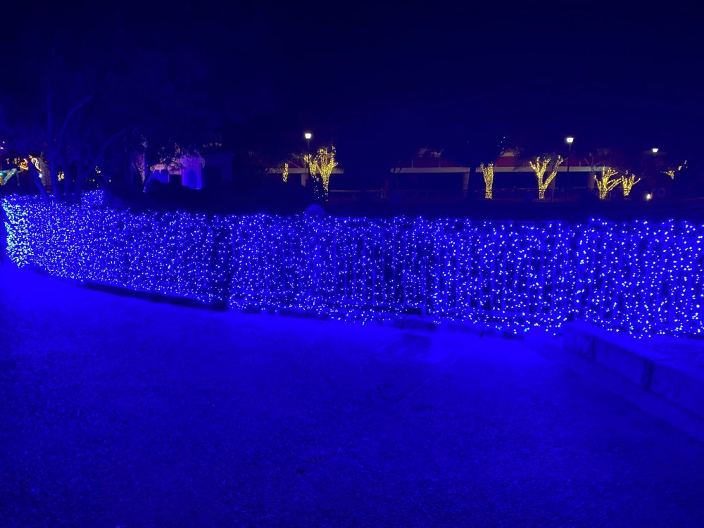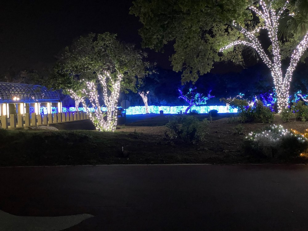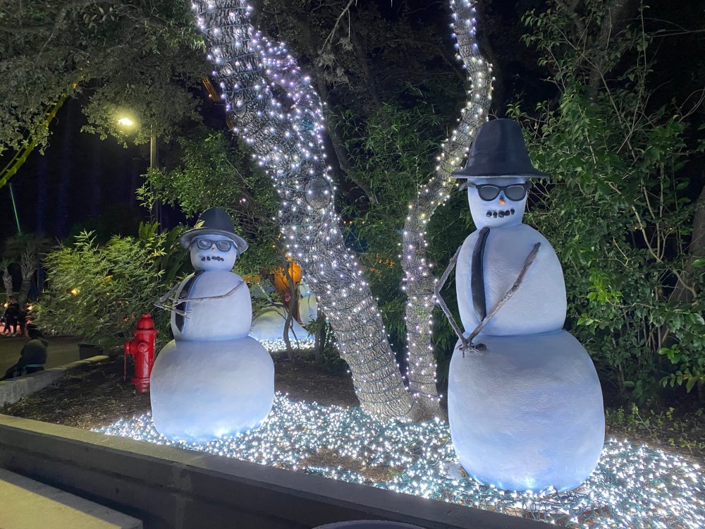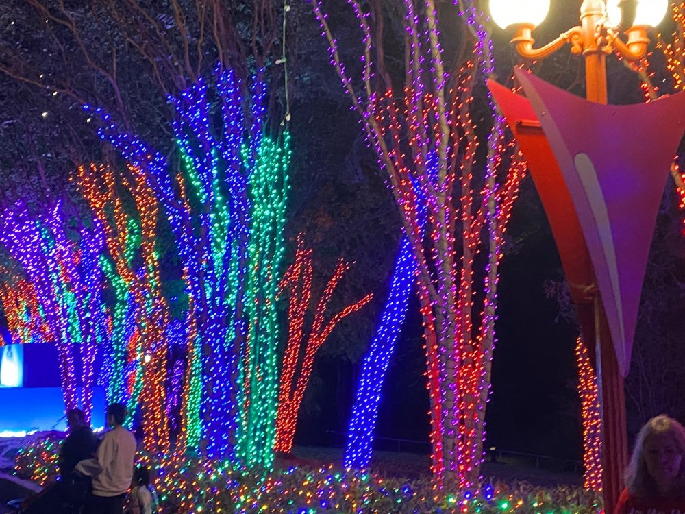 SWSA day concluded: so walking back from the car, was able to get a picture of the big "tree" that SWSA has at the entrance to the parking lot. Unfortunately, the Parking lot lights caused my iPhone 11 to pick up a lot of extra, and kinda put it into "night mode" and washed them out a little. same issue with this one.. tho as I got away from the parking lot lights, the night shots got better. they're not kidding around when they say it's the largest amount of lights in Texas. I mean, this is still OUTSIDE the main gates. . so many lights, all along the outer fence of the park. and the "welcome gates" are impressive as hell at night: once you actually get into the park, it's even more impressive in places. this whole area was hosted by Coca-Cola, and had the Red/White colors and the Polar Bear inflatables (drinking cokes of course). . . and a pop up bar that was offering all kinds of Coke drinks with and without alcohol. since we had just finished eating, I didn't try anything else, sadly, but I expect will be back at some point in Dec, (since have a pass now) and will try some of them out then. walking towards the lagoon (we were headed for a night ride on Texas Stingray since we didnt' have any evening ERT on it, so were just gonna stand in line) is so dang impressive. there were multiple stages set up along the pathways, and all of the performers were excellent. I called these guys the "nudies". . since - tho it's clear in the pics they are wearing pink pants? . . . in person, they were more "flesh" colored. .and as we came upon them, I really did a double take, as they looked like they were naked from the waist down! (LOL). the "brass" Christmas Carols were lovely tho, and drew a pretty good crowd in the walkway. they didn't have the lights ON Journey to Atlantis itself (but the event had just opened, so maybe still to come?), but the entire fence around it (and trees within it) were wrapped and looked stunning: I was shocked that although the park had gotten really crowded (I think I heard someone at ERT saying over 20,000 came in after 5:30 when it got dark), the line for Texas Stingray was still only ~15 minutes - even with only 1 train. here's what the majority of the queue looked like: after our ride, Oren, Sean, Paige and myself continued around the Lagoon, to take in the lights, and enjoy the scenery: lovely angle. . my jowls really stand out but I loved how Oren tucked his long beard into his vest for our ride on Stingray.. and in this pic he hadn't' untucked it yet. . LOL another performer over by Rio Loco entrance - who was really quite good. . she sounded a lot like Jewel. we stood and listened to her for a little bit. and then noticed Santa was meeting/greeting just behind us. Didn't get in line for him, but once we noticed he was wearing Red Leather Chaps? (we decided they are assless chaps, to counteract the Texas heat).. well. . just HAD to get a picture ! We headed over to the penguins - which was open, tho the Puffin portion was dark .. past their bedtime, I guess) and the whole building is just DRIPPING with lights. It really looked amazing. . and all around the front of the exhibit there were a whole bunch of "themed" Snowmen - including these "Blues Brothers" and this darkly humorous "San Antonio Spurs" Snowman who tossed his head, and kept the ball. dark! over by Steel Eel, the area seemed to be themed to CandyLand..with a multicolored light up path, giant gumdrops. . and was very purple. looking at the show schedule, it looked like there was an Orca show at 8:30. . which was perfect, since park closed at 9, and ERT started then. so we cut thru Sesame Street Bay of Play to head to Orca stadium. cool. . the "trash trees" even have lights on them. . and appropriately, the lights on one of em don't work. at the Orca show, Paige was VERY concerned we were gonna get wet - as basically 2/3rds of the stadium is tagged as "Splash Zone". But I went by how wet the floor was, and simply kept moving until we got to a section where the floor was mostly dry, and we sat pretty far up. So tho she stressed about it, we didnt' get wet - tho a lot of folks did, as this show had the BIG Orcas out, and they certainly made quite the splash during the show. of the 3 "animal" shows we saw today, this one was the least adapted to the Holiday Lights spirit. . . . really, all they did was put Snowflake cutouts along the tank, and called it a day, and just did the standard show (as far as I could tell). which is fine, as the show is quite enjoyable - and educational. It's just not very Christmasy. here's pics from it - as noted. . the big un Orcas were out performing today: Feeeeeed meeeeeeee ! the show over, most everyone headed to the left towards the front gates. .but we (with our neon pink wristbands indicating part of the ACE event) headed right, and went to Wave Breaker to meet up, and start the hour ERT on WaveBreaker, Great White, and Steel Eel. this time when passing this hysterical tackiness tho, I stopped and took a pic. This is close to where Santa is. . and yes. . it's a "Boot Tree" HAHAHAHAHAHA Hi Santa! we went to get in line for WaveBreaker 1st, even tho I don't think it's a super exciting coaster. But since we were there for ERT, we were able to go wherever we wanted, and decided to head to the back row. ok. . the back absolutely makes a difference (as I suspect riding at night did). . but this felt WAY faster in the back. Heck, I lost my necklace on it.. just blew right off me! so I'll say, night ride in the very back? elevates this coaster to at least a 7. Oh, it's still a family coaster, but daytime in the front is a 4-5. . I found it much more fun at night in the back. (in this pic too, you can see the penguin house with all the "dripping" blue lights. . .so lovely) and a full moon too? ooooo. . we were told riding Steel Eel (or as I call it: "ow, my balls!") during a full moon will bring good luck. So we decided we'd head over there after this ride and we'd all ride it 