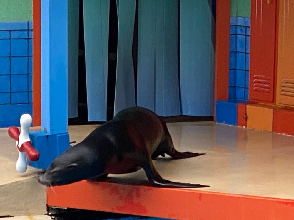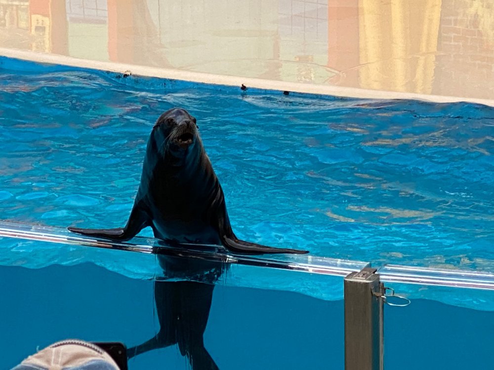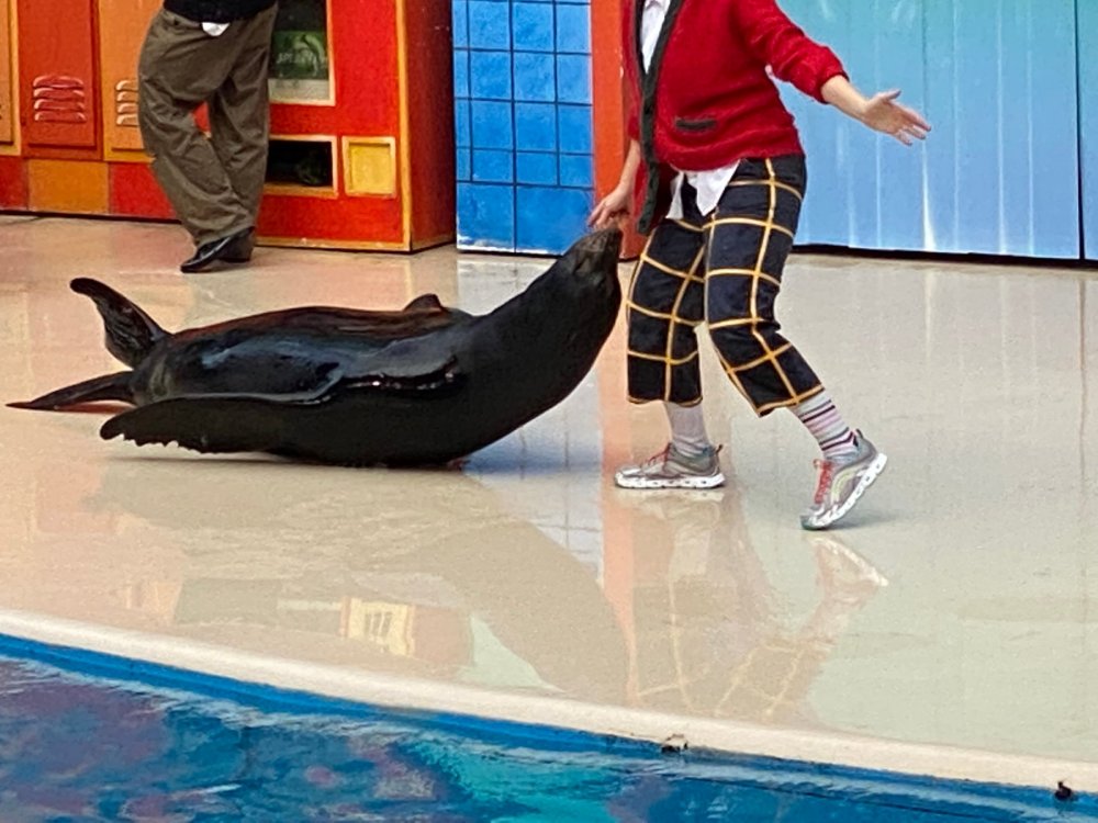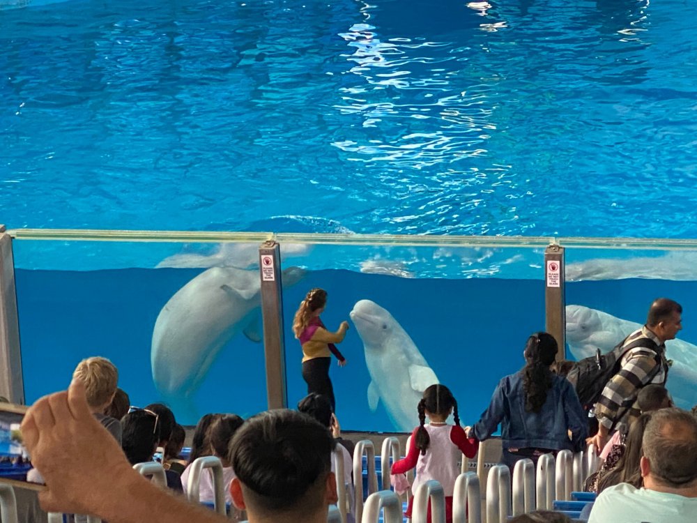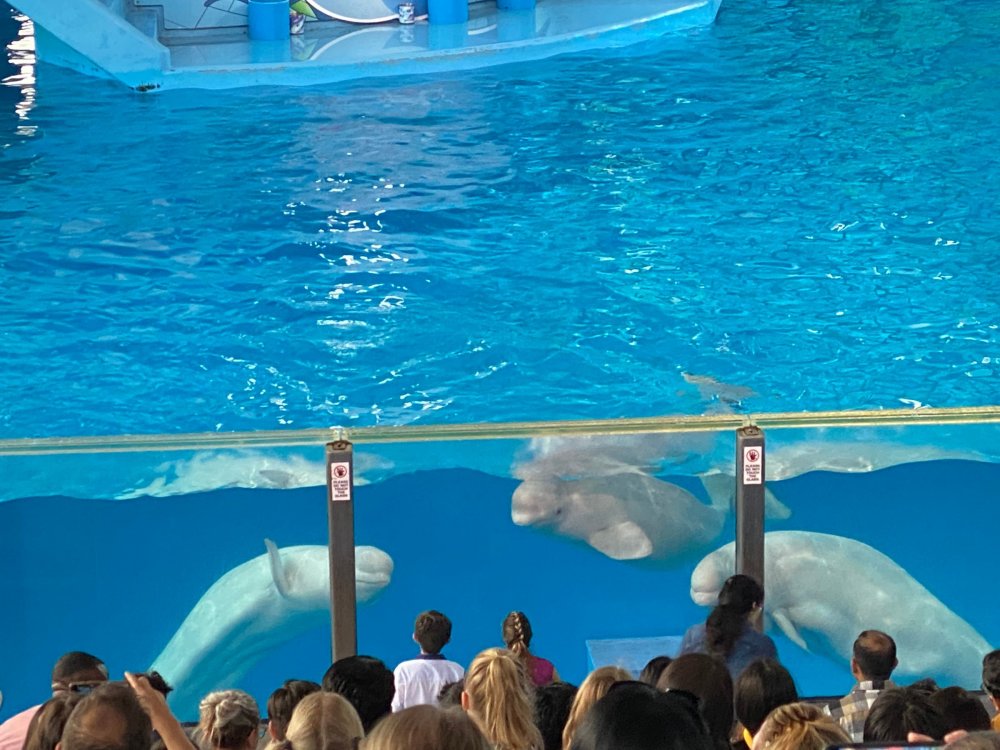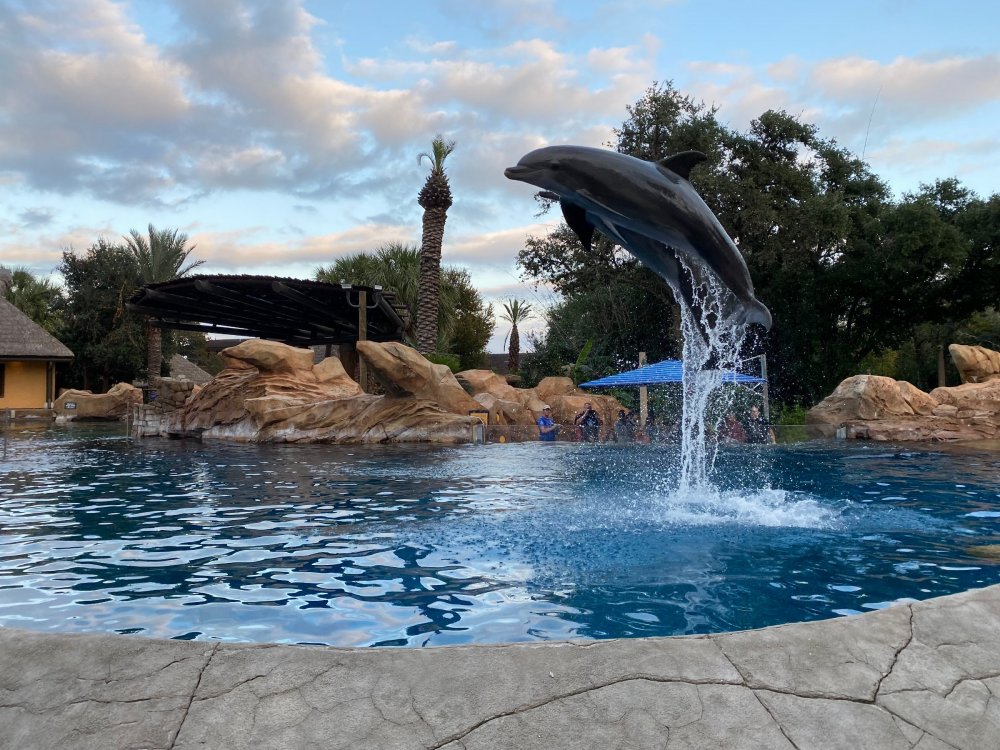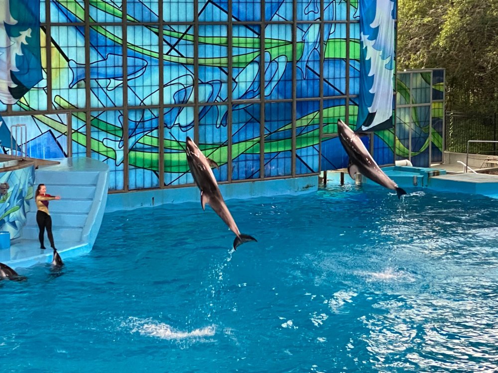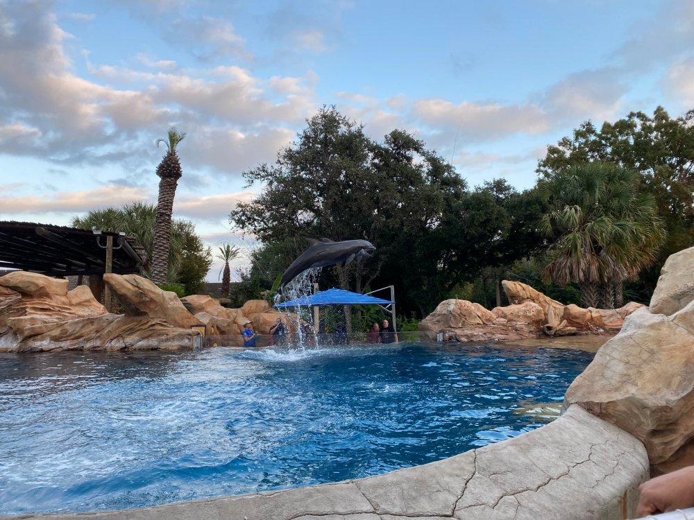 SWSA continued: after dropping off Sean at the hardhat tour, we continued on to the Beluga Show - only to discover we had missed that too during our delay on Wave Breaker but, we saw "Clyde & Seamore's Countdown to Christmas" was showing in about 30 minutes, so headed over that way to Sea Lion stadium. along the way tho, we passed Bumble who was out doing meet and greet . and of COURSE I'm a photo-op whore, so we hopped in line (gently dragging Oren & Paige with me, but they didn't protest too much): and an Elf out on the pathway being super cheerful also got stopped for a photo on the way to the stadium. the live entertainment thruout the park was quite good, with an excellent level of talent, and man these ladies had great voices too. Mariachi Christmas Carols for the win! I had missed the SeaLion show on my prior visit to SeaWorld SA, so had no idea what to expect. I mean, I knew it would be cheesy as all hell (which it was - even including a mime!!!), but I wasn't expecting the humor to skew a little "dark" - TWO jokes about death (including a melted Frosty being dumped back into the main tank) and vomit joke about getting car-sick rushing to the mall. Lots of slapstick with the mime and a female elf. the show is about Clyde and SeaMore getting SWSA ready for Santa to visit, and checking things off their list they need to do in order to get Santa to come visit. but it was cute, and a nice use of ~25 minutes. the otter is ADORBS! (even if he seemed to have no idea what was going on, and just did it for the treat) it was quite a full crowd, but once the show was over, pretty much everyone went next door to the habitat to look at the Sea Lions sunning on the rocks (something Paige and I had peeked at on Halloween, but the area was closed and we were shooed away (politely) at that time). lots of folks buying the cups of food to feed them tho. . . we were close to the front gates, so I split off to go to guest services to upgrade my day ticket to a season pass. it was very easy to do, tho "odd" in that "the machine is still broken" so my 1 year pass - good for 1 year from the date I purchased, since SWSA is a year round park - is a little piece of paper that I hope I don't tear or rip in the next 12 months. (Maybe I should go get it laminated?) then I headed back to go meet up with Paige/Oren over by the meet & greet (since Paige is friends with someone in the costumes and was gonna visit) . More stilts! yay!!! bet this is gonna look great once it gets dark! another look at the imposing Tidal Surge. This ride is gonna be great! found Paige, but before we left, I had to get in line for another pic, since Rudolf (red nose included), and Clarice were out! and just before we headed out to grab a ride on the Carousel (we had time before the 2nd attempt at the Beluga show), Bumble came back out. .so I took the opportunity for a solo pic - LURVE him: be-still my heart! going into Sesame Street "Bay of Play" we passsed these that caught my eye. are these. . .. . Christmas trees made out of trash? YES.. what an awesome touch, that if you weren't paying attention to, could easily walk past without noticing. . LOL Hi Oscar! tho I love me a photo op? the line for this group was way too long than I was willing to wait in (especially since it was almost all parent with tiny kids. . I mean, it's Sesame Street, I get it. .the right audience was in line for pics). So I just settled for a walk by picture. then onto the Carousel - which despite the crowd levels in the Sesame Street area, was only a 1 cycle wait. Carousel credit received, we headed over to Beluga Stadium to meet up with Oren for the show: "A Beluga Christmas" this one was a reach, because there really wasn't anything Christmasy about it, other than the tree banners on the backdrop, and it looked like someone when to Home Depot and bought some colored trees to put on either side of the stage. the music was sorta/kinda holiday themed, if you strained to hear it in there. . but really it was pretty much the standard show, I would say, with Belugas and Dolphins. which isn't a bad thing, I really enjoyed it. these Pacific White Sided Dolphins really get some height, and speed. Belugas! awwww. . a Momma and her calf. adorable LOL. . looks like it's jumping the logo from this angle by the time the show ended, it was just ~ an hour until dinner. Dinner was over in Discovery Point - which is outside the main gates of SeaWorld across the entrance plaza. But they have Bottle Nose Dolphin exhibit and a shark reef over there, so we decided to head that way a little early to check those out. there was an animal interaction tour going on, and they were feeding the bottlenose dolphins, as well as learning some of the training. and luckily we just happened to be in the perfect spot for when the trainer motioned them to jump: unfortunately the Shark Reef is closed at the moment as they are re-doing the floors in there, so we spent some time visiting with other ACE and TSU attendees, before heading into the underwater portion of the Dolphin exhibit. and then it was time for dinner: this time several different Pasta options/sauces, and a wonderful cinnamon/apple cobbler for desert. just the meals were well worth the cost of the event - not to mention that I was able to upgrade my admission into a Season Pass. I did NOT leave hungry I also won a gift bag at dinner with a small stuffed Shamu, a Coca-Cola Scarf, and an ornament. and found this (one of only 3 - of which I bought 2 of them) leftover from June "Pride" pins it's a Mega-Gay shark (if the rainbow teeth and glitter maw didn't give it away, they also put it on a rainbow backing to sell. . .LOL). too cute to pass up, so bought one for me, and one to have for a friend. then made the quick trip to the car to drop off the stuff and my hat/sunglasses, before heading back into the park proper to enjoy the lights, Orca show, & evening ERT. SWSA day to be concluded. . .
