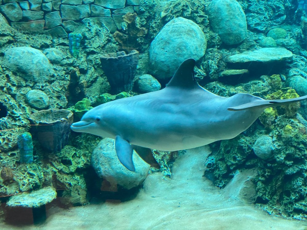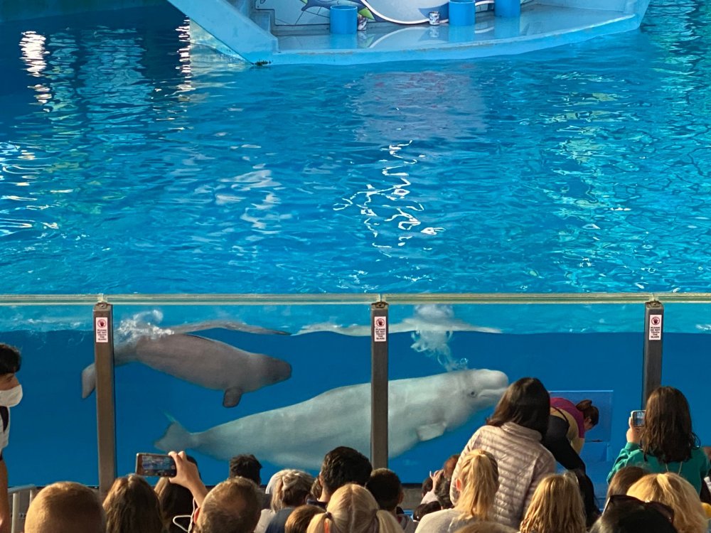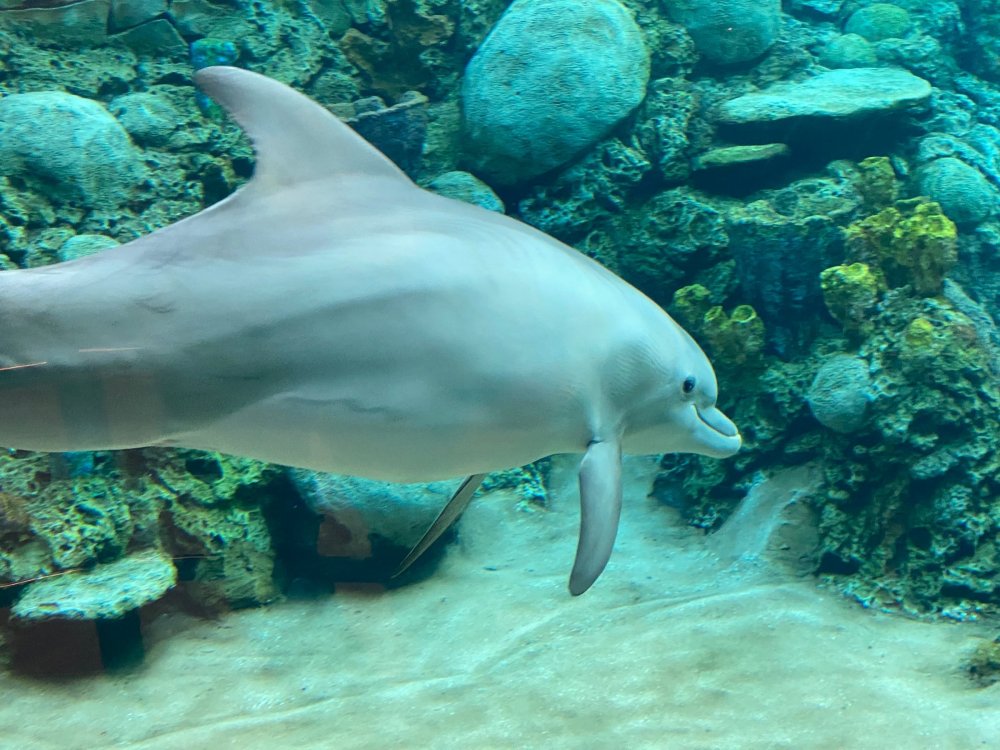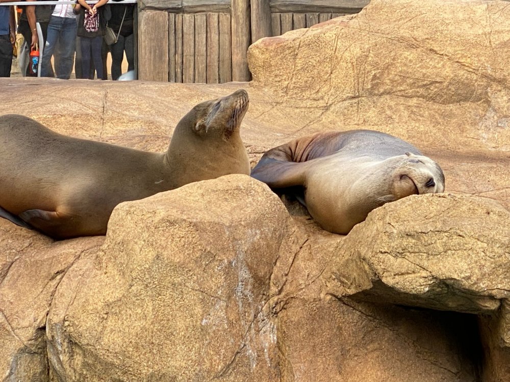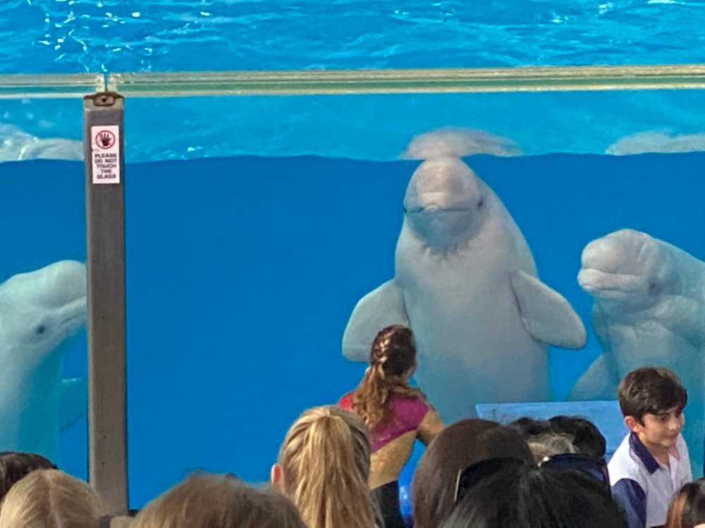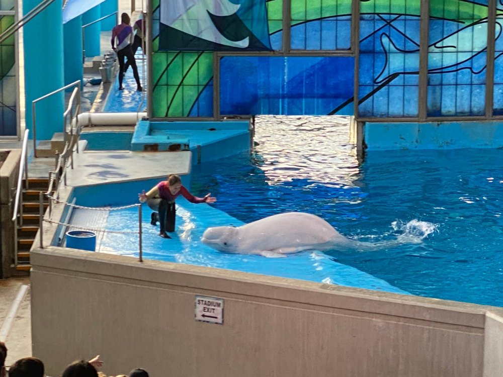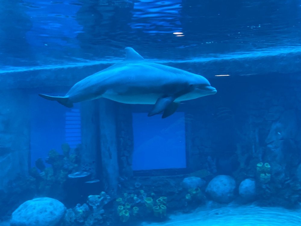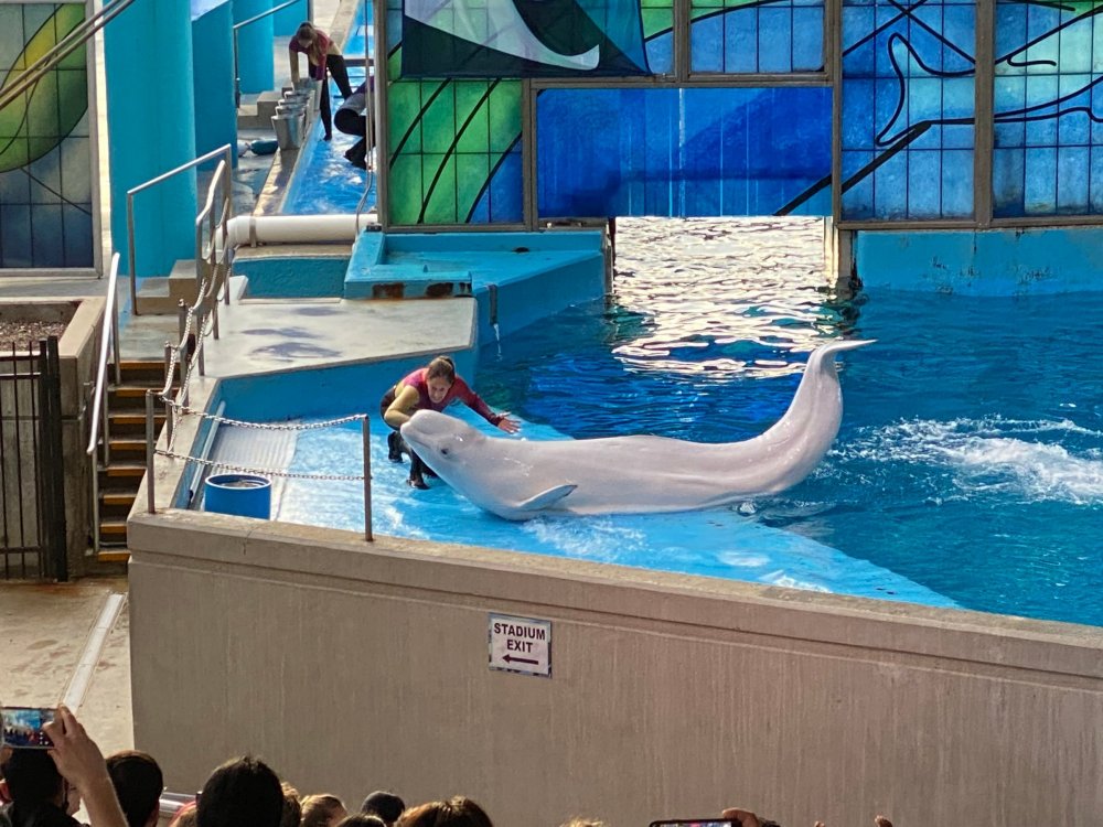 SWSA continued: after dropping off Sean at the hardhat tour, we continued on to the Beluga Show - only to discover we had missed that too during our delay on Wave Breaker but, we saw "Clyde & Seamore's Countdown to Christmas" was showing in about 30 minutes, so headed over that way to Sea Lion stadium. along the way tho, we passed Bumble who was out doing meet and greet . and of COURSE I'm a photo-op whore, so we hopped in line (gently dragging Oren & Paige with me, but they didn't protest too much): and an Elf out on the pathway being super cheerful also got stopped for a photo on the way to the stadium. the live entertainment thruout the park was quite good, with an excellent level of talent, and man these ladies had great voices too. Mariachi Christmas Carols for the win! I had missed the SeaLion show on my prior visit to SeaWorld SA, so had no idea what to expect. I mean, I knew it would be cheesy as all hell (which it was - even including a mime!!!), but I wasn't expecting the humor to skew a little "dark" - TWO jokes about death (including a melted Frosty being dumped back into the main tank) and vomit joke about getting car-sick rushing to the mall. Lots of slapstick with the mime and a female elf. the show is about Clyde and SeaMore getting SWSA ready for Santa to visit, and checking things off their list they need to do in order to get Santa to come visit. but it was cute, and a nice use of ~25 minutes. the otter is ADORBS! (even if he seemed to have no idea what was going on, and just did it for the treat) it was quite a full crowd, but once the show was over, pretty much everyone went next door to the habitat to look at the Sea Lions sunning on the rocks (something Paige and I had peeked at on Halloween, but the area was closed and we were shooed away (politely) at that time). lots of folks buying the cups of food to feed them tho. . . we were close to the front gates, so I split off to go to guest services to upgrade my day ticket to a season pass. it was very easy to do, tho "odd" in that "the machine is still broken" so my 1 year pass - good for 1 year from the date I purchased, since SWSA is a year round park - is a little piece of paper that I hope I don't tear or rip in the next 12 months. (Maybe I should go get it laminated?) then I headed back to go meet up with Paige/Oren over by the meet & greet (since Paige is friends with someone in the costumes and was gonna visit) . More stilts! yay!!! bet this is gonna look great once it gets dark! another look at the imposing Tidal Surge. This ride is gonna be great! found Paige, but before we left, I had to get in line for another pic, since Rudolf (red nose included), and Clarice were out! and just before we headed out to grab a ride on the Carousel (we had time before the 2nd attempt at the Beluga show), Bumble came back out. .so I took the opportunity for a solo pic - LURVE him: be-still my heart! going into Sesame Street "Bay of Play" we passsed these that caught my eye. are these. . .. . Christmas trees made out of trash? YES.. what an awesome touch, that if you weren't paying attention to, could easily walk past without noticing. . LOL Hi Oscar! tho I love me a photo op? the line for this group was way too long than I was willing to wait in (especially since it was almost all parent with tiny kids. . I mean, it's Sesame Street, I get it. .the right audience was in line for pics). So I just settled for a walk by picture. then onto the Carousel - which despite the crowd levels in the Sesame Street area, was only a 1 cycle wait. Carousel credit received, we headed over to Beluga Stadium to meet up with Oren for the show: "A Beluga Christmas" this one was a reach, because there really wasn't anything Christmasy about it, other than the tree banners on the backdrop, and it looked like someone when to Home Depot and bought some colored trees to put on either side of the stage. the music was sorta/kinda holiday themed, if you strained to hear it in there. . but really it was pretty much the standard show, I would say, with Belugas and Dolphins. which isn't a bad thing, I really enjoyed it. these Pacific White Sided Dolphins really get some height, and speed. Belugas! awwww. . a Momma and her calf. adorable LOL. . looks like it's jumping the logo from this angle by the time the show ended, it was just ~ an hour until dinner. Dinner was over in Discovery Point - which is outside the main gates of SeaWorld across the entrance plaza. But they have Bottle Nose Dolphin exhibit and a shark reef over there, so we decided to head that way a little early to check those out. there was an animal interaction tour going on, and they were feeding the bottlenose dolphins, as well as learning some of the training. and luckily we just happened to be in the perfect spot for when the trainer motioned them to jump: unfortunately the Shark Reef is closed at the moment as they are re-doing the floors in there, so we spent some time visiting with other ACE and TSU attendees, before heading into the underwater portion of the Dolphin exhibit. and then it was time for dinner: this time several different Pasta options/sauces, and a wonderful cinnamon/apple cobbler for desert. just the meals were well worth the cost of the event - not to mention that I was able to upgrade my admission into a Season Pass. I did NOT leave hungry I also won a gift bag at dinner with a small stuffed Shamu, a Coca-Cola Scarf, and an ornament. and found this (one of only 3 - of which I bought 2 of them) leftover from June "Pride" pins it's a Mega-Gay shark (if the rainbow teeth and glitter maw didn't give it away, they also put it on a rainbow backing to sell. . .LOL). too cute to pass up, so bought one for me, and one to have for a friend. then made the quick trip to the car to drop off the stuff and my hat/sunglasses, before heading back into the park proper to enjoy the lights, Orca show, & evening ERT. SWSA day to be concluded. . .