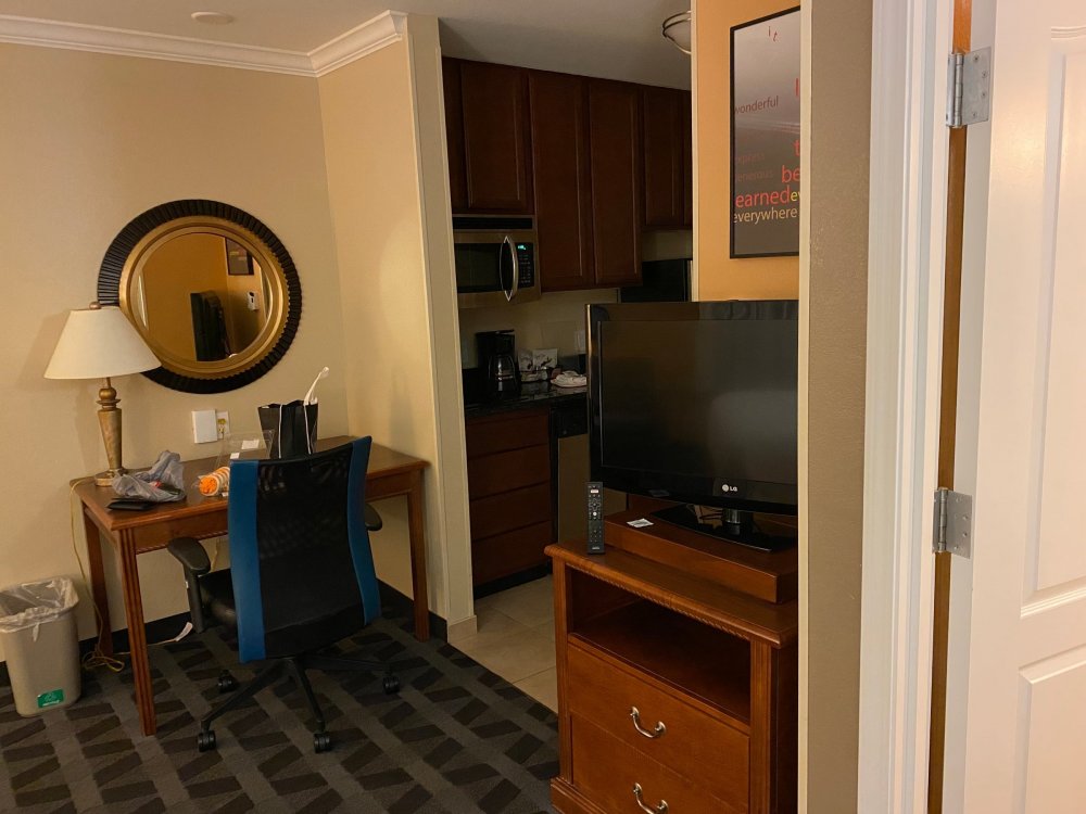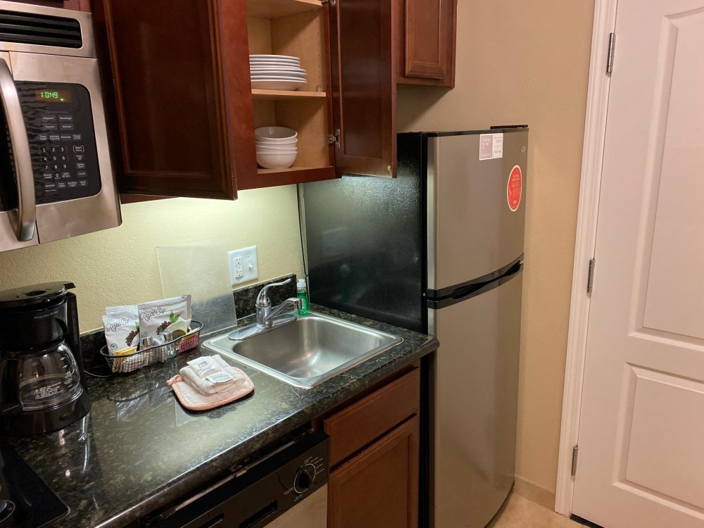 it's been a crazy busy several days. . sorry. quick update on the Hotel stay overnight on Sat. Made it from SeaWorld to the hotel in less than 20 minutes, and what a difference a Marriott Towneplace Suites is from that shitshow a few weeks ago at Hilton Garden Inn. at the Marriott, my room was ready at check in. .they handed me keys the moment I walked in (~ 11pm), and the room was not only clean and comfortable? but it was HUGE (with a full size fridge, a working kitchen (including dishwasher, stovetop, and microwave, plates/glasses/utensils. . even a cutting board). I realize it's because this was a little closer to Medical Center than it was to Fiesta Texas (which was still only ~8 minutes away). . but this place was amazing - and the room was less than $100 for the night. the only downside was that I was only staying one night, as the grounds were lovely with a nice pool on site too. . . oh - AND a large, and varied *free* breakfast included in the lobby. this is absolutely my go to hotel for overnights in S.A. for SW or SFFT now. pics of the hotel now, but hopefully tomorrow will have TONS of pics from the zoo. hope you like seeing animals/reptiles -