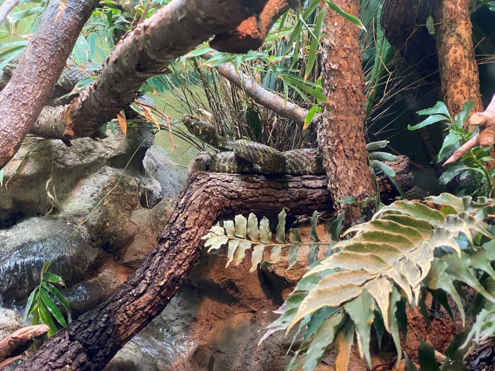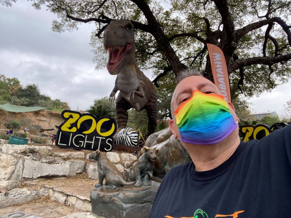 got up early-ish, and tho check out at the hotel wasn't until Noon, I knew the zoo opened at Noon and wanted to get there early, so headed out from the hotel by 11:15, and was pulling into the newish (and free) zoo parking garage by 11:30. this garage is great! It's a little bit further than parking at the Train Depot (but that lot is crazy to get out of because it's close to the zoo entrance and the kiddie amusement rides) - but this is up the hill and it's easy / peasy to get back to I10 (where I'd need to go to get back to SFFT - about 20 minutes away - later) Nick could have never made it up the hill after going around the zoo . . heck, he couldn't have made it down the hill and I would have had to get into the traffic to drop him off. But since was solo, chose the garage. which as noted is free during zoo hours and weekends. walking to the zoo entrance from the garage, there are lots of service pipes - that the Zoo has "arted" up.. . most of them are snakes, but this Elephant was so well done I had to grab a pic: oh my. . it's a little crowded today. This is the line for members and those who had prebought tix (thanks Groupon! I got mine online the day before. Saved $4 and let me bypass the gigantic line outside the main ticket booths that stretched all the way down the street). but yeah.. crowded enough the mask went on almost right away, even tho I was outside. I think because it was such an overcast day, that brought out the crowds - because sure enough, all the animals that normally would be "hiding" from the Noon sun? almost all were out and about. LOL.. even tho the big draw is the "Zoo Lights" - presented by Whataburger!!! (which I didn't really get to see, because I headed to Fiesta by 3pm.. tho it was overcast enough lots were on anyways). . they still had the Dinosaur displays thruout the park. Some of the Dinosaurs are animatronic - with limited movement - although no one was staffing *any* of the photo opportunities with the Dinos (they were instead staffing the photo ops with Santa, snow globes, Christmasy stuff). Still. . it was amusing the Dino is still at the entrance sign and thruout the zoo. a bear with the Bears: which, as I noted. . were out, because it was so overcast. I can relate dude. . I was exhausted from yesterday too. big boy out laying under the heatlamps is it wrong that I really want to paint his toenails hot pink? all the outdoor animals are pretty active today, thanks to it being cooler than typical for Texas. ooooo. . I love these tacky-ass things! These machines are all over the park, usually tied to whatever animal exhibit they are close to. and at $3, not too bad (tho I remember when they were $1). these are just outside the Reptile House. . .but they've already been swapped out from the Snakes/Lizards (or what I suspect was Dinosaurs) to reflect the Holiday stuff most folks pouring into the Zoo bypass the Reptile House because it's right at the entrance/exit, and they figure they'll hit it from the exit side on their way out. I peeked in and saw it was completely empty, so went in right away - better to be in a small, really small, building without 100 other people with Covid floating around - yes, even tho I'm vaxxed/boosted AND wearing a mask. No reason to put myself in a situation like that. worked out in my favor anyways, as with the zoo just opened, and no little kids tapping on the glass? almost all the snakes and lizards were hanging out near the front of their exhibits. well. .the King Cobra was hiding. .but she most often seems to be. She's back there tho, sorta in the open: [Kennywood] TURRRRRRR-TLLLLLEEEEEEE [/Kennywood] this guy is only found in Japan. sigh. . I miss Japan.. can't wait to get to go back! so rare to see almost all of the snakes out in full view! I really lucked out in this visit. Little dude just hanging out at the front window Not sure what this was. . think it's a BobCat. .it was pacing like crazy, and was so pretty. took about a dozen pics to get a couple that weren't blurry. this guy too was pacing/prowling so the San Antonio Zoo has a sense of humor too. in the "Darkroom" exhibit - that has a display with HUNDREDS of bats (the window was misted up from the humidity, so didnt' take a pic), the only other exhibit in there is: a Chupacabra. no. . really : HAHAHAHAHAHAHAHAHA !!! the San Antonio Zoo really is a beautiful Zoo. Tho you can totally tell the older, classic, zoo from the newer parts - this is one of the newer sections. Just lovely. (and yes, that's the zoo's carousel. . I'll get to that later after I loop all the way around) don't forget - sponsored by Whataburger! the newest thing they built is a Jaguar walk. .that goes over the walkway between the two halves of the Jaguar enclosure (on either side of the human pathway). They mostly seemed to be hanging out there sitting. . but they were a little more active when I came back by later. Still pretty neat to walk right under them. these HUGE squirrels have no fear. just rooting thru the flower beds, digging holes. dont' care about the hundreds of humans walking by. one of my favorite sections of the zoo: Africa Live. oh. and an inflatable Whataburger Bag says "Merry Christmas" while a lonely Dino hangs out in the background wondering "what about me? the kids don't wanna see me???" the San Antonio zoo has some great artwork/sculpture thruout as well. . . these metal Hippos are among my favorites. and I had to wait a good 10 minutes to get this picture (without unattended toddlers climbing all over them) of course the metal Hippos are just outside the Hippo Exhibit. yay! Hippos! (and yay! in a rarity at a zoo. . the hippos didn't poop while I was there looking at them. it's apparently my superpower, making hippos poop, since they seem to always do that in any zoo we go to, and then I have to wait for the water to clear up before I can take a picture). No poop today tho! the crock was just laying in the sunlamp enjoying an unattended Dino photo op? well. . the 