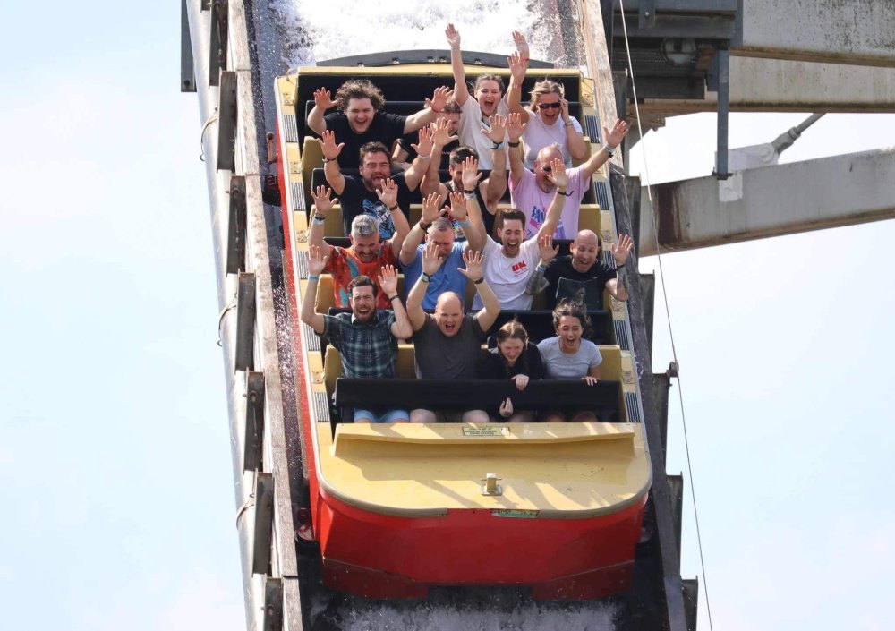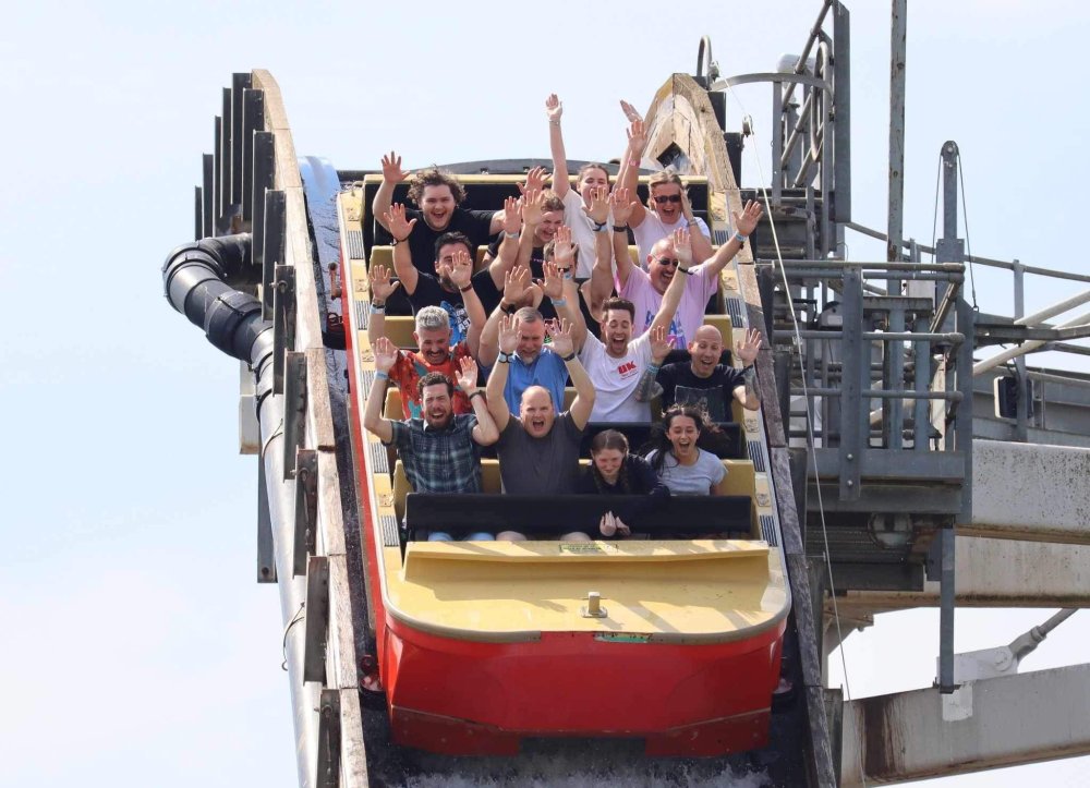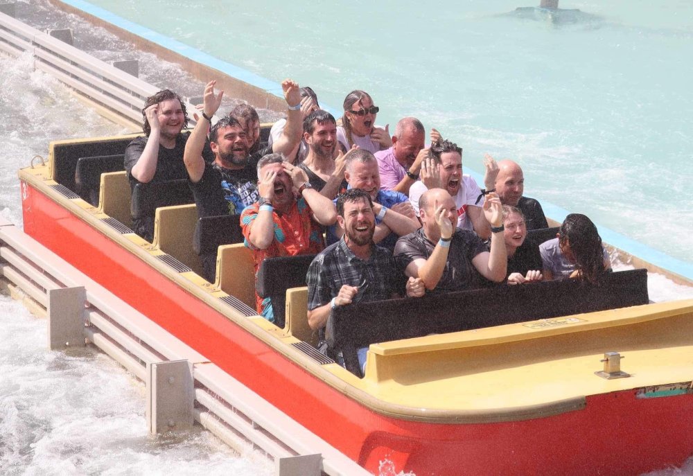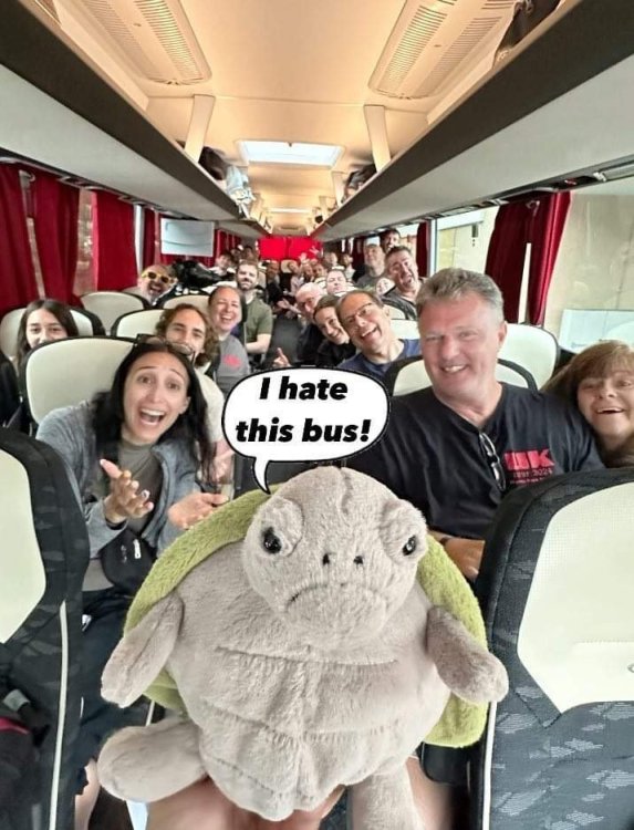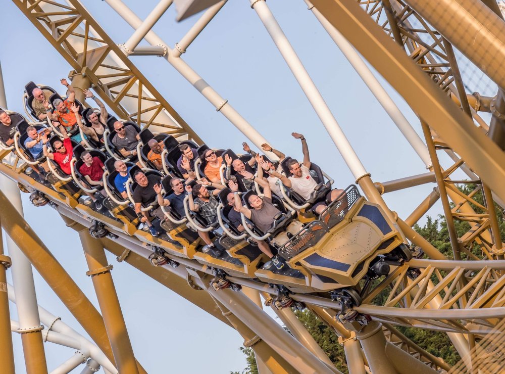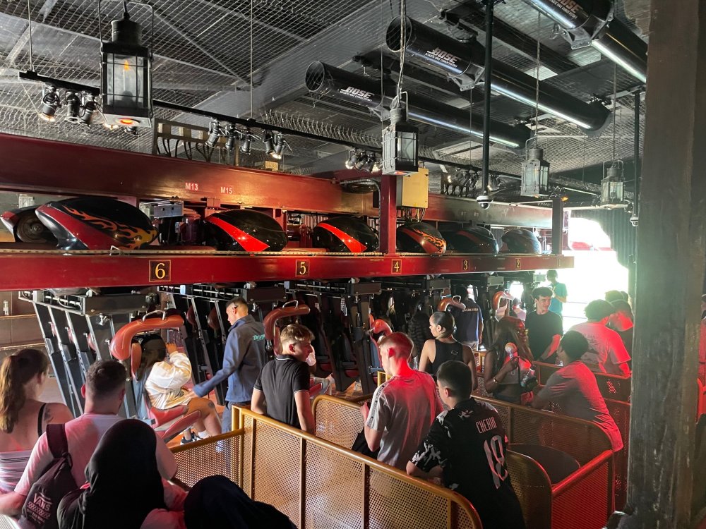 Day 2 (part 2): Thorpe Park! We also went and did the "Ghost Train" - which I knew nothing about, but had been recommended by several park employees I had talked to. It's not really a "ride" but rather an experience - an interactive show, with some brilliant special effects and a set that "moves". . so it feels like you trapped on a train that's moving as crazy things happen. It was very cool and I loved it so much I bought multiple Magnets from it. . and was looking to buy a shirt for it (but they didn't have anything I really loved). for some strange reason, I don't have ANY pictures of this ride - I'm shocked myself. I know I was incredibly distracted (or as my friends call it "dickstracted") by a cute bear couple that was in the queue with us - which would explain why I have no pics of the outside of the ride. And you couldn't take pics during the experience. but still. . I'm truly surprised I don't have any pics. . LOL I think it was around this time, that (*I think) we got a message from Robb asking who wanted to ride the Tidal Wave as a group, and if so, meet by the ride. So a whole bunch of TPR folks got together, and our park guild got them to set aside a boat for TPR (plus one family who were added to the back row not realizing a completely full TPR boat was gonna be heavy and get a bigger splash) and off we went. COMPLETELY soaked. . like being dipped into a bathtub. . and I loved it. the following pics are all from either Robb or Andy, I believe: the aftermath. . posing in front of the next boat's splash. with time in the day running out, several of us headed to the last section of the park - seemed to be themed to a lost Jungle/ruins, to ride the flats over there: a giant swing, an Enterprise, a Flying Carpet, and a "claw" the swing was ok, but kind of underwhelming to me because a) the cycle was so short, and b) I've been on the tallest one at SWSA here in Texas. it was fun, but not exciting, if that makes sense. loved the theming over here tho. . .very, very green and "overgrown" looking, but with rides just popping up in the center of it. Zodiac is the Enterprise. the Flying Carpet went down while we were in queue for the Enterprise (had to wait for next cycle), so didn't get to ride that - think it was just too close to end of day for Maintenance to mess with it today . . but it framed Swarm very nicely for a picture I thought and the claw was also over here. see? I LOVE Enterprises (Robb just asked about who loves them on the TPR Facebook page) . . . this one didn't run a great cycle. . and it was really quick considering how long it took the one operator to get it loaded. . but any Enterprise is a fun Enterprise. it was so close to the end of night, that Stacey and I hit a store for shopping before heading back to the Pavilion to meet up with the group. no, I didn't buy this. . but I was VERY tempted. LOL.. if it hadn't been at the start of the trip and I was already worrying about suitcase space, prolly would have grabbed it. as we waited for the park to clear (and more importantly the Hyperia line to clear thru), we headed over to Swarm for our 1st ERT. apparently the theming is an alien invasion. . tho Thorpe park does seem to have a thing for wrecked planes (there were several of them thruout the park as theming. . LOL). but I loved this. and I was actually sorry I hadn't gone over here during the daytime, as I absolutely LOVED this B&M Flyer. my favorite ride in the park, and I think I rode every cycle of our ERT. glass smooth with an amazing diving first drop, and an inversion over/thru the station - which is themed to a bombed out Church. the inversion I mentioned, from inside the station the design of the trains is SO good. . this is the back of the row in front of us! Pic courtesy of Elissa, I believe (or possibly Robb) following pics courtesy of Elissa, Robb, or Andy: whee. . . front row! after 25 minutes or so at Swarm (and I think 9 rides), we headed as a group over to Hyperia. HAHAHAHAHA. . and I actually *did* get a pic of the front of Ghost Train as we walked past it. so good on me. . tho all closed up, doesn't look too exciting. and here is the main course. . ERT on Hyperia. after it had warmed up and was running amazing. Edit: D'oh!!! that's Kristen with her Dad (Robb) in the seats behind me in this pic! She looks so much like her Mom! So this pic must be courtesy of Elissa. I couldn't ride Hyperia over and over, as by the end of the day, it was a wee bit too intense for me (I kept having to tuck my shirt back in after riding)! . . . so I didn't do every cycle, but I did ride 2, then rest, then 2 then rest, then 2 - including last ride. so I THINK I got six rides on it at end of night during our ERT? but some in the group ride every dispatch. . . more power to em! and they look like they are having a blast! end of night pic with our park guides, and the crew. . thank you to Thorpe Park for an amazing day! Pic by Robb and then it was time to head back to the bus for the ride back to the hotel. I *believe* this stunning pic of Stealth during sunset is from Brad. and back on the bus. .everyone is happy. . . except for Robb's plushie. getting back to the hotel, several of us headed back over to WagaMama for dinner. . . not really recalling what this is, but I think Firecracker chicken & pasta? and Gyoza. . so good. and after filling up on Wagamama? back to the room to shower, and crash. we had another busy day tomorrow - checking out of Hotel and off to the next hotel. but along the way? Suprise Park! we were gonna visit LegoLand Windsor for a few hours, and ride their brand new "mini figure speedway" dueling coaster. hopefully won't take me a month for that next update!