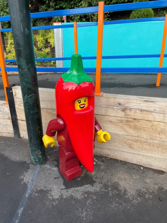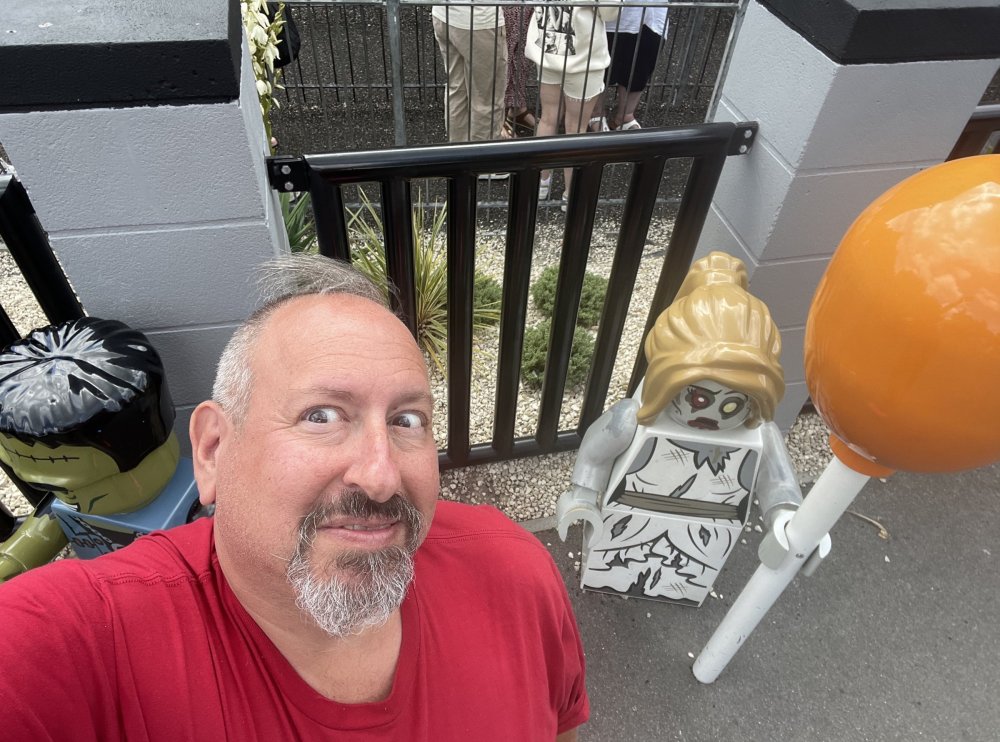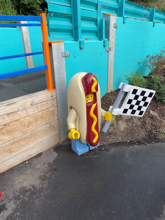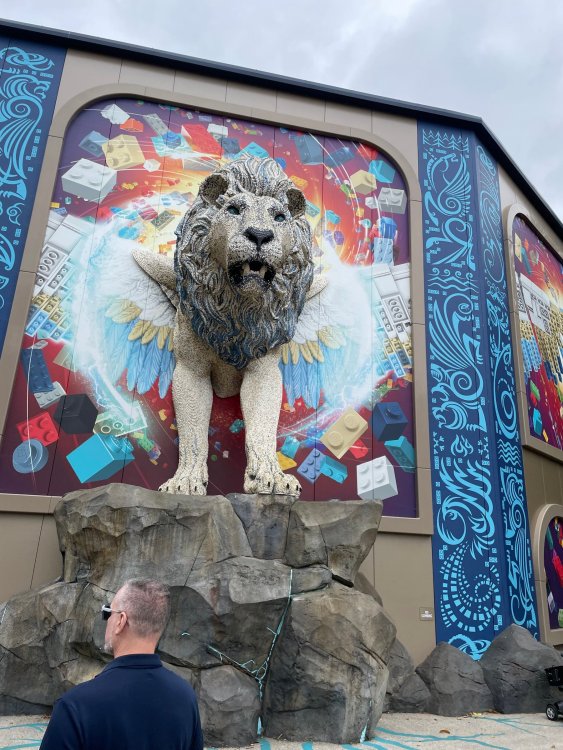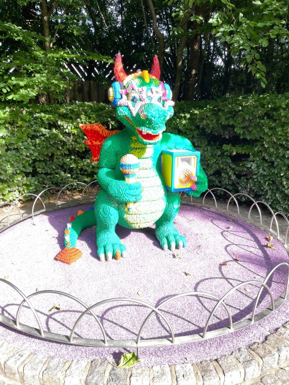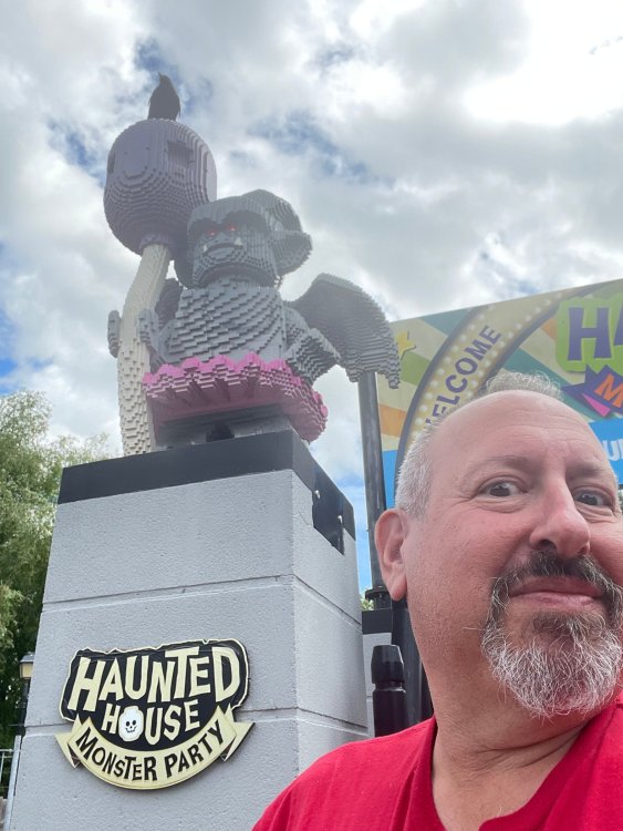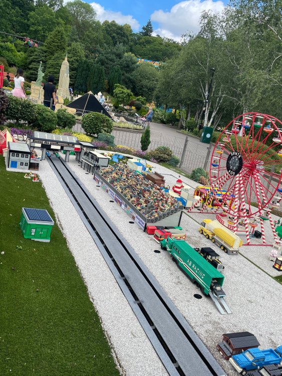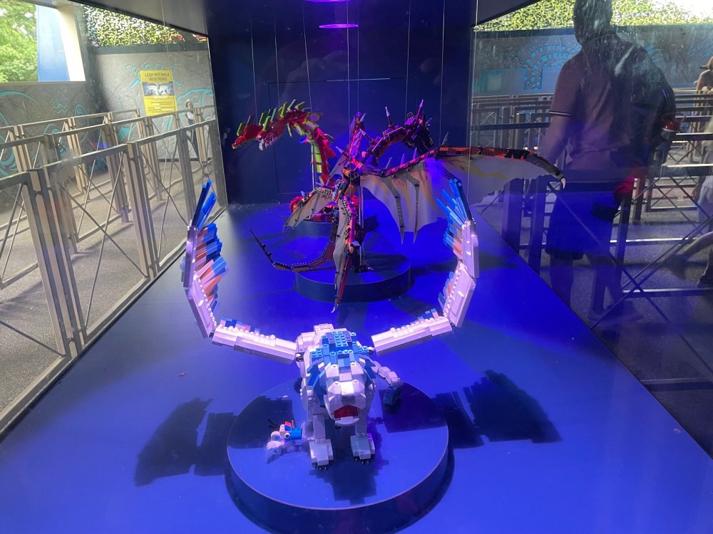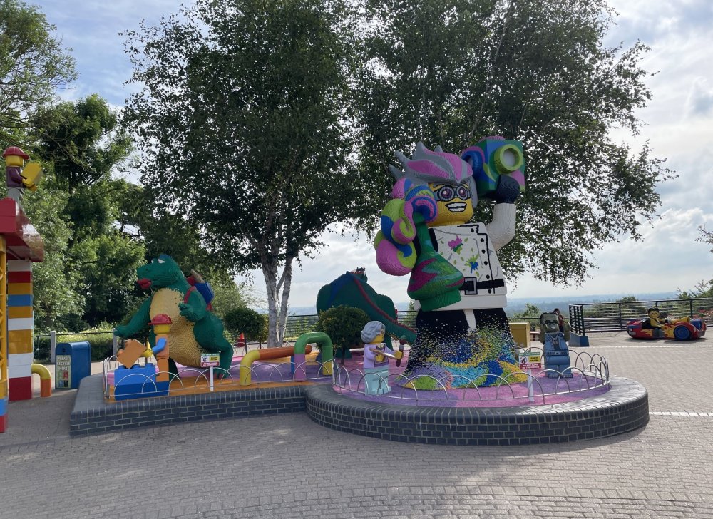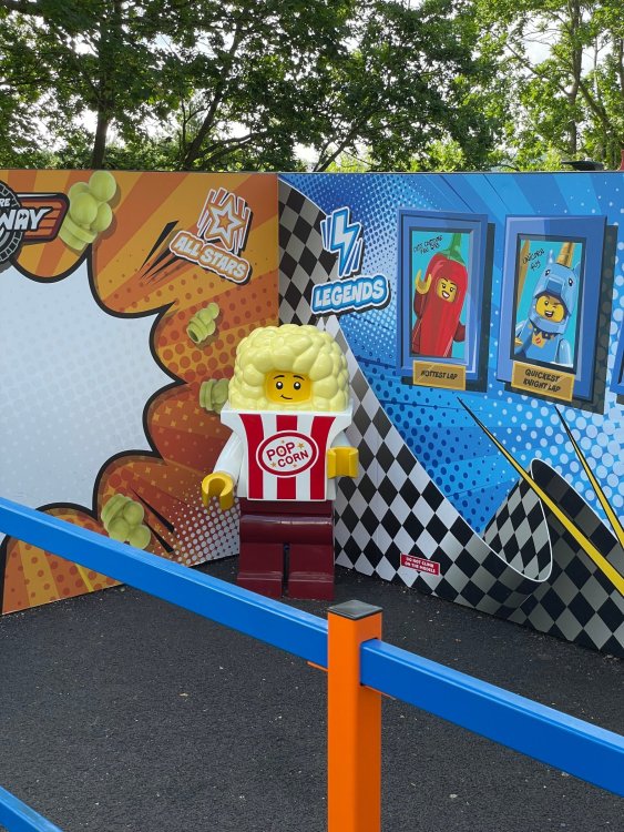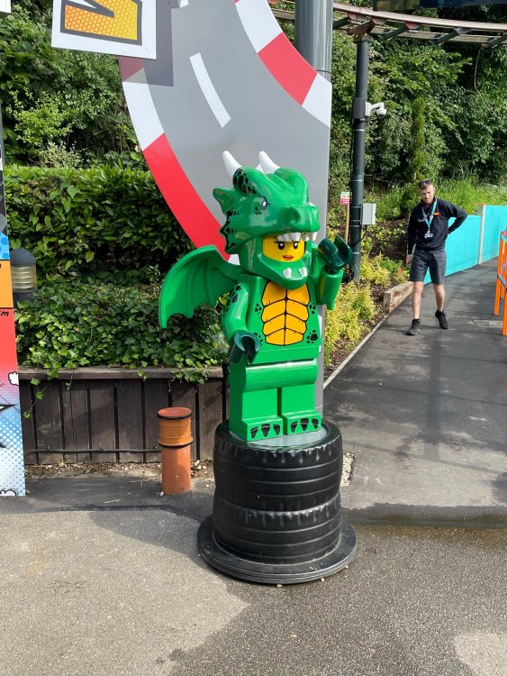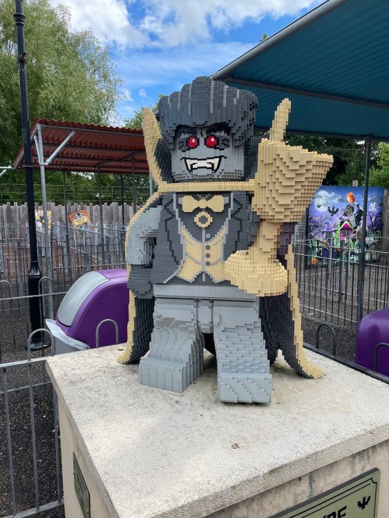 well, I certainly jinxed myself, didn't I? Tho I guess *technically* it didn't take me a month for the next update..it took me almost 7 weeks (whoops). and that I went to Oktoberfest with TPR earlier this month, means that I'll have two trip reports running concurrently - but gonna TRY to keep things sorta consistent. so onward. . day 3: Legoland Windsor! where we stopped for a visit on our way to Swansea, Wales. our first "Surprise Park" of the trip. we got there before opening, and not only is it a gorgeous setting, but it's up in the hills. . so lots and lots of walking (turns out there is a funicular that we could have used to get back up later but I didn't spot that until we were almost back at the front gates near the top. . . LOL) Group Pic courtesy of Robb this park is just beautiful. . . just look at that view (more on that later). the park is all "hidden" down steep pathways below us. a slow moving monorail type ride. . one of my favorite "stupid" rides that I love doing at parks. and tons of "full size" mini-figs sprinkled all thruout the park as we were walking down. this is what we were headed towards. . the park's brand new Dueling Family Boomerang coaster! we got to watch it testing, and I love the theming on this. . .they even did a "crash thru" of a billboard. . . forwards and backwards. . the heavier train did seem to win most times. . . and out front is the "World's Biggest Mini-fig", Roxie ! Group Pic with Roxie, courtesy of Robb time to ride! I believe they CAN operate just one side, but where's the fun in that?? ya gotta race! and that means, of course, riding both sides. first I rode blue (and our train won) and then I rode Orange, and we won again! (and I'm not taking credit for making the train that much heavier ) but it really is a rather fun family boomerang (by Zierer, not Vekoma). it wasn't "meh" at all, and I think it will be a huge hit for the park. our next stop was walking over to the Castle for DragonCoaster, just before official park open. we passed by Mini-land to cut thru and I snapped some pics while walking, but most of the mini-land pics will be in the next post. the famous Fire Academy at this Legoland hadn't opened for business yet when we passed it. nor had the shooting mummy dark ride, but we'd come back for this once turned loose in the park. and before we knew it (after walking a bit, as it's a larger park than it appears) we were at the Castle for the Lego-land signature Dark Ride/Coaster, Dragon. no cameras allowed on ride, but I had gotten an ok to take pics while in queue. . . so at least got the adorable train! group pic in front of Dragon Coaster courtesy of Robb ummm. . . . other than the Duplo Kiddie coaster, the only other coaster at LegoLand Windsor is the family, Dragon's Apprentice - and that was down today. . so we were cut loose and a group of us made our way into the park. several of us did the Mummy Shooting ride, and then noticed the Train was about to pull up (the Mummy ride queue actually crosses the train tracks in the center, and had a woman with stop signs there to ensure no one was on the tracks when the train passed thru the queue. . a bit odd, but charming). so we hopped on the train for a trip around the park lots of theming around the tracks on this train ride: the boats didnt' appear to be on a track here, and it was a pretty large course too. we had limited time here tho, and I was more interested in the SeaLife Aquarium and the mini-land. . so had to pick and choose what to do. and of course have to stop for any photo ops! we had been advised by our guides that the flying theatre here was pretty good and to not miss it, so headed over that way into the "Mythica" area of the park. I really loved how the queue has lego creations of the creatures featured in the film. (having now been to LegoLand Germany, and ridden their coaster that's also themed to the Tri-Lion, I know they use these same models in that queue too. . making them a bit less unique. but still rather cool) after the aquarium (and I think the Ninjago area. . which I strangely have no pics of, but probably because was rushing to get things done on my list). . I did stop for a photo op. and then it was time to head to my last "biggie" here. .the haunted house. which was right across from the lego boats, so got some more pics of those as we passed by. the queue for the Haunted House is adorable. I remembered how the Haunted House in LegoLand Billund ended in a surprise ride, so was looking forwards to what this one might contain. oh my. . it's a dance party in the lobby. no, really. . and it was fun and we all danced. and then you go into the house, and the actual whole thing is a ride - it's a madhouse! (a gentle one, but I always love a madhouse). splitting up to hit the last things we wanted to get on, Stacey and I headed to the kiddie area, as she really wanted the Duplo kiddie coaster credit. passing by the Fire Academy, it was busy this time, so snapped some pics (it's a real workout!) I think what I liked best about the Duplo Coaster (besides how absolutely adorable it is), is the setting - it's just below the new Coaster (s). . so from that line, you can get some good pics of the racing boomerang. D'awwwwww. . . OMG . . it's so cute! so even tho I tend not to ride kiddie coasters? yeah, I had to ride this one. and I spotted this just across the walkway from it. . which checks EVERY single box for "dumb ride that bert will love" it goes up and down. .and turns a little bit. . that's really it. of COURSE I had to ride it. thanks to Stacey for the pics after time spent in Mini-Land, we started our trek back up the path towards the front - making sure to leave us enough time to get back since the park is so large. lots more figs and things to look at on the way back up too. I even found the figure I had bought a magnet of earlier in the day! back at the top. . check out this view! I believe that's London way off in the distance? and from the park? A 
