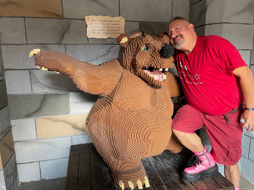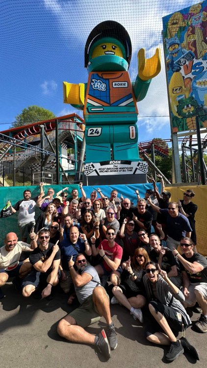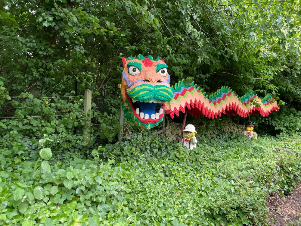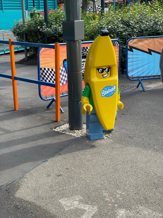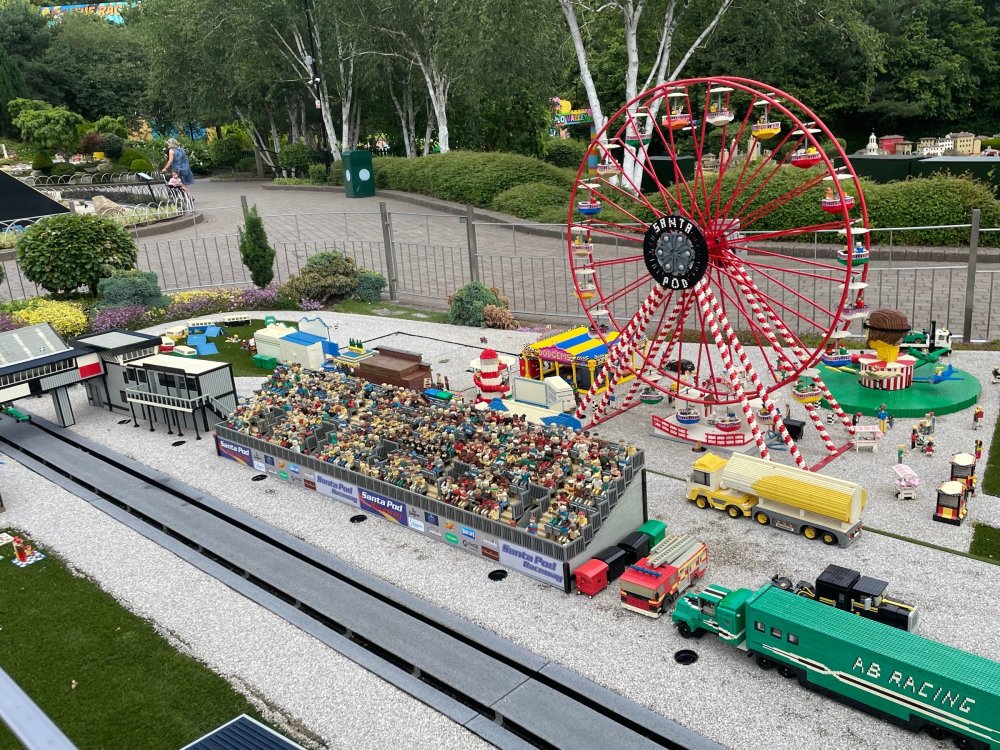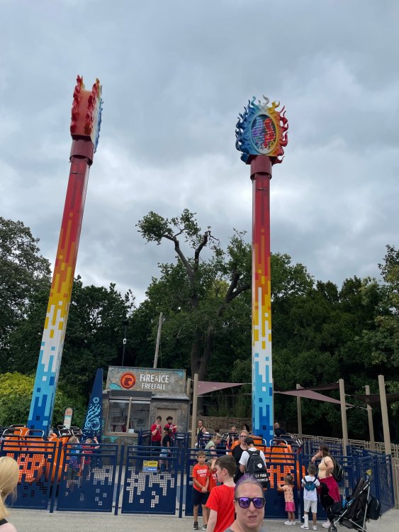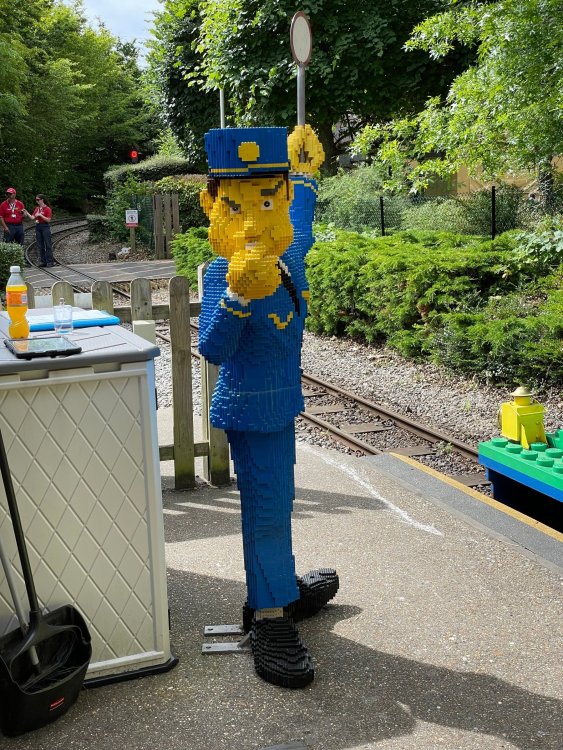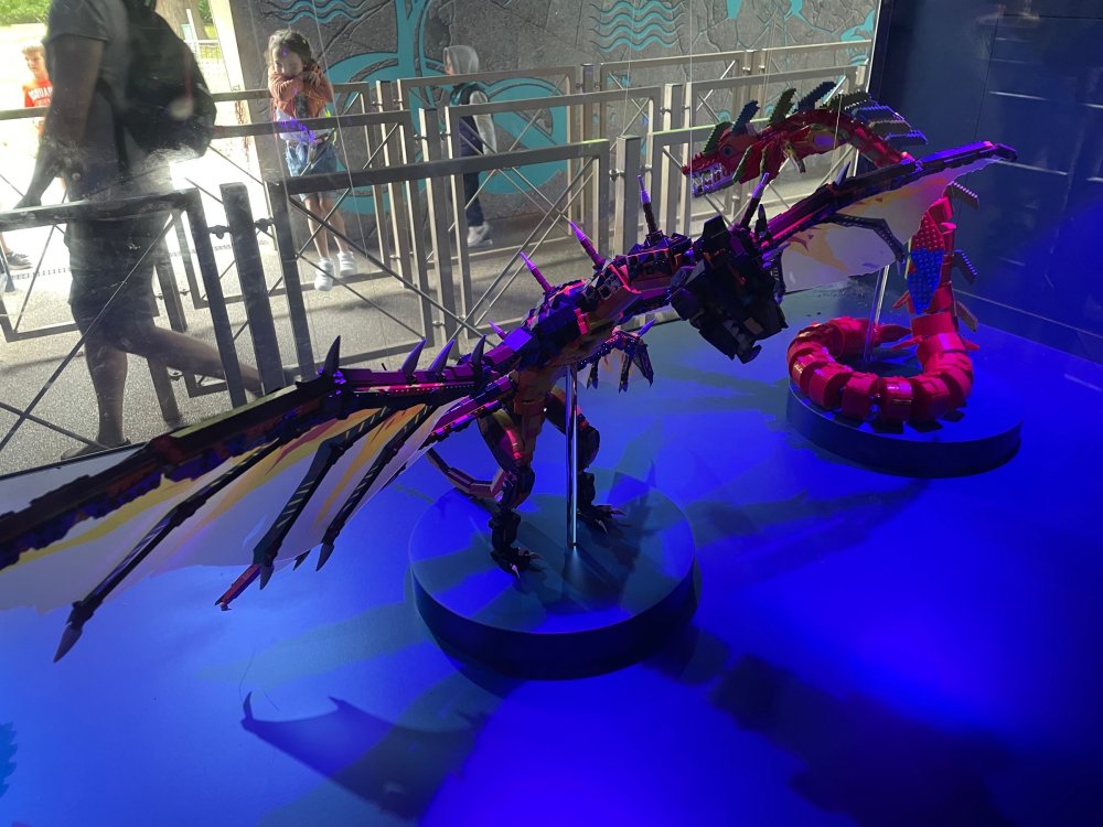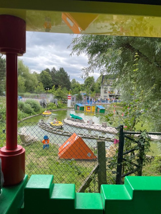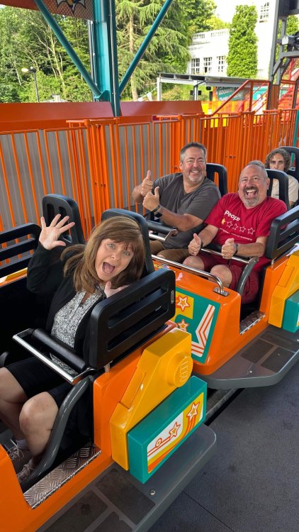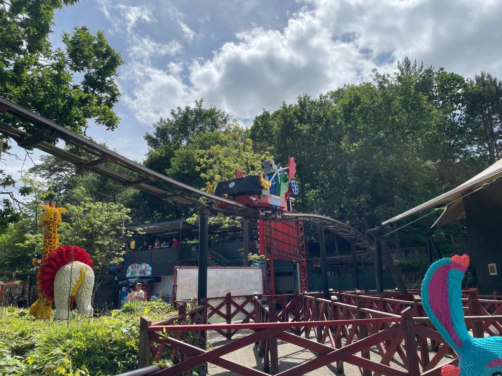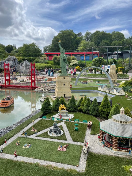 well, I certainly jinxed myself, didn't I? Tho I guess *technically* it didn't take me a month for the next update..it took me almost 7 weeks (whoops). and that I went to Oktoberfest with TPR earlier this month, means that I'll have two trip reports running concurrently - but gonna TRY to keep things sorta consistent. so onward. . day 3: Legoland Windsor! where we stopped for a visit on our way to Swansea, Wales. our first "Surprise Park" of the trip. we got there before opening, and not only is it a gorgeous setting, but it's up in the hills. . so lots and lots of walking (turns out there is a funicular that we could have used to get back up later but I didn't spot that until we were almost back at the front gates near the top. . . LOL) Group Pic courtesy of Robb this park is just beautiful. . . just look at that view (more on that later). the park is all "hidden" down steep pathways below us. a slow moving monorail type ride. . one of my favorite "stupid" rides that I love doing at parks. and tons of "full size" mini-figs sprinkled all thruout the park as we were walking down. this is what we were headed towards. . the park's brand new Dueling Family Boomerang coaster! we got to watch it testing, and I love the theming on this. . .they even did a "crash thru" of a billboard. . . forwards and backwards. . the heavier train did seem to win most times. . . and out front is the "World's Biggest Mini-fig", Roxie ! Group Pic with Roxie, courtesy of Robb time to ride! I believe they CAN operate just one side, but where's the fun in that?? ya gotta race! and that means, of course, riding both sides. first I rode blue (and our train won) and then I rode Orange, and we won again! (and I'm not taking credit for making the train that much heavier ) but it really is a rather fun family boomerang (by Zierer, not Vekoma). it wasn't "meh" at all, and I think it will be a huge hit for the park. our next stop was walking over to the Castle for DragonCoaster, just before official park open. we passed by Mini-land to cut thru and I snapped some pics while walking, but most of the mini-land pics will be in the next post. the famous Fire Academy at this Legoland hadn't opened for business yet when we passed it. nor had the shooting mummy dark ride, but we'd come back for this once turned loose in the park. and before we knew it (after walking a bit, as it's a larger park than it appears) we were at the Castle for the Lego-land signature Dark Ride/Coaster, Dragon. no cameras allowed on ride, but I had gotten an ok to take pics while in queue. . . so at least got the adorable train! group pic in front of Dragon Coaster courtesy of Robb ummm. . . . other than the Duplo Kiddie coaster, the only other coaster at LegoLand Windsor is the family, Dragon's Apprentice - and that was down today. . so we were cut loose and a group of us made our way into the park. several of us did the Mummy Shooting ride, and then noticed the Train was about to pull up (the Mummy ride queue actually crosses the train tracks in the center, and had a woman with stop signs there to ensure no one was on the tracks when the train passed thru the queue. . a bit odd, but charming). so we hopped on the train for a trip around the park lots of theming around the tracks on this train ride: the boats didnt' appear to be on a track here, and it was a pretty large course too. we had limited time here tho, and I was more interested in the SeaLife Aquarium and the mini-land. . so had to pick and choose what to do. and of course have to stop for any photo ops! we had been advised by our guides that the flying theatre here was pretty good and to not miss it, so headed over that way into the "Mythica" area of the park. I really loved how the queue has lego creations of the creatures featured in the film. (having now been to LegoLand Germany, and ridden their coaster that's also themed to the Tri-Lion, I know they use these same models in that queue too. . making them a bit less unique. but still rather cool) after the aquarium (and I think the Ninjago area. . which I strangely have no pics of, but probably because was rushing to get things done on my list). . I did stop for a photo op. and then it was time to head to my last "biggie" here. .the haunted house. which was right across from the lego boats, so got some more pics of those as we passed by. the queue for the Haunted House is adorable. I remembered how the Haunted House in LegoLand Billund ended in a surprise ride, so was looking forwards to what this one might contain. oh my. . it's a dance party in the lobby. no, really. . and it was fun and we all danced. and then you go into the house, and the actual whole thing is a ride - it's a madhouse! (a gentle one, but I always love a madhouse). splitting up to hit the last things we wanted to get on, Stacey and I headed to the kiddie area, as she really wanted the Duplo kiddie coaster credit. passing by the Fire Academy, it was busy this time, so snapped some pics (it's a real workout!) I think what I liked best about the Duplo Coaster (besides how absolutely adorable it is), is the setting - it's just below the new Coaster (s). . so from that line, you can get some good pics of the racing boomerang. D'awwwwww. . . OMG . . it's so cute! so even tho I tend not to ride kiddie coasters? yeah, I had to ride this one. and I spotted this just across the walkway from it. . which checks EVERY single box for "dumb ride that bert will love" it goes up and down. .and turns a little bit. . that's really it. of COURSE I had to ride it. thanks to Stacey for the pics after time spent in Mini-Land, we started our trek back up the path towards the front - making sure to leave us enough time to get back since the park is so large. lots more figs and things to look at on the way back up too. I even found the figure I had bought a magnet of earlier in the day! back at the top. . check out this view! I believe that's London way off in the distance? and from the park? A 