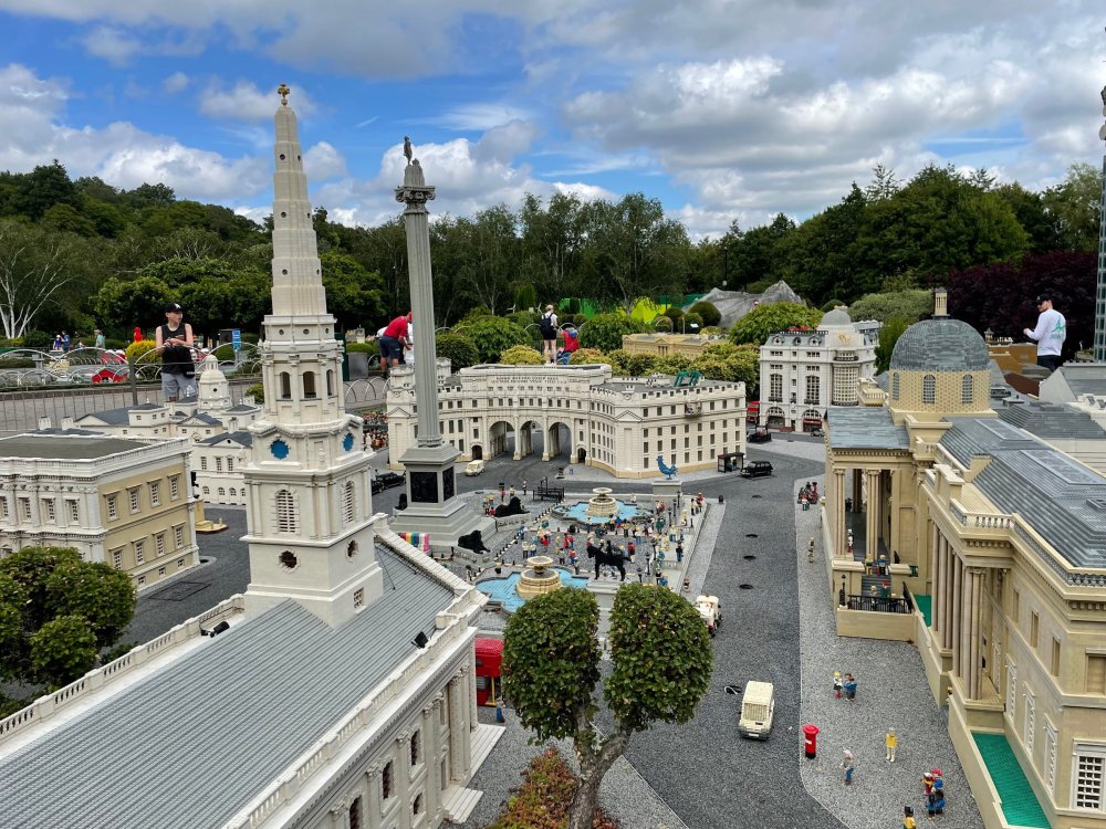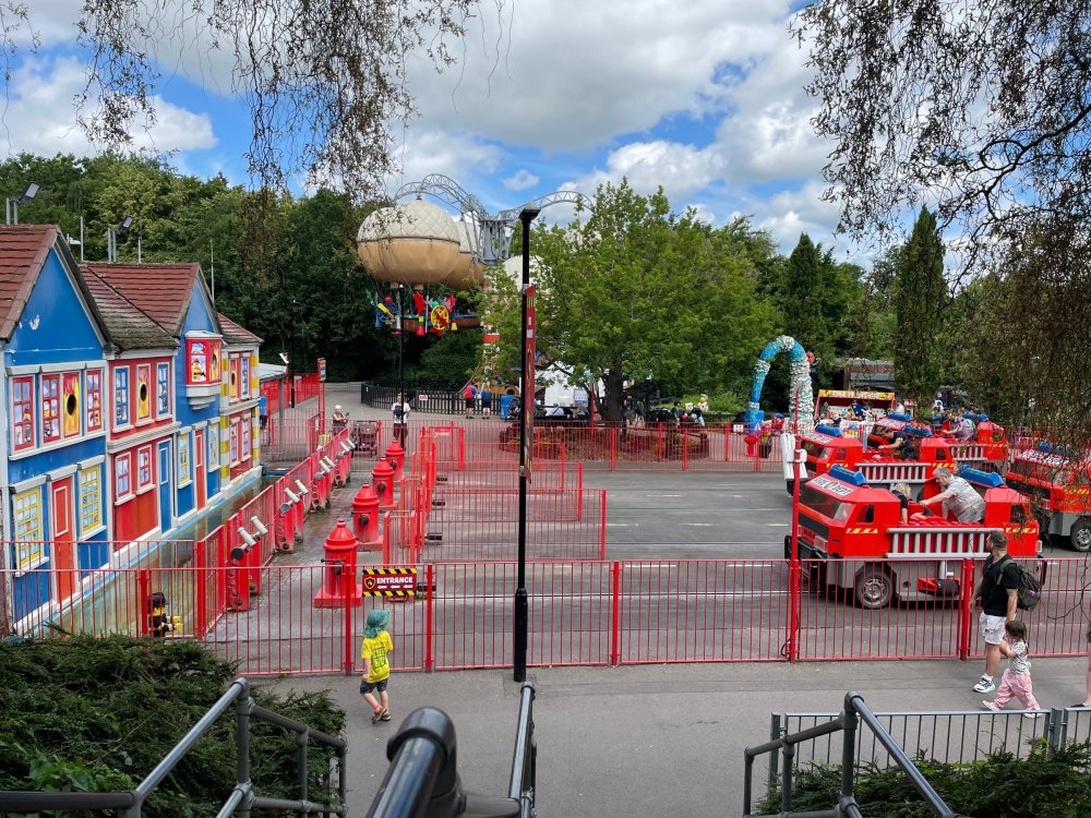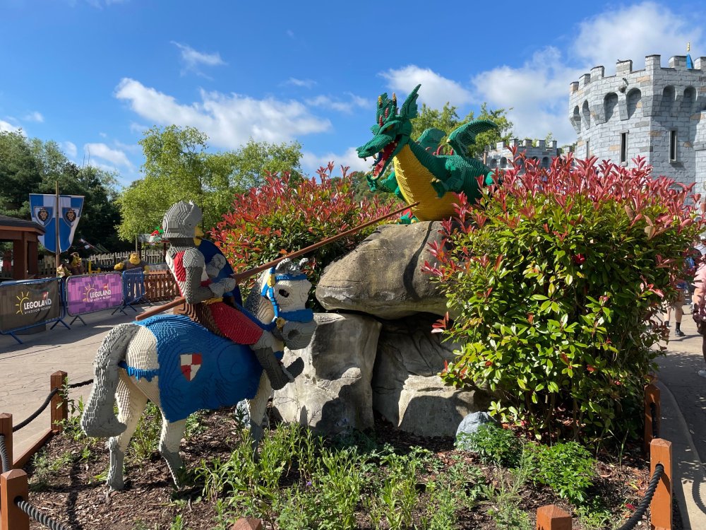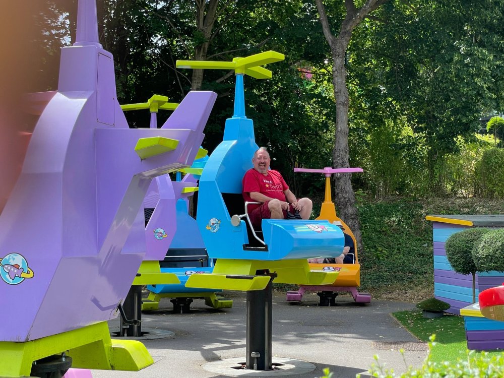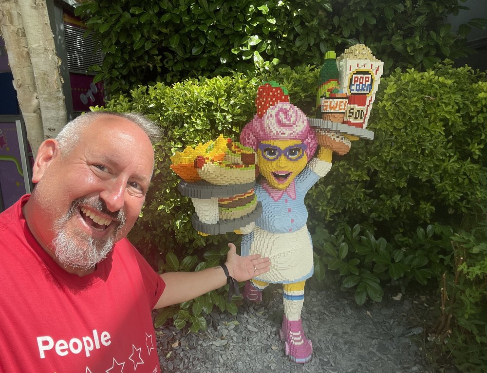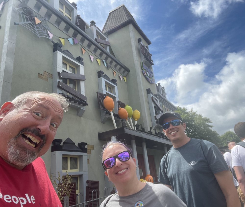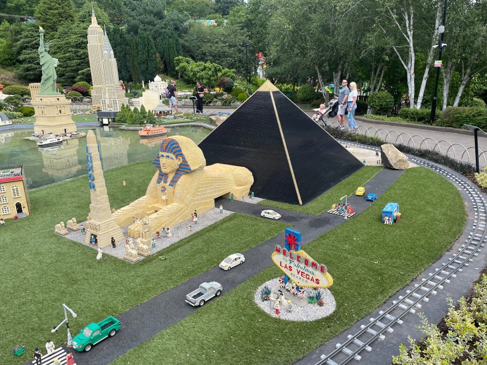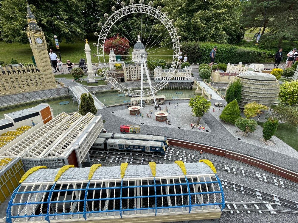 well, I certainly jinxed myself, didn't I? Tho I guess *technically* it didn't take me a month for the next update..it took me almost 7 weeks (whoops). and that I went to Oktoberfest with TPR earlier this month, means that I'll have two trip reports running concurrently - but gonna TRY to keep things sorta consistent. so onward. . day 3: Legoland Windsor! where we stopped for a visit on our way to Swansea, Wales. our first "Surprise Park" of the trip. we got there before opening, and not only is it a gorgeous setting, but it's up in the hills. . so lots and lots of walking (turns out there is a funicular that we could have used to get back up later but I didn't spot that until we were almost back at the front gates near the top. . . LOL) Group Pic courtesy of Robb this park is just beautiful. . . just look at that view (more on that later). the park is all "hidden" down steep pathways below us. a slow moving monorail type ride. . one of my favorite "stupid" rides that I love doing at parks. and tons of "full size" mini-figs sprinkled all thruout the park as we were walking down. this is what we were headed towards. . the park's brand new Dueling Family Boomerang coaster! we got to watch it testing, and I love the theming on this. . .they even did a "crash thru" of a billboard. . . forwards and backwards. . the heavier train did seem to win most times. . . and out front is the "World's Biggest Mini-fig", Roxie ! Group Pic with Roxie, courtesy of Robb time to ride! I believe they CAN operate just one side, but where's the fun in that?? ya gotta race! and that means, of course, riding both sides. first I rode blue (and our train won) and then I rode Orange, and we won again! (and I'm not taking credit for making the train that much heavier ) but it really is a rather fun family boomerang (by Zierer, not Vekoma). it wasn't "meh" at all, and I think it will be a huge hit for the park. our next stop was walking over to the Castle for DragonCoaster, just before official park open. we passed by Mini-land to cut thru and I snapped some pics while walking, but most of the mini-land pics will be in the next post. the famous Fire Academy at this Legoland hadn't opened for business yet when we passed it. nor had the shooting mummy dark ride, but we'd come back for this once turned loose in the park. and before we knew it (after walking a bit, as it's a larger park than it appears) we were at the Castle for the Lego-land signature Dark Ride/Coaster, Dragon. no cameras allowed on ride, but I had gotten an ok to take pics while in queue. . . so at least got the adorable train! group pic in front of Dragon Coaster courtesy of Robb ummm. . . . other than the Duplo Kiddie coaster, the only other coaster at LegoLand Windsor is the family, Dragon's Apprentice - and that was down today. . so we were cut loose and a group of us made our way into the park. several of us did the Mummy Shooting ride, and then noticed the Train was about to pull up (the Mummy ride queue actually crosses the train tracks in the center, and had a woman with stop signs there to ensure no one was on the tracks when the train passed thru the queue. . a bit odd, but charming). so we hopped on the train for a trip around the park lots of theming around the tracks on this train ride: the boats didnt' appear to be on a track here, and it was a pretty large course too. we had limited time here tho, and I was more interested in the SeaLife Aquarium and the mini-land. . so had to pick and choose what to do. and of course have to stop for any photo ops! we had been advised by our guides that the flying theatre here was pretty good and to not miss it, so headed over that way into the "Mythica" area of the park. I really loved how the queue has lego creations of the creatures featured in the film. (having now been to LegoLand Germany, and ridden their coaster that's also themed to the Tri-Lion, I know they use these same models in that queue too. . making them a bit less unique. but still rather cool) after the aquarium (and I think the Ninjago area. . which I strangely have no pics of, but probably because was rushing to get things done on my list). . I did stop for a photo op. and then it was time to head to my last "biggie" here. .the haunted house. which was right across from the lego boats, so got some more pics of those as we passed by. the queue for the Haunted House is adorable. I remembered how the Haunted House in LegoLand Billund ended in a surprise ride, so was looking forwards to what this one might contain. oh my. . it's a dance party in the lobby. no, really. . and it was fun and we all danced. and then you go into the house, and the actual whole thing is a ride - it's a madhouse! (a gentle one, but I always love a madhouse). splitting up to hit the last things we wanted to get on, Stacey and I headed to the kiddie area, as she really wanted the Duplo kiddie coaster credit. passing by the Fire Academy, it was busy this time, so snapped some pics (it's a real workout!) I think what I liked best about the Duplo Coaster (besides how absolutely adorable it is), is the setting - it's just below the new Coaster (s). . so from that line, you can get some good pics of the racing boomerang. D'awwwwww. . . OMG . . it's so cute! so even tho I tend not to ride kiddie coasters? yeah, I had to ride this one. and I spotted this just across the walkway from it. . which checks EVERY single box for "dumb ride that bert will love" it goes up and down. .and turns a little bit. . that's really it. of COURSE I had to ride it. thanks to Stacey for the pics after time spent in Mini-Land, we started our trek back up the path towards the front - making sure to leave us enough time to get back since the park is so large. lots more figs and things to look at on the way back up too. I even found the figure I had bought a magnet of earlier in the day! back at the top. . check out this view! I believe that's London way off in the distance? and from the park? A 