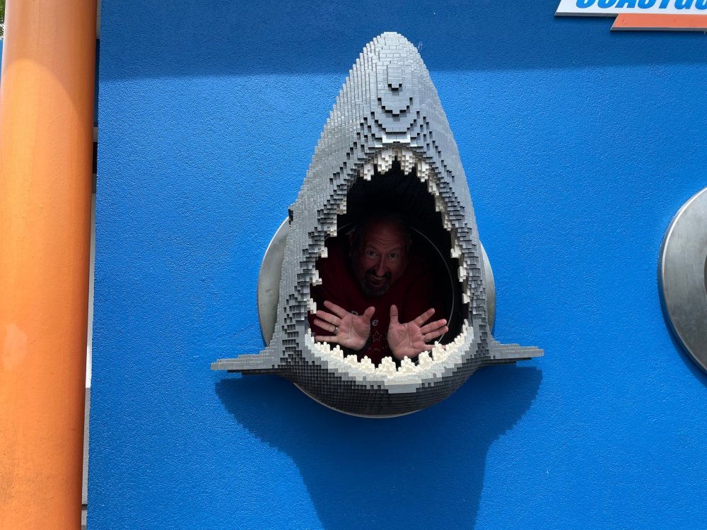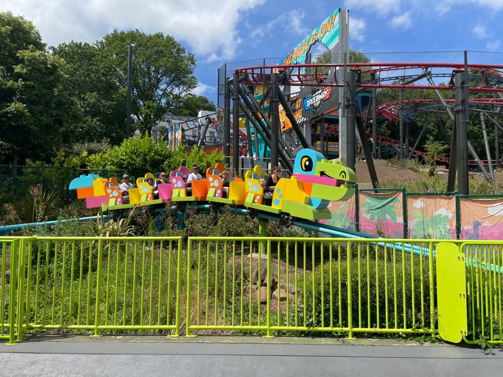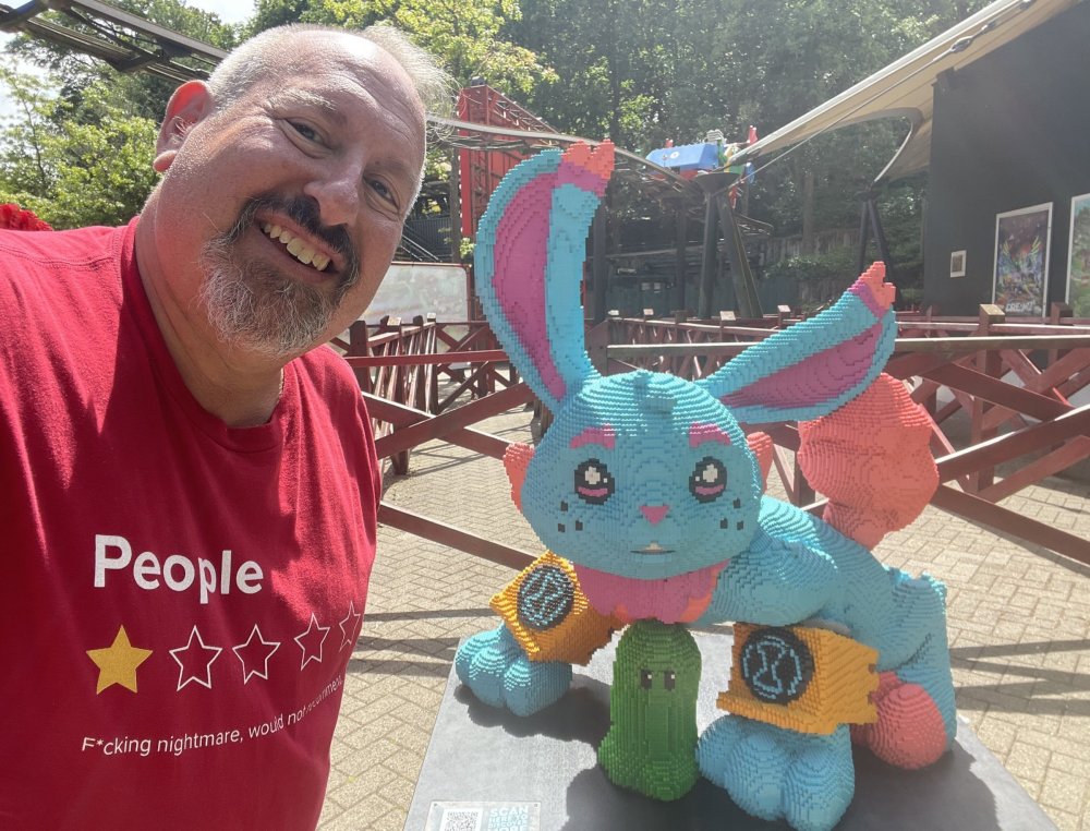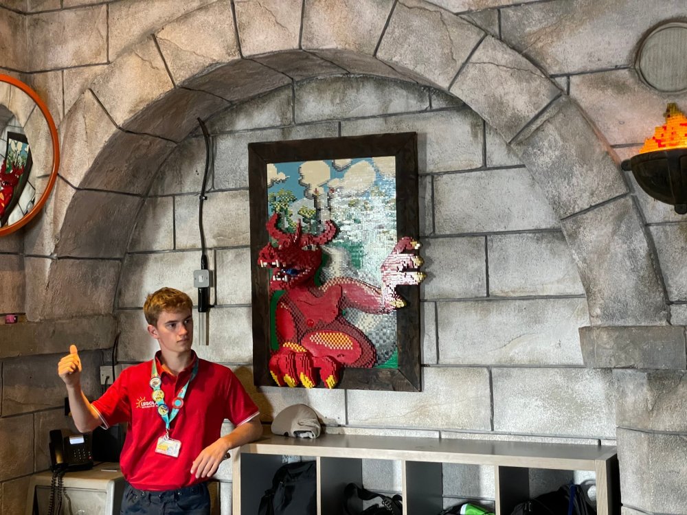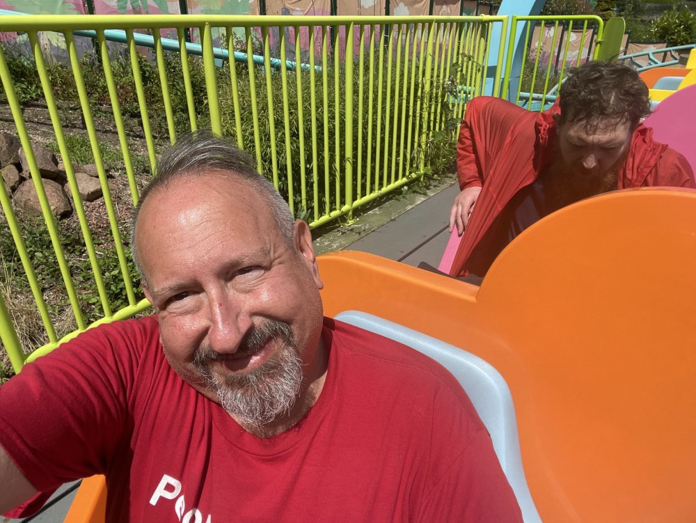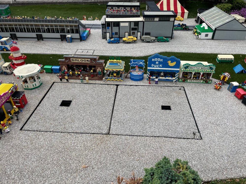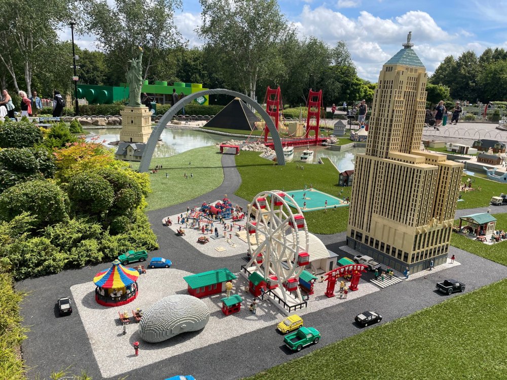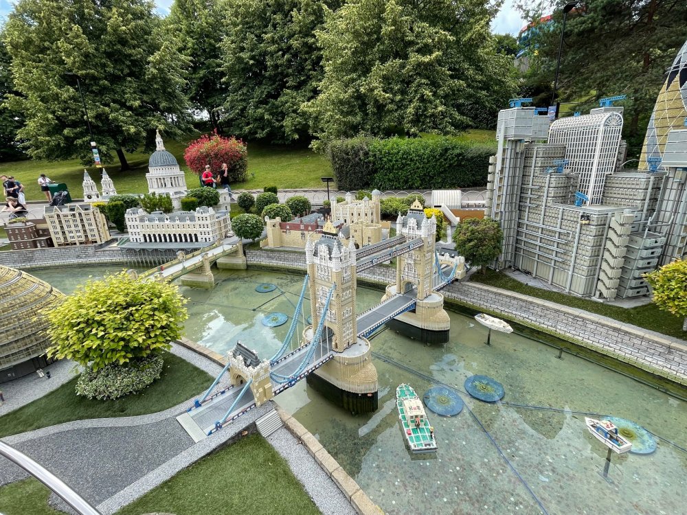 well, I certainly jinxed myself, didn't I? Tho I guess *technically* it didn't take me a month for the next update..it took me almost 7 weeks (whoops). and that I went to Oktoberfest with TPR earlier this month, means that I'll have two trip reports running concurrently - but gonna TRY to keep things sorta consistent. so onward. . day 3: Legoland Windsor! where we stopped for a visit on our way to Swansea, Wales. our first "Surprise Park" of the trip. we got there before opening, and not only is it a gorgeous setting, but it's up in the hills. . so lots and lots of walking (turns out there is a funicular that we could have used to get back up later but I didn't spot that until we were almost back at the front gates near the top. . . LOL) Group Pic courtesy of Robb this park is just beautiful. . . just look at that view (more on that later). the park is all "hidden" down steep pathways below us. a slow moving monorail type ride. . one of my favorite "stupid" rides that I love doing at parks. and tons of "full size" mini-figs sprinkled all thruout the park as we were walking down. this is what we were headed towards. . the park's brand new Dueling Family Boomerang coaster! we got to watch it testing, and I love the theming on this. . .they even did a "crash thru" of a billboard. . . forwards and backwards. . the heavier train did seem to win most times. . . and out front is the "World's Biggest Mini-fig", Roxie ! Group Pic with Roxie, courtesy of Robb time to ride! I believe they CAN operate just one side, but where's the fun in that?? ya gotta race! and that means, of course, riding both sides. first I rode blue (and our train won) and then I rode Orange, and we won again! (and I'm not taking credit for making the train that much heavier ) but it really is a rather fun family boomerang (by Zierer, not Vekoma). it wasn't "meh" at all, and I think it will be a huge hit for the park. our next stop was walking over to the Castle for DragonCoaster, just before official park open. we passed by Mini-land to cut thru and I snapped some pics while walking, but most of the mini-land pics will be in the next post. the famous Fire Academy at this Legoland hadn't opened for business yet when we passed it. nor had the shooting mummy dark ride, but we'd come back for this once turned loose in the park. and before we knew it (after walking a bit, as it's a larger park than it appears) we were at the Castle for the Lego-land signature Dark Ride/Coaster, Dragon. no cameras allowed on ride, but I had gotten an ok to take pics while in queue. . . so at least got the adorable train! group pic in front of Dragon Coaster courtesy of Robb ummm. . . . other than the Duplo Kiddie coaster, the only other coaster at LegoLand Windsor is the family, Dragon's Apprentice - and that was down today. . so we were cut loose and a group of us made our way into the park. several of us did the Mummy Shooting ride, and then noticed the Train was about to pull up (the Mummy ride queue actually crosses the train tracks in the center, and had a woman with stop signs there to ensure no one was on the tracks when the train passed thru the queue. . a bit odd, but charming). so we hopped on the train for a trip around the park lots of theming around the tracks on this train ride: the boats didnt' appear to be on a track here, and it was a pretty large course too. we had limited time here tho, and I was more interested in the SeaLife Aquarium and the mini-land. . so had to pick and choose what to do. and of course have to stop for any photo ops! we had been advised by our guides that the flying theatre here was pretty good and to not miss it, so headed over that way into the "Mythica" area of the park. I really loved how the queue has lego creations of the creatures featured in the film. (having now been to LegoLand Germany, and ridden their coaster that's also themed to the Tri-Lion, I know they use these same models in that queue too. . making them a bit less unique. but still rather cool) after the aquarium (and I think the Ninjago area. . which I strangely have no pics of, but probably because was rushing to get things done on my list). . I did stop for a photo op. and then it was time to head to my last "biggie" here. .the haunted house. which was right across from the lego boats, so got some more pics of those as we passed by. the queue for the Haunted House is adorable. I remembered how the Haunted House in LegoLand Billund ended in a surprise ride, so was looking forwards to what this one might contain. oh my. . it's a dance party in the lobby. no, really. . and it was fun and we all danced. and then you go into the house, and the actual whole thing is a ride - it's a madhouse! (a gentle one, but I always love a madhouse). splitting up to hit the last things we wanted to get on, Stacey and I headed to the kiddie area, as she really wanted the Duplo kiddie coaster credit. passing by the Fire Academy, it was busy this time, so snapped some pics (it's a real workout!) I think what I liked best about the Duplo Coaster (besides how absolutely adorable it is), is the setting - it's just below the new Coaster (s). . so from that line, you can get some good pics of the racing boomerang. D'awwwwww. . . OMG . . it's so cute! so even tho I tend not to ride kiddie coasters? yeah, I had to ride this one. and I spotted this just across the walkway from it. . which checks EVERY single box for "dumb ride that bert will love" it goes up and down. .and turns a little bit. . that's really it. of COURSE I had to ride it. thanks to Stacey for the pics after time spent in Mini-Land, we started our trek back up the path towards the front - making sure to leave us enough time to get back since the park is so large. lots more figs and things to look at on the way back up too. I even found the figure I had bought a magnet of earlier in the day! back at the top. . check out this view! I believe that's London way off in the distance? and from the park? A 