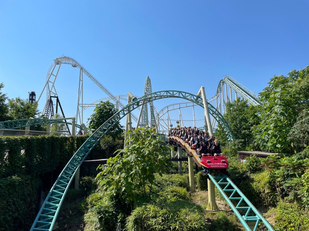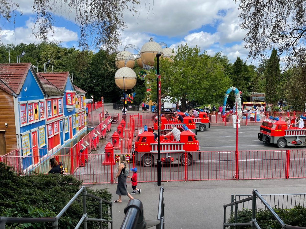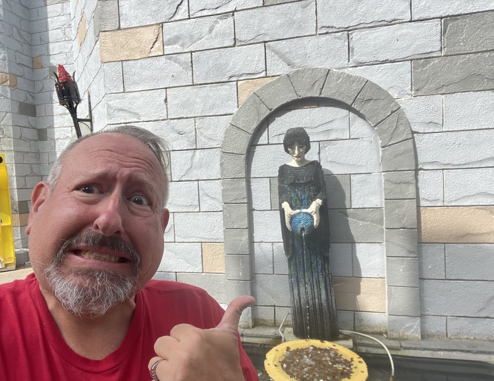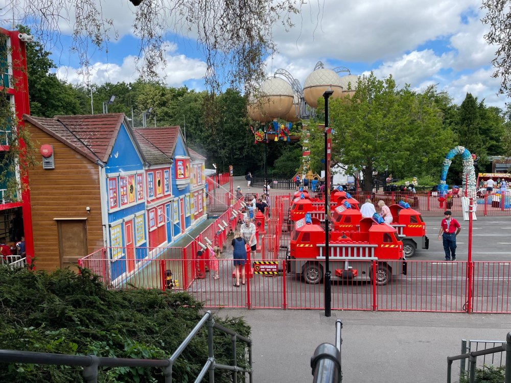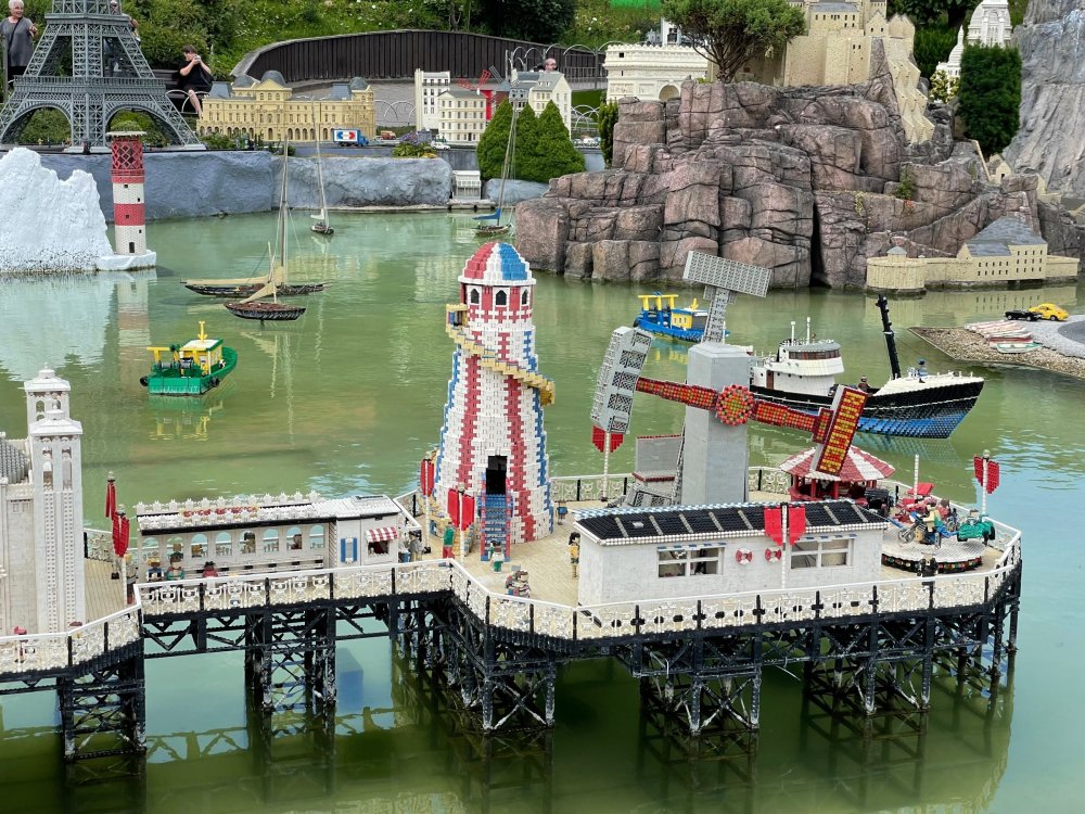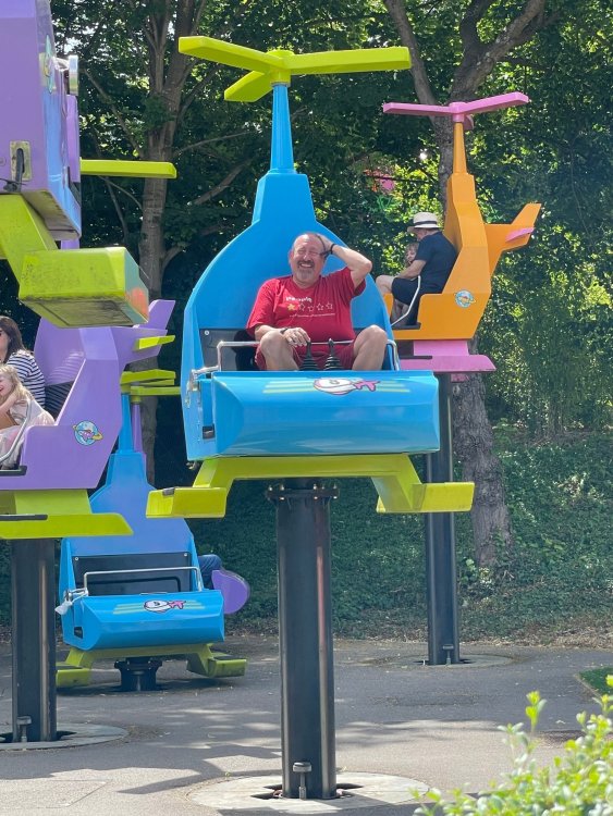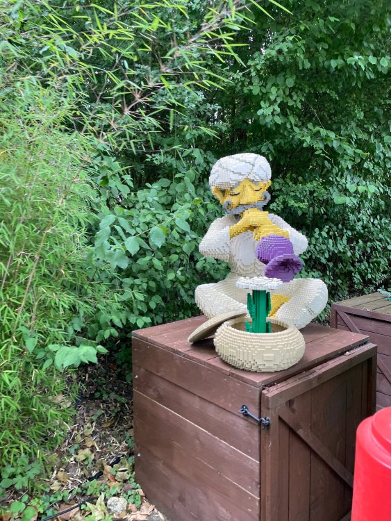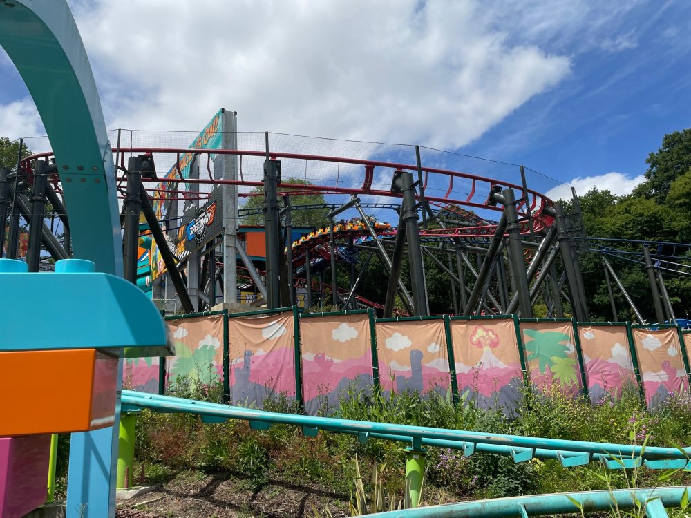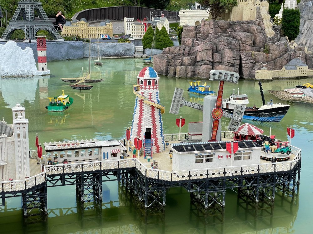 well, I certainly jinxed myself, didn't I? Tho I guess *technically* it didn't take me a month for the next update..it took me almost 7 weeks (whoops). and that I went to Oktoberfest with TPR earlier this month, means that I'll have two trip reports running concurrently - but gonna TRY to keep things sorta consistent. so onward. . day 3: Legoland Windsor! where we stopped for a visit on our way to Swansea, Wales. our first "Surprise Park" of the trip. we got there before opening, and not only is it a gorgeous setting, but it's up in the hills. . so lots and lots of walking (turns out there is a funicular that we could have used to get back up later but I didn't spot that until we were almost back at the front gates near the top. . . LOL) Group Pic courtesy of Robb this park is just beautiful. . . just look at that view (more on that later). the park is all "hidden" down steep pathways below us. a slow moving monorail type ride. . one of my favorite "stupid" rides that I love doing at parks. and tons of "full size" mini-figs sprinkled all thruout the park as we were walking down. this is what we were headed towards. . the park's brand new Dueling Family Boomerang coaster! we got to watch it testing, and I love the theming on this. . .they even did a "crash thru" of a billboard. . . forwards and backwards. . the heavier train did seem to win most times. . . and out front is the "World's Biggest Mini-fig", Roxie ! Group Pic with Roxie, courtesy of Robb time to ride! I believe they CAN operate just one side, but where's the fun in that?? ya gotta race! and that means, of course, riding both sides. first I rode blue (and our train won) and then I rode Orange, and we won again! (and I'm not taking credit for making the train that much heavier ) but it really is a rather fun family boomerang (by Zierer, not Vekoma). it wasn't "meh" at all, and I think it will be a huge hit for the park. our next stop was walking over to the Castle for DragonCoaster, just before official park open. we passed by Mini-land to cut thru and I snapped some pics while walking, but most of the mini-land pics will be in the next post. the famous Fire Academy at this Legoland hadn't opened for business yet when we passed it. nor had the shooting mummy dark ride, but we'd come back for this once turned loose in the park. and before we knew it (after walking a bit, as it's a larger park than it appears) we were at the Castle for the Lego-land signature Dark Ride/Coaster, Dragon. no cameras allowed on ride, but I had gotten an ok to take pics while in queue. . . so at least got the adorable train! group pic in front of Dragon Coaster courtesy of Robb ummm. . . . other than the Duplo Kiddie coaster, the only other coaster at LegoLand Windsor is the family, Dragon's Apprentice - and that was down today. . so we were cut loose and a group of us made our way into the park. several of us did the Mummy Shooting ride, and then noticed the Train was about to pull up (the Mummy ride queue actually crosses the train tracks in the center, and had a woman with stop signs there to ensure no one was on the tracks when the train passed thru the queue. . a bit odd, but charming). so we hopped on the train for a trip around the park lots of theming around the tracks on this train ride: the boats didnt' appear to be on a track here, and it was a pretty large course too. we had limited time here tho, and I was more interested in the SeaLife Aquarium and the mini-land. . so had to pick and choose what to do. and of course have to stop for any photo ops! we had been advised by our guides that the flying theatre here was pretty good and to not miss it, so headed over that way into the "Mythica" area of the park. I really loved how the queue has lego creations of the creatures featured in the film. (having now been to LegoLand Germany, and ridden their coaster that's also themed to the Tri-Lion, I know they use these same models in that queue too. . making them a bit less unique. but still rather cool) after the aquarium (and I think the Ninjago area. . which I strangely have no pics of, but probably because was rushing to get things done on my list). . I did stop for a photo op. and then it was time to head to my last "biggie" here. .the haunted house. which was right across from the lego boats, so got some more pics of those as we passed by. the queue for the Haunted House is adorable. I remembered how the Haunted House in LegoLand Billund ended in a surprise ride, so was looking forwards to what this one might contain. oh my. . it's a dance party in the lobby. no, really. . and it was fun and we all danced. and then you go into the house, and the actual whole thing is a ride - it's a madhouse! (a gentle one, but I always love a madhouse). splitting up to hit the last things we wanted to get on, Stacey and I headed to the kiddie area, as she really wanted the Duplo kiddie coaster credit. passing by the Fire Academy, it was busy this time, so snapped some pics (it's a real workout!) I think what I liked best about the Duplo Coaster (besides how absolutely adorable it is), is the setting - it's just below the new Coaster (s). . so from that line, you can get some good pics of the racing boomerang. D'awwwwww. . . OMG . . it's so cute! so even tho I tend not to ride kiddie coasters? yeah, I had to ride this one. and I spotted this just across the walkway from it. . which checks EVERY single box for "dumb ride that bert will love" it goes up and down. .and turns a little bit. . that's really it. of COURSE I had to ride it. thanks to Stacey for the pics after time spent in Mini-Land, we started our trek back up the path towards the front - making sure to leave us enough time to get back since the park is so large. lots more figs and things to look at on the way back up too. I even found the figure I had bought a magnet of earlier in the day! back at the top. . check out this view! I believe that's London way off in the distance? and from the park? A 