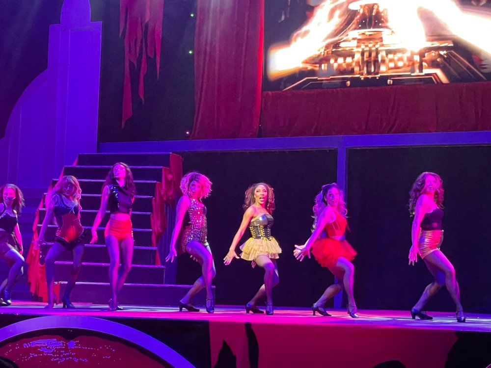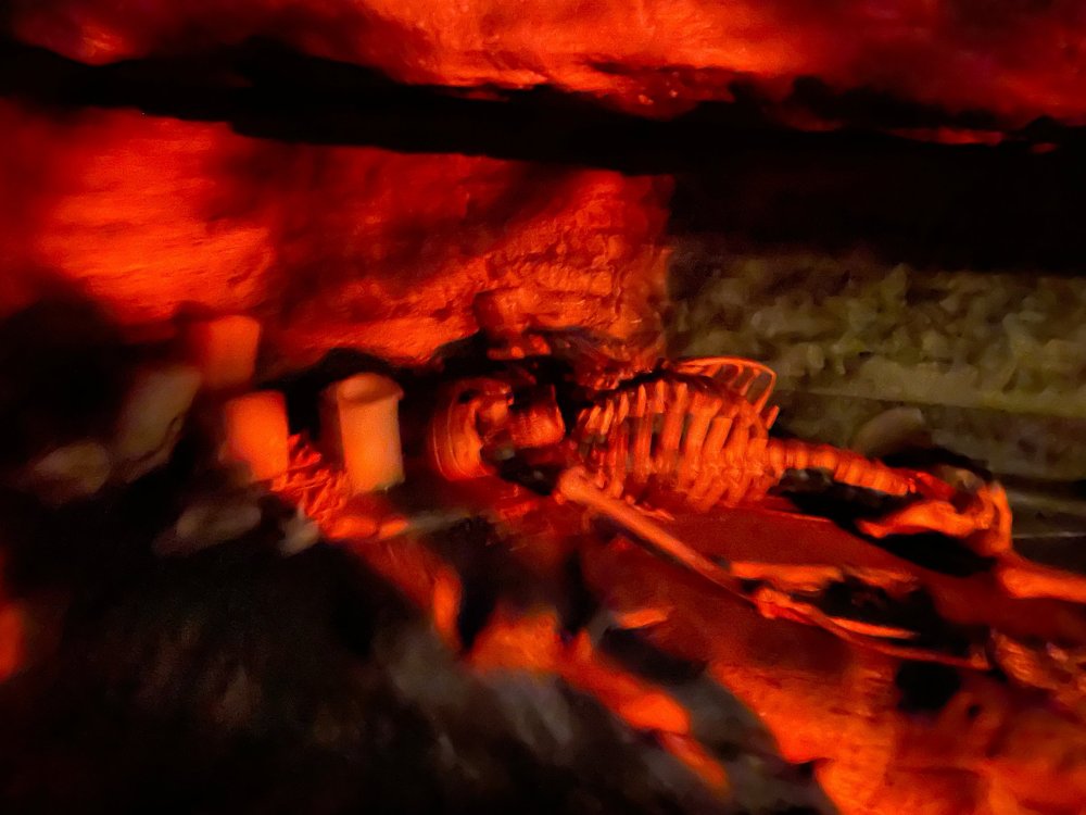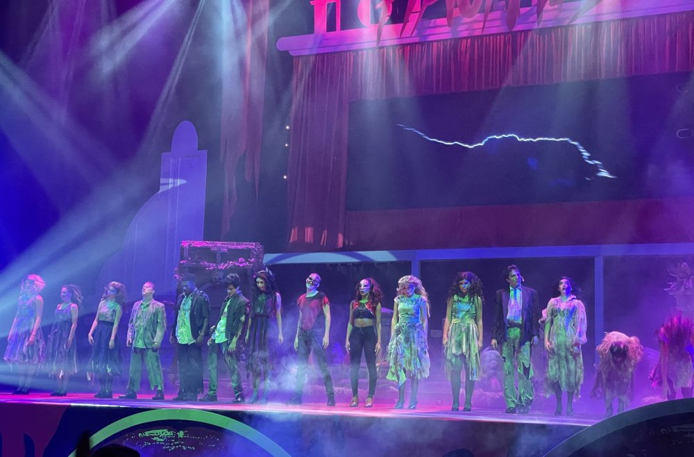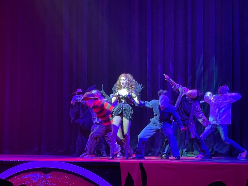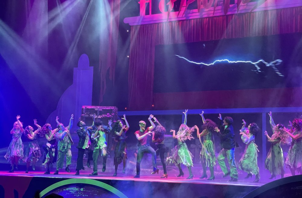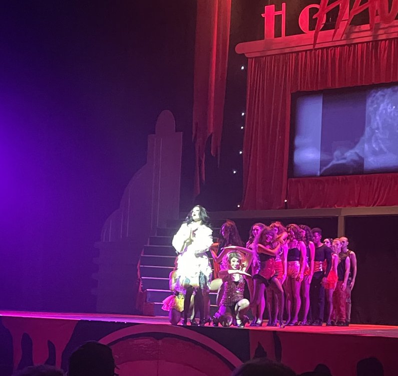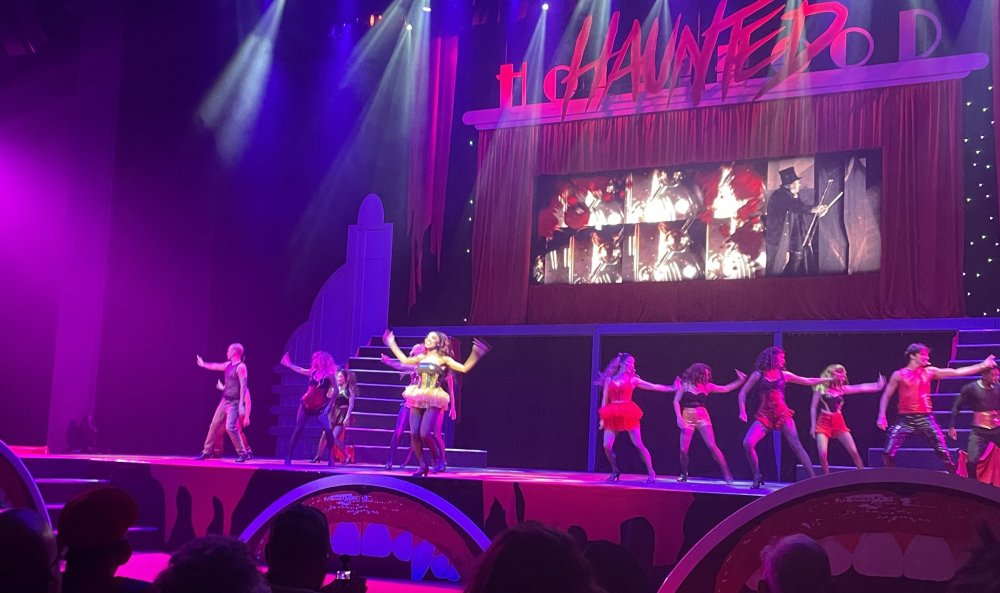 as part of Fright Bash, we had reserved seating for several shows - and although Fiesta is well known for their shows, I had seen versions of the evening ones, and so was most excited about "Haunted Hollywood" - a Halloween version of the excellent Hollywood thru the years show the park had new for 2024. it's mostly the same cast (a few new faces) performing "spooky" or "scary" songs. . .y'all. .it's SO good. highly, highly recommended: wish I could remember all the songs. . but they were mostly of the Halloween variety. . . really talented cast tho. (the only one I didn't care for was "Feed My Frankenstein" - as the guy was way out of key (and that's hard to do on an Alice Cooper song). . but huge props to him for making it down all those stairs in the giant Frankenstein boots). the Count with the puppet Dracula was hysterical. . and the song was so good too (even if I can't recall it right now) this one I remember, as it truly is a show standout: "Psycho Killer". . featuring little Vignettes of each victim being chased by their killer. . . before all joining up in the center stage for some great choreography. and HUGE points to the park for staying in true character - the "bad guys" all run. . . except for Michael Myers. . he just slowly walks after his victim. perfection! the Addams Family theme song a kinda cringy "dancing pillowcases" number for Casper the Friendly ghost. but I mean. . it was amusing. and of course, the show ender/ show stopper, is a full performance of "Thriller" after the show, the organizers asked all attendees on the stage for a group picture (I kept my hat on, so a bit noticeable) and then we got a meet and greet with the cast. . these 3 are among my favorite performers at SFFT, and any show they are in? I'll be there! back out into the heat, we had a couple of hours until dinner. . so it was time to ride some stuff! pic by my friend Belinda - who's in the very front. SO many characters out during the day (I would guess many of them change outfits to be ghouls at night). . but so many photo ops, and this is a lovely park anyways! Supergirl retheme completely done, and the Starflyer looks great. after a bunch of riding (I had my camera put away, so not many pics) it was time for dinner, and some Q&A with park folks. I didn't take a pic of my dinner, but did bump into the Quirky Coaster Couple (who had changed from Luigi/Mario for a "nighttime" look). Glad I snapped this pic, as you can get a look at the food. the chicken schnitzel on a stick was incredible, as were the ribs, and the german potato salad (and potato pancakes with applesauce). as a group of 17 strong (!) we decided to hit some of the houses that opened at 6.. as most folks were heading over to the Crackaxle train station for the Arrival (where the scarezone actors arrive by train and pour out into their own scare zones thruout the park). it was SO crowded that day, that I didn't want to be anywhere near Crackaxle - so instead we hit the Stranger Things House (yawn), the Conjuring House (excellent!!), Slaughterhouse (very good), the Voodoo House (which during the day is a kid friendly "tour of the collector's store" walkthru, but at night is filled with scare actors and low lights), Trapped (way better than in previous years, as they took some of the props from the discontinued Buried Alive house). the Voodoo house let us out right into the scare zone in Spassburg, so we decided it was close enough to the Arrival, that we would wait for the characters to arrive in the Scarezone before continuing onto the boardwalk - as the big outdoor maze (Hell Cemetery) is staffed by some of the ghouls on the train. it was a perfect spot to get some pics as they slowly made their way into the park, from a PACKED (so I was told) Crackaxle train stop. once they scare actors were out and about in the park, we headed to the boardwalk for the last House, Twisted, and the large (free) outdoor maze Hell Acres: the clown zone had filled up with scare actors from the Arrival. I think people don't realize this is a house here, and they think it's a queue for Pandemonium. but it never really has a line, even without the skip the line, we wouldn't have had to wait very long in the regular pass line. but it's a great house, with some really good animatronics in it. it had gotten a bit too stuffy, so had put the hat in the car after dinner. . . loved Twisted, but then down the steps to the Cemetery. Excellent. Large. and Free (as it's considered a Scare Zone, not a house) SUCH atmosphere down here. and some wonderfully spooky pics of the boardwalk due to the lights and fog. this one also benefited from reuse of props from the closed Buried Alive and Rockkill High houses. after this, we walked across the park to the other outdoor walkthru "Scarezone" - "Fear Acres" - which takes over a pretty good chunk of the waterpark, and has historically been SO packed, that I've never even gone thru the whole thing. Surprisingly as packed as the park was? "Fear Acres" had no line to get in, and the crowds were moving pretty well thru this large, and very well staffed haunt zone. crazy farmers, scarecrows, pig masks, machetes and chainsaws. . . check. very good, and for free too. . even if the makeups were mainly greasepaint and not as intricate as in the houses. we had reserved seating for two more shows, and the fireworkds "Frightful Finale" - followed by an hour + ERT on Dr. Diabolical and Iron Rattler. . . . but doing the math in my head, I said to my friend (who had driven). . if we stay for the fireworks, we're not getting home until 2am. as even if we dont' stay for ERT, we'll be stuck in the parking lot. I was exhausted - having been to a late concert the night before, and still not recovered from Germany late nights. . . so I told him I'm ok with whatever he wants to do. His son had come with us and he also works nights and he had gotten off work and immediately got in the car with us to San Antonio. . so I know he was tired too. so