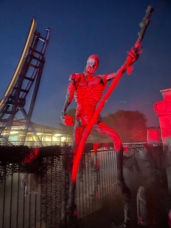 was there yesterday for a fantastic (and PACKED) Halloween event. the Conjuring Universe House is really fantastic. Amazing job. the Stranger Things house is dull as dirt. . and the SFFT houses range between the two. . with a couple of them really benefiting from props moved out of the now closed "Buried Alive House" and repurposed into other houses. all in all, a great event, and the amount of people paying the fees for the Haunted House passes was amazing (and I would say they are getting their money's worth). the park also has multiple free scare zones, and two free outdoor haunts (fairly long at both of them) and VERY well staffed with scare actors. To be 100% honest, the makeups in the free outdoor haunts were basically greasepaint in most cases (while in the houses - the majority of them very well staffed as well - the makeups are prosthetics). Still tho. . for a free haunted maze? well done Six Flags Fiesta Texas. I'll have some pics up in the near future (we got daytime / lights on walkthrus of the Stranger Things, and Conjuring Houses. . . . but as noted, the Conjuring house is really the one that was top notch at night with some incredible effects, and one SUPER effective jump scare that has people literally screaming out curse words). as to Kid Flash. yeah. . I'll be shocked if it's still there in the 2025 season. It's a big paperweight. They aren't even running the lights on it any longer.