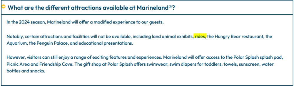 on the FAQ page, the Rides are listed as "not available". . as is the Hungry Bear restaurant, the aquarium, the penguins, the educational talks. . and most other things. no mention of the deer (unless included with "land animal exhibits") . . but as that is close to the splash pad? I'd guess that's open still. it's basically a picnic area they are charging admission to (due to the splash pad) and the belugas but still . . nice to see they are trying to stay open somewhat. -