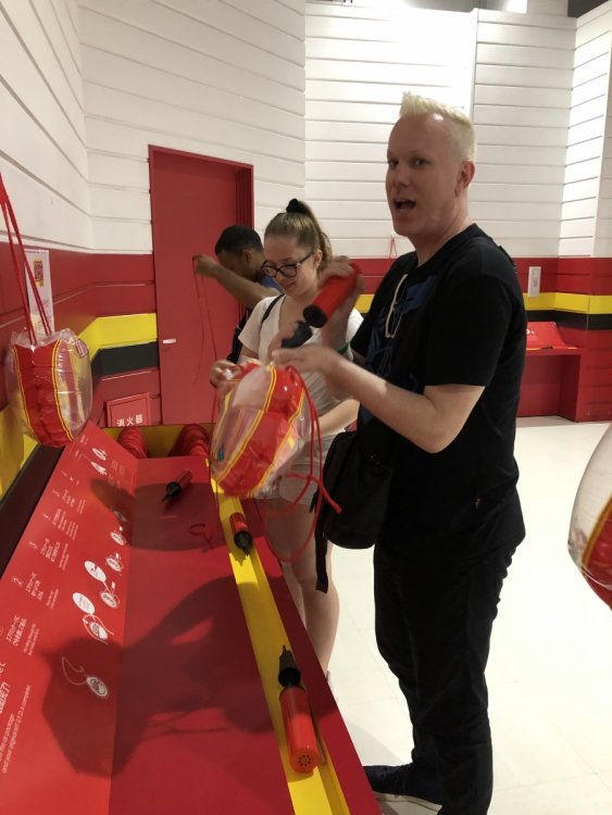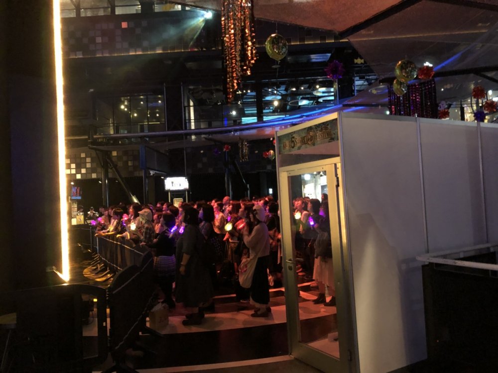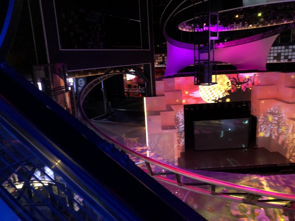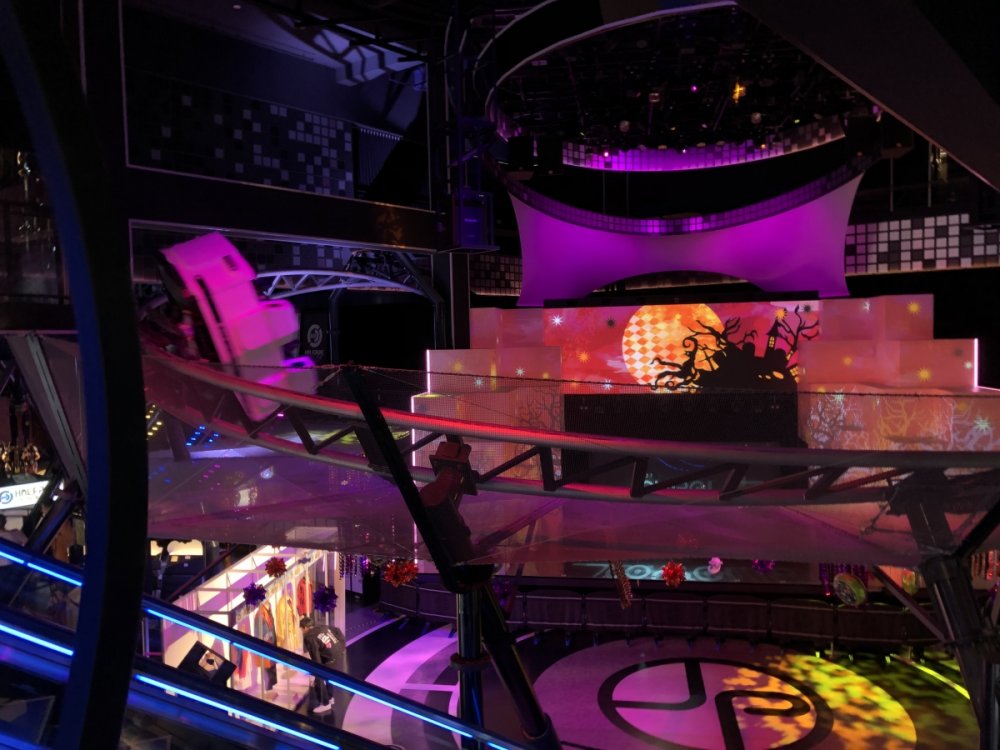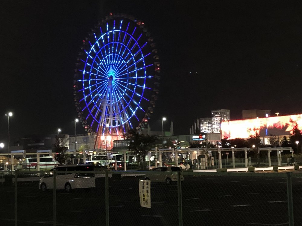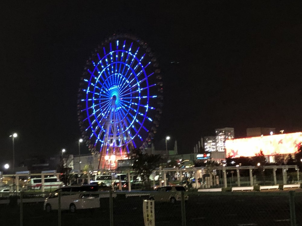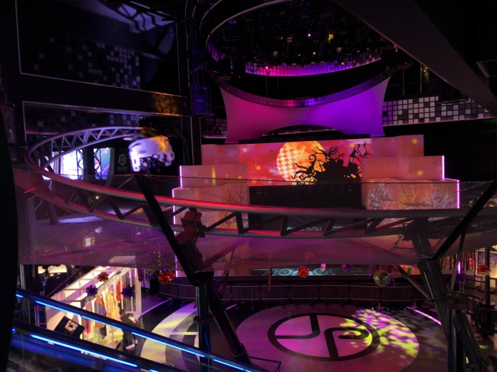 so we left Yomiuriland, and after a few train changes, we pulled into the Odaiba Station in Tokyo. We were headed to Tokyo Joypolis (a place my brain insisted on calling "Joy-Opolis", even after hearing it called "Joy-polis" multiple times). It had already been a long day of fun and excitement at Yomiuriland, and I knew I had to get up early in the morning, but no way was I going to pass up a chance to visit this place that I'd heard about for decades - and was home to the first spinning coaster with an inversion. we exited the Station, and weren't exactly sure which way to go. . oh sure, we could have followed the signs, but we didn't need no steenking signs! in actuality, I think most of us (at least I cans speak for myself) was distracted by the wonderfully lit Odaiba Ferris Wheel. .so we exited the station towards that. the Ferris wheel was fantastic looking, and we tentatively discussed coming back later to ride it. .but we soon figured out we needed to go the other direction, and so went up the platform to take the bridge over the traffic. and while walking across got a lovely view of Tokyo. it turns out that Tokyo Joypolis is part of a shopping complex called "Decks" (or as Alex and i called it: "Deksssss", so named because the center, when viewed from the side facing Tokyo Bay, is built to look like a ship. To quote from the booklet I grabbed inside: "The Ship Theme Park! DECKS Tokyo Beach is a ship-themed shopping center. Starting with the wooden open terrace modeled after the deck of a ship, there are decorations thruout the mall that recall boating themes. Walk along the deck and feel the salty sea wind blowing pleasantly across you as you enjoy shopping and dining in a setting that feels as though you're on a luxurious cruise ship sailing around Tokyo Bay. On the 3F Seasside Deck, take in a panoramic view of Tokyo Bay! Relax on a Wave-Themed Sofa, or enjoy the 6F Restaurant Floor's Ocean-themed mural" heh. . I love the "hype text" used in Japan there's also a Legoland Discovery Center, a Madame Tussauds & a bunch of shopping at this center, but we were getting here ~6pm and most were closing or closed). What we were really here for was the top one listed on this sign tho: Sega Joypolis - it was open until 10pm, and although last entry was 9:30 pc, we still had at least 3 1/2 hours before close. we made it! (terrible angle, but we took this pic to prove we found our way there!). and they offered a "Night Passport" after 5pm, which was only ~$35 and included admission and rides for some reason, I didn't take a picture of the front entrance of Joypolis, only this one from outside. not sure why. . I don't even have a blurry one! I blame the excitement of being there, since I DID take pics of the machines we used to buy our Night Passports (all came out so blurry tho, not posting). Joypolis is a really large space: 3 floors, that are packed with activities, and tech wonders. . .there was no way we were even going to get to do a fraction of the attractions offered, even tho it wasn't very crowded. but that was OK, as personally, I really only wanted to do one ride (the coaster) everything else was gravy. our 1st stop was the "Gekion Live Coaster" - this is the spinner with the inversion. It's described on the park map as thus: "Part music game, part roller coaster, it's the world's first "concert coaster" ! You'll fly at insane speeds through a course of spectacular lights and sounds" this coaster apparently gets a lot of overlays, and during our visit, it was themed to a J-Pop band that seemed to be super popular. the first part of the ride, involves the 4 person car stopping multiple times in front of screens, where you had to push your color coded buttons to match what was happening on the screen. The gameplay was simlilar to guitar hero, where you had to hit the buttons when "your" color bubbles moved into "your" target range. it was fun, and not confusing, but it was way more shooting dark ride - albeit with blasting loud music - than coaster. until you get to the top of the lift hill, and finish playing the game on the final screen prior to the launch. Then it launches you out over the main atrium (open air beneath you), it does it's signature inversion, before going back into an enclosed room, with the same song blasting, lots of disco lights and screens on a giant tower in the center of the room, and then the care unlocks and you spin while the track loops around the outside of the room several times). . then you pull into the station, and you see who had the high score in your vehicle. (shocker - Jon won both times, or was it 3 times we rode?). they are VERY strict about nothing in your pockets here, and you have to put them in a cubby space at the bottom of the stairs. I mean, really strict - someone had to get out of line and go back to the cubby to put in a chapstick they had in their pocket. Really. but the ride was fun, and I'm glad we bought the Night Pass, so we could ride multiple times, instead of just purchasing per ride. But my phone was locked away, hence no pics of the ride queue or the ride itself here. This fun thing that I DO have a picture of here, is one of the multiple "interactive" tech things spread thruout Joypolis. they call these: Space Interaction ("Experience the fusioin of Digital and Real world"). This particular one, you stood on a marked spot, and the screen turned you into a creepy "Schmoo". .that mimicked your movements and did all kinds of fun stuff. the "Spaceship" it's holding in it's right hand, is actually my phone snapping this pic, that the display turned into something else Not everyone wanted to ride, so they enjoyed "bench" the ride, while others of us got into queue. the queue had several more of those interactive elements - where if you stared at a TV with your picture on it, a digital wig appeared on your head. . or your head became bubbles. It made the time in the queue fly. the J-Pop band that the coaster is themed to? The Mai