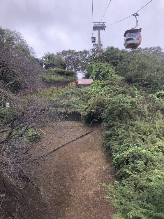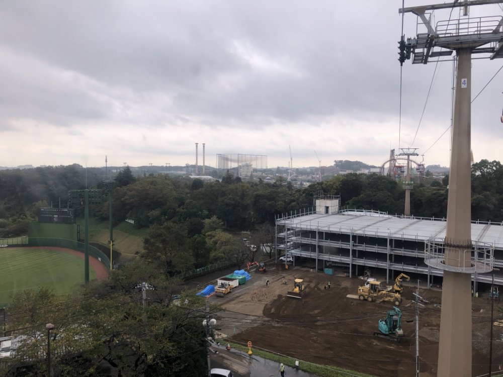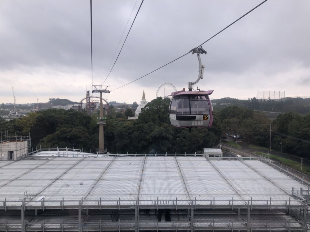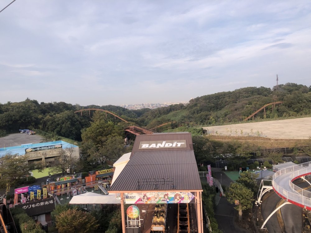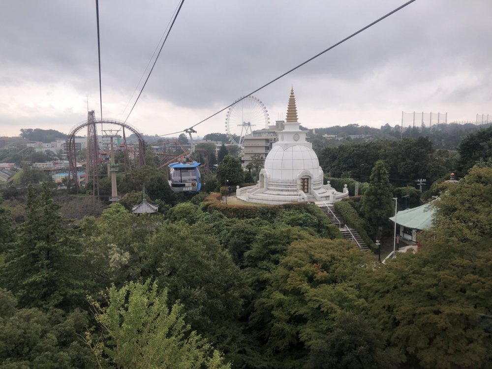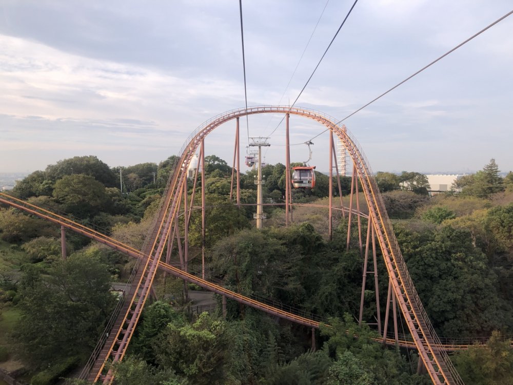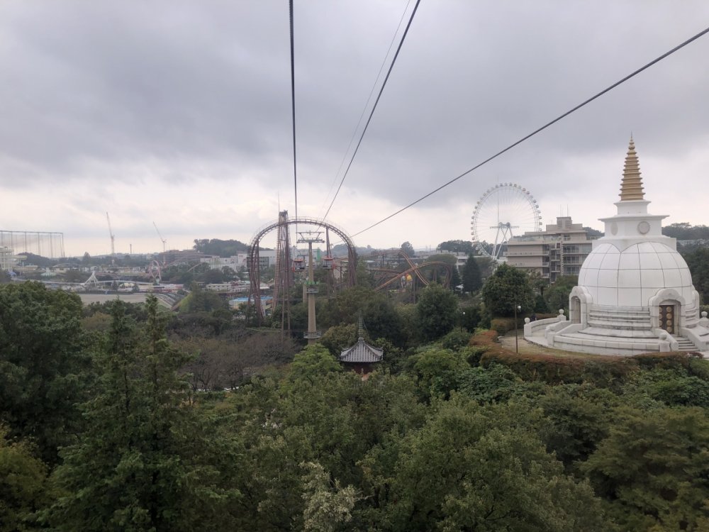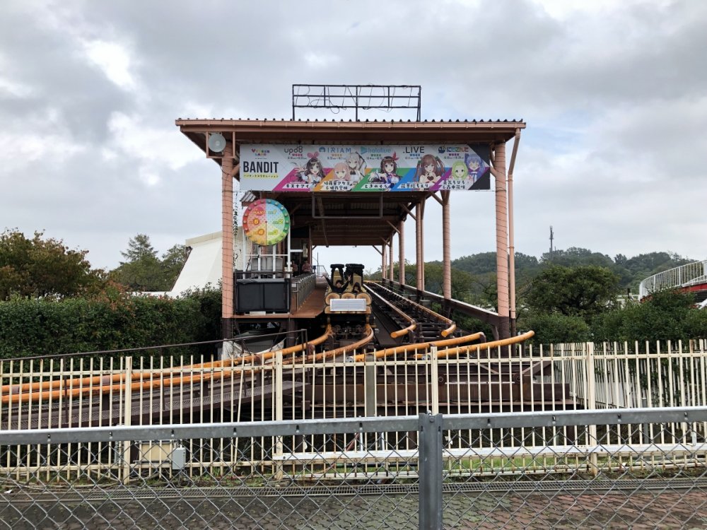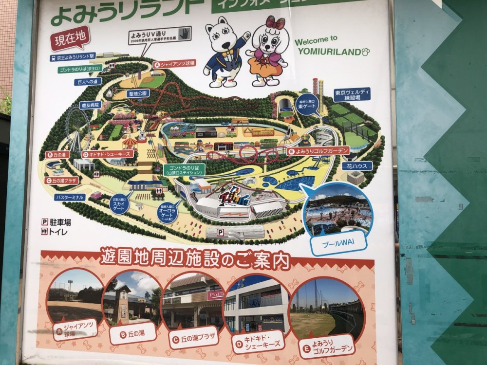 We got to sleep in a little this morning, as the meetup in the lobby was not until 8am. so a bunch of us in the group headed downstairs for breakfast (same restaurant buffet we'd been enjoying every morning thus far - tho I knew to stay far away from Warabimochi by this 3rd breakfast. . so everything was delicious) it's just after 8am on a Tuesday at Shinagawa Station, and holy crap. .its rush hour in Japan. I know it looks nuts. .and there are a lot of people lined up to get in trains heading both directions on this platform. but staying calm, we spit up into groups and all got in lines to get on the next train. and as nuts as it looks? Japan is *highly* efficient. the train would pull up, folks would easily get off, and the lines on either side of the doors would then get onto the trains. It was polite, and quick, and seriously: within 35 seconds, everyone had exited the train that wanted to and everyone who wanted to get on the train had. . and the train took off on time! it was phenomenal to watch, and tho I didn't stop to watch it - as I was participating in the well oiled machine - it really takes one's breath away at how *easy* the Japanese folks make it look. and not one raised voice, or yelling either! the Shinagawa Station was really the only one that had the train platforms this crowded, tho the other stations were busy too as we moved our way thru them to switch trains at a couple of other stops. and before we knew it, we were pulling into the station in Inagi that services Yomiuriland. the park is not visible from the train, as it's built among the hillsides that are covered in lush vegetation. in fact, you have to take a fairly lengthy gondola ride over and thru the hills to get to the park gates from near the train station. (there was a long, winding, walking path, but I only noted one person going that way (it was quite the walk), and he appeared to be a maintenance guy). it reminded me very much of Hawaii (a landscape similarity that popped into my mind several times during my trip to Japan. . . several areas looked for all the world like I was back on Maui) here's some of the lush vegetation from the train station. and looking the other direction, you can just make out the roof of the Gondola station -- the horizontal blue roofs peeking out over the hill, to the left of the tan apartment building. before we headed out across the street to the Gondolas tho, I stopped for a quick potty break, as we had been traveling and I'd had a lot of coffee with breakfast I really liked this mirror wall in the Men's room, so stopped to snap a picture of it. and while waiting for others, someone pointed out that there was a mural of a Carousel, so did I want a pic? of course I did. . . tho the Carousel nerd in me noted the visual effect doesn't really work since the horses are going in opposite direction on either side of the door. I know. . nerd. a side of the pillar highlighting the Factory area of the park - called (I kid you not): the "Goodjoba!! Area" in this section you can build and test dive a car (think of a way more interactive test track, tho slower moving), become a cup noodle and fight the bad guy who's trying to cook you on a rapids ride (no really), make your own cup noodles, ride fashion (on a fashion themed interactive spinning coaster), or much more! another side of the pillar promoting activities in the "Lan Lan" (bungee, wave swinger, seal show), :Flag Street" (Loop Coaster), "Bandit Area" (Bandit coaster), and "Aqua Area" (waterpark) they had some of the pillars in the station also wrapped with Yomiuriland banners. . . which were cute enough that I took some pics while waiting for folks to finish up with bathroom breaks. Yomiuriland has a mascot called the "Land Dog" and he's cute, tho a little bit weird looking. strangely, they seem to dress up Land Dog in a tuxedo complete with bow tie, and he's referred to as "Good" on the map. this is the female version dressed up and referred to on the map as "Lucky" she's cute, and tho you can't tell in this two tone pic, she actually has rainbow sprinkles on her Bow, and on her arms & legs. and also snapped a pic of the park map they have on the wall. it really doesn't look that large from the map, and doesn't appear to have that many rides. But it's really misleading, as the park is *much* larger than it appears from just the flat surface of the map - with many hills and stairs, and it's pretty spread out, with a lot of things to do. You can really see just how large it is from the Gondolas, with the site including Yomiuri Giants Stadium (the training ground for the Yomiuri Giants, and where they used to play before Tokyo Dome was built), as well as a couple temples, and a lot of space for picnic, fairgrounds, and tons of cherry trees which blossom in the spring - and the Bandit coaster runs right over them. this was an absolutely lovely park. (the whole bottom section of the map in grey -the part that looks like it has big warehouses? That's the "Goodjoba!! Area") We've crossed the street and gone up to the Gondola station to buy our tickets. The Gondolas aren't quite running yet, but they are loading them on and this should only be a short wait. going up the stairs/ramps to the station, we passed behind this apartment building, that I thought was interesting enough to snap a picture of. I really like the brickwork here. we've got our tickets (to the park gates, plus return trip for later. . do NOT lose the ticket stub for the return trip!). now at the bottom of the stairs up to the station awaiting the opening of the Gondolas for our trip to the front gate. Looking back down one of the ramps we came up to get to the gondola station, from the train station down there across the street. and we're on our way! Heading out of the station towards the top of the 1st hill. and cresting that hill, we get our first view of the park off in the distance. can see the Shot/Drop towers on the left, one of Bandit's turn arounds in the ce