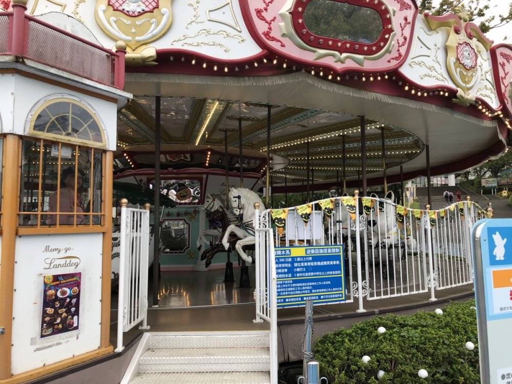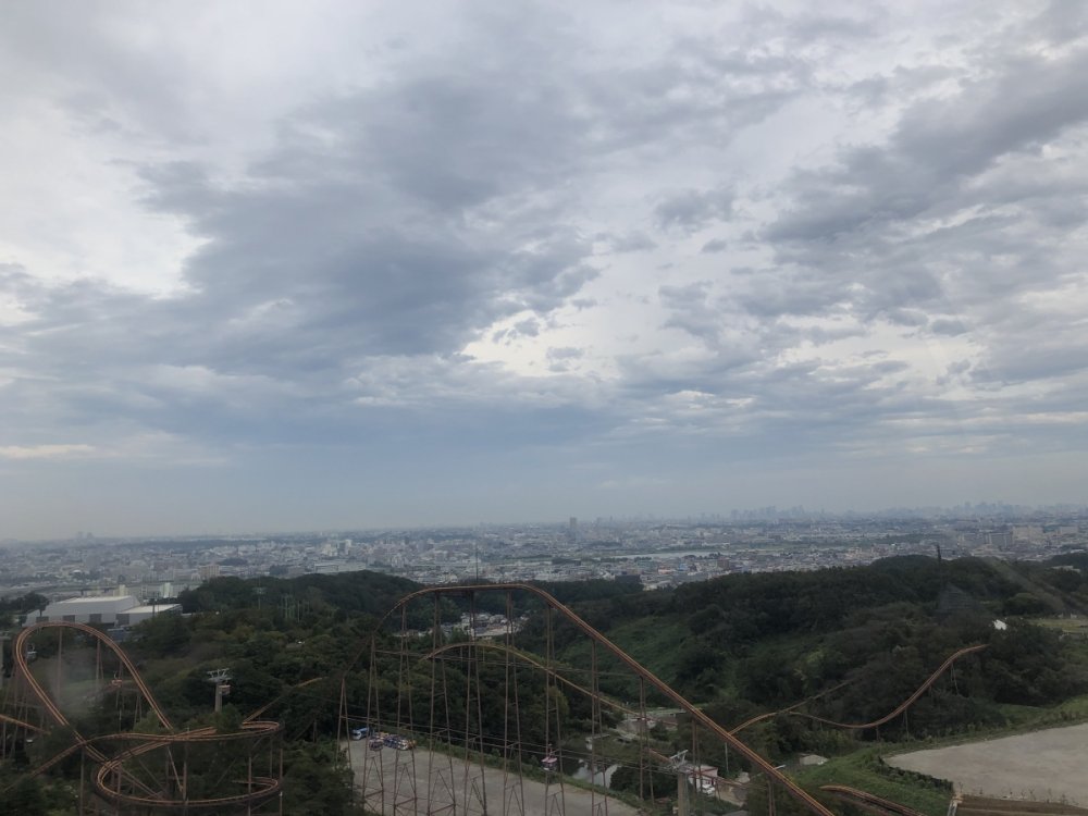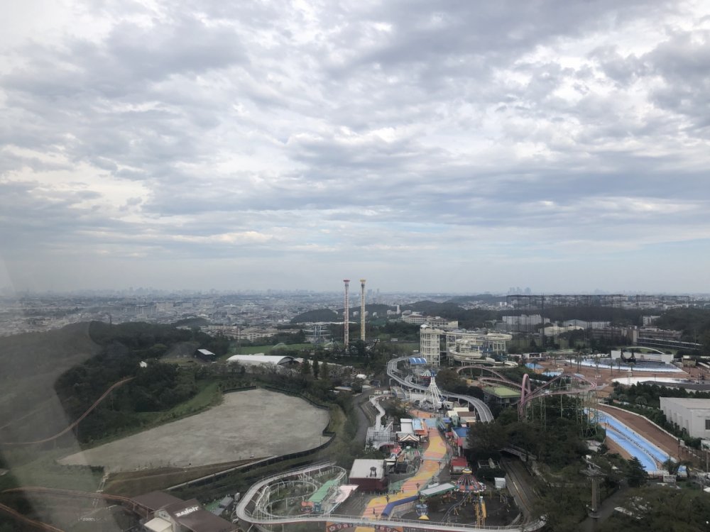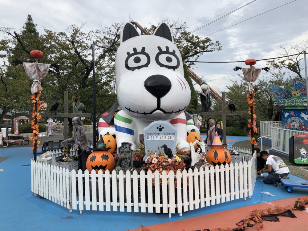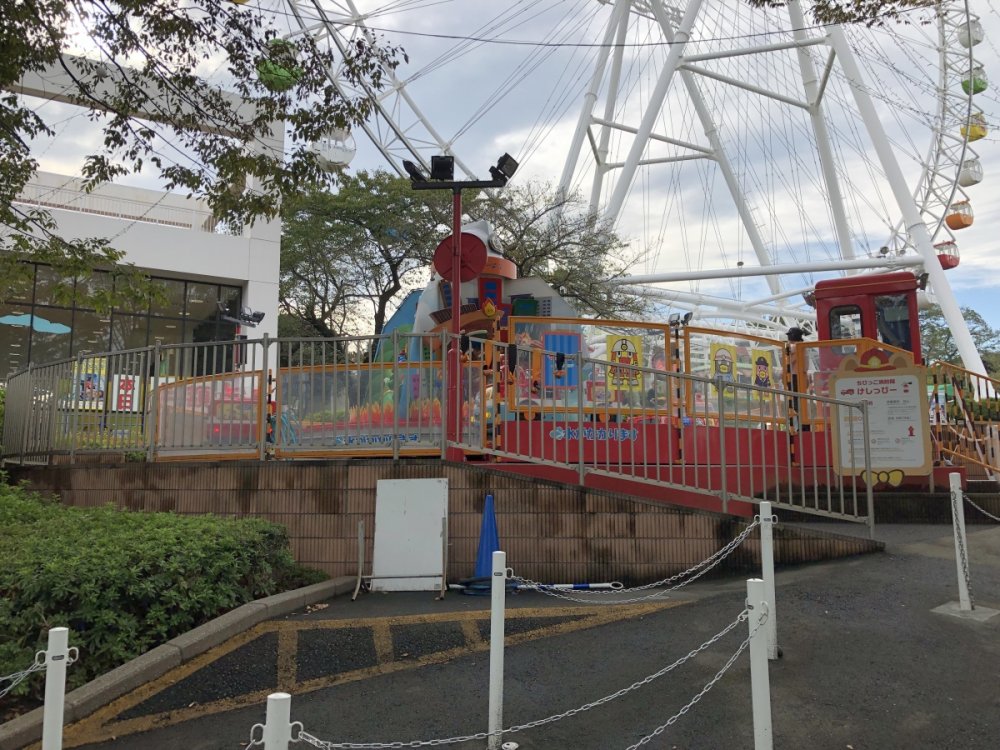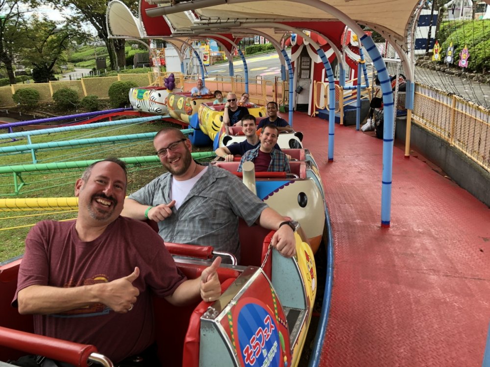 Yomiuriland continued. . . Across from the Fashion Factory building was the "Bungu Factory" - this building didn't have any rides, per se, but it did have: "Campus Challenge" - per the map, "try 7 challenging games using your body, based on the manufacturing process of Kokuyo's "Campus Notebook" & "Hirame Kids" - a playground with the theme of Kokuyo Children's books. There were no takers today, and we were hungry - and honestly, the "challenge" sounded a bit too much like "work", or at least "effort" was required. . .LOL. So I instead just snapped a picture of this neat display out front (the big pumpkin looks like it's made of cardboard), and then we moved on without going in this building. we ended up at the "Goodjoba!! Kitchen" that was the main eatery in this part of Yomiuriland, and it had a large selection of curries, noodles, doria (with the melted cheese), among other things. here's what I got, and if I'm recalling correctly, it was called "Gon Koe", which was kind of a Pork Katsu on top of a bowl of noodles in a fragrant broth. it was really good, and filling, and reasonable (it was like $11 American). I do believe we were the only customers, so they were happy to have a "lunch rush" come in. A few folks are missing from this pic (maybe Trent had already eaten. . as he had been with us on the Spinning Coaster. . and that's why he's not in this pic?), but a bunch of ended up hanging together most of the day at Yomiuriland, and thru lunch too. the Variety of options at this place left everyone pleased, and I think all really liked their main dishes. tho I know that the Pinkberry (that was being sold at front counter as well), didn't go down really well from those who tried it. this was interesting. . "self serve beer" station. Saw something similar at a few other stops on the trip too - you purchase the cup, then can use it to get your own beer. the Halloween Decorations in front of the "Goodjoba!! Area" It looked to me like this is a permanent sign (with Halloween overlay placed on it). . since this is on the park map as a landmark. This sign faced the "Aurora Gate - Temporary park entrance" . . . I would assume this entrance is used for school groups, who are coming to experience the "factory" portion of the park in this area, and this is the welcome sign to this area. snapped a quick pic, and then we headed towards the area of the park we had not been to yet: "Family Area". . which mainly is the kiddie section, but also had some adult rides such as the Ferris Wheel. we bypassed the Merry-Go-Land Dog (no one wanted to ride, so I could wait a bit to ride it still) as we passed thru the "Plaza Stage of the Sun" area, and into the "Family Area" and there was a photo op, where one could sit on the elephant's trunk as he lifts you with "water". . so of course I stopped to pose. and then noticed the box of decorations for Halloween next to it. . so another pic. this time as a witch! "I'LL GET YOU, MY PRETTY!!!" (and notice my inflated purse noodle holder that I was trying to hide behind my leg. . LOL). There was a ride here in this section called "Animal Coaster" and we had been teasing Trent & Luke about it, since it was called "coaster" but it's really a caterpillar or turtle type ride. when we walked by there was no one on it, so I harangued everyone to take a spin, and we had a TPR "Coaster" takeover. the selfie came out pretty good. but I like the one the Operator took for me, even better. TPR on "Animal Coaster" Wheeeeee!!!!1 This Giraffe, wearing a tuxedo, and with "KISS-stars" on his eyes, was on the front of the "train" (you can see a better view of him on the poster to the right of the Elephant trunk picture a few above this) after that ride on "Animal Coaster" - which was about what I expected. . . a circular turtle type ride that was just fine - I was ready to take a ride on the park's "Giant Ferris Wheel" not everyone wanted to ride, and some folks split off to go find ice cream, or just sit and take a break, or other things. . so we decided we'd meet up after our ride (for those of us who wanted to), and continue on together after. Jon and I again shared a gondola, and I believe Brad and Leia shared the one behind us. As noted in the other part of this report, the park was doing a VR headset game with certain gondolas, where you spotted or interacted with animated characters (or something. . I didn't quite understand what one was supposed to do), but we decided not to do the headsets, and instead just got in the "regular" gondolas for our spin on the Giant Wheel. this pic is headed up, looking out at a good chuck of the park. (not counting the Goodjoba!! area, the Bandit Area, or the Aqua Area - nor the Sechi Park (where the temple was) nor the JU-JU BBQ-Park (one of the large picnic areas off to the left). but you can see a good chunk of Yomiuriland. Moving camera to the left, a nice pic of Bandit, and the top of the JU-JU BBQ pavilion. More of Bandit Area, some of Tokyo, and looking down? the colorful supports for the "Animal Coaster" ride we had just gotten off of and the undulating track for it. also some of the picnic area behind it. up over Bandit, to get more of the Skyline. . .a bit foggy, but still a neat pic I thought. if it were a clearer pic, we could just make out the Tokyo Skytree from the ferris wheel. additional random shots from the side facing the park as we go up and get ready to crest the top of the Giant Wheel. Turning to look out the other direction, away from the park, and thru the clouds you can just make out Mt Fuji there near the center of the picture. again, mt. Fuji thru the clouds. Some of us were going to be headed to Fuji-Q the next day, but based on prior reports of trips there? There was a chance that THIS was going to be the best view I'd get of Mt Fuji, so I snapped a few pics. Crossing over the apex of the Giant Wheel, and starting to come back down, I spotted Bandit going up the lift hill. who am I to pass up an opportunity to take p
