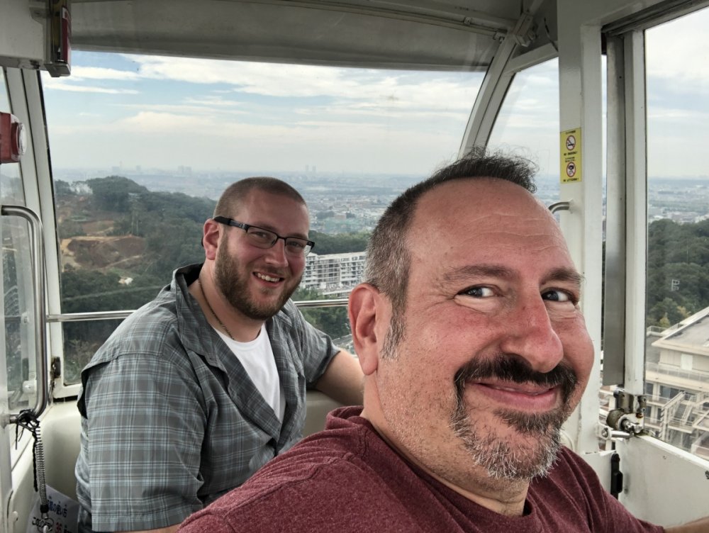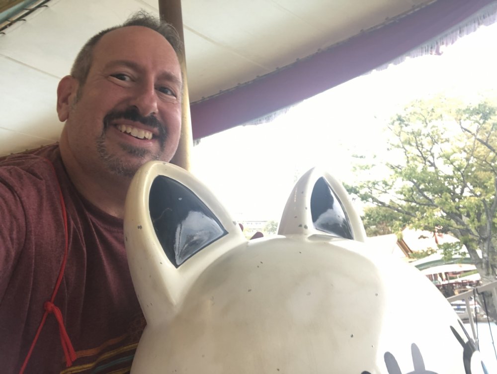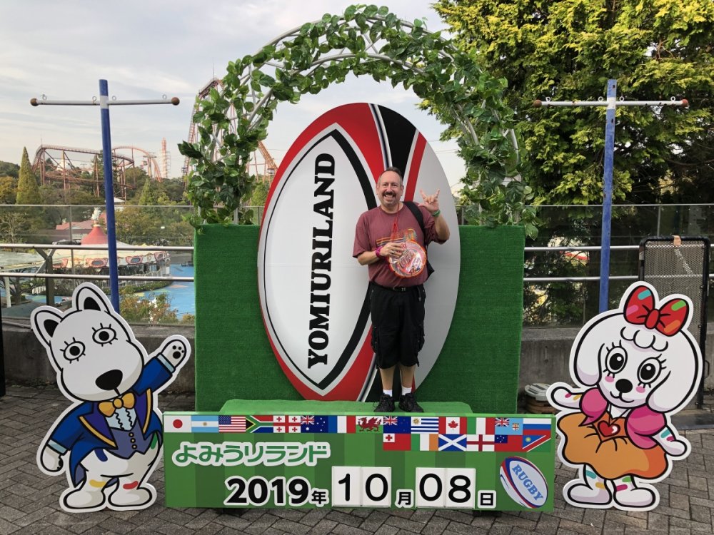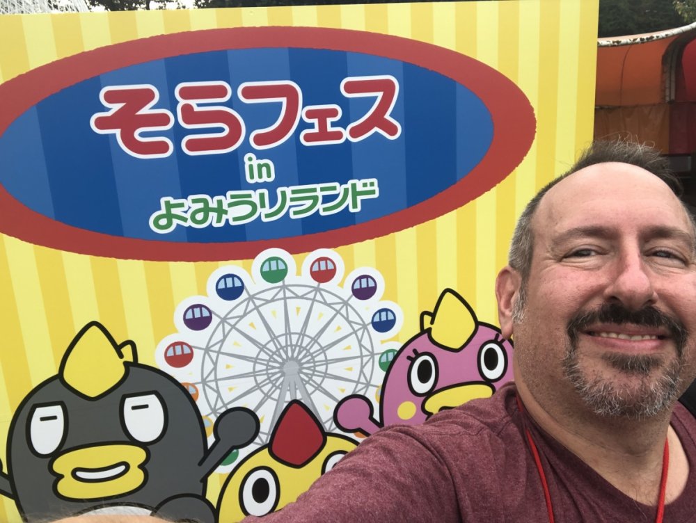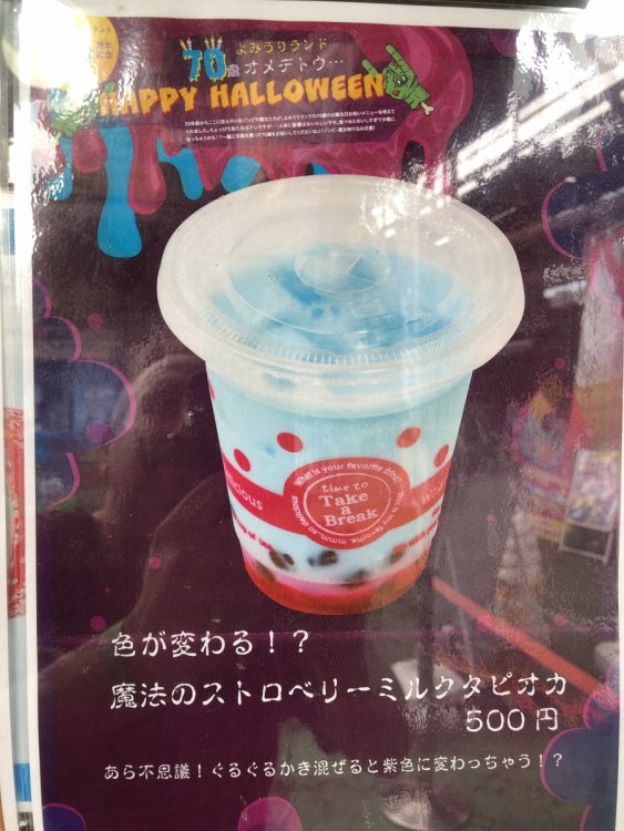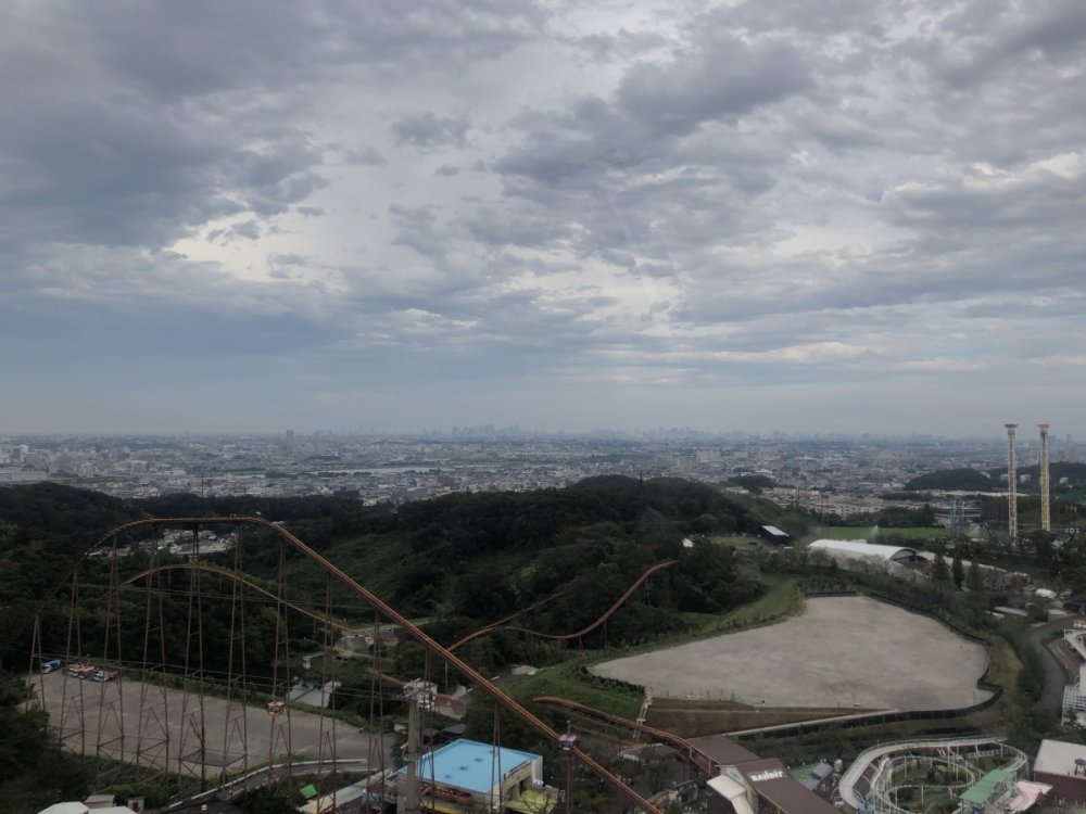 Yomiuriland continued. . . Across from the Fashion Factory building was the "Bungu Factory" - this building didn't have any rides, per se, but it did have: "Campus Challenge" - per the map, "try 7 challenging games using your body, based on the manufacturing process of Kokuyo's "Campus Notebook" & "Hirame Kids" - a playground with the theme of Kokuyo Children's books. There were no takers today, and we were hungry - and honestly, the "challenge" sounded a bit too much like "work", or at least "effort" was required. . .LOL. So I instead just snapped a picture of this neat display out front (the big pumpkin looks like it's made of cardboard), and then we moved on without going in this building. we ended up at the "Goodjoba!! Kitchen" that was the main eatery in this part of Yomiuriland, and it had a large selection of curries, noodles, doria (with the melted cheese), among other things. here's what I got, and if I'm recalling correctly, it was called "Gon Koe", which was kind of a Pork Katsu on top of a bowl of noodles in a fragrant broth. it was really good, and filling, and reasonable (it was like $11 American). I do believe we were the only customers, so they were happy to have a "lunch rush" come in. A few folks are missing from this pic (maybe Trent had already eaten. . as he had been with us on the Spinning Coaster. . and that's why he's not in this pic?), but a bunch of ended up hanging together most of the day at Yomiuriland, and thru lunch too. the Variety of options at this place left everyone pleased, and I think all really liked their main dishes. tho I know that the Pinkberry (that was being sold at front counter as well), didn't go down really well from those who tried it. this was interesting. . "self serve beer" station. Saw something similar at a few other stops on the trip too - you purchase the cup, then can use it to get your own beer. the Halloween Decorations in front of the "Goodjoba!! Area" It looked to me like this is a permanent sign (with Halloween overlay placed on it). . since this is on the park map as a landmark. This sign faced the "Aurora Gate - Temporary park entrance" . . . I would assume this entrance is used for school groups, who are coming to experience the "factory" portion of the park in this area, and this is the welcome sign to this area. snapped a quick pic, and then we headed towards the area of the park we had not been to yet: "Family Area". . which mainly is the kiddie section, but also had some adult rides such as the Ferris Wheel. we bypassed the Merry-Go-Land Dog (no one wanted to ride, so I could wait a bit to ride it still) as we passed thru the "Plaza Stage of the Sun" area, and into the "Family Area" and there was a photo op, where one could sit on the elephant's trunk as he lifts you with "water". . so of course I stopped to pose. and then noticed the box of decorations for Halloween next to it. . so another pic. this time as a witch! "I'LL GET YOU, MY PRETTY!!!" (and notice my inflated purse noodle holder that I was trying to hide behind my leg. . LOL). There was a ride here in this section called "Animal Coaster" and we had been teasing Trent & Luke about it, since it was called "coaster" but it's really a caterpillar or turtle type ride. when we walked by there was no one on it, so I harangued everyone to take a spin, and we had a TPR "Coaster" takeover. the selfie came out pretty good. but I like the one the Operator took for me, even better. TPR on "Animal Coaster" Wheeeeee!!!!1 This Giraffe, wearing a tuxedo, and with "KISS-stars" on his eyes, was on the front of the "train" (you can see a better view of him on the poster to the right of the Elephant trunk picture a few above this) after that ride on "Animal Coaster" - which was about what I expected. . . a circular turtle type ride that was just fine - I was ready to take a ride on the park's "Giant Ferris Wheel" not everyone wanted to ride, and some folks split off to go find ice cream, or just sit and take a break, or other things. . so we decided we'd meet up after our ride (for those of us who wanted to), and continue on together after. Jon and I again shared a gondola, and I believe Brad and Leia shared the one behind us. As noted in the other part of this report, the park was doing a VR headset game with certain gondolas, where you spotted or interacted with animated characters (or something. . I didn't quite understand what one was supposed to do), but we decided not to do the headsets, and instead just got in the "regular" gondolas for our spin on the Giant Wheel. this pic is headed up, looking out at a good chuck of the park. (not counting the Goodjoba!! area, the Bandit Area, or the Aqua Area - nor the Sechi Park (where the temple was) nor the JU-JU BBQ-Park (one of the large picnic areas off to the left). but you can see a good chunk of Yomiuriland. Moving camera to the left, a nice pic of Bandit, and the top of the JU-JU BBQ pavilion. More of Bandit Area, some of Tokyo, and looking down? the colorful supports for the "Animal Coaster" ride we had just gotten off of and the undulating track for it. also some of the picnic area behind it. up over Bandit, to get more of the Skyline. . .a bit foggy, but still a neat pic I thought. if it were a clearer pic, we could just make out the Tokyo Skytree from the ferris wheel. additional random shots from the side facing the park as we go up and get ready to crest the top of the Giant Wheel. Turning to look out the other direction, away from the park, and thru the clouds you can just make out Mt Fuji there near the center of the picture. again, mt. Fuji thru the clouds. Some of us were going to be headed to Fuji-Q the next day, but based on prior reports of trips there? There was a chance that THIS was going to be the best view I'd get of Mt Fuji, so I snapped a few pics. Crossing over the apex of the Giant Wheel, and starting to come back down, I spotted Bandit going up the lift hill. who am I to pass up an opportunity to take p