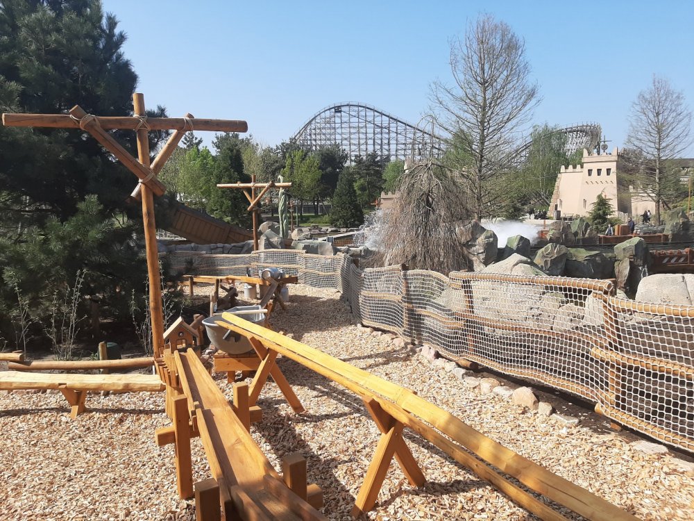So the renewed Expedition Zork and Interactive Marble run Wunderball are soft open. Not everything is ready yet but this week and the next are a holiday here and they wanted to offer up the ride. Just some pictures form far away on the outside, I forgot to make some more detailed ones. Some pictures form the inside, not much changed here on the ride site of things. But queue and entry have had a major update, I also took a picture form the Queue form above, but that one turned out so bad. Some impression of Wunderball. Here is also how it works, You can buy wooden balls form the vending machine and then just drop them on one of the two tracks and follow them till the end, the interactive part is mostly just you starting the ball. There are also wrenches, bath tubs and other crazy stuff the ball passes on either one of these tracks. Looks extremely fun for little children as when I was at the end two kids flew back up the hill to go again. I Really enjoy seeing the park invest so heavy in older rides. It did make me wonder if they ever are going to finish the station of Booster Bike, when they opened the Magic valley they had plans to update the station of the ride to match the area and especially now that station has become a painful sight. -