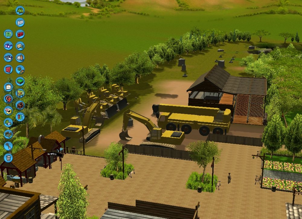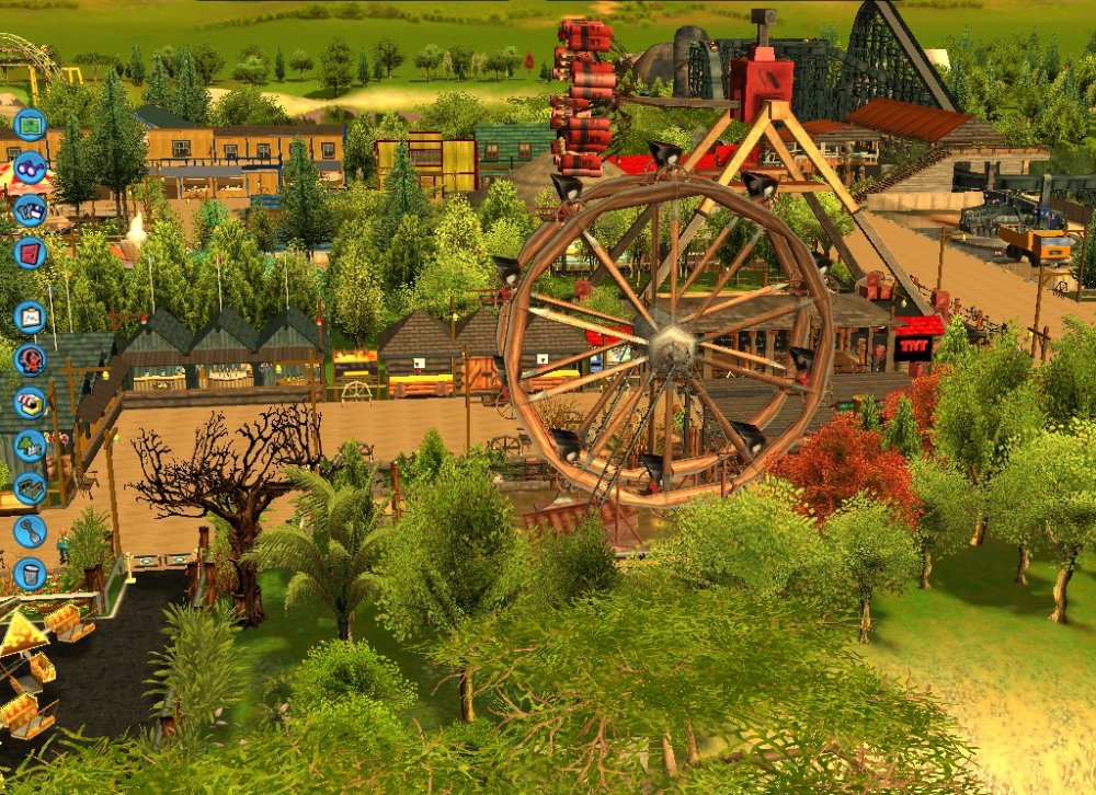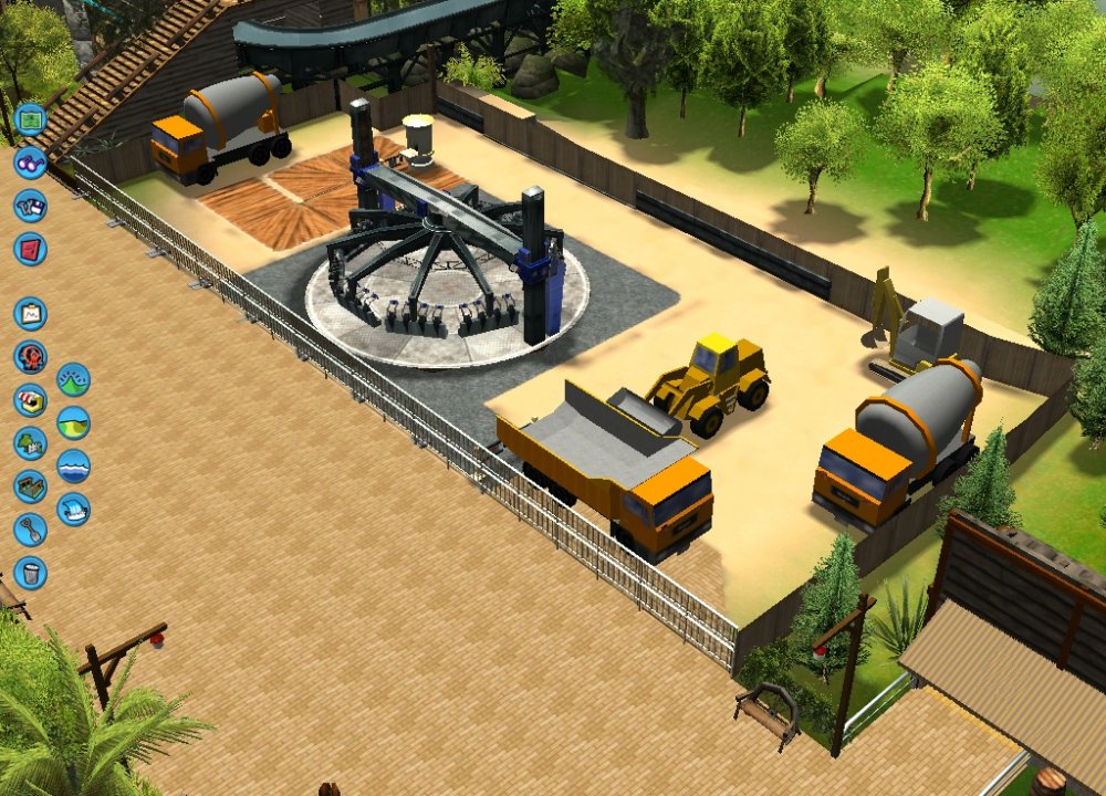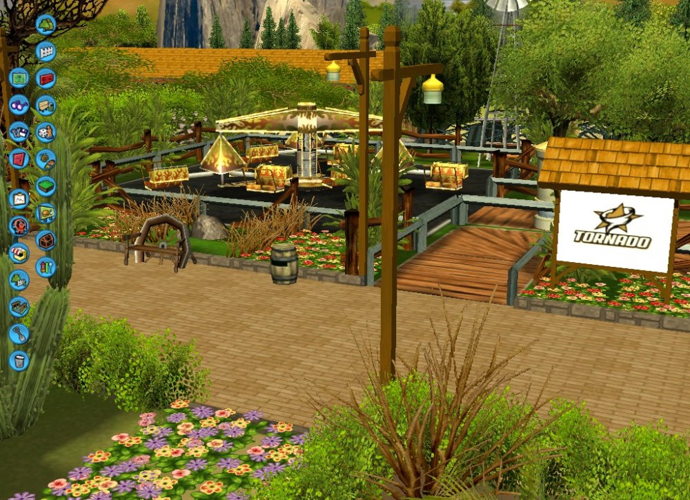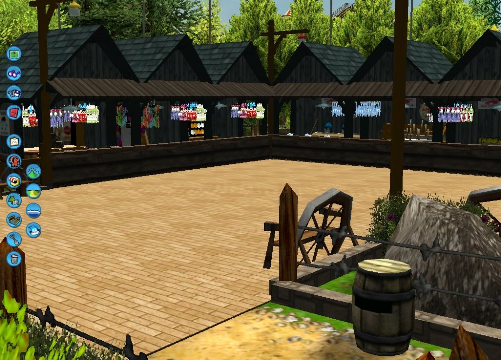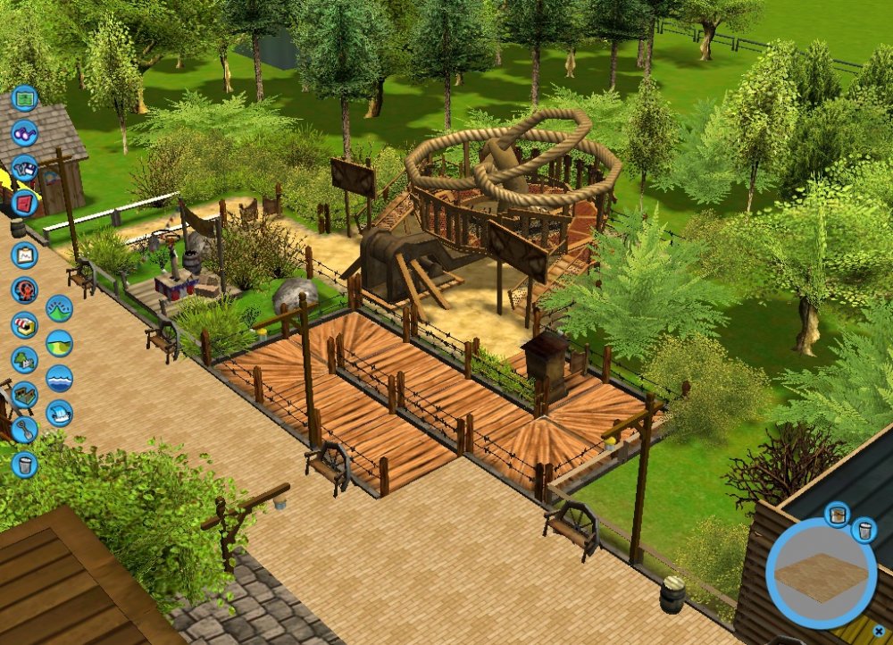 Hello again, it’s time for a visit to Six GunTerritory as season four is in full swing. Big things have happened since the destruction of Barnstormer. The Redman’s have a new business partner in the park and word is he has very deep pockets and is as passionate on this park being successful. His name is John Wilson and he is a real estate tycoon who wanted a new venture to sink his teeth into as he planned to move on from the real estate business. The park is in the process of aquiring a new ride to replace Barnstormer and possibly a second ride along side of it. The biggest news though is expansion of the park into the backside of the property. Construction vehicles are already working on clearing the backside of the property. Details on what will be put there are still top secret, but I’m told it will be a big expansion with a new roller coaster and a compliment of flat rides, shops and eateries. So here are a few shots to hold you over until we get more info. Here's the new arrival taking place of the departed Barnstormer. Name will be announced soon. A little land clearing under way. Some new views of the parks other attractions. Here's Lasso a themed round up ride. What's a theme park without a few games here and there? Sidewinder doing its thing on a Sunny Day. -
