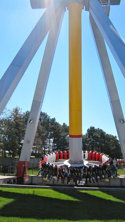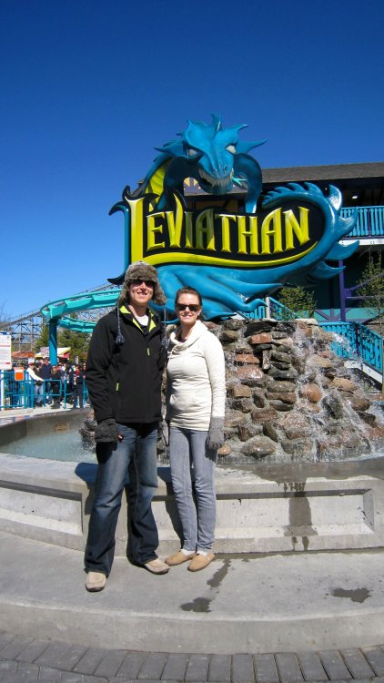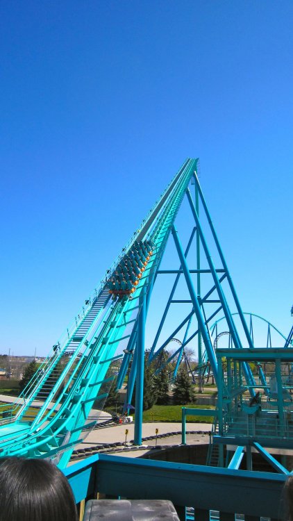 Today I got to check out Canada's Wonderland for ScotiaBank day. CW blocks the first three weekends of the year for major Canadian banks (yesterday BMO and next Saturday RBC) before it opens to the public. Usually the sneak preview event happens the Friday before RBC day but major coasters *cough* Leviathan *cough* pushed it before the bank days. Having relatives who work for ScotiaBank and RBC is a nice little perk. The water park and water rides are not yet open (I think White Water Canyon usually is open at this time of the year but it's apparently opening May 19 and was completely drained). Windseeker was also closed (still haven't ridden it!) and the backlot stunt coaster for some reason wasn't operating although they had staff manning the on-ride photo booth. Of course sledgehammer and doesn't look like it will be operational anytime soon, as if that's surprising to anyone... But if nothing but Leviathan was running I would have been there with bells on! I think they really nailed the entrance for the ride. First a Leviathan mini review: -Definitely adding one to the back is superior to the front camp. Our first ride was on the front in the morning, and I think the ride may have picked up some steam throughout the day as temperatures warmed a bit. I prefer the right hand side as well. -Leviathan is running so much faster than any of the initial test run videos I saw. It really flies through the elements. -They were using trims on the return camelback. Very minor and only because I was paying attention to them. -I think my favourite elements are the first drop (what a difference 5 degrees over Behemoth makes) and the turnaround by the front gate. It's one of the few off-ride photo ops for a coaster in Canada's Wonderland, it's great actually seeing something on one of their coasters as opposed to a lake, backstage or a field. -Leviathan does not feel too short, nor was the epic break run bothersome to me. You can't really see the station and still fly through the flat portion of the break run and slow down once you crest the hill. Other elements would not have made sense. -The plaque on the ride which shows all the manufacturing etc says Giga for ride type. I don't really know if that's been pointed out anywhere but I recall all the labels listed the coaster type as a Mega still so I thought that was interesting. -Leviathan is consistent, I found the whole ride consistently more thrilling than Behemoth which loses steam after the mid course break run. The front entrance is forever changed! I really wasn't sure if I liked the two coasters equally, I love air time and I really enjoy Behemoth. After we returned to Leviathan later in the day and rode in the back I really was sold. Leviathan is a fantastic ride. Is it a million times better than Behemoth? No. But I already rank Behemoth as a fantastic ride, and I think Leviathan is Fantastic Plus! I'd listen to the people who have actually ridden it, and the opinion is consistently strong. A ton-o-fun! I am so glad Canada's Wonderland finally has a signature ride to call all its own, it's really about time! Behemoth was a much needed catch up, but Leviathan is the ride CW deserves considering the strong annual attendance. It's so sad that the GP probably thought flight deck was the signature ride only a few years ago! Leviathan has been covered ad nauseum, so let's check out the rest of the park! Beautiful day in CW. We arrived shortly after 10 when the park opens, it was a two hour drive from London. I saw the shivering in the videos from Friday so I wasn't going to be unprepared. Despite looking like an idiot I was warm. It was on the borderline where it was freezing in the shade and comfortable in the sun. Naturally we said hello to Snoopy. The public finally is running in a different direction! The last major ride to this side of the park was Drop zone in the 90's. Cliffhanger I don't think was a run-to ride. Figured it best to visit Leviathan first and take a ride in the front. Ultimately the line appeared to be the same all throughout the day, about 10 minutes which was great! Last Leviathan dedicated picture... I think. Next up we visited the bat, a classic boomerang but it's always been extremely popular at Canada's Wonderland. It's still fun and relatively smooth after all this time. The Bat? Heading back the other direction, clockwise from the entrance we pass Top Gun/Flight Deck. I've been avoiding it consistently the past few years. No thanks head banging. Also Tomb Raider/Don't ask me what it's called now lies next-door. Another tried it no desire to return coaster. We enter what I dub Behemoth plaza with most of the new additions to the park. Sledgehammer was inoperable - go figure. I have ridden it and it's ok. It could be more thrilling with better programming but I fear the ride can barely function as is. Back here we have Behemoth, backlot stunt coaster which was down and Mindbuster. Behemoth is still fairly smooth and lots of fun. Psyclone opened up - no one wanted to sit near me, they were jealous of my warmth. I love the mondial, it's my favourite flat! Weee - You can see my feet. The second one on the white section at the crest. Watch the ride cycle before to pick your optimal seating It's not meant to be between us windseeker. Future home of super-awesome B&M prototype 2016. And vortex which is still a lot of fun! Cliffhanger/riptide . This year Dragon Fyre receives some new company, and it makes for a interesting ride! Oh hello! Lots of interaction with Behemoth. This used to be a relatively boring open field. I also really enjoy Psyclone but it wasn't too happy this year. Every other section of seats were wrapped in tarp. To kiddie land we go! We got in line for the swans but the "you must ride with a child" signs scared us off. Can you spot the absolutely hilarious new theming of the swan ride? The correct answer was the not so hidden end to Dinosaur's alive. Photo op! Dinosaur's Alive was pretty cool. Took us a