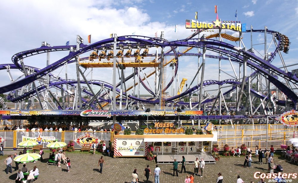 It might not provide much info about the current state of the ride, but this article has a lot of info about the design and construction of the Eurostar and also has quite a few interesting pictures of it. Here's a few pics from the article -