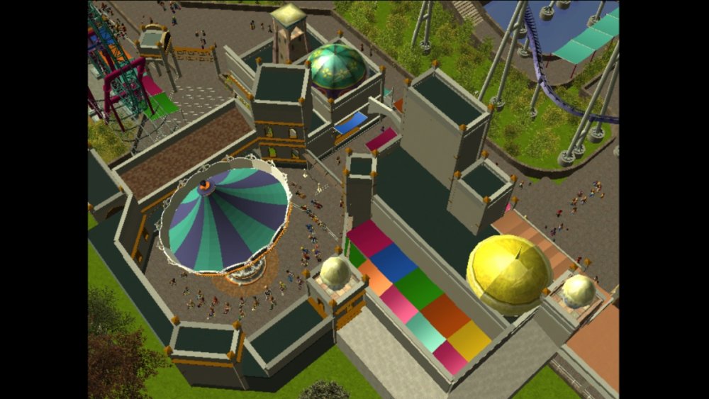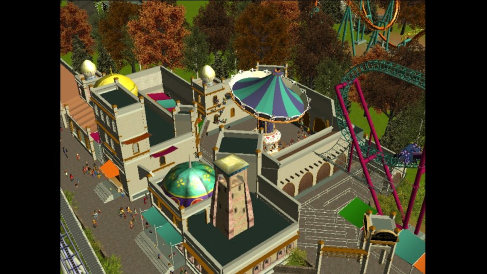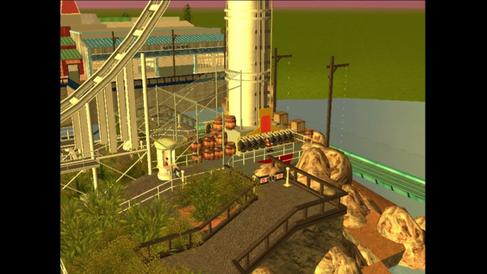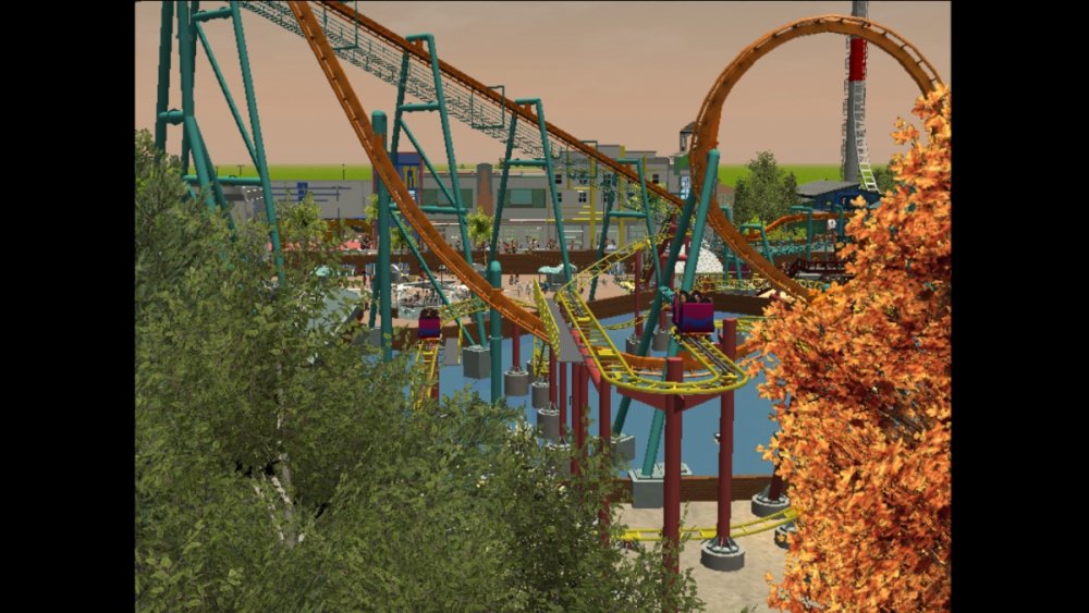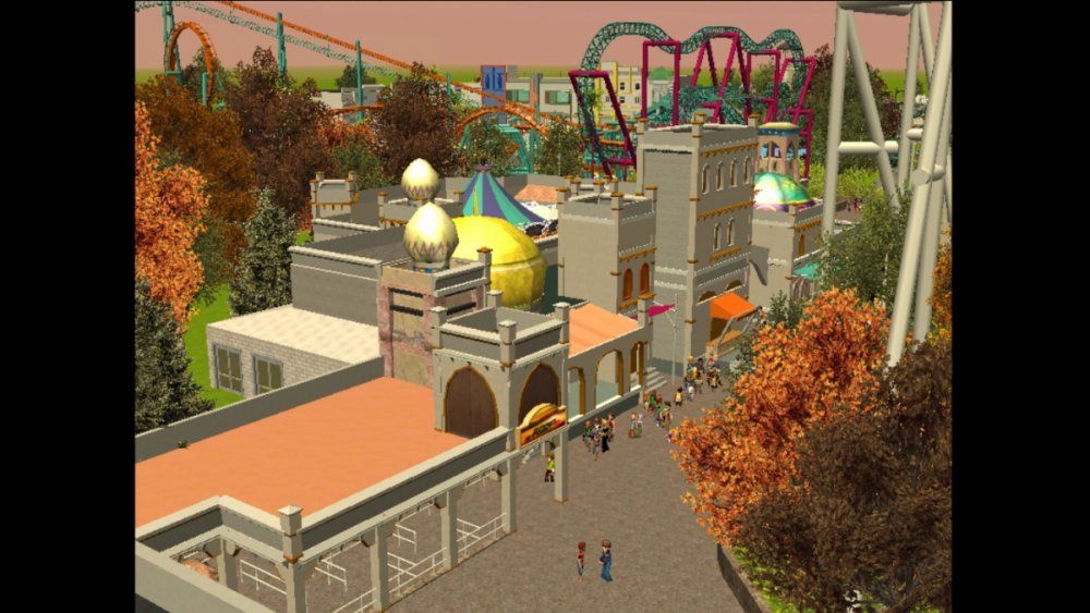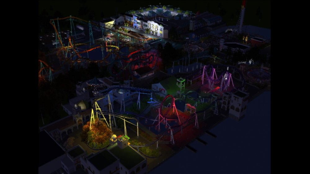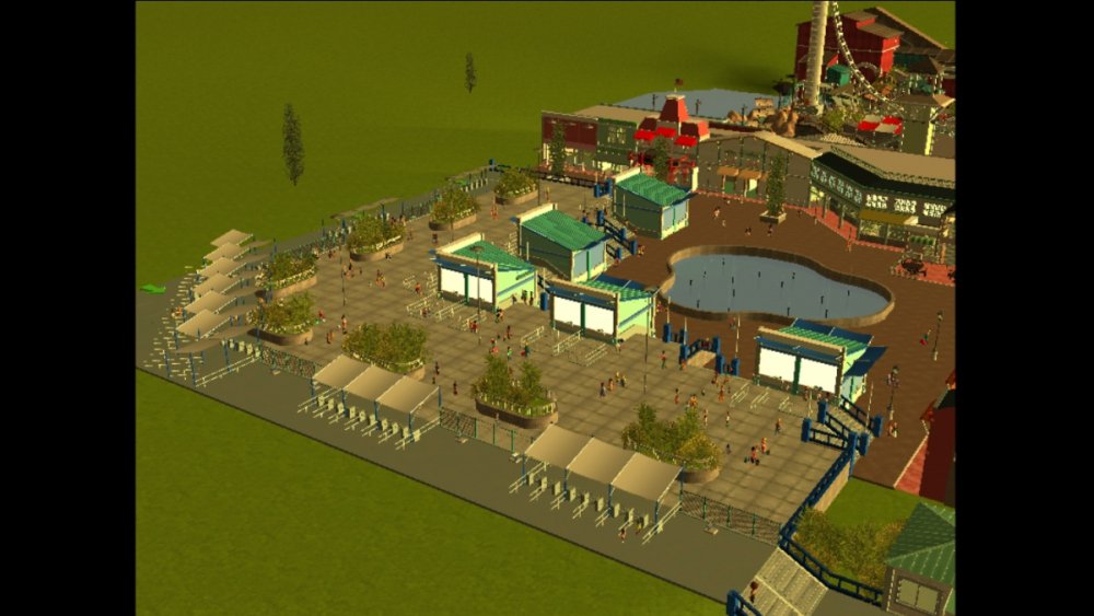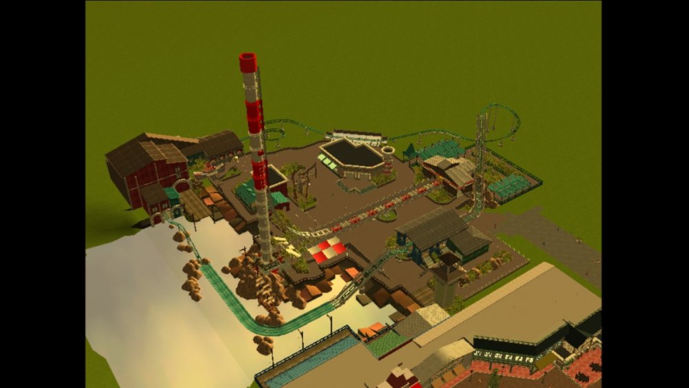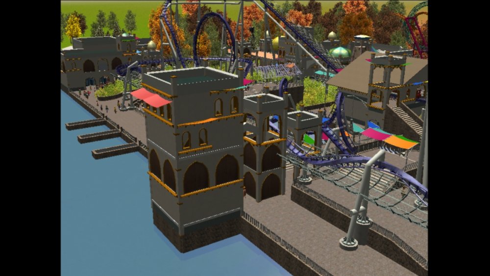 So I'v worked a bit more on this park, But I need a new name for it but can't think of one. So along with the seaside area i'v added a Miami beach front area which as an art deco feel I guess. And a Arabian Market water front. Any feed back would be great on what you think I could do better, or if you think of any attractions I could add that would fit nicely in with the current areas of the park. I also made a carpark and added trees, I'm currently building a stadium area for concerts called Party In The Park in the the right side of the land. So in Miami Beach Front we have: B&M invert - Thunder In Paradise Gerstlauer Spinner - Twister Mania Sizzler - Sizzler Arabian Market Water Front we have: Intamin 10 Inversion - The Rage of Bahamut ( Thanks for the idea on my last post for the 10 inverter) Flying carpets - Magic Carpets Musik Express - Sand Storm S&S free fly - Belly Dancer Chair swing - Arabian Nights Looking across the carpark I added some buildings in the back drop of Rescue Rafts Queue line Miami beach front The Sizzler Twister Mania Station Thunder In Paradise Entrance Arabian Market Water Front The Rage Of Bahamut Arabian Nights Chair Swing Belly Dance The Entrance Sand Storm The Magic Carpets An Overview Staff Area behind the Arabian Zone Complete Overview Im really happy with the Entrance plaza and the building on either side. A NIght Shot Rage of Bahamut night shot Thunder In Paradise night shot Miami Midway shot -