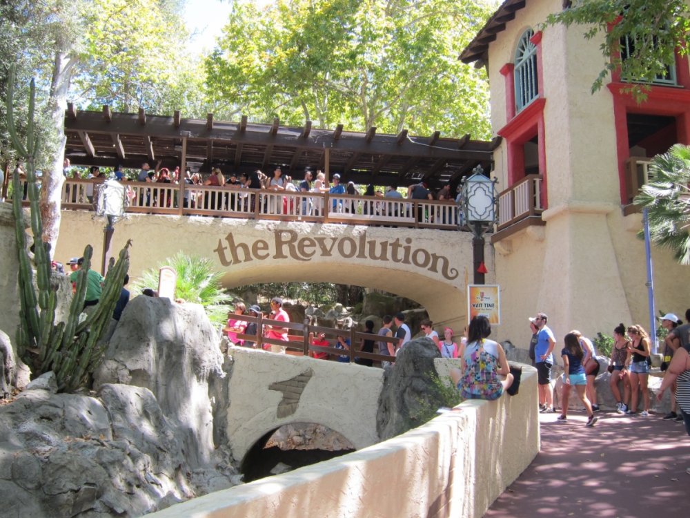 That was a busy day, but the line was about 20mins. Luckily the ride offered a single rider line. I actually really enjoyed the Revolution it was alot better than what I expected. -