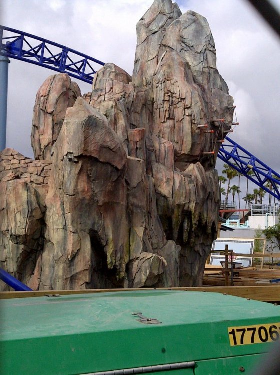 Hey all, I'm brand new to these forums, so as a statement of gratitude I thought I'd stop by SWSD on my way home today. One thing that I was able to have confirmed for me: Manta will not get you anywhere remotely wet. Any "splash" effect is going to be an illusion for those watching outside of the ride. (I saw someone debating this earlier). First thing I noticed was the update to the roofing Scaffolding all gone! This thing looks awesome up close. Great job seaworld! New mulch! (you can smell it too). Landscaping is starting to add a lot to Manta This weekends small amount of rain gives a small preview into what this area might look like when filled with water! Plus, I thought I saw some cars in that door, but my junk phone camera couldn't get that far for you guys! they're probably hidden anyways