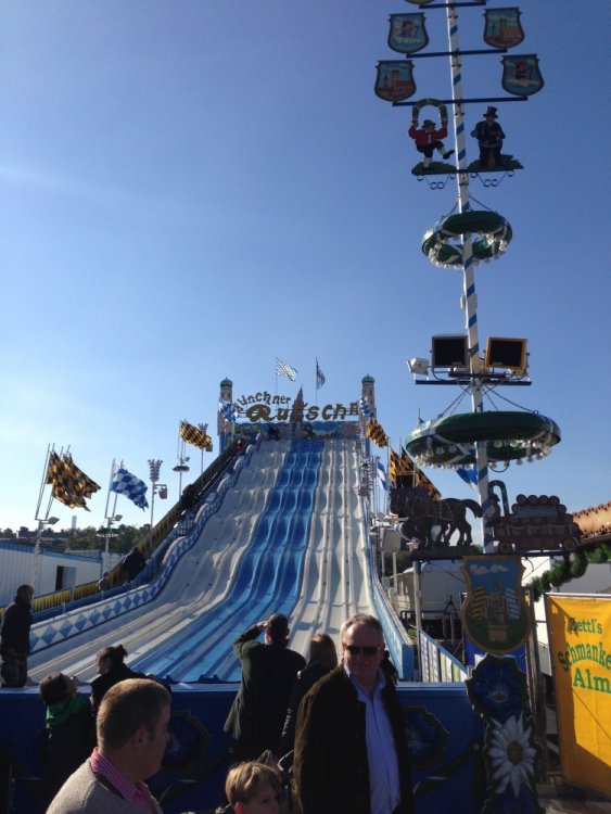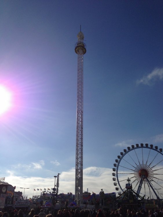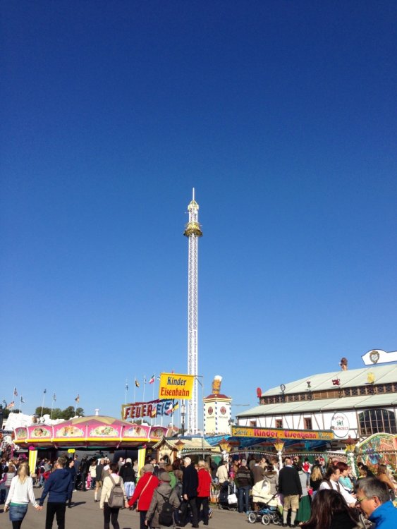 Hey guys! Are you ready for some OKTOBERFEST and GERMAN BEER AWESOMENESS? YES? Then, this is the trip report to look at, because... Yesterday, I made my way to Munich to visit the world famous German OKTOBERFEST! For those of you who don't know, it's a HUGE fair with plenty of tents, plenty of beer and plenty of random flat rides and coasters! It's absolutely AMAZING! Whenever you have the chance to come to Germany, go to one of our fairs! They're just AWESOME! Oktoberfest is famous for its BEER! That's just a matter of fact Almost all the German guys and girls dress up in their costumes and so called ''Dirndl'' and ''Lederhosen (some sort of leather trousers), go to Oktoberfest and drink a LOT of beer! They party a lot and enjoy life! It's really traditional! Furthermore, you can see masses of drunk people laying around and throwing up! That's just a matter of fact, too and completely normal there! Since it was too cold, I didn't dress up in my traditional Oktoberfest costume, but you will see a lot of people in my photos who did! I just went there with my parents because they wanted me to see something else than the library at university. So it was a kind of family trip! We arrived early in the morning, because if you want to go inside a tent, you definitely should arrive by 8 or 9 am, otherwise the tents will be closed due to filling up! You're right! All the people q up hours BEFORE the tents open just to get a spot in there! Welcome to Oktoberfest! Since it was a national holiday in Germany (Reunion of Germany), Oktoberfest was TOTALLY crowded! More than half a million visitors! Oktoberfest is pricey, too! First of all, it's Munich and Munich is one of the most expensive cities here in Germany! Secondly, it's Oktoberfest and people just pay for all that good stuff! A litre of beer cost 9,75 € ($13) and all the rides were around $10! But that's just how it is here The weather was just beautiful, no rain and no clouds! Nevertheless it was quite cold for October! 14 degrees Celcius! Later the day, they had to close the subway station due to overcrowding! As I've already mentioned, there were hundred thousands of people coming to the fair! I definitely hope that TPR is coming to Munich in 2015! Just imagine, drinking beer and partying with TPR members in one of those tents! That would definitely be an EPIC trip! If you guys offer that trip, sign up for it, you won't regret it! Oktoberfest is just amazing With that being said, enjoy some German Oktoberfest AWESOMENESS! On our way to Oktoberfest! Plenty of people did so as well! So many little booths! Food wherever you look! More food options! This is how it looks like after an Oktoberfest party night! First tent! 9 am in the morning! Tents are filling up! People are partying wherever you look! Yummy, some German Pretzels! Oktoberfest souvenirs! You definitely have to buy some hearts! Nice souvenirs! More tents! Mhhhh nice chicken! Hofbräu! More pretzels! Here we go! Party! Wiesn Burger Nice candles! People waiting for more BEER! My favorite tent! More souvenirs? I made it! Delicious food booths! More tent awesomeness! VERY crowded! Many tents! And every tent is crowded! It's filling up! No table without reservation! Blue sky! The world's TALLEST transportable Free Fall Tower! Beer garden! Statue of Bavaria! Greets from the world famous Oktoberfest! Hey guys! Look at the statue! Great atmosphere! Skyfall! Ready to fall? They made it! Nice prices! Random flat ride! More tower awesomeness! More random flat rides!T The famous Oktoberfest ferris wheel! Slides! Beautiful sky! Fun house! Schwarzkopf awesomeness! Looping time! Ready to go! Good old Schwarzie! Yummy! Ready to ride! Such a nice coaster! Indoor Coaster! Not an Elissa approved ride! It's spinning a LOT! Welcome! A VERY traditional Oktoberfest ride! So funny to look at all the people falling down! Toboggan! High Energy! So cool flat rides! Here we go! So many Ge Forces! Crazy! It's super traditional! Yup, it is crowded! Queuing up for a wild mouse! More flat rides! Traditional Oktoberfest horses! It's beer time! BEER! CHEERS! Amazing BEER! Cheers! Yummy! Chicken! white sausages! Beer garden atmosphere! Ready to ride again! Hello people! It's looping time! Bye bye Oktoberfest! Welcome to Oktoberfest! Crêpes! Overcrowded Oktoberfest Masses of people!