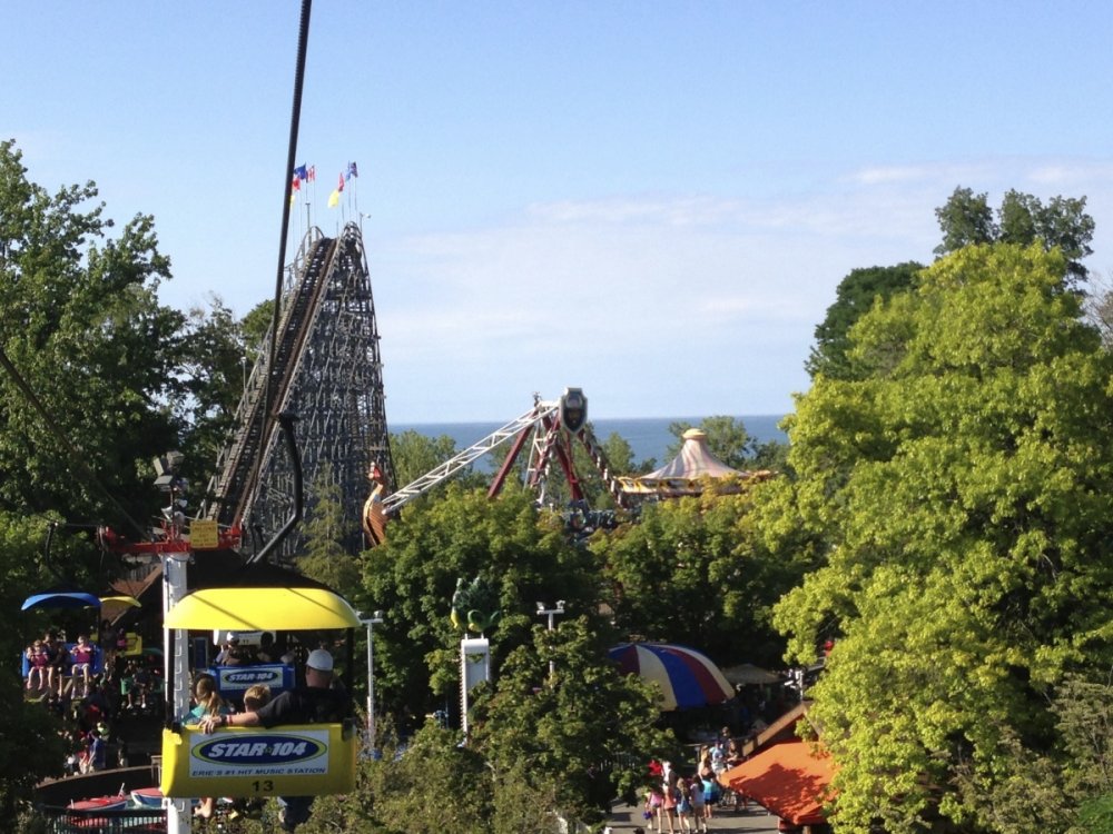 Hey guys! I'm back! New day, new report! It was time to say goodbye to TPR and Cedar Point and start the private after trip! Douglas was so kind to take Werner and me back to his home town Buffalo where we picked up our rental car for the trip! Since Waldameer and Conneaut Lake were on our route, we stopped at those parks and did some credit run there! Thank you very much Doug for doing that shuttle service! We appreciated it a lot! BTW: Kevin joined us as well for the drive back to Buffalo! Conneaut Lake wasn't the nicest place I've been to, but there was a credit So no time to cry and no more words about the park The next stop was Waldameer with its AMAZING Ravine Flyer II! I liked that park very much, because its atmosphere was really nice! Not that kind of busy, crowded atmosphere like it was at Cedar Point. It was really kind of old school! I love those ''nostalgic American parks' because you don't find them here in Germany. IMO, the atmosphere is really American at all the little parks in the states! We met Colin at the park! It was a nice little surprise to see him there after he did the TPR trip as well After some hours at the park, it was time to leave and drive to Buffalo! Our rental car was waiting for us! As always...Enjoy your ride and my photos Goodbye Cedar Point! The bus is already ready to drop us off at the Cleveland airport! Doug offered us a drive from Cleveland to Buffalo! Thanks, buddy! One of the crappiest and scariest places I've been to! Could be a house in a horror movie! Are you ready to ride Blue Streak? Welcome back riders! Tumble bugs! Not for me Sadly out of service Let's get outta here! On our way to... Wristbands!!! ...Waldameer!!! The nicest kiddy coaster I've seen! Right in the middle of a small pool! Woodie goodness! Strange place... Arrrrrrr..... Time for free falling! I only see the color green! Hey guys! Are you enjoying the cable cars? Nice setting! Welcome to Conneaut Lake!