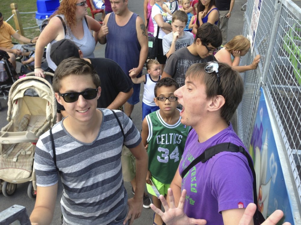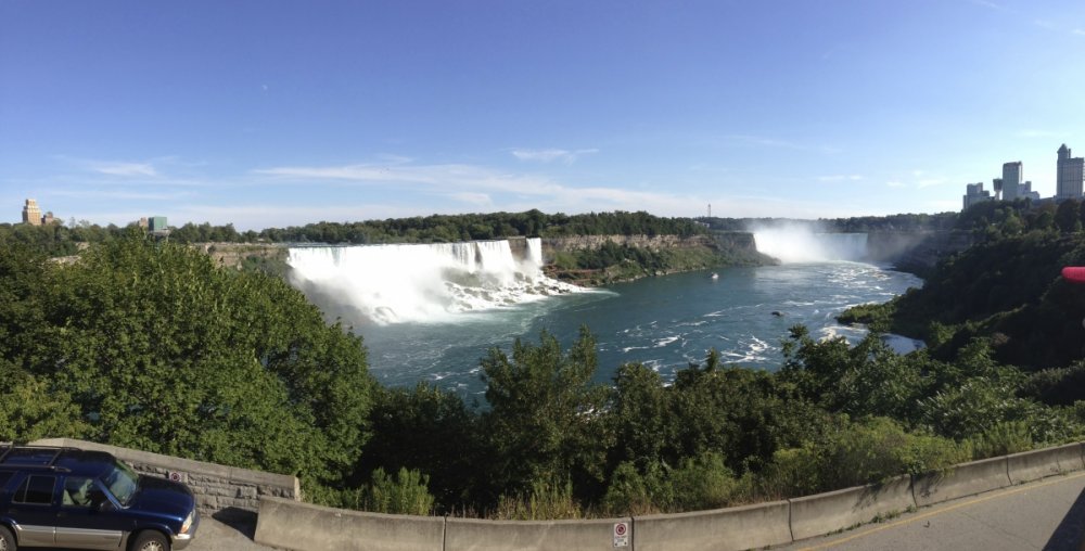 Another stressful day, but doing this trip report kinda cools me down, so let's start! After our RELAXING day in Toronto, we planned to visit Marineland and Niagara Falls the next day! YAY! 2 credits! Since EVERYBODY LOVES MARINELAND (TV Advertisment), we HAD to go there When we entered the parking lot (it was for free! YAY!) there were quite a few cars, but when we entered the park we wondered where all the people were gone?! We soon noticed where! The LONG walking distances from one attraction to another attraction were the reason why all the people spread out in the park! The admission for the park was WAY to expensive (almost $50!) and in my opinion it was not really worth visiting it (besides the CREDITS! ). For those of you who don't know, Marineland is a kind of combination of an amusement and water animal park. I had the impression that all the animals didn't like hanging out in the park! They seemed to be really sad. I don't know if it was the atmosphere (2 days before we were leaving the states for home), but the park didn't convince me! Nevertheless we made the best out of it and did some credit whoring before we went to Niagara Falls, a MUCH better place Niagara Falls were impressive and it's definitely a PHOTO WHORE paradise Everybody is photo whoring, wherever you look That was really funny to look at! So, what else should I say but telling you guys that Niagara Falls is some water falling down the cliffs? It's really nice to look at! But doing holiday at Niagara Falls for more than 1 day would definitely not be my favorite! You come there, look at it, take some photos and you leave that place! Doug met us at the falls and we took him back with our car to the states! Crossing the border was fun! An American car from PA with a Dutch, German AND American boy in it! Where do you guys know from? Our answer was simple...THEME PARK REVIEW! TPR connects the world, man! That being said, take the boat to Marineland and get all the way down to the Falls where masses of water are waiting for you! Nice group photo! Little Werner was just dazzled by the sun! Everybody loves...MARINELAND! Long Long way... YAY! We're inside the park! Man, those paths look ENDLESS! Passing some kiddie flat rides, before it's... ...CREDIT WHORE TIME! CREDITS CREDITS CREDITS! Poor animals living in those pools...The ocean is their REAL pool, guys! More flat rides...and... ...more poor animals! Dolphins are so cute! At least those birds are FREE! Sea bears! I don't want to be eaten by them! They looked scary! Just look! Another credit! We should try it! Please enter the dragon's home! It was smoother than expected! Goodbye Marineland! We took our boat to... ...Niagara Falls Pier! Nice flair! Looks like Vegas! Some nice flat rides! The main thing is they can make money! Hey guys, what's up??? LOOK! We're coming closer to the falls! The main reason why we got here! LOOK! There's is our boat! Right on my shoulder! Hello! I'm your Niagara Falls tour guide! Follow me! Here you can see a panorama photo taken with my iPhone 5! WATER! Hey guys! Those falls are wet! Fun with Doug who met us at the Falls! More nice photos! I recommend NOT jumping in! Photo whore time! More photo whore time! Niagara Falls observation tower! After that ''flop'' of CN Tower we decided NOT to get on this one Crossing the border was FUN! :D -