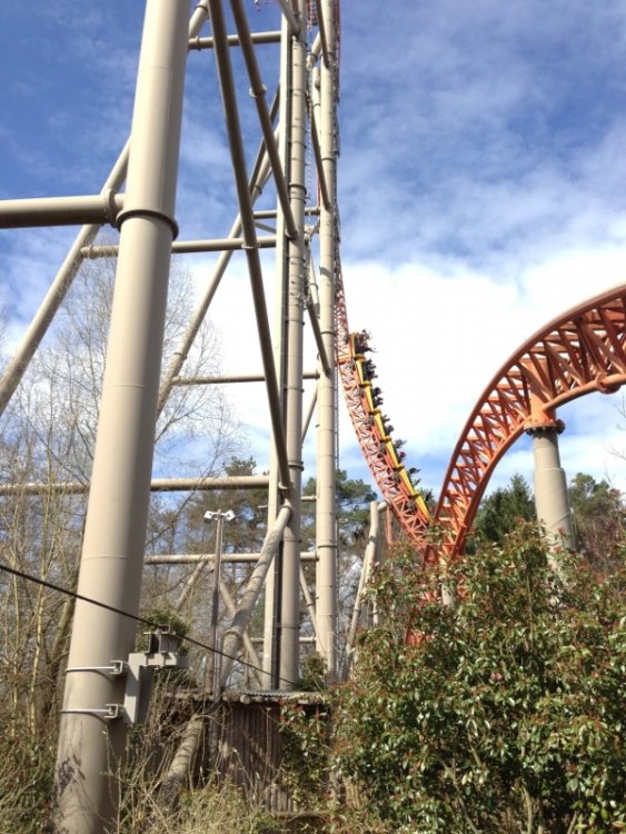15. Hey guys! This weekend I had to visit my home park ''Holiday Park'' to see what's goin' on there! Since I haven't been there for a couple of weeks (it has NOT been the best time to visit the park (due to weather conditions- snow snow and have I already mentioned SNOW?!) I decided to go there! The weather was VERY nice for April and for a big surprise it wasn't crowded at all! Plopsa did some new changes like paving a new way to the ''Pfälzerdorf'' area and building a new restaurant called ''Maja Restaurant''. To make the waiting time at Expedition GeForce more enjoyable, they did a new game where you can collect GeForce miles! It's availabe in the App Store! With that being said, let's go on to the pictures!!! Look at that AMAZING first drop! Racing for the sky! New queue game! Scan the code to collect GeForce Miles! At the end of the season you can win an annual card if you are the best! 4.5 g-forces! What's that red thing behind the ''trees''? Ahh Intamin Goodness! No leaves guarantee this view! Awesome! Tabaluga got a new entrance! Do you want to build a boat with him? Check out the new Maja restaurant! Sun flowers! Here we go! Plopsa really love sun flowers! They create a good atmosphere in that area! Willy at Blütensplash! The singing Maja! Decoration! New created path to the ''Pfälzerdorf'' area Have a seat! The new path allows new views to Expedition GeForce! Yeah! Intamin! I really LOVE free falls! Thumbs up! No rafting due to maintenance! Sun goes down! More free fall please! Check out the Holiday Park museum with its mascot! There you can see several pictures of the creation of the park's attractions! Very interesting! Here we go with my lovely FreeFallTower! Do some shopping! With the annual card you get a 10% discount on ALL the articles! Palms in Germany? yeah! Last but not least! Expedition GeForce bill!