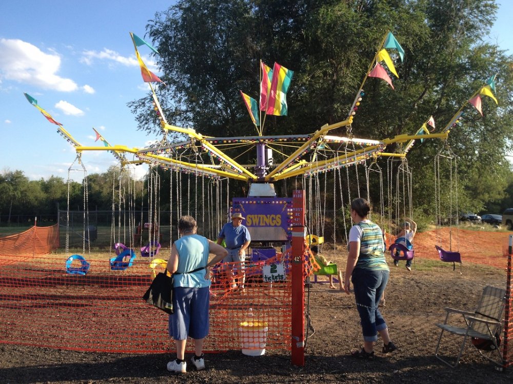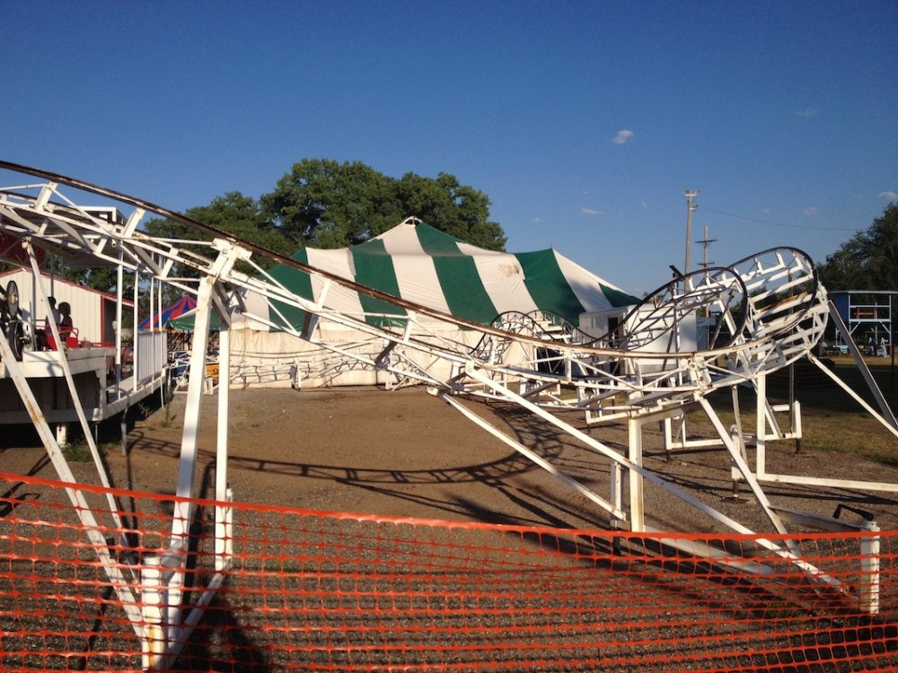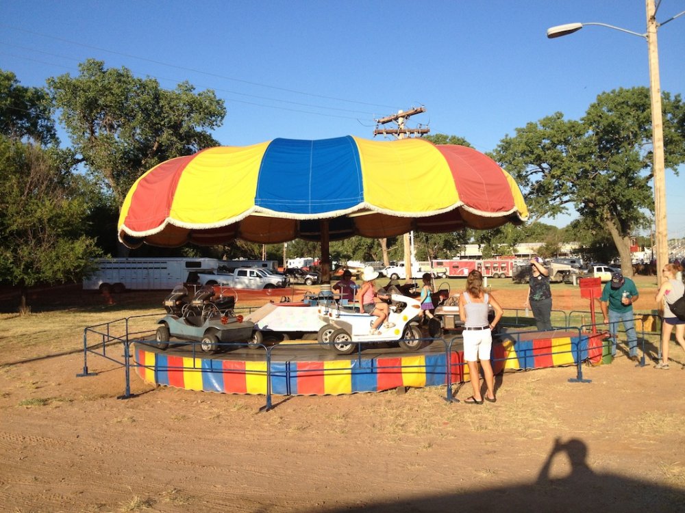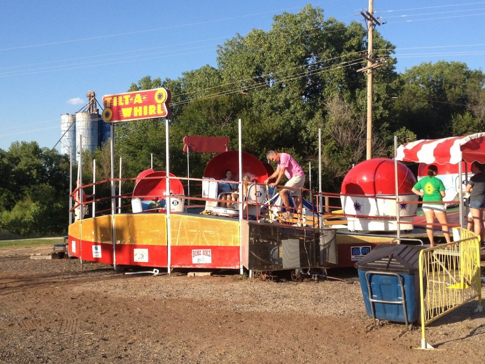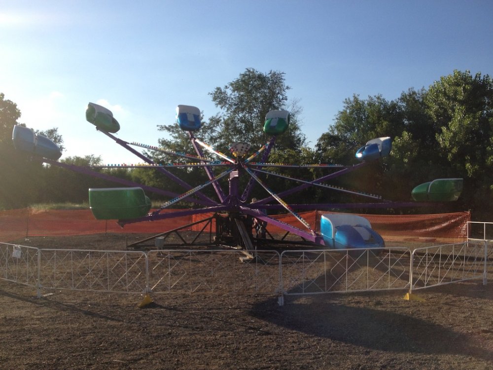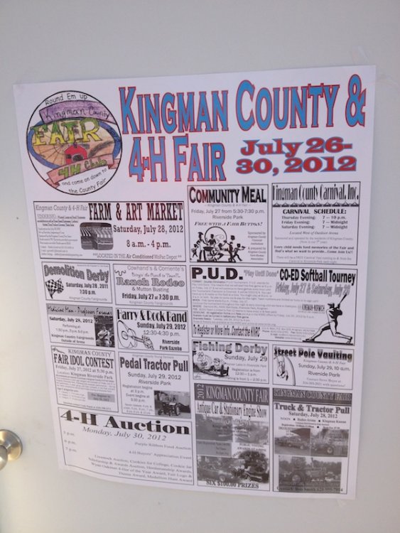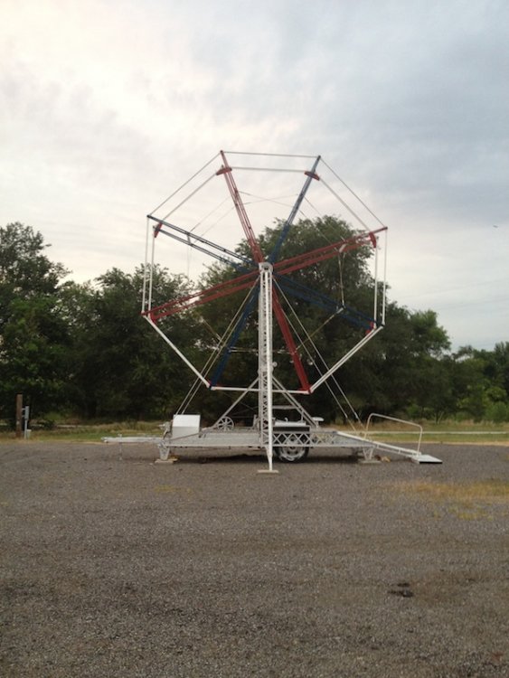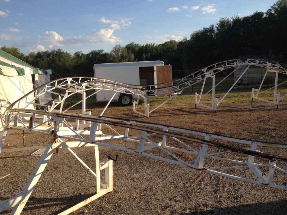 Mikey's MINI TravelsTheSchwitek replied to TheSchwitek's topic in Theme Parks, Roller Coasters, & Donkeys! KINGMAN COUNTY CARNIVAL Alright, so I have to give credit to the smartestscoasterkidever! for finding this rare little coaster. I decided to stop by this little place in a town called Kingman, Kansas on my way to Colorado a few weeks back. I just stopped to get pictures of this "abandonned" roller coaster when I noticed a couple ladies nearby. They informed me that they ran the carnival and that it would be open for 4 days at the end of July. They informed me that they decided to buy their own carnival rides about 7 years ago, because they didn't like the image traveling carnival folks brought to their town. They have bought a new ride almost every season, and staff each one with volunteers during this once a year fair. Everything about this little place reminded me a lot of Brookhaven Exchange Park in Mississippi. Needless to say, they invited me back to enjoy the carnival, so I did just that. I hopped in the Mini Cooper Friday afternoon, and enjoyed a fair (and a coaster), that not many people have ever experienced. Now, let the fair begin: So 30 minutes West of Wichita, you will find Kingman Kansas. During my first vist I saw the only two rides that are left standing all year; the Ferris Wheel and... ... The Screamin' Eagle!! And it looks like it someone is getting ready to put the trains on the track! And there are the coaster cars. Looks like I will be coming back in a couple weeks to see this super rare coaster in operation! So here we are, July 27, 2012. Parking at the Kingman County Fair, next to a statue of some guy riding a bull. Here is the flyer for the fair. I met up with the nice ladies that run the carnival, and they were so excited that I drove all the way here, that they gave me one of their volunteer buttons which enabled me to get VIP treatment and a free dinner! On the way to the food, I smelled, and saw a nice sized rodeo going on. They also had Kingman County Idol taking place, with all the communities best singers. (There were 4 people in the contest) Yes, I found the food! That sweet corn was amazingly awesome. 2 minutes later. Now that I have a full tummy, its time for the main event. The Kingman County Carnival!! Looks like there is a bit of a wait for tickets. But who cares, they are only 25 cents! They had a lot of homemade games to play as well. Here you can see Milk Jugs and some random Beer Pong looking game where you tossed a ping pong ball into one of about 30 glasses from someone's kitchen. A couple more classic games including the Bottle Toss, where you can win a 2 liter bottle of Sam's Choice Soda Pop. They even had Plinko! And a carnival wouldn't be complete without Mini Golf and Drinks. These lovely old men ran the High Strikers. You can also see the men's and women's restrooms in the background. And yes, there were rides as well. Ride #1: The Motorcycle/Dune Buggy/Car/Truck Ride. Ride #2: The Classic Carousel. Ride #3: The Swings. Ride #4: The Tilt A Whirl. Ride #5: The Ferris Wheel. Ride #6: The Spider (By far the most popular ride at the Carnival) And last, but definitely not least, Ride #7: The Screamin' Eagle. Lift Hill POV. (Yes I took a full ride POV as well). Overall ride layout. Track close-up! Action Shot. A shot from the back. My favorite iphone picture of the evening. So I got a new coaster credit, met some nice people, ate some great (free) food, and had a fantastic evening. So that's the Kingman County Carnival. PS - This coaster does stay here all year, so rcdb needs to add it. Thanks for reading!