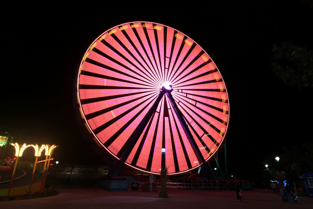 I used a trash can and my camera bag as a tripod and shot in shutter priority. I played with a bunch of different times during the ride cycle. This one ended up being 1.6 seconds. Auto ISO which was 125. I wish I had the know-how to just calculate this on the first shot - but it is trial and error sometimes - I'm pretty comfortable with these type of shots now and can usually get what I have in my mind now. Just shoot a bunch and look at the settings on the good shots - then start with those settings next time. I was curious and checked - I took 13 shots during the ride cycle with various shutter speeds and the ride at various heights. Most were good - but this one just stood out a little more. The fact that the person was so still in that shot is what made me pick that one! Glad you noticed!
