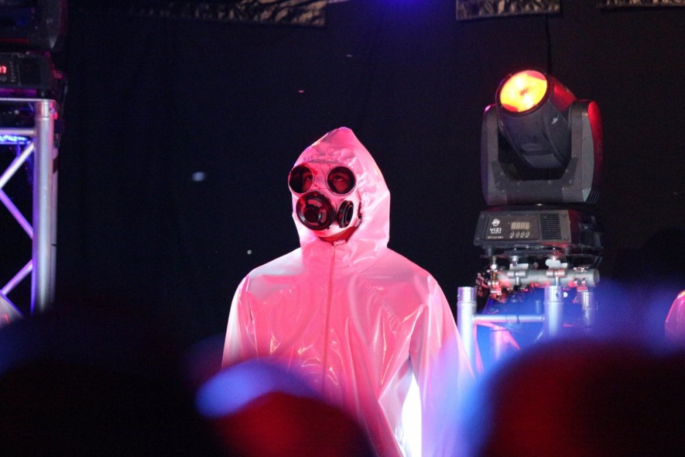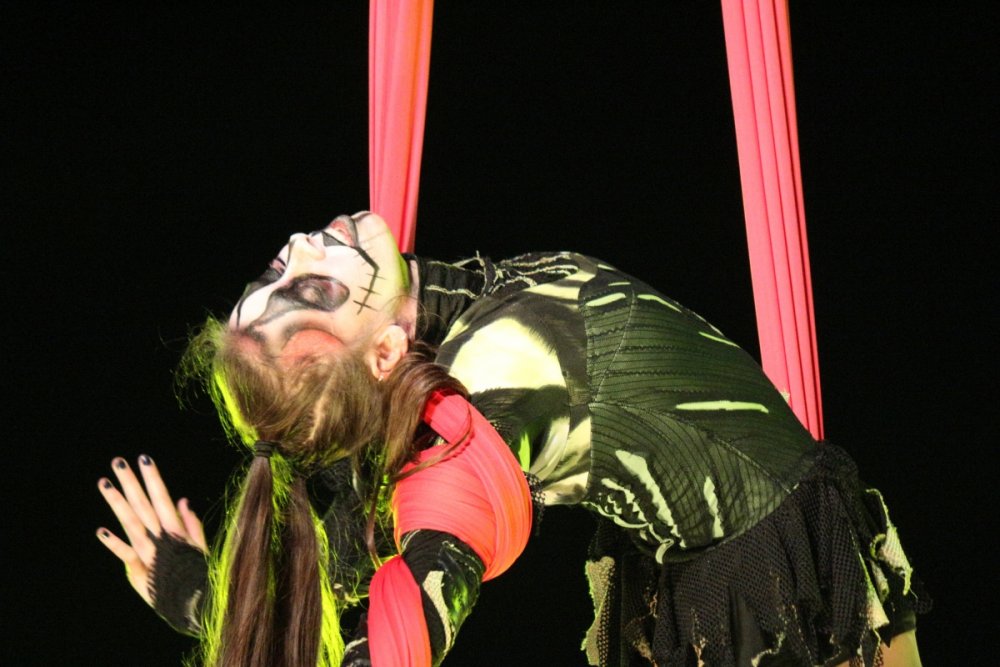 Con't Now that is creepy. Still love the rotunda remodeling. No Surf Bar this time. Breakers - looking grand. The lone outdoor pool. Down for high winds - ha! It's his fault. This turned out better than expected. I found pacman on the Giant Wheel. This is over here now. Troika Troika Troika - was out of control. Eerie Raptor shot. The buckets were running now! It was a perfect fall-like night. Sideways jack-o-lantern from the SkyRide. A look from the station. Led's with designs were all over the main midway. Even Power Tower gets a special color package this time of year. Blaze - is that that the old Mantis sign? So this is what I saw when I arrived at the Skeleton Crew show... I guess she's elasti-girl. Ouch. This guy spun around on his iron hula-hoop. These guys just hung out and looked creepy. Ta-da! She came in for a swing. She did a great job. She's OK - I promise. This act got the best response - too bad she moved so fast I could not get a clear shot of her. This was the best I could do. At least she stood still at the end. I guess this would be the Skeleton Crew. They were fun. Thank you and good night. More nice theming. Get it? Just hanging out. This was new - some little booth with projected faces - I guess they sing or something. Ok - time to ride - then time for rest.