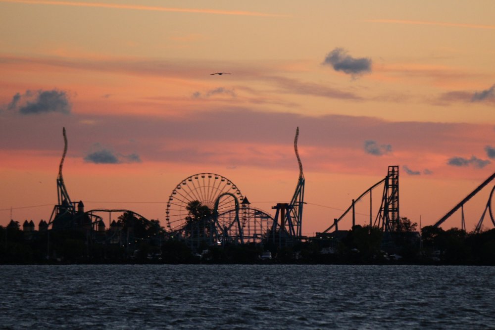 Part II Taking a closer look a a couple of Intamin giants. A peak at the front gate from across the bay. A couple of B&M lift hills. Love the silhouette of Wicked Twister and the Giant Wheel. Let's look at them all together. These guys decided to show up. Taking in the view. Loved the little puffs of clouds this morning. Valravn sighting! Headed to its new home perhaps... Then a cyclists scared the geese away. Things were brightening up. A coaster enthusiast's dream. I spooked the seagulls. It was the morning of birds. They started to reclaim their space. Probably thinking of all those elephant ear crumbs over there. All in a row. This big guy giving me the evil eye. Looked like they were deciding which to crap on first. To the park! Always arrive nice and early! Just an amazing morning on the peninsula. Some interesting sights in the employee lot. Let's take a look at this beauty. I guess if you do a kick-ass job you get a close parking spot. To protect and serve Cedar Point. A look at that first drop. Camelback looking large. MCBR A view back to the starting point. Only real coaster nerds would love to walk down these stairs. First train of the day! Here she comes. Over the camelback. I like this little drop after the MCBR. Next train - back, outside left is the best sport for this. Headed towards the front gate. Coming back - next to the keyholes. About to go keyholing Giant pumpkins greet you at the main gate. Turning around. Raptor through the fall landscaping. No tears were shed. Giant pumpkin over the fountain is new. This guy was still out cold. Quite the contrast on this beautiful morning. The throne is pretty epic. Great little show - check it out! Millennium Force rising from the trees. Peek-a-boo! Headed up the first airtime hill. Coming back on the smaller airtime hill. Some remains of White Water Landing Launched lift - yes please. Such an awesome sight - it never gets old. Skyhawk walk on - sure! For the Arrow mine train lover - I know you're out there. Time to check out this beast. Back down they come. Crossing the finish. 120MPH water ride? Dinosaurs Alive is good for something - these views. Always trains full of smiles and hands up! T-Rex vs. Millennium Force... who will win? Carnivorous dino's and Millennium Force - quite the combo. More hands up and smiles! Catching some air! Whee! Bye Millennium Force! Looking down on Millennium Force's lift hill! This gord-o-saurus was hanging out. Best 17 seconds in the park! Trying to be creative. Don't eat the train! Cool pumpkin-snake. Someone raided the farmer's market. Another nice addition for HalloWeekends. Some CorkScrew love. The Corkscrew's iconic midway presence.