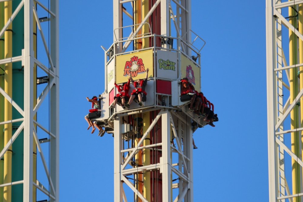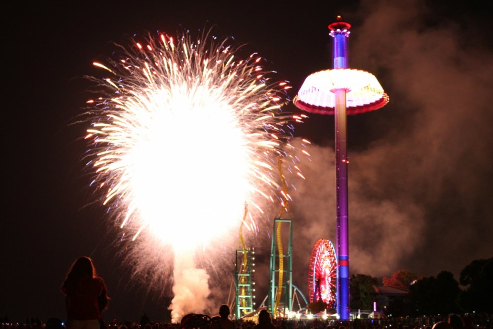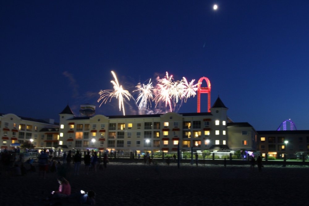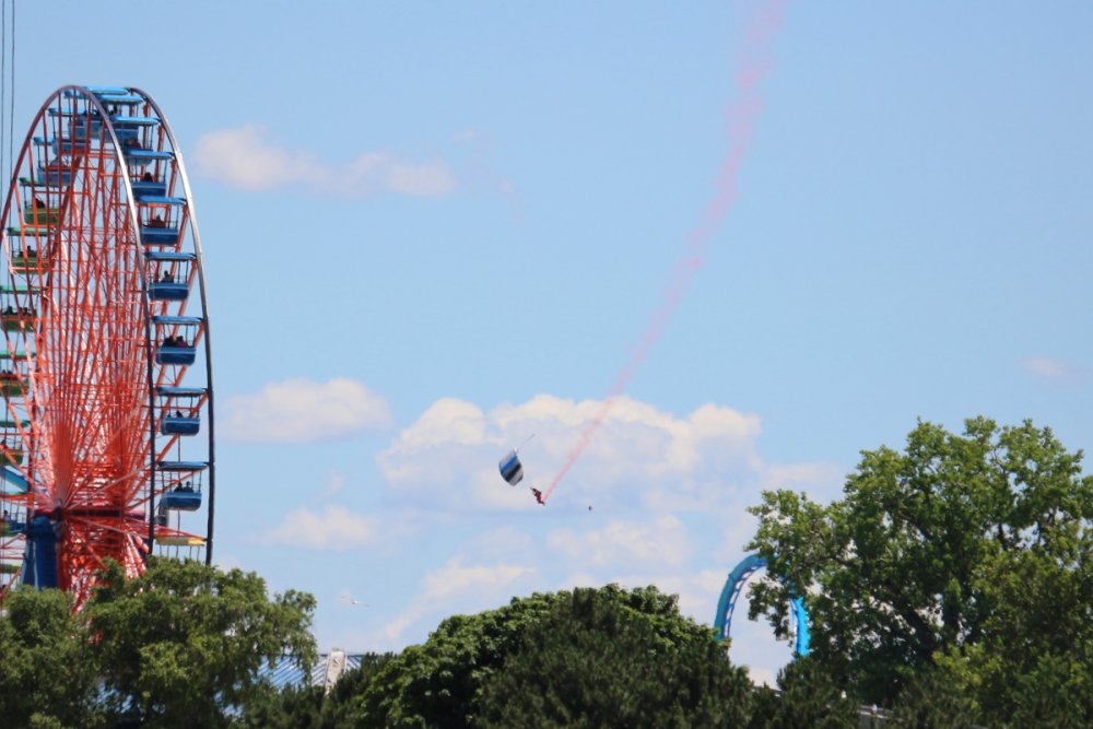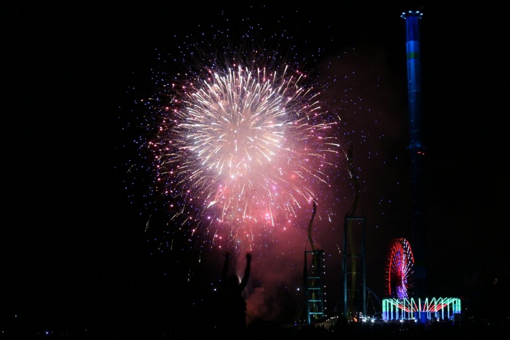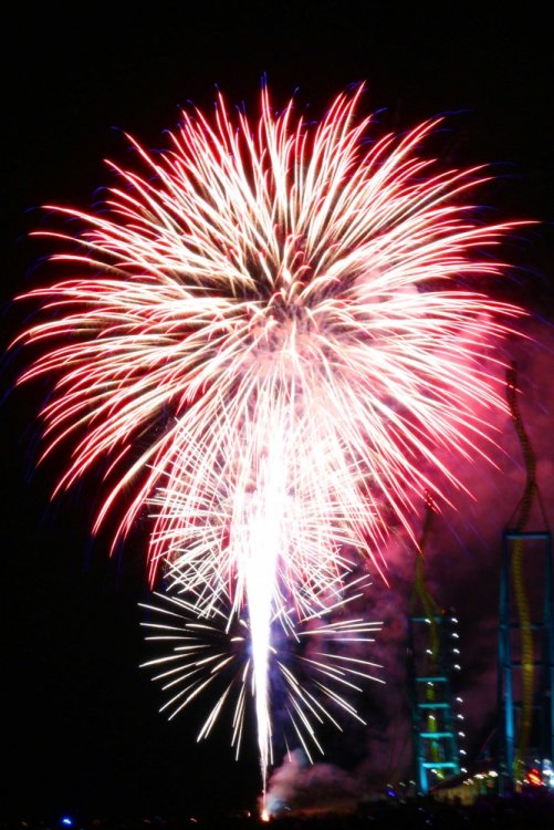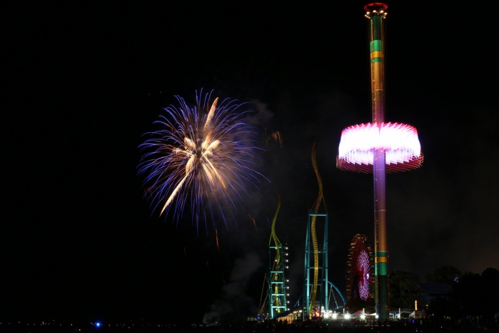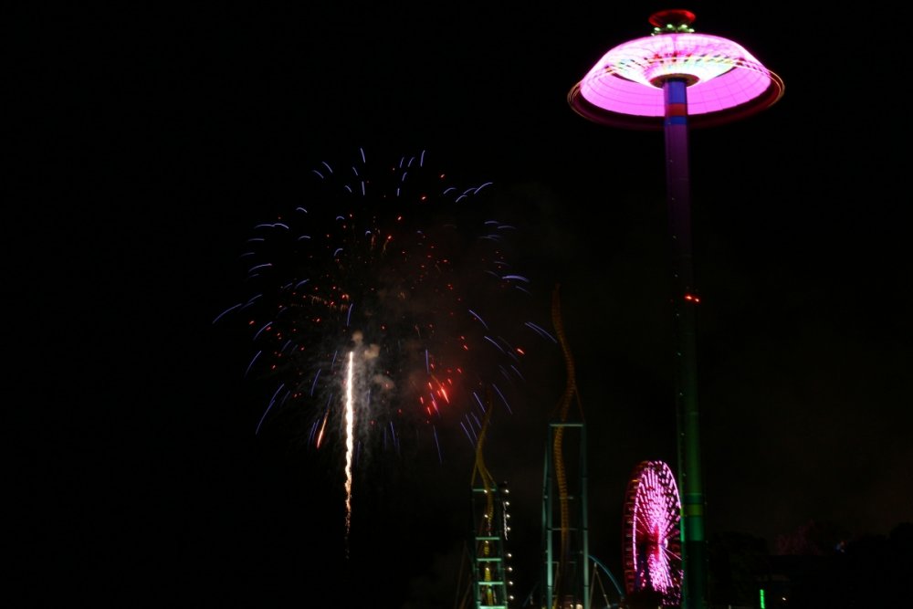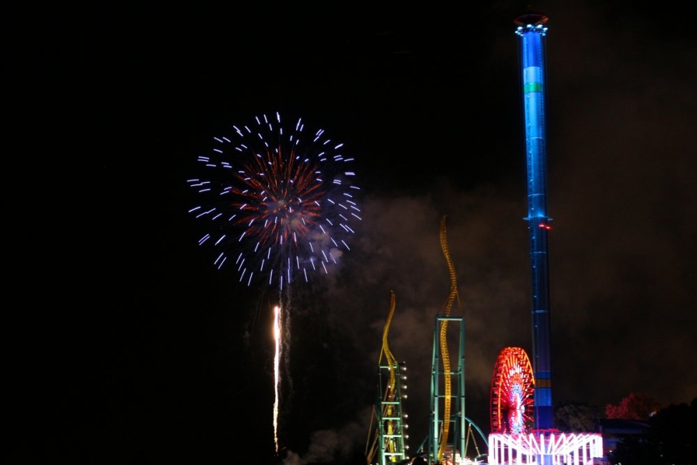 Decided to break my #1 rule and go to Cedar Point on an insanely busy day. Knew what I was getting myself (and my family) into and knew that it would be more site-seeing than coaster riding. Plus, once I saw the beautiful weather forecast along with the fun activities planned (and of course the fireworks!) it was a go. Also, as a bonus we got to get our first rides on the newly opened SlingShot - and we all loved it! Thankfully we had free passes from the Winter ChillOut event - because the asking price of $25 a piece (there is 10% discount for Platinum Pass holders) is a little steep - though probably in-line with other SlingShots. I really was expecting not to like the ride - but the smooth launch, couple of fun flips and a gorgeous view of the park made this a winner. And the crowds that would gather to watch really added some new excitement to that end of the Gemini Midway. The airshow was a little "meh" - pretty short and only 1 plane that never came to close or low to the beach. Imagine this for 10 minutes and this was the extent of the daytime show. 3 skydivers made there way down to the park at the end of the show. Just watching (and listening) to the SlingShot launches is entertainment in and of itself. Seemed like everyone came off with a smile on their face! Tony hamming it up for the pie eating contests. The setting for the pie eating contest was setup like something straight out of a movie. Tony unleashing belly aches for the young'uns Yes - you will even get pie in your eyebrows! This sleeping goat slept right through everyone coming up and saying 'hi' - it's tough work being this cute. Looked up to see the moon and Mantis while waiting for the kids to use a Front of Line pass on TTD. Iron Dragon was looking sexy with the mist and the late afternoon sun. Trying to be artsy Do you like to be dropped or shot? Ending of Luminosity from the beach. The night airshow as pretty much like the day except for the cool flares on the wings The sun was setting - so that means the fireworks are getting close! Oooh! Aaah! Kaboom! You get the point... Wasn't sure if there were actually sending riders up WindSeeker or just sending up for show. Liked how WindSeeker looked in this one. The perfect firework. During the finale - this looked like an atomic bomb going off. Rejoice - Nothing says 'murica like large, colorful explosions!