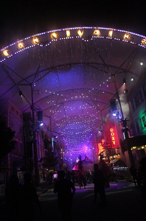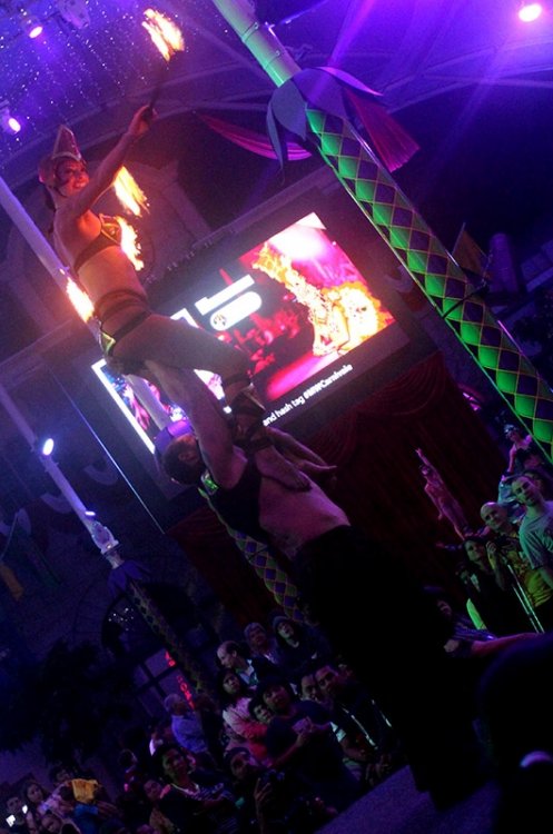 Over the past couple of years Warner Bros Movie World have introduced various evening events to boost attendance and add some extra passholder value. The first two were the standard Christmas/Halloween offerings, but in July last year they debuted "Carnivale", essentially a Mardi Gras/New Orleans mash-up with elements of Epcot's Food & Wine thrown in. Nine months later it has returned for a second outing, so I headed up to the Gold Coast to check out Carnivale Mark II. The overall atmosphere was pretty similar to last year, plenty of lights, music and entertainment, but everything was a little more focused and refined. The steel drummers were (mercifully) departed, and in their place were performers on stilts and fire-breathers. The booze offerings had been stepped up a notch as well. Last year the single alcoholic drink was hidden away prohibition-style in a back corner of the park, but this time around the whole main street area was licensed to serve. The centrepiece parade reused most of the same floats but was again well executed, particularly when one considers that the park layout does not lend itself to the concept of a parade at all. Carnivale is probably my pick of the events Movie World have introduced to date, and definitely has more all-ages appeal than White Christmas or Fright Nights. It's free for passholders, has good food and entertainment, and despite the park being fairly busy most rides had only a short wait. For an event that ran for a total of six nights, there was a lot of effort involved, and it absolutely paid off. It'll be interesting to see where the park takes this concept in future years, but I can definitely see it becoming their flagship event. Enough words. I have some photos... Let's start with a shot of Superman. Still the best ride in the country, and I figured there should be at least one photo of a coaster in the TR. There would be no night rides on Green Lantern tonight, on account of the incident two weeks earlier. Really hope this reopens soon, and isn't SBNO for too long. In case you forget which event you're at, it's right there on the sign! Hooray! This is Colin. He holds stuff so I can take photos. Here he is showing off his food pass, for three items. Given that most items were in the -12 range it doesn't really save you any money, but is convenient. The event was opened by the King of Carnivale, riding a flowery skull! I call this the "I am dancing on stilts and therefore must concentrate" look. I assume there was some bulk deal on stilt performers at the local circus supply store. There were a lot of them. A lot. Bubble lady was... you guessed it... also on stilts! The park decked out Main Street very nicely, lots of lights and fog to build "atmosphere". The food offerings varied from the safe (pizza) to the moderately adventurous (gumbo). Our first pick was Skipper's Southern Fish Fry. Twelve dollars gets you this much fish and shrimp. I know, right? It did taste pretty good, though. Colin with his cone of fried seafood in a grainy, blurry photo caused by terrible lighting. Another look down Main Street. The music and performers kept going throughout the evening. There was a real party atmosphere, and the crowd definitely seemed to be having a good time! Fire! There were a lot more fire performers than last year. This is a good thing. I assume she's dressed that way to reduce the likelihood of unfortunate clothes-catching-fire accidents. Right? Lots of cirque-type acts were happening on the main stage throughout the evening. Here we have some aerial dancers! This moonshine jar might well be the best souvenir cup ever made. Colin looks pretty happy with it too. Another look at the "atmosphere". The lettering on the roof is a nice touch. More lights, more people on stilts. Food selection two was clam chowder in a bread bowl. This chowder was pretty good, the bread was plentiful. Random performers kept popping up on small stages throughout the night. I feel like if I could do a handstand on the floor, doing it on a chair wouldn't be that much harder. Um. I'm not sure where his hand is going either. Best not to speculate. Colin and Harrison holding our dessert pies. The key lime one was pretty tasty! So 3 wins from 3 for me on the food options this year, not bad for a park where the most exotic day-to-day offering involves putting more than one sauce on a hot dog. Another photo of Main Street, angled because it helps crop out random strangers. The event ended with a parade. It's at this point that I'll point out that they have called this the "Main Street Electrical Light Parade". Yup. Just like Disney, without the eighties electronica. Carnivale! The parade started with people on stilts. Because why not? Then fire-breathers! The performances were synced up with flame machines attached to the light poles, which looked really cool. So the thing about Movie World's layout is that it really isn't suited to a parade. The floats have to go all the way down Main Street, wait at the front of the park, then turn around and come back the way they came. On the plus side you do get to see everything twice. Rabbit butt! The alligator king is back from last year, but with the addition of (aforementioned) electrical lighting around his crown. The Little Mermaid is public domain, ok? No copyright infringements here! More performers entertaining the crowd while the floats turn around for their encore journey. Is the peacock pulling the jester along in a chair? It's all a bit high-concept for me... At the end of the parade... confetti! The finale is an all-in dance party thing. Which was our cue to leave. One last photo of Colin. Obvious joke is still funny. Overall we had a pretty good time, I look forward to seeing Carnivale grow further next year!